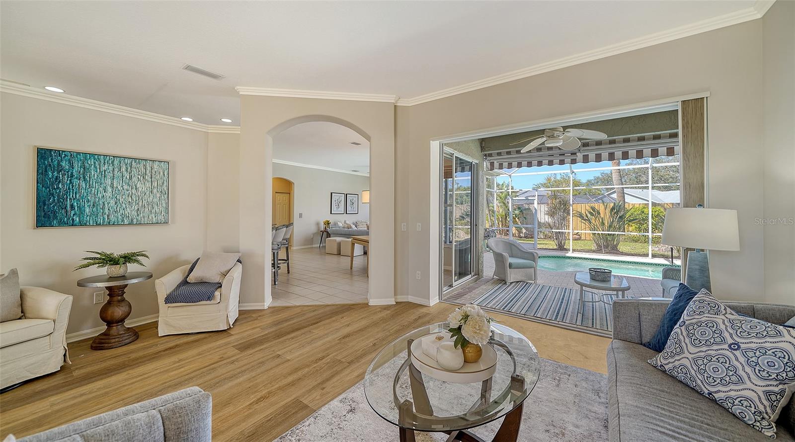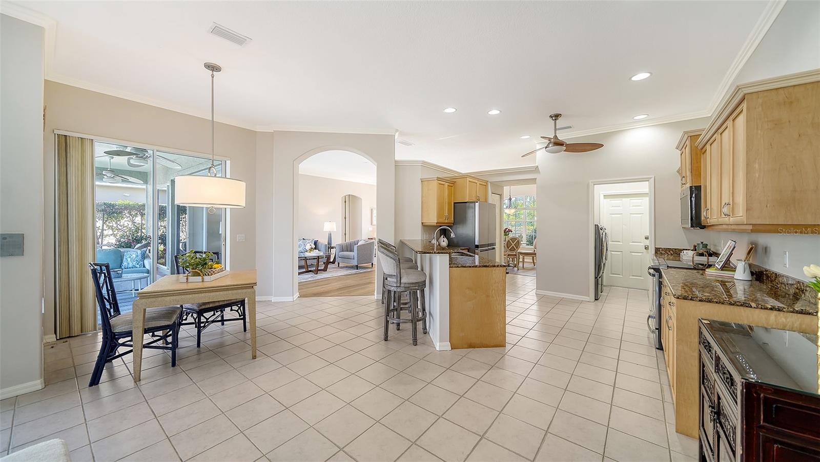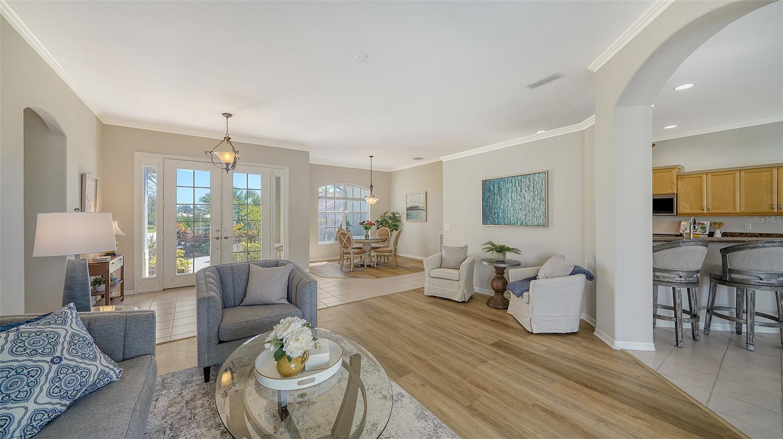 REDUCED $90,000!!! FROM $550,000 TO $460,000!!! LARGEST HOUSE AT THE LOWEST SQUARE FOOT PRICE IN THIS COMMUNITY!! IMMEDIATELY AVAILABLE! PLUS, SELLER WILL PAY INITIATION COSTS OF $25,000 FOR CLJUB MEMBERSHIP!!! This is a SENSATIONAL VALUE!! What a home this is, freshly painted with $50,000 to $75,000 of quality improvements: Halo 5 water purifier, new electric panel, outlets and switches, new security system, new air handler and condenser, electronic air purifier & UV light sanitizer, new pool heater plus converted to salt water, new appliances, additional attic insulation, new water line from house to street, completely replumbed. And more in a detailed list in attachments. Relax in this well-kept home with high ceilings, crown moldings, 4 sets of sliding glass doors, and lots of space indoors and outdoors. Venice Golf and Country Club is the Premier Club in Venice. It is private, owned by the members, 18 holes of golf, has a manned entry gate, lush tree-lined streets, and is a Geo Audubon community. The Clubhouse was completely remodeled in 2022 with outdoor dining, wellness center (personal trainer, classes, massage & physical therapist) heated pool and spa, har-tru tennis courts, bocce, and pickle ball for active days and fire pits for evening relaxation. Membership is required. See attachments for details. VGCC is 5 miles from charming downtown Venice, and a short drive to beaches, dining, theater, Wellen Park, & the Braves spring training facility. This prestigious community is best described as lush and green, welcoming and friendly, and impeccably maintained and presented. It is the GEM of Venice.