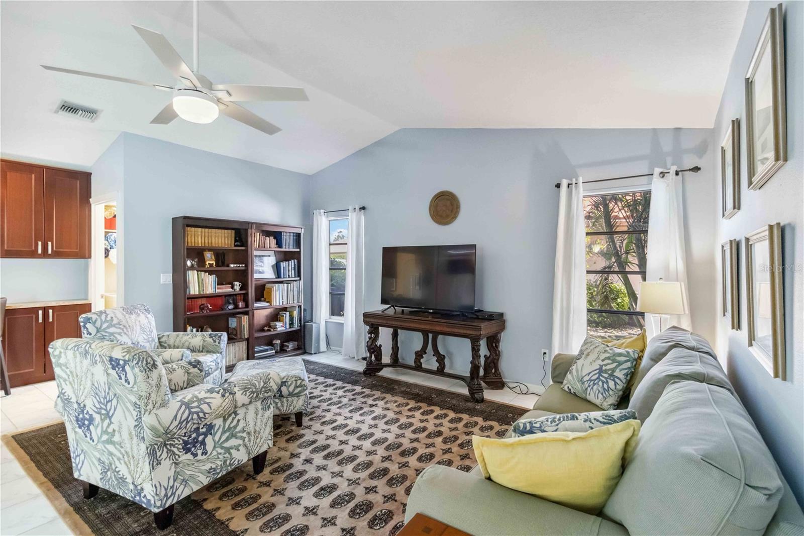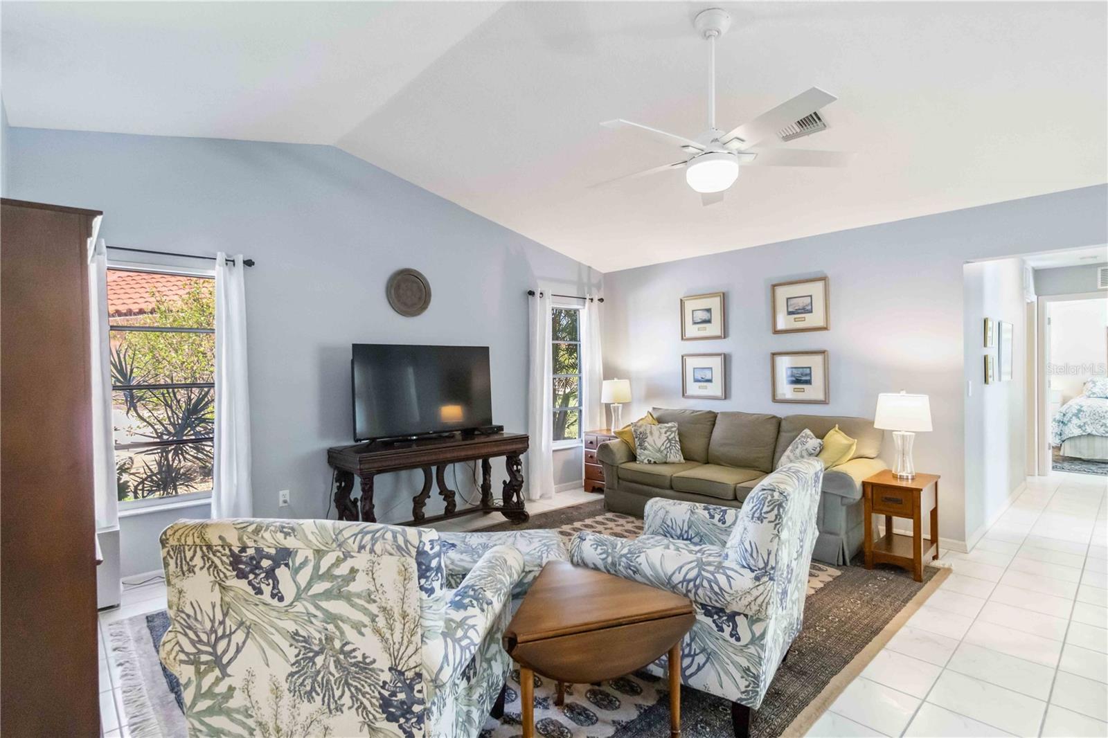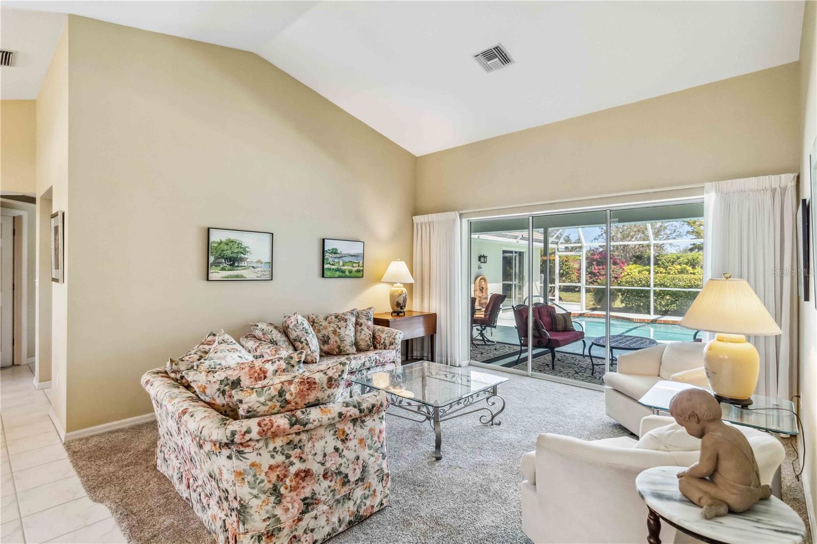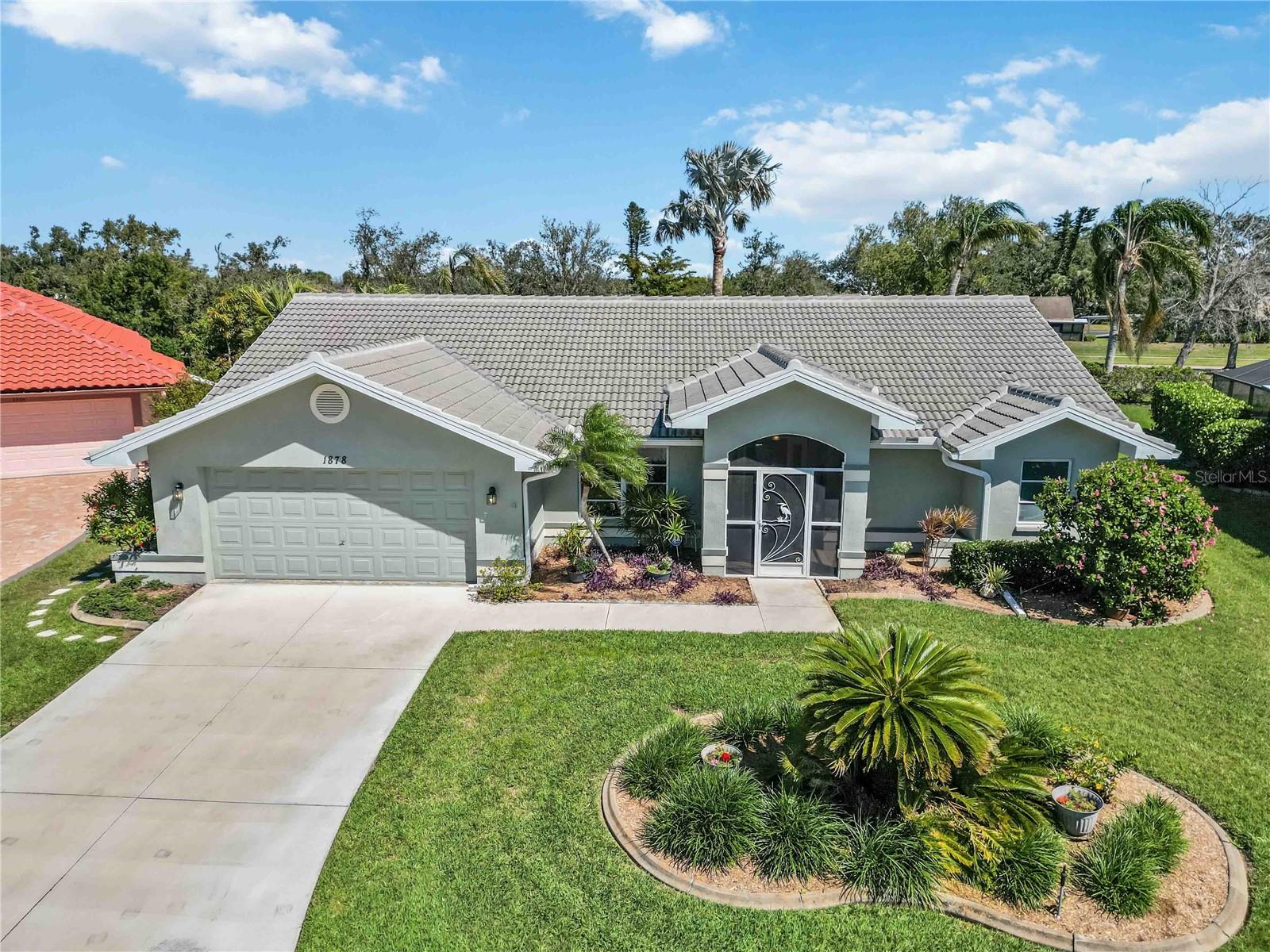 Welcome to 1878 Killdeer Court, in beautiful Venice, Florida. A spectacular home meets the unbeatable Florida lifestyle. From the moment you step into the elegant entryway featuring a coat closet, you will appreciate the details. Both the formal living room and the family room have vaulted ceilings that open seamlessly to a heated resort-style pool. The home's design allows direct access to the pool from the primary bedroom, the living room, the family room, the guest bathroom, and one of the guest bedrooms. The meticulously updated kitchen (2014) features tall upper cabinets with glass fronts, bottom cabinets with turntables and soft closing drawers, granite countertops, a stylish tile backsplash, and an extra tall pantry cabinet. The primary suite is a large retreat with vaulted ceiling and sliders that open directly to the pool area along with two walk-in closets. The luxurious primary bath, remodeled in 2018, boasts quartz counters featuring two vanities, a large soaking tub, and a walk-in shower with a seat. The bathroom has thoughtful touches throughout such as pocket doors to the water closet and a linen closet. Practical features include a two car garage with cabinets, a laundry room with a deep sink and built-in cabinets, and a deep well for sprinklers. Recent updates include roof, gutters, soffit, facisa, and driveway (2020), HVAC, and water heater (2021) and pool heater (2023). The backyard is the epitome of privacy with a hedge landscaped to provide an enclosed pool experience. Pool lanai faces east, providing shade from the late afternoon and evening Florida sun. Between having no hurricane damage from the storms & all of the amazing storage space (120 sqft in walk-in closets alone!), this home is a dream! Located just minutes from sparkling beaches, downtown Venice, Wellen Park and the vibrant Braves stadium; this home places you at heart of the ultimate Florida lifestyle. Everyday here feels like a vacation - don't miss your opportunity to experience this perfect blend of luxury, comfort and location at 1878 Killdeer Court!
