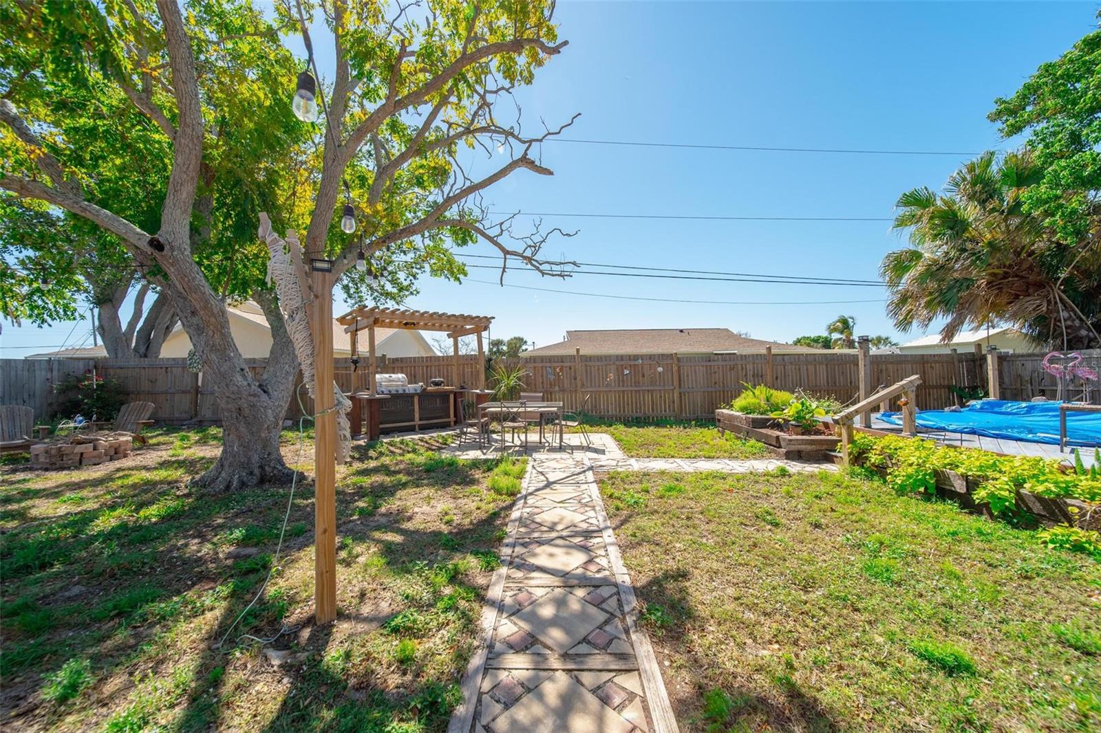 Embrace coastal living in the heart of Venice, FL! This light-filled, 3-bedroom, 2-bath split-plan home invites you in with its bright and breezy charm. Step through the front door into a formal living space that opens to a serene, enclosed courtyard—ideal for morning coffee or evening relaxation. The family room, conveniently located off the kitchen at the back of the home, features built-in shelving and large windows that frame the spacious backyard. Outside, you'll find a semi-inground pool with custom decking and a pergola—a perfect spot for grilling and unwinding. The open kitchen, complete with an island and tile countertops, makes cooking and entertaining a breeze. Nestled in the sought-after Venice Gardens neighborhood, this home provides access to a community park and is just minutes from Venice Beach, Sharky’s Pier, Dog Beach, and the charming shops and restaurants of downtown Venice. Nearby schools include Venice Montessori Preschool, College Matchmaker, and Total Swim Instruction. For your shopping needs, Jacaranda Plaza and Venice Market Place are just a short drive away. Outdoor enthusiasts will appreciate proximity to Skip Stasko Park, Venice Gardens Park, and the Venetian Waterway Island Circus Bridge Trailhead. With a whole-house re-plumb completed and a brand-new A/C installed in 2024, this home combines modern updates with coastal charm. Your perfect Venice retreat awaits!