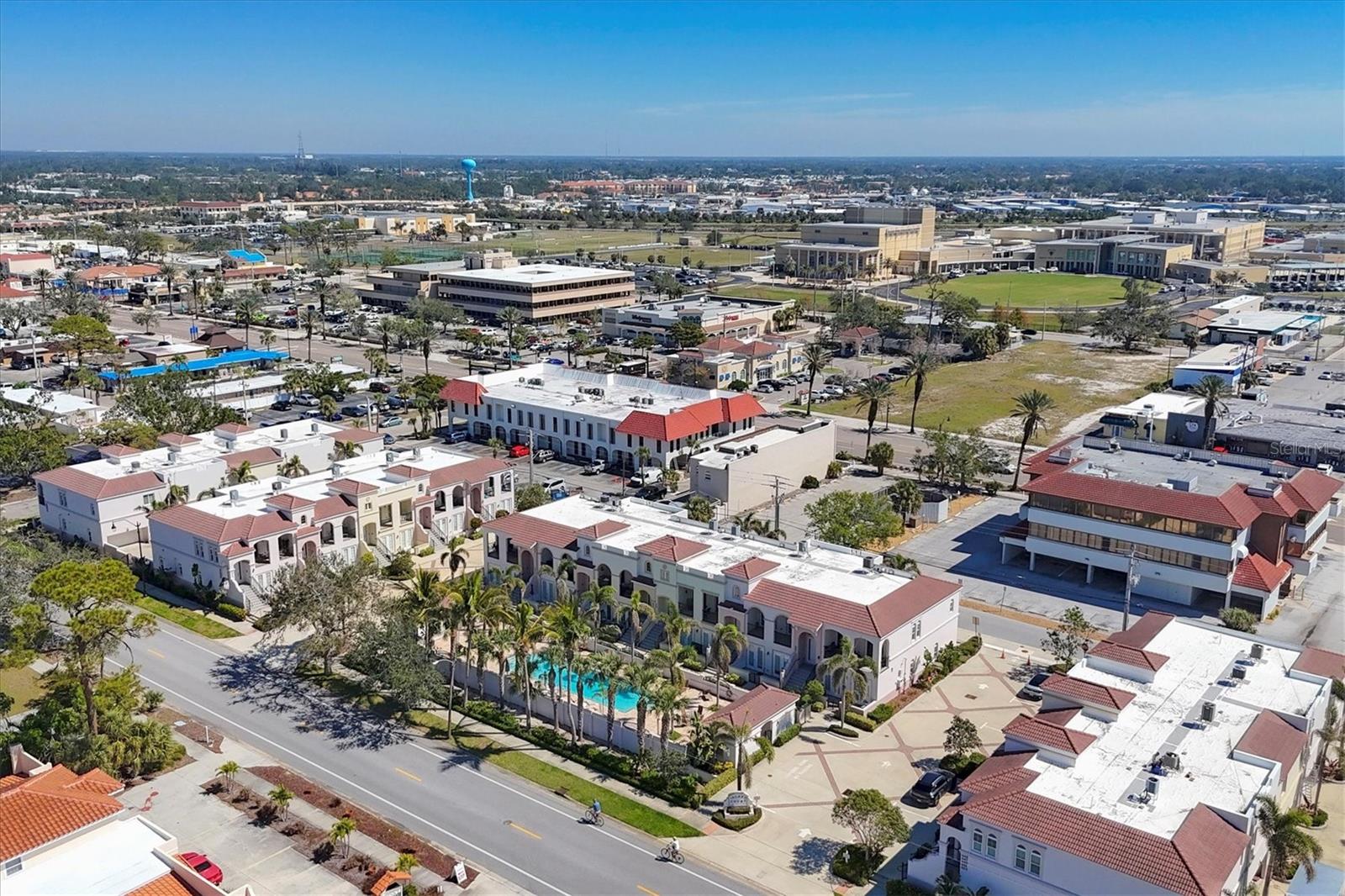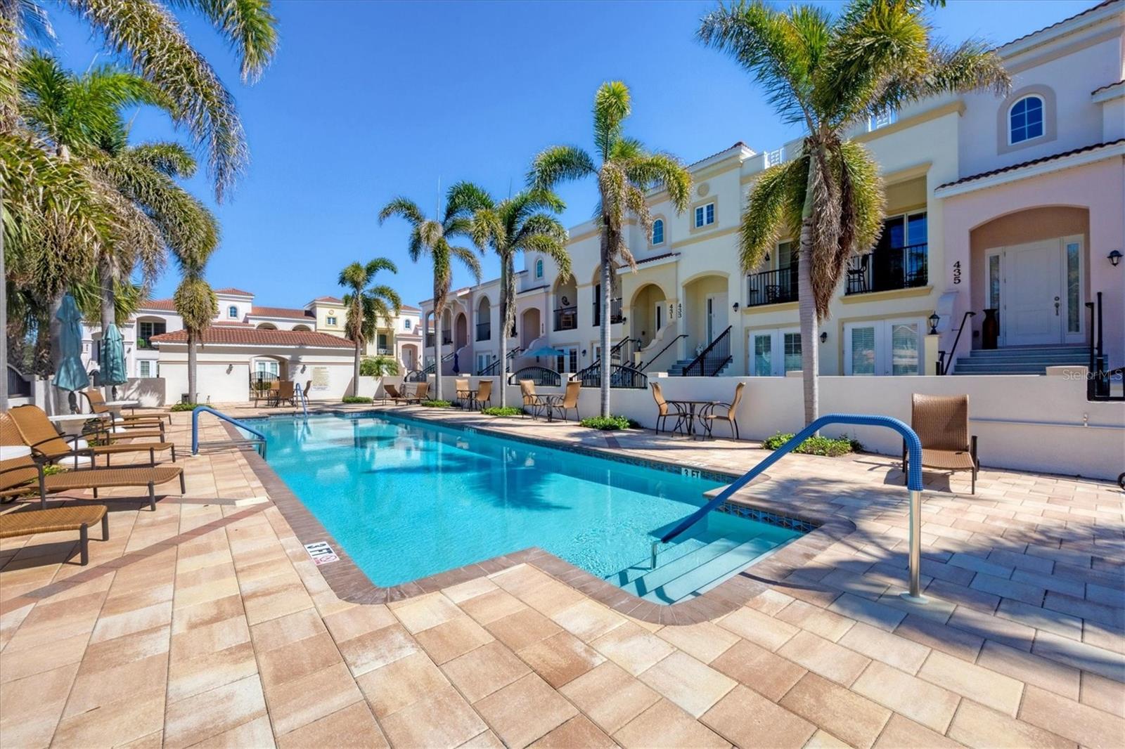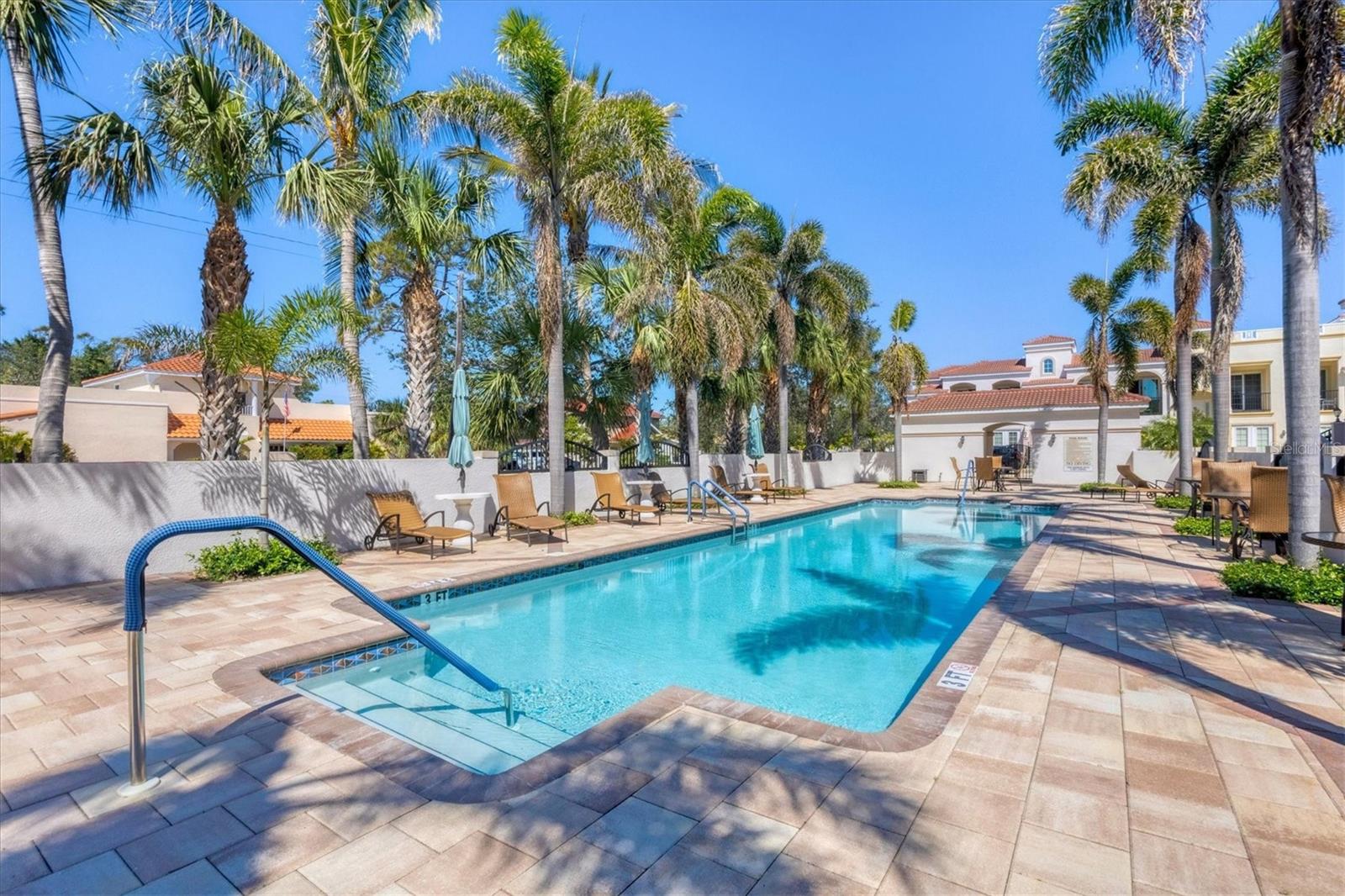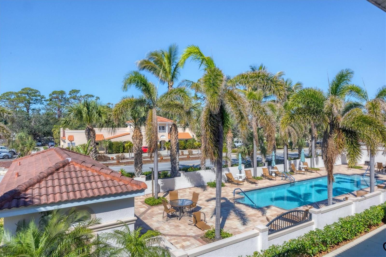 This Exceptional End-unit Rowhouse Style Condominium offers you Easy Living in a Prime Location on Venice Island! Island Court, a delightful courtyard style 26-unit community provides a maintenance free lifestyle, and just outside your front door, relaxation in poolside resort style beach chairs or a dip in the heated lap-style pool. Enjoy morning coffee on your great room balcony as you watch Venice come to life, or relax with friends in the afternoon on your poolside patio. The open concept plan seamlessly blends the living and dining areas with the kitchen which boasts breakfast bar seating that serves the kitchen and dining area, sparkling stone countertops, stainless steel appliances and engineered wood floors. Both the first-floor bedroom and the second-floor primary suite feature roomy walk-in closets and ensuite bathrooms. A Unique Lift provides easy up and down access from the main living area on the 2nd floor to the first-floor ensuite bedroom, laundry room and the attached two-car garage, which has extra space for bicycles, golf clubs or beach toys! Additional features include a first-floor office alcove, and partially furnished with Ethan Allen furniture. This destination puts you virtually in downtown Venice in a perfect setting. You'll never be bored with all the options for dining, shopping, and entertainment just outside your front door. In fact, you can enjoy a leisurely walk or bicycle ride to any spot around town! Have you been dreaming of the perfect "living the life" destination in Venice? This rare opportunity, with its ideal Paradise location, may be just what you've been waiting for, only one block to the Venice Library, Community Center, Art Center, street side art and craft shows, banking, boutiques, churches, tennis courts, pickleball courts, and the Interactive Water Park. You'll also be close to Centennial Park, home to car shows, Sun Fiesta, concerts, and the Sharks Tooth Festival, as well as dozens of restaurants, many with outdoor seating. Enjoy year-round entertainment at the renowned Venice Theatre or Venice Performing Arts Center, featuring the Venice Symphony. Sun, Sand, and the Gulf are just a mile away with free beachside parking at gorgeous Venice Beach. Additionally, you'll have easy access to grocery, drug stores, gas station, convenience store, I-75 and the Sarasota, Punta Gorda, and Ft. Myers airports. Venice's own airport offers convenient travel without commercial air traffic. Everything you could want or need is right here on Venice Island!