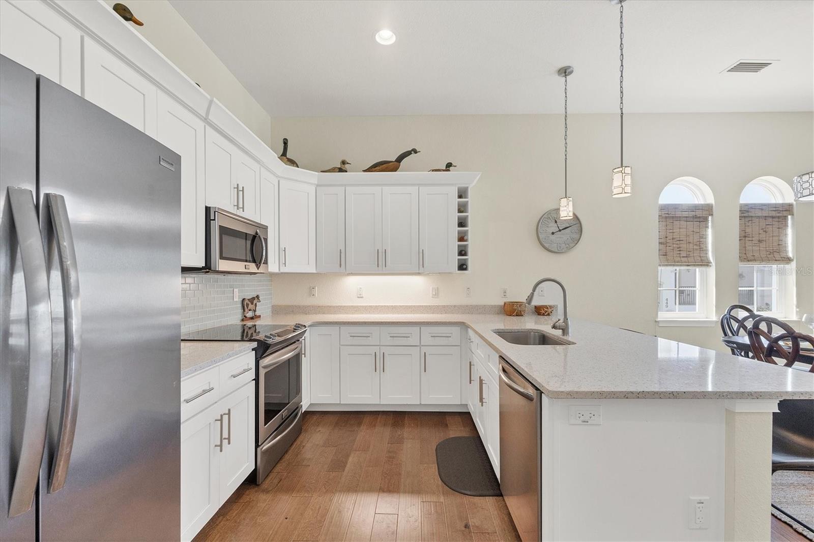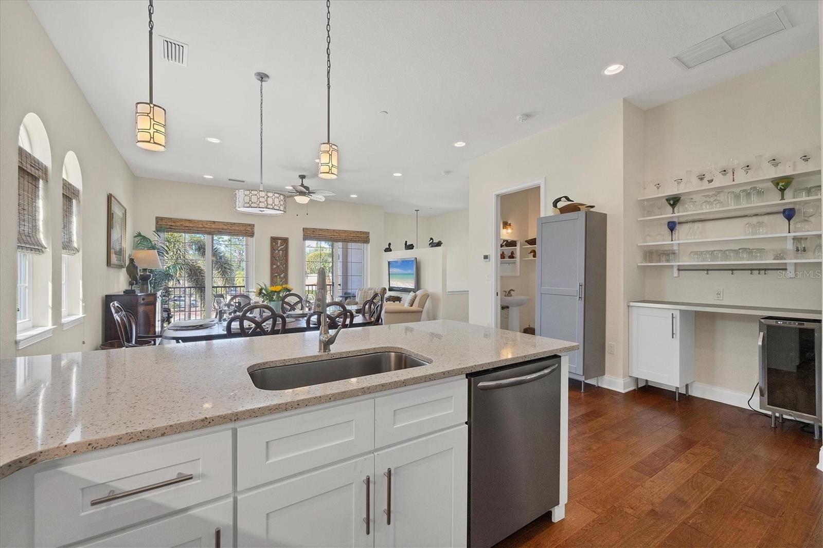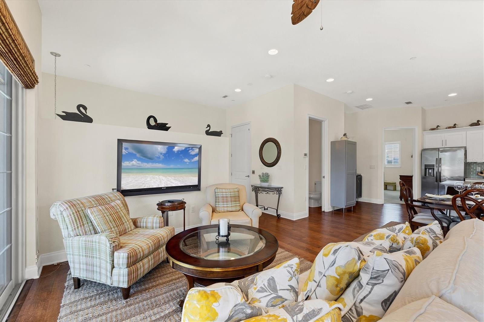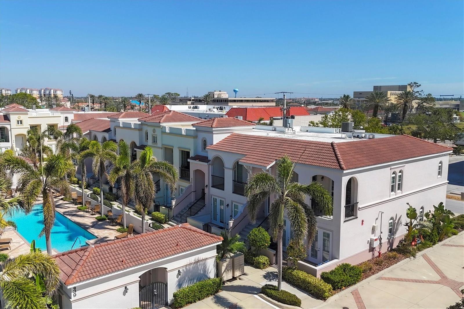 This Exceptional End-unit Rowhouse Style Condominium offers you Easy Living in a Prime Location on Venice Island! Island Court, a delightful courtyard style 26-unit community provides a maintenance free lifestyle, and just outside your front door, relaxation in poolside resort style beach chairs or a dip in the heated lap-style pool. Enjoy morning coffee on your great room balcony as you watch Venice come to life, or relax with friends in the afternoon on your poolside patio. The open concept plan seamlessly blends the living and dining areas with the kitchen which boasts breakfast bar seating that serves the kitchen and dining area, sparkling stone countertops, stainless steel appliances and engineered wood floors. Both the first-floor bedroom and the second-floor primary suite feature roomy walk-in closets and ensuite bathrooms. A Unique Lift provides easy up and down access from the main living area on the 2nd floor to the first-floor ensuite bedroom, laundry room and the attached two-car garage, which has extra space for bicycles, golf clubs or beach toys! Additional features include a first-floor office alcove, and partially furnished with Ethan Allen furniture. This destination puts you virtually in downtown Venice in a perfect setting. You'll never be bored with all the options for dining, shopping, and entertainment just outside your front door. In fact, you can enjoy a leisurely walk or bicycle ride to any spot around town! Have you been dreaming of the perfect "living the life" destination in Venice? This rare opportunity, with its ideal Paradise location, may be just what you've been waiting for, only one block to the Venice Library, Community Center, Art Center, street side art and craft shows, banking, boutiques, churches, tennis courts, pickleball courts, and the Interactive Water Park. You'll also be close to Centennial Park, home to car shows, Sun Fiesta, concerts, and the Sharks Tooth Festival, as well as dozens of restaurants, many with outdoor seating. Enjoy year-round entertainment at the renowned Venice Theatre or Venice Performing Arts Center, featuring the Venice Symphony. Sun, Sand, and the Gulf are just a mile away with free beachside parking at gorgeous Venice Beach. Additionally, you'll have easy access to grocery, drug stores, gas station, convenience store, I-75 and the Sarasota, Punta Gorda, and Ft. Myers airports. Venice's own airport offers convenient travel without commercial air traffic. Everything you could want or need is right here on Venice Island!