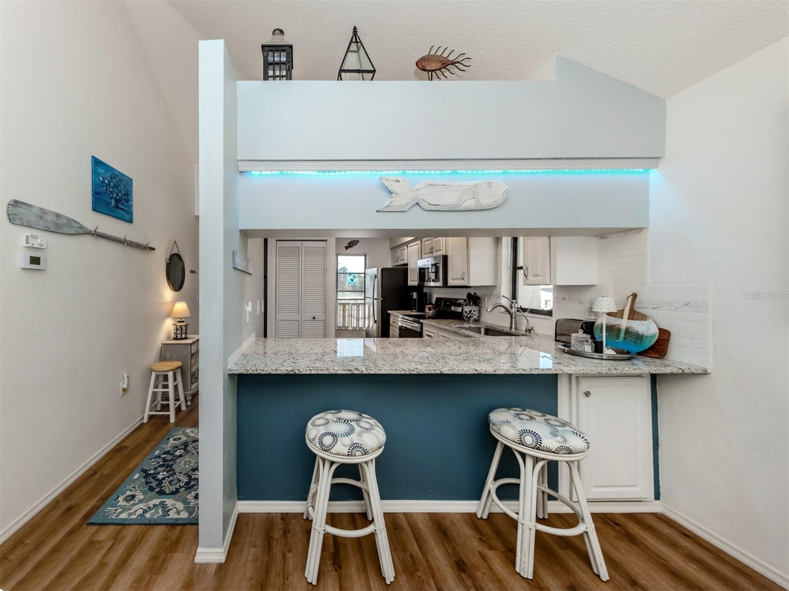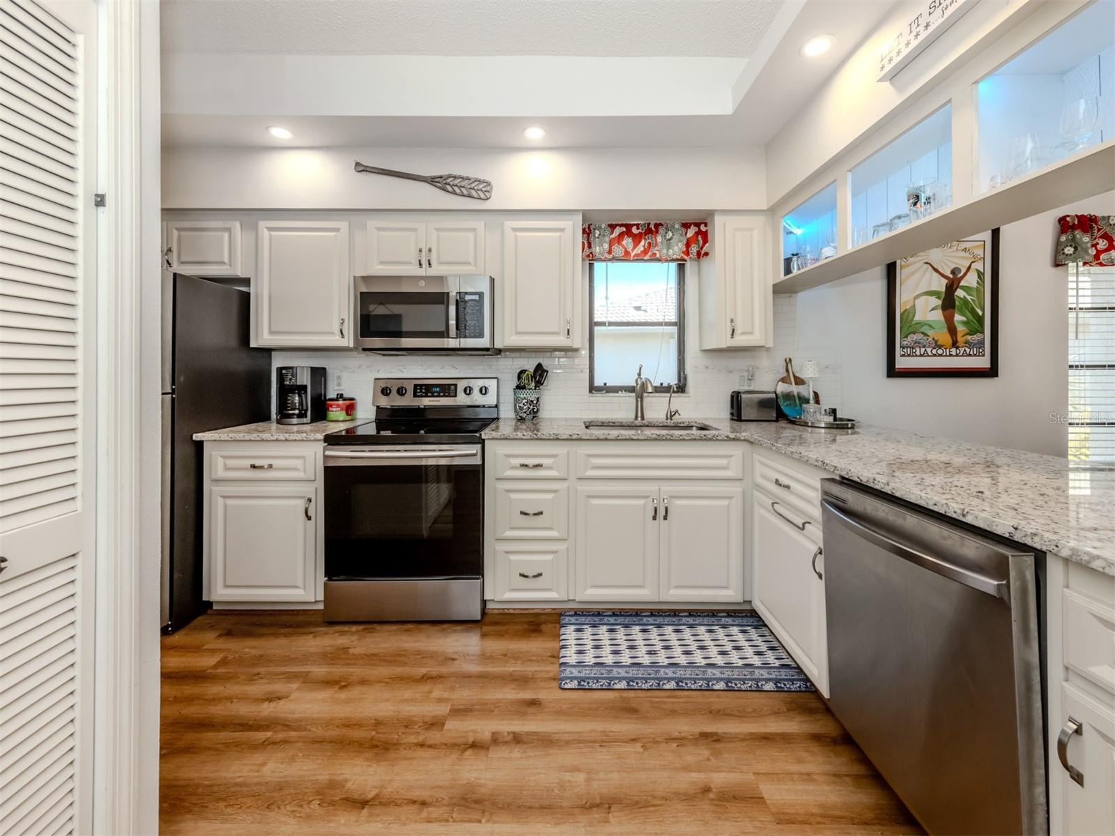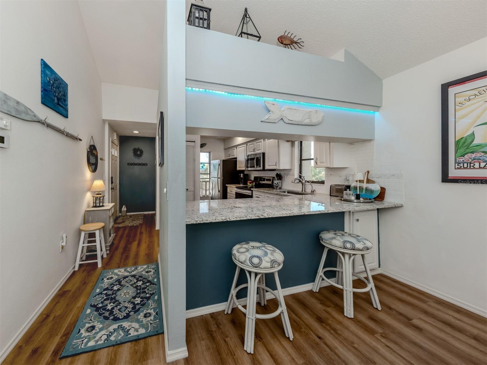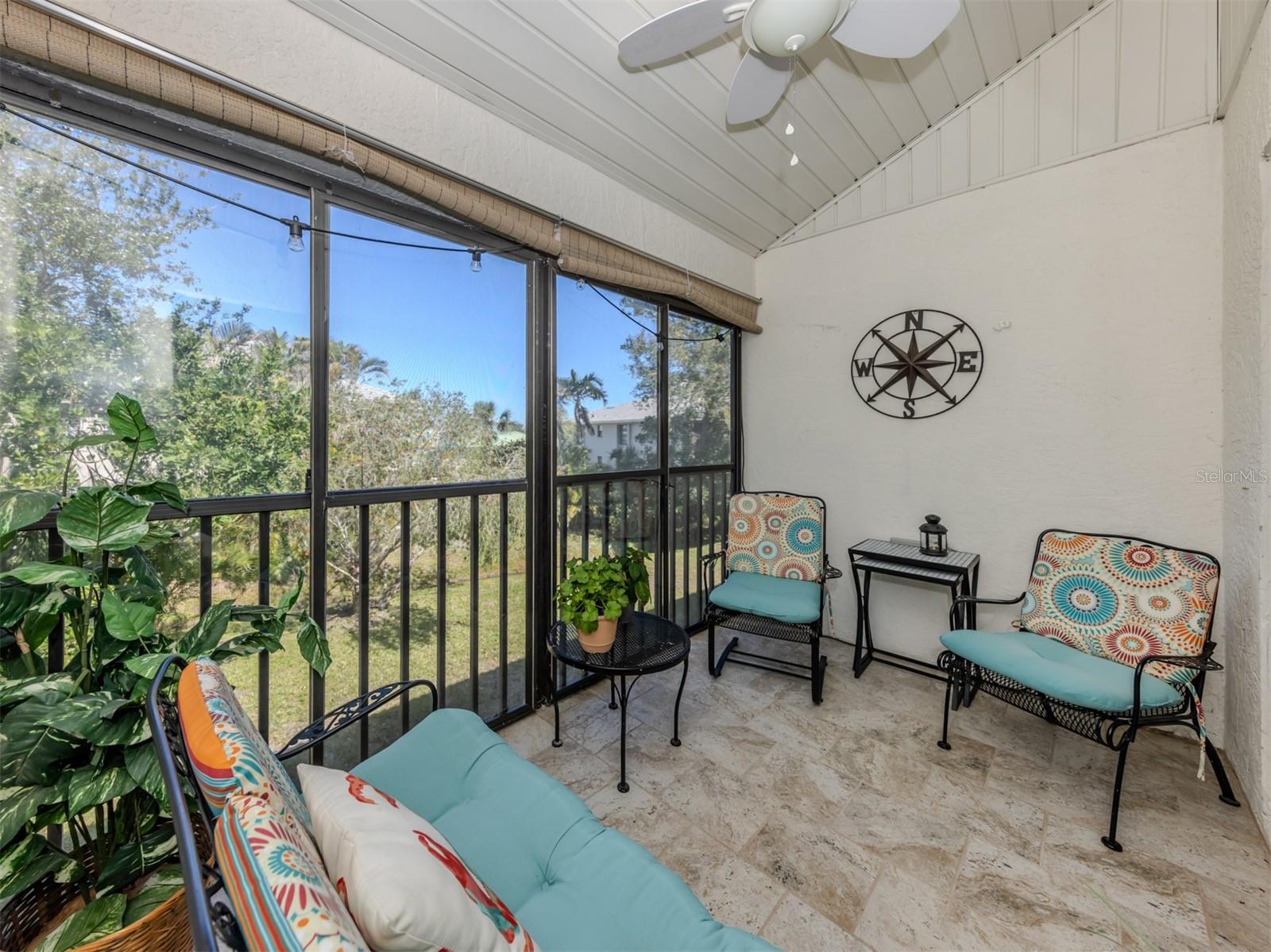 Move-in-ready, 2nd floor end unit with Private Entrance, attached covered carport and Vaulted ceilings. Enjoy a remodeled kitchen with granite countertops, pantry and newer appliances. The Primary suite features a brand new shower and closets. The Furnace and A/C are also new. This unit is located at Golf View community in beautiful Venice! This end unit provides ample natural light due to its many windows and cathedral ceilings, you will not find in any other unit. Unit 228 has been renovated top to bottom, offering LVP flooring, new carpets and along with ample storage closet AND there unit no above you. Imagine waking up to the tranquility of lush green trees and the gentle rustling of palm trees, right from the comfort of your home. Unit 228 offers your covered parking space and a locked shed to store all your beach and personal items. There is also available parking for a second car and guests. This turnkey furnished gem ensures you can move right in and start living your dream immediately. Just 4 miles to the Gulf and 375 yards to the Capri golf course, you'll find endless opportunities for relaxation and recreation, along with the historic downtown Venice, for restaurants and famous shops. The maintenance-free community with heated pool is ideal for enjoying a leisurely swim or catching up with friends and neighbors. Embrace the essence of Florida living as you unwind and soak up the glorious sunshine. Rest easy knowing this property has been meticulously maintained.