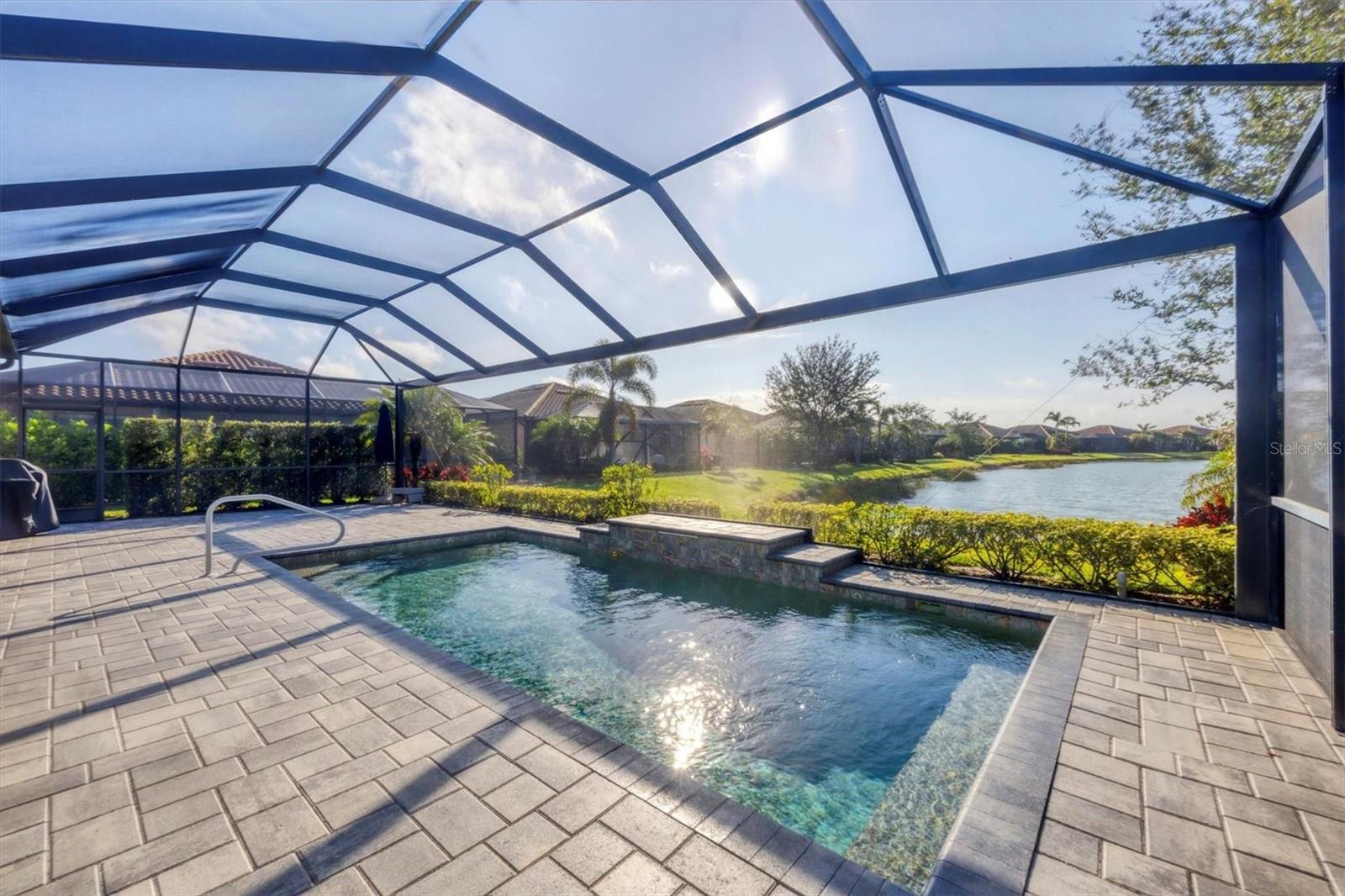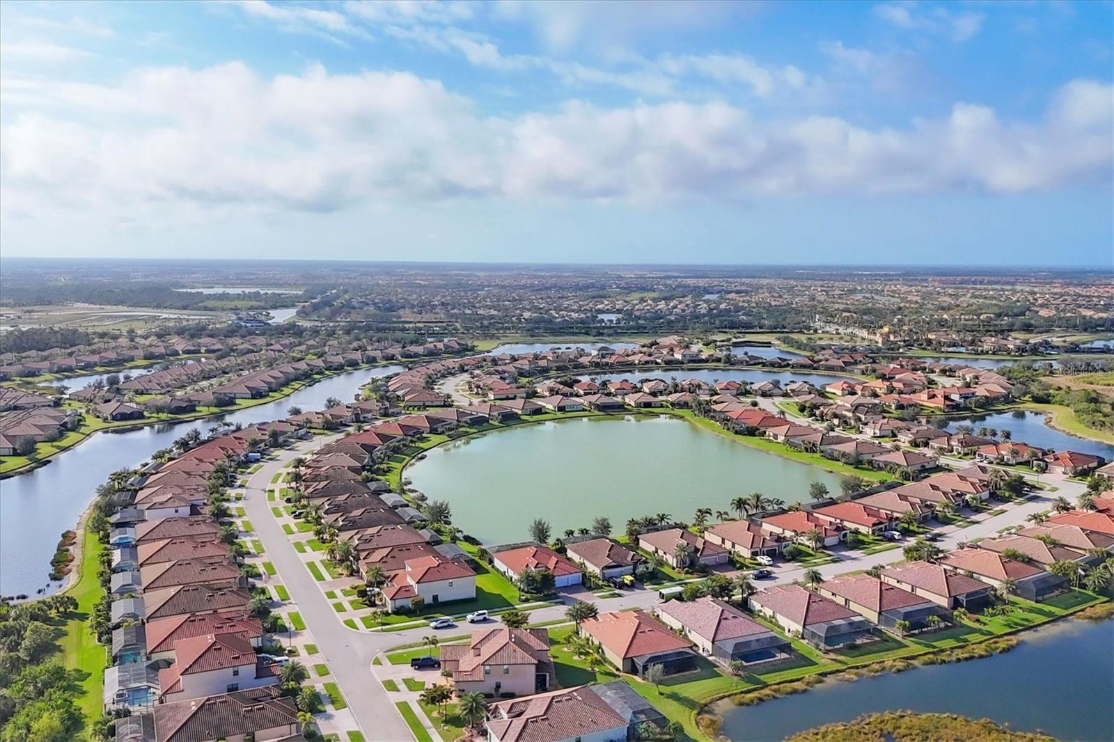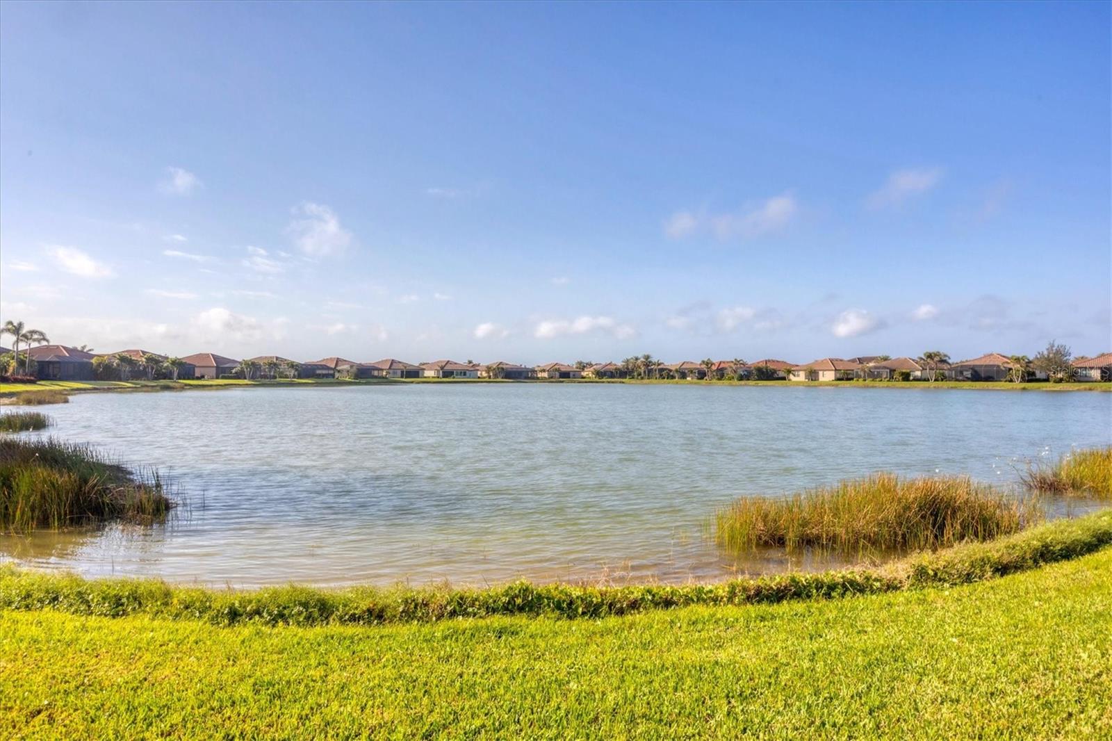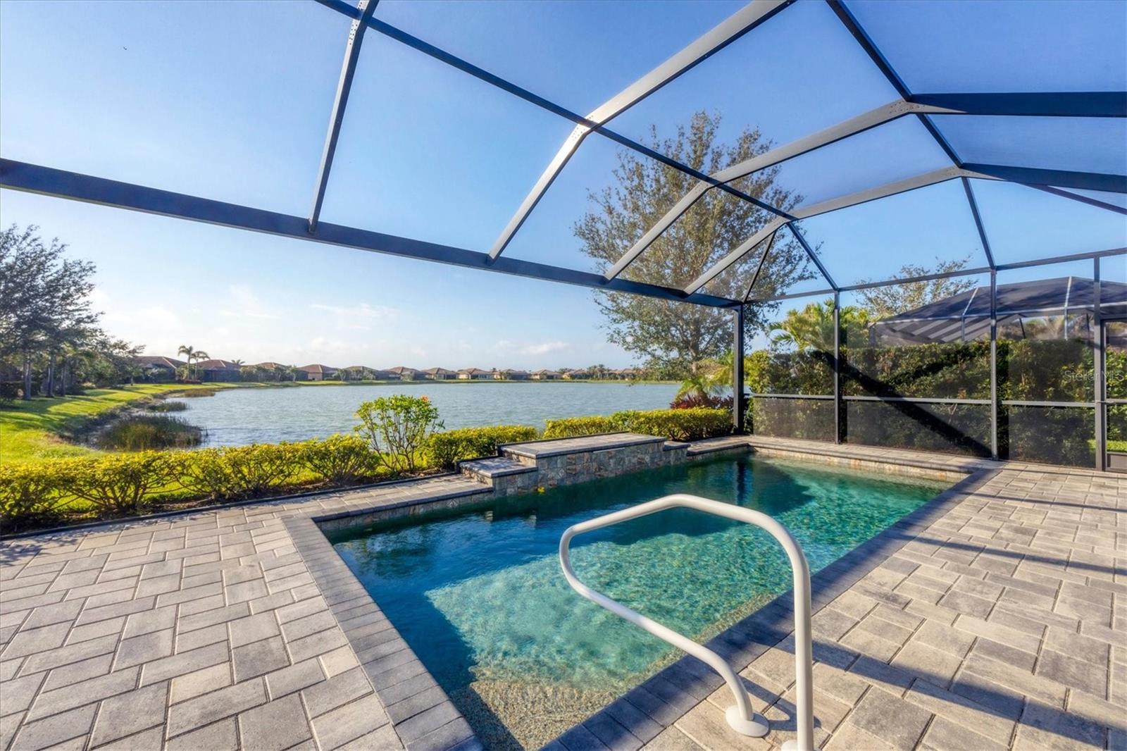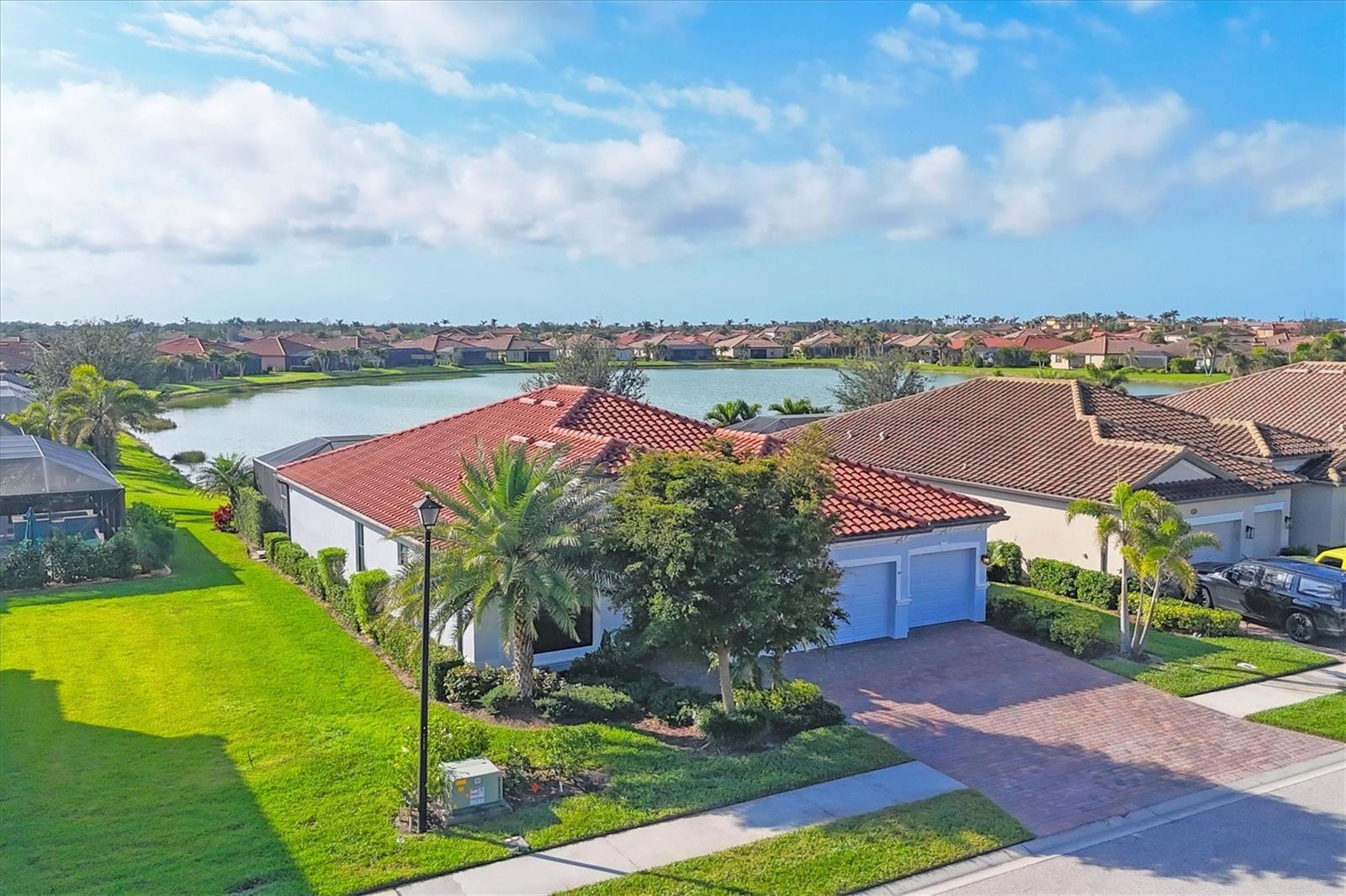 Stunning Princeton II floor plan with breathtaking lake views in Gran Paradiso! Step into luxury with this gorgeous home, in the sought-after Gran Paradiso community. This thoughtfully designed four-bedroom, two-bath home offers the ideal blend of elegance, privacy and functionality. From the moment you enter, mesmerizing long-lake views draw you in, framed by a wall of sliders that open to an expansive paver patio, heated pool and oversized lanai, an entertainer’s dream. The open-concept layout seamlessly connects the great room, formal dining area and gourmet kitchen, featuring a large breakfast bar, eat-in nook and mirrored walls to enhance stunning water views. The split-bedroom design ensures privacy for all such as spacious primary suite at rear of the home with serene lake views, an en-suite bath with dual sinks, garden tub and walk-in shower, two generous guest bedrooms at the front corner, sharing a well-appointed bath, and a fourth bedroom, privately tucked away, ideal for guests or a home office. This home is loaded with upgrades and extras, including built-in cabinets in the great room for style and functionality, on-demand hot water in the kitchen and guest bath, pullout kitchen shelves for convenience, new pool heater (2025) and water heater (2023), upgraded clear-view pool screen for unobstructed views, overhead storage in garage for added organization, recently painted interior and exterior, and integrated speakers in the great room and lanai for elevated entertaining. Resort-style living at Gran Paradiso so enjoy world-class amenities, including a grand clubhouse, resort-style pool, fitness center, tennis and pickleball courts, card room, library and more. Conveniently near Wellen Park, downtown Venice, top-rated restaurants, shopping and pristine gulf beaches, this is the ultimate Florida lifestyle. This exceptional home is a must-see! Schedule your showing today and make it yours.