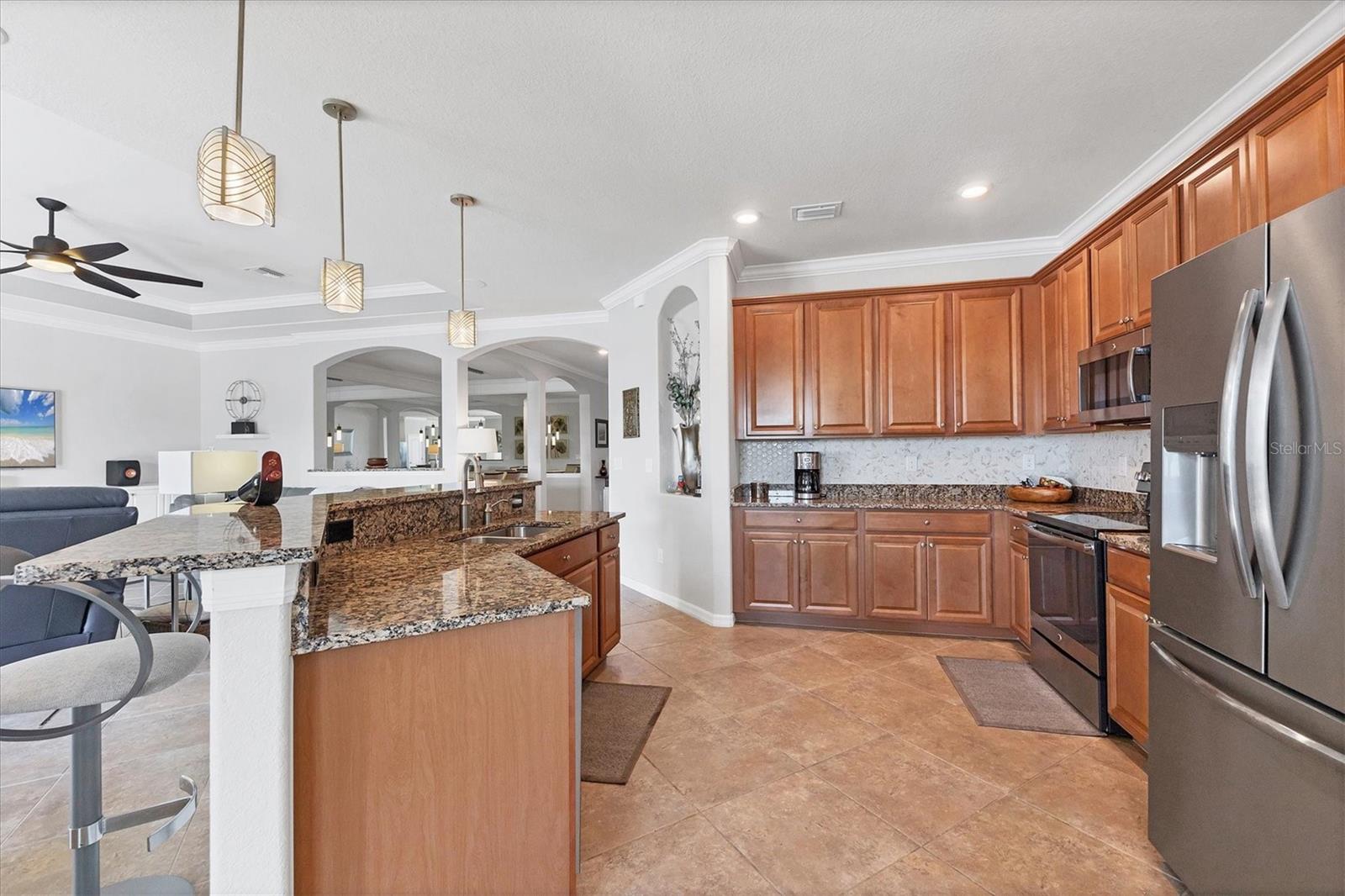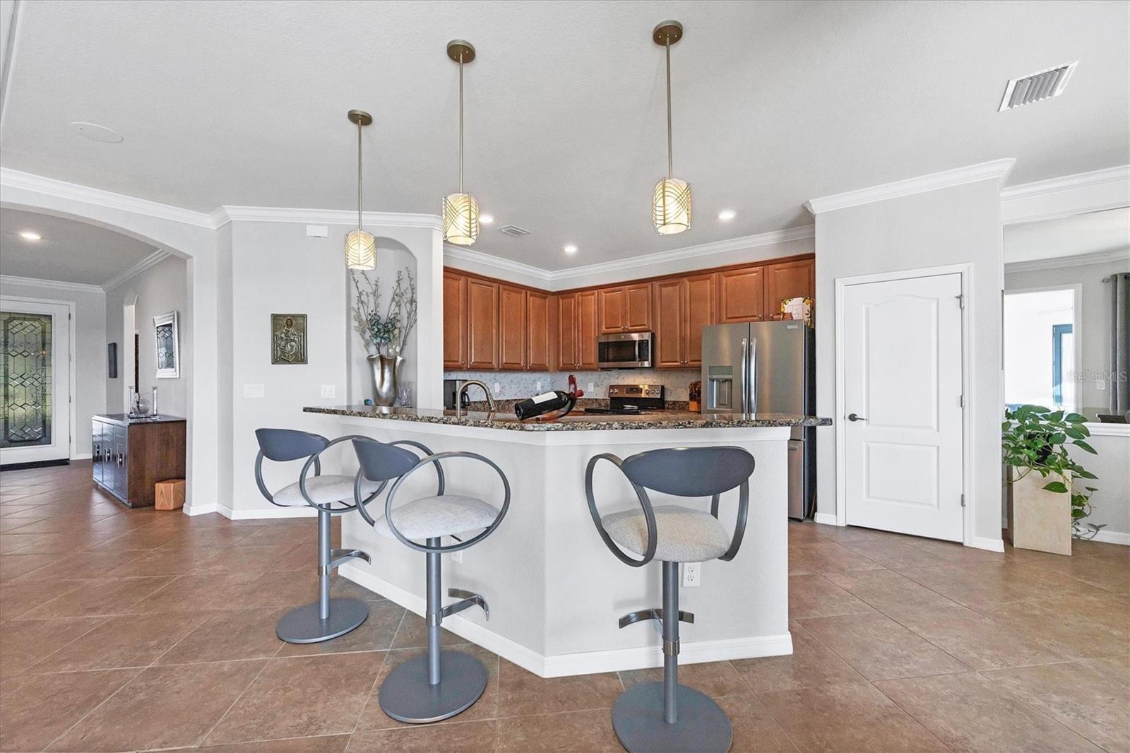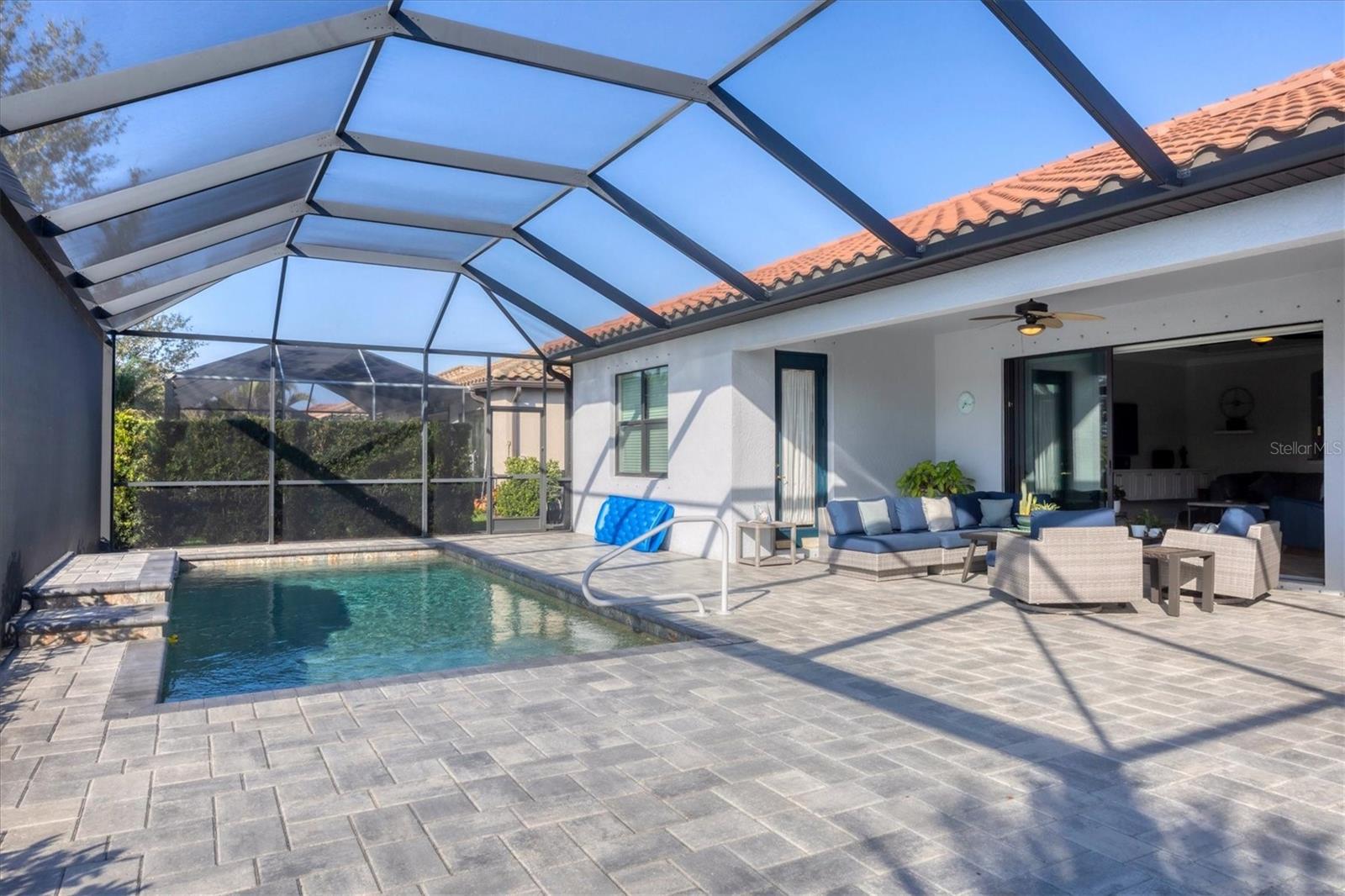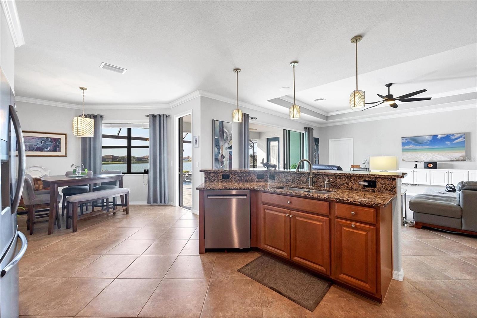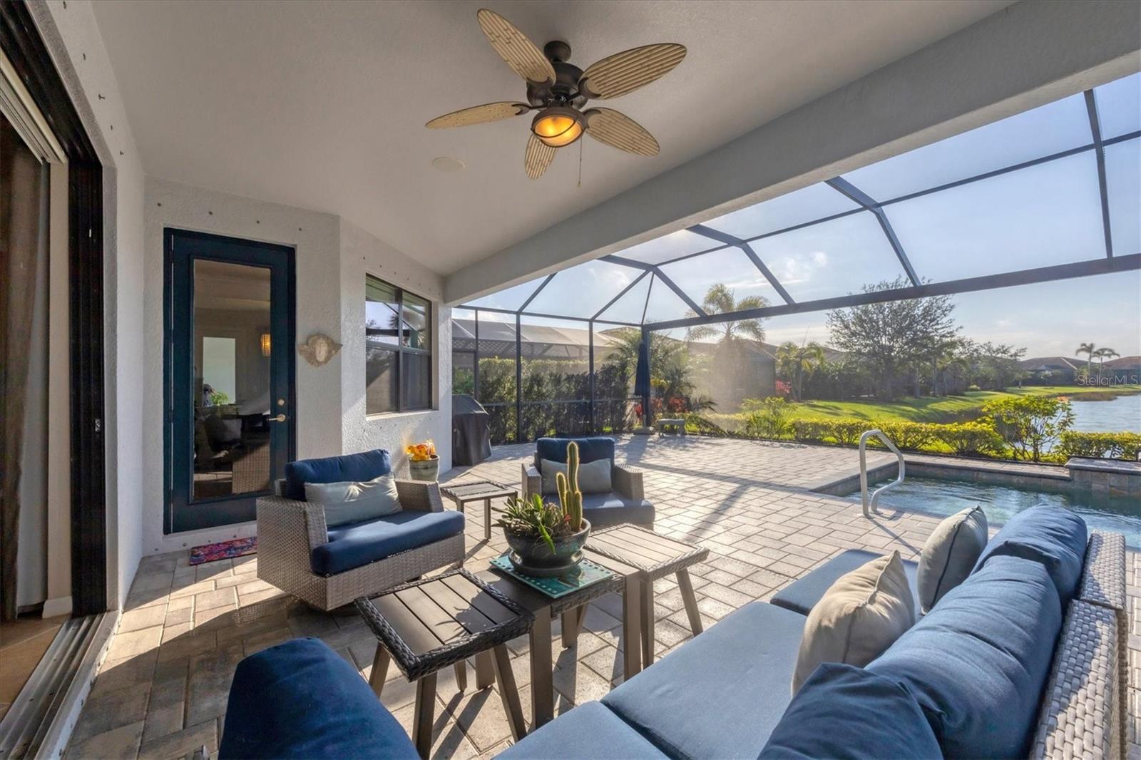 Stunning Princeton II floor plan with breathtaking lake views in Gran Paradiso! Step into luxury with this gorgeous home, in the sought-after Gran Paradiso community. This thoughtfully designed four-bedroom, two-bath home offers the ideal blend of elegance, privacy and functionality. From the moment you enter, mesmerizing long-lake views draw you in, framed by a wall of sliders that open to an expansive paver patio, heated pool and oversized lanai, an entertainer’s dream. The open-concept layout seamlessly connects the great room, formal dining area and gourmet kitchen, featuring a large breakfast bar, eat-in nook and mirrored walls to enhance stunning water views. The split-bedroom design ensures privacy for all such as spacious primary suite at rear of the home with serene lake views, an en-suite bath with dual sinks, garden tub and walk-in shower, two generous guest bedrooms at the front corner, sharing a well-appointed bath, and a fourth bedroom, privately tucked away, ideal for guests or a home office. This home is loaded with upgrades and extras, including built-in cabinets in the great room for style and functionality, on-demand hot water in the kitchen and guest bath, pullout kitchen shelves for convenience, new pool heater (2025) and water heater (2023), upgraded clear-view pool screen for unobstructed views, overhead storage in garage for added organization, recently painted interior and exterior, and integrated speakers in the great room and lanai for elevated entertaining. Resort-style living at Gran Paradiso so enjoy world-class amenities, including a grand clubhouse, resort-style pool, fitness center, tennis and pickleball courts, card room, library and more. Conveniently near Wellen Park, downtown Venice, top-rated restaurants, shopping and pristine gulf beaches, this is the ultimate Florida lifestyle. This exceptional home is a must-see! Schedule your showing today and make it yours.