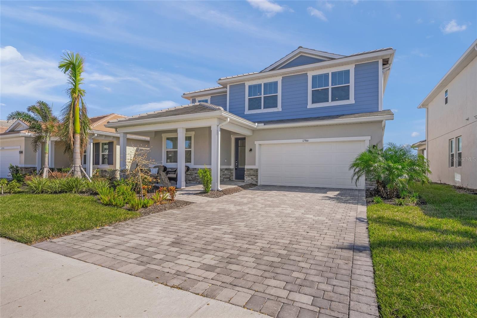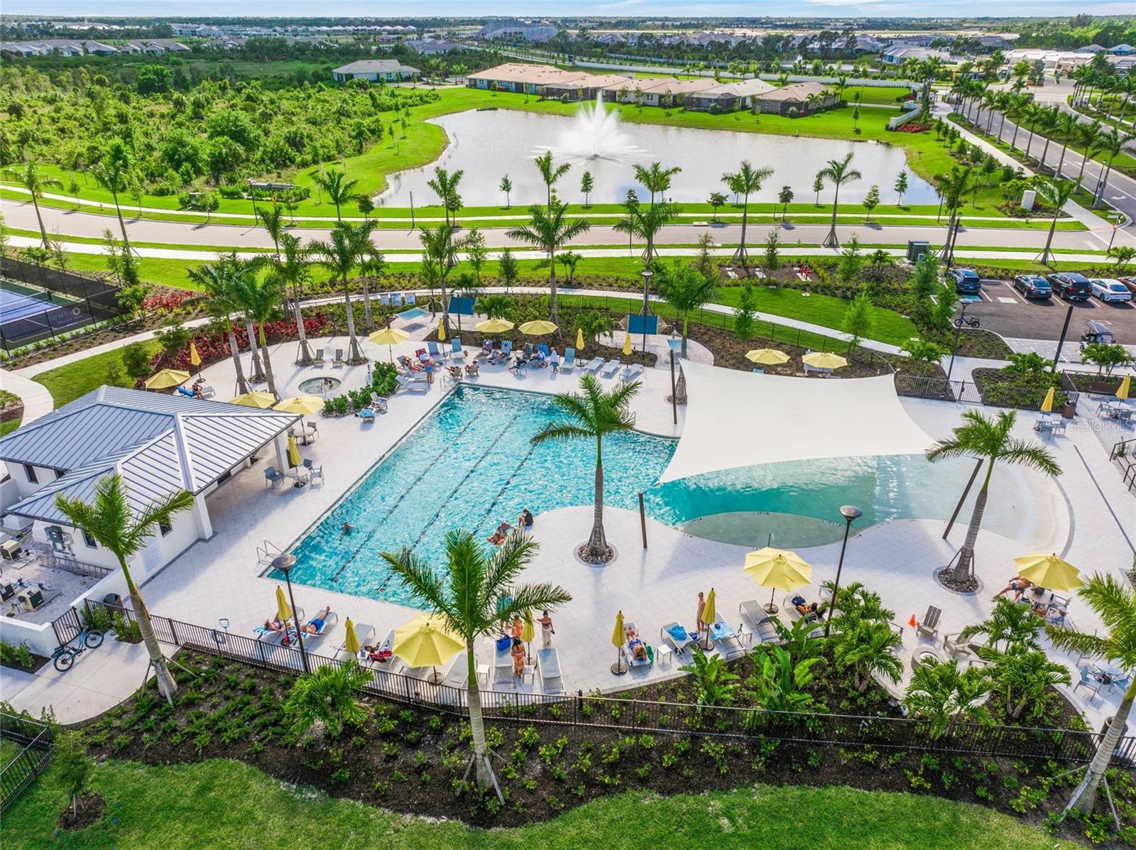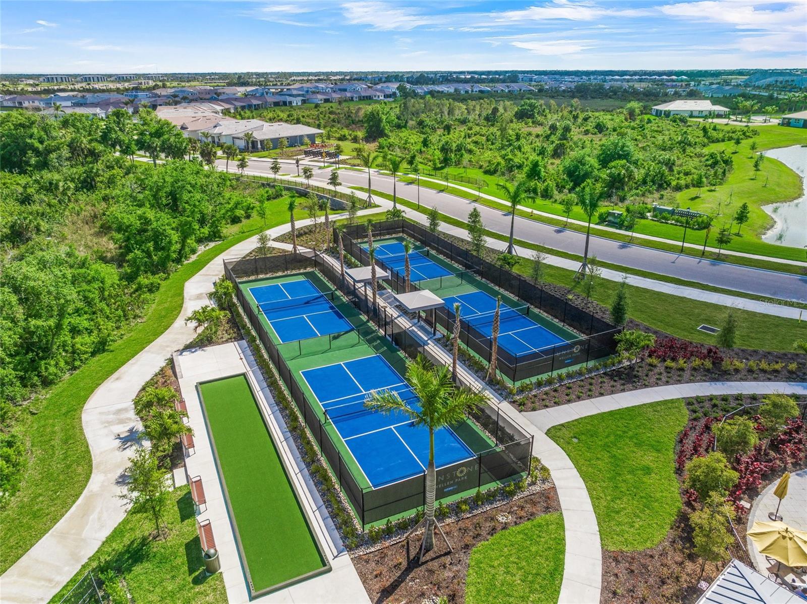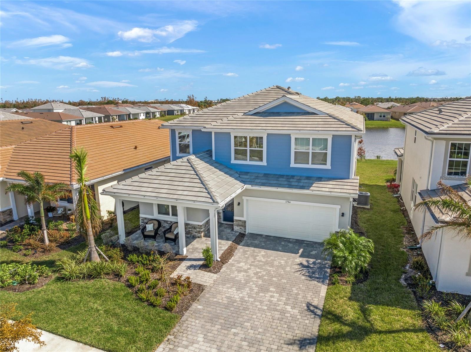Experience the remarkable intelligent design and exquisite beauty of this stunning five-bedroom, three-bath with a den and bonus room residence in the desirable maintenance-free landscaping community of Sunstone Village in Wellen Park. Boasting Mattamy Home' Sequoia floor plan, this home exudes allure from the inviting curb appeal with a charming front porch, intricate architectural details, lush landscaping, and paver drive and porch. This home features numerous high-end upgrades that enhance its timeless character. Step into a space of luxury and sophistication with clean lines, high ceilings and beautiful tile flooring throughout the entire home. The gourmet kitchen is a standout feature with trending cabinetry, a large center island, quartz countertops, stainless steel appliances, including a built-in induction cooktop and vented hood. The dining room offers picturesque views of the lanai, backyard and lake, while the great room seamlessly connects to the rear screened-in lanai for outdoor living at its finest. The main level includes a bedroom with an adjacent bath and a spacious den and office. Upstairs, the owner's suite is generously sized with a walk-in closet fit for a fashion enthusiast. The en-suite bath features a walk-in shower and dual sinks with wide vanities. Additionally, there are four more bedrooms, a bath and a convenient laundry room. These bedrooms surround a 13-by-14-foot bonus/entertainment room, ideal for family gatherings. Sunstone Village provides a luxurious lifestyle with its gated community offering a variety of activities such as pickleball courts, bocce, a resort-style community pool with lap lanes, hot tub, pavilion, fire pit, clubhouse, gym, yoga and fitness room, dog park and a lifestyle director. Conveniently near world-class beaches, downtown Venice, shopping, restaurants and top-rated schools, this community offers quality medical services in proximity. Embrace the idea of moving into a home that surpasses new construction with its exceptional features and prime location.