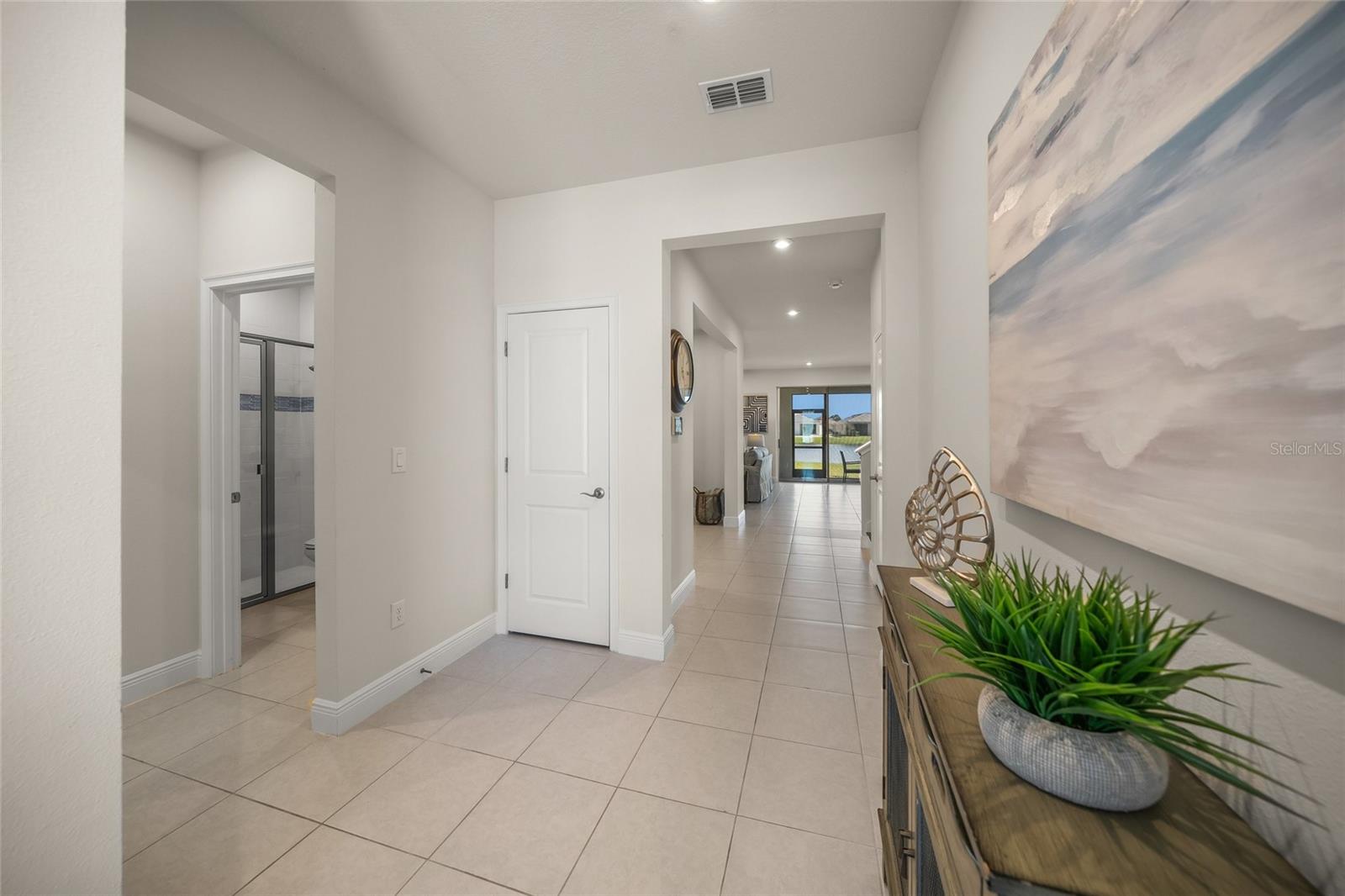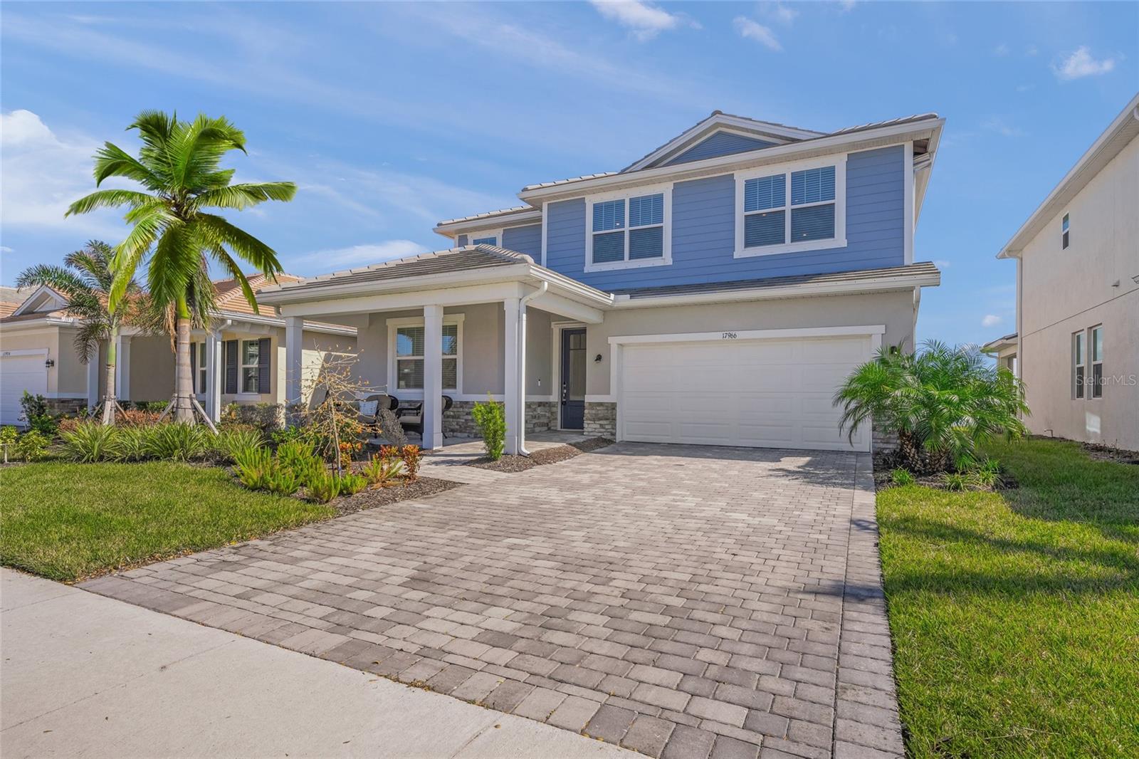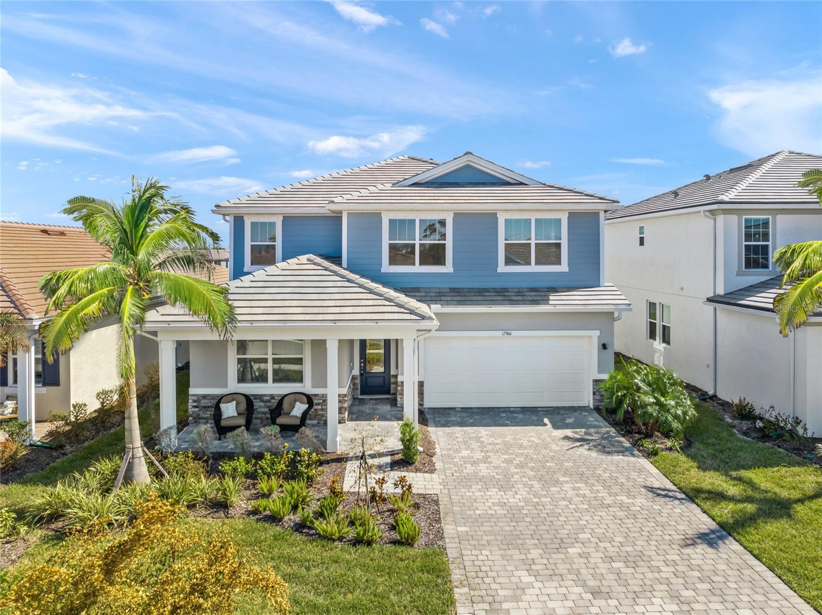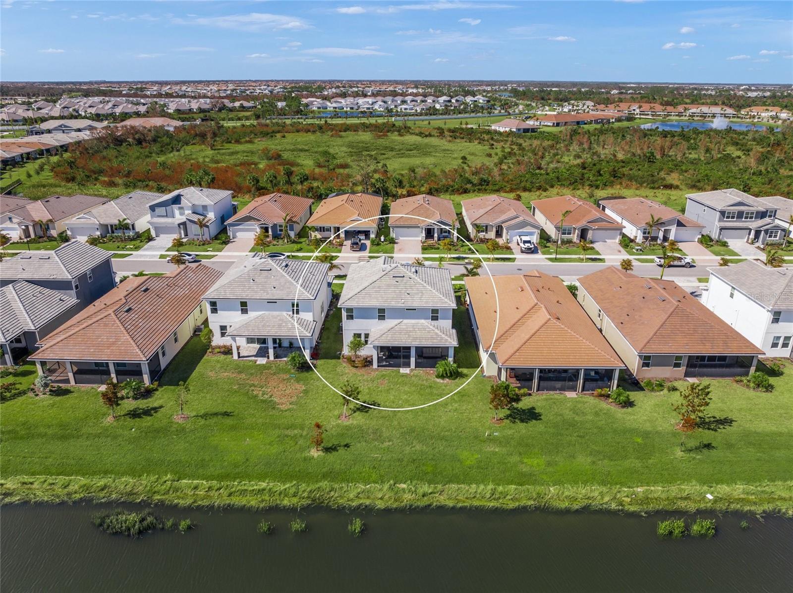 Experience the remarkable intelligent design and exquisite beauty of this stunning five-bedroom, three-bath with a den and bonus room residence in the desirable maintenance-free landscaping community of Sunstone Village in Wellen Park. Boasting Mattamy Home' Sequoia floor plan, this home exudes allure from the inviting curb appeal with a charming front porch, intricate architectural details, lush landscaping, and paver drive and porch. This home features numerous high-end upgrades that enhance its timeless character. Step into a space of luxury and sophistication with clean lines, high ceilings and beautiful tile flooring throughout the entire home. The gourmet kitchen is a standout feature with trending cabinetry, a large center island, quartz countertops, stainless steel appliances, including a built-in induction cooktop and vented hood. The dining room offers picturesque views of the lanai, backyard and lake, while the great room seamlessly connects to the rear screened-in lanai for outdoor living at its finest. The main level includes a bedroom with an adjacent bath and a spacious den and office. Upstairs, the owner's suite is generously sized with a walk-in closet fit for a fashion enthusiast. The en-suite bath features a walk-in shower and dual sinks with wide vanities. Additionally, there are four more bedrooms, a bath and a convenient laundry room. These bedrooms surround a 13-by-14-foot bonus/entertainment room, ideal for family gatherings. Sunstone Village provides a luxurious lifestyle with its gated community offering a variety of activities such as pickleball courts, bocce, a resort-style community pool with lap lanes, hot tub, pavilion, fire pit, clubhouse, gym, yoga and fitness room, dog park and a lifestyle director. Conveniently near world-class beaches, downtown Venice, shopping, restaurants and top-rated schools, this community offers quality medical services in proximity. Embrace the idea of moving into a home that surpasses new construction with its exceptional features and prime location.