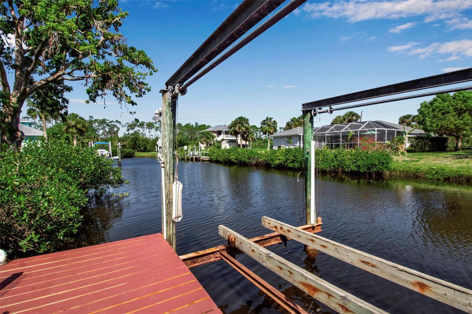 Step into your slice of WATERFRONT PARADISE!!! This beautifully updated 2 bedroom, 2 bath home with a 2 car garage is perfectly situated along the serene Myakka River, offering direct access to the Gulf of America. One of the few properties in the area featuring a 30,000 lb BOAT LIFT and private DOCK, which was recently re-decked, making it the ultimate haven for boating and fishing enthusiasts who want to enjoy the Florida lifestyle year round. Step inside to an open and inviting living room with soaring vaulted ceilings, flowing seamlessly into the dining area featuring a CUSTOM built-in bench with storage. The kitchen is conveniently located just off the dining room and offers stainless steel appliances, ample cabinet space, and a brand NEW dual stainless steel sink and faucet. The master suite is thoughtfully set apart for privacy, with its own ensuite bathroom and a walkout to a PRIVATE screened in patio overlooking peaceful river views. A bright and airy Florida room with IMPACT resistant glass windows provides the perfect setting to unwind and enjoy stunning sunsets over the water. An additional 600 sq ft family/media room has been added, which could potentially be used as a third bedroom/mother-in-law suite, features a mini split A/C system for comfort year round, plus an adjoining utility room for added storage. The second bathroom has been fully UPDATED with NEW flooring, a stylish vanity, and a charming clawfoot tub. The home also features a spacious laundry room with upper and lower cabinets and a utility sink for added convenience. Recent upgrades include a NEW ROOF, a whole house KINETICO water softener system with a 300 gallon tank, a plug-in 8750 watt Predator GENERATOR, fresh paint, hurricane shutters, and a backyard filled with fruit trees. Best of all, this peaceful neighborhood has NO HOA fees and is bordered by Myakka State Forest, protecting it from overdevelopment and preserving the natural beauty that surrounds it. The home has weathered multiple hurricanes WITHOUT any water damage or flooding. Don’t miss this RARE opportunity to own a turnkey waterfront home in one of the most tranquil settings on Florida’s Gulf Coast.