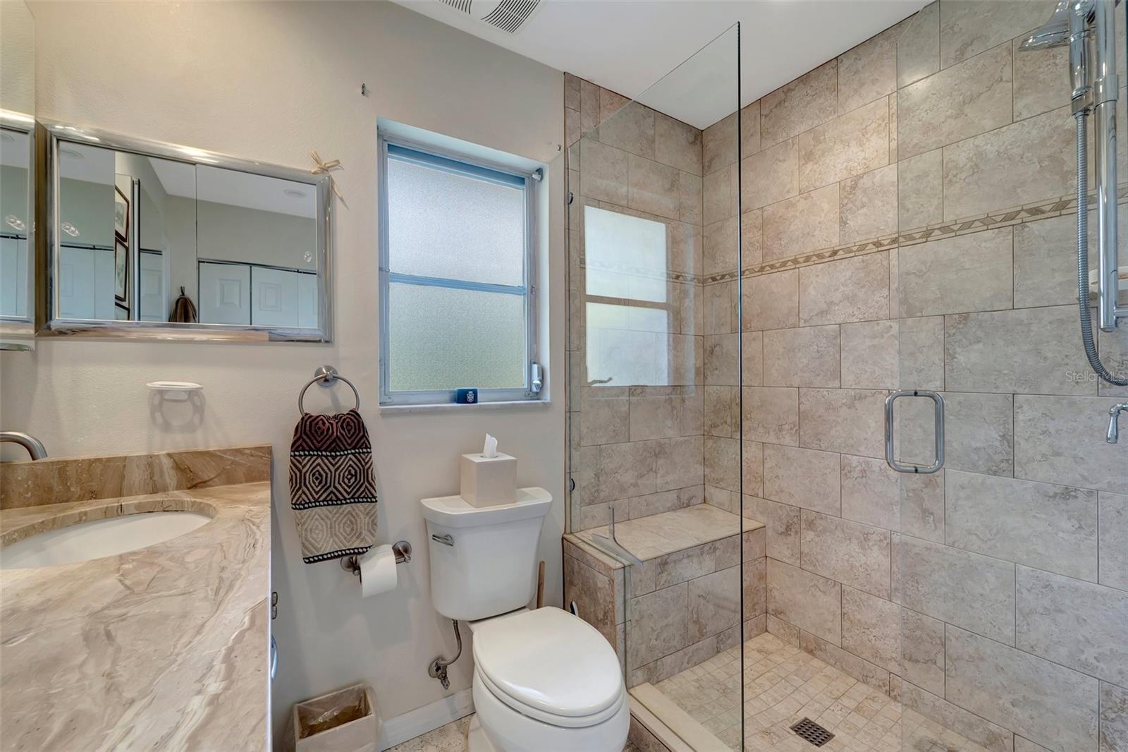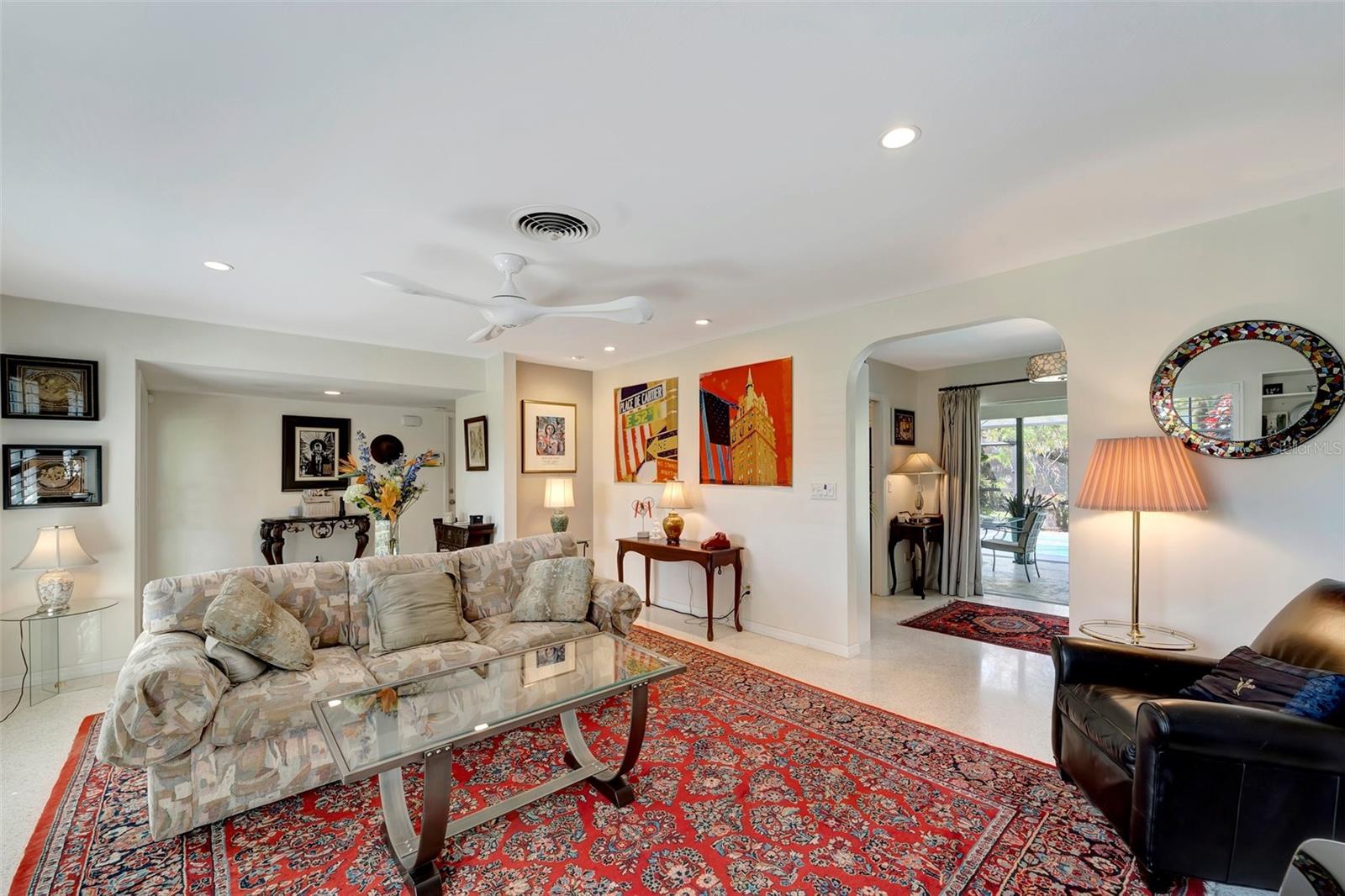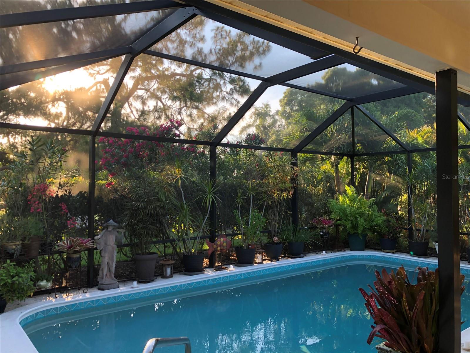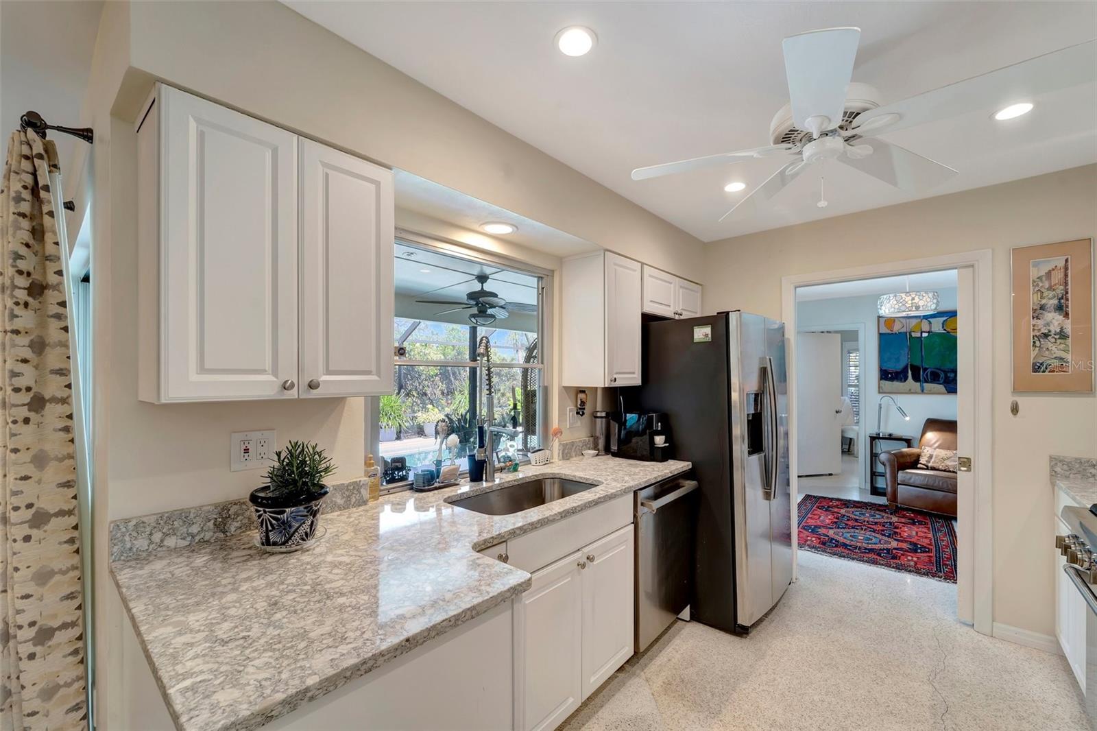 OVER $100,000 PRICE REDUCTION Live on beautiful Venice Island. This Pool Home has a rare 3-Car Garage! This 4-bed, 2-bath home is a blended design of Florida style with lush outdoor paradise. From the moment you arrive, the curb appeal is captivating, featuring meticulously manicured landscaping, a paver driveway, charming louvered window shutters, and elegant lighting. Vibrant plant beds filled with flowers and greenery enhance the garden-like ambiance, inviting you home. When Outdoor space and living is important this home checks all the boxes. Inside, the spacious living room with an arched passageway, plantation shutters, is a sleek mid-century modern feeling, with recessed lighting that highlights the natural brightness of the room. The heart of the home is the renovated kitchen, showcasing white shaker-style cabinets, Cambria quartz countertops, and high-end stainless steel appliances, including a Thermador 6-burner gas stove with range hood, GE refrigerator, dishwasher, & Silhouette dual-temperature wine cooler. Other features such as Shelf Genie shelving in both the cabinets & converted pantry closet make organization effortless. The kitchen flows seamlessly to the dining room, where extra cabinetry, countertop space, and a second wine fridge create the perfect spot for a beverage bar. The home’s desirable split floor plan offers privacy and comfort. The main bedroom is a retreat, featuring hurricane rated French doors that lead directly to the pool The en-suite bathroom has dual sinks, marble countertops, mirrored medicine cabinets, a walk-in shower with a built-in bench. The three additional bedrooms, are bright and airy, with built-in closets and plenty of natural light. One bedroom is currently used as office with sliding glass doors to the Pool. One bedrooms has been professionally fitted for an incredible closet but easily removed if desired. The 2nd bath has marble countertops, a walk-in shower, a linen closet, and serves as the pool bath. There is also an outdoor shower for the pool with both hot and cold settings. You will be drawn outside to the ultimate Florida lifestyle. The expansive pool area is surrounded by tropical landscaping, creating a private oasis for relaxation and entertainment. The pool deck and lanai offer plenty of room for seating, dining and relaxing.. The space includes window pass thru from the kitchen, covered lanai, an outdoor shower, and an updated pool cage. Dense hedges and 20-foot Areca trees provide natural privacy, making this backyard a true retreat. For garden enthusiasts, the backyard is a dream, featuring beautiful plant beds with native flowering plants, grasses, and trees. Discover the hidden sitting areas amongst the foliage for a true tranquil relaxation get away. Additional highlights of this home include a 12x10 Tuff Shed with windows and shelving, a recently added interior bonus room (in addition to the third garage bay), terrazzo flooring throughout, and with these recent updates: a NEW ROOF (Sept. 2024), 2022 HVAC, 2022 Kohler 20 kW generator with a 500-gallon LP tank, a 2021 well and pump, NEW pool pump and filter (2024), and updated PVC plumbing for both water and sewer lines. Located less than 1 mile from Venice Beach and Historic Downtown Venice, this home is in close proximity to shops, restaurants, theaters, parks, golf courses, the Legacy Trail, and more, offering the ideal Florida lifestyle. Don’t miss the opportunity to make this your dream home!