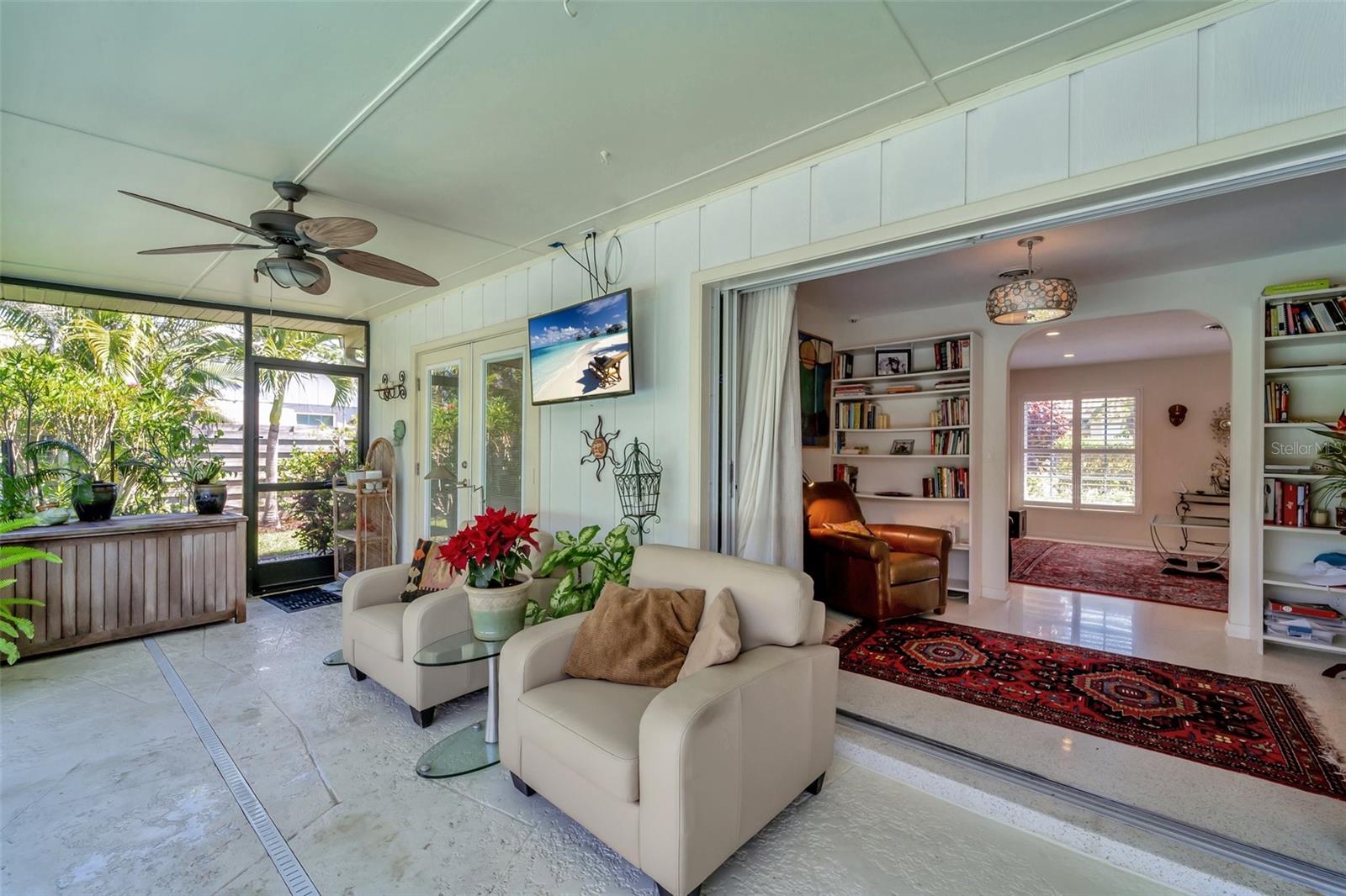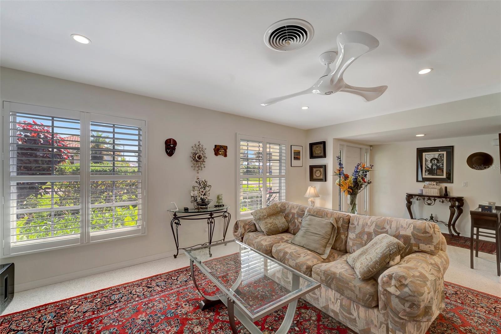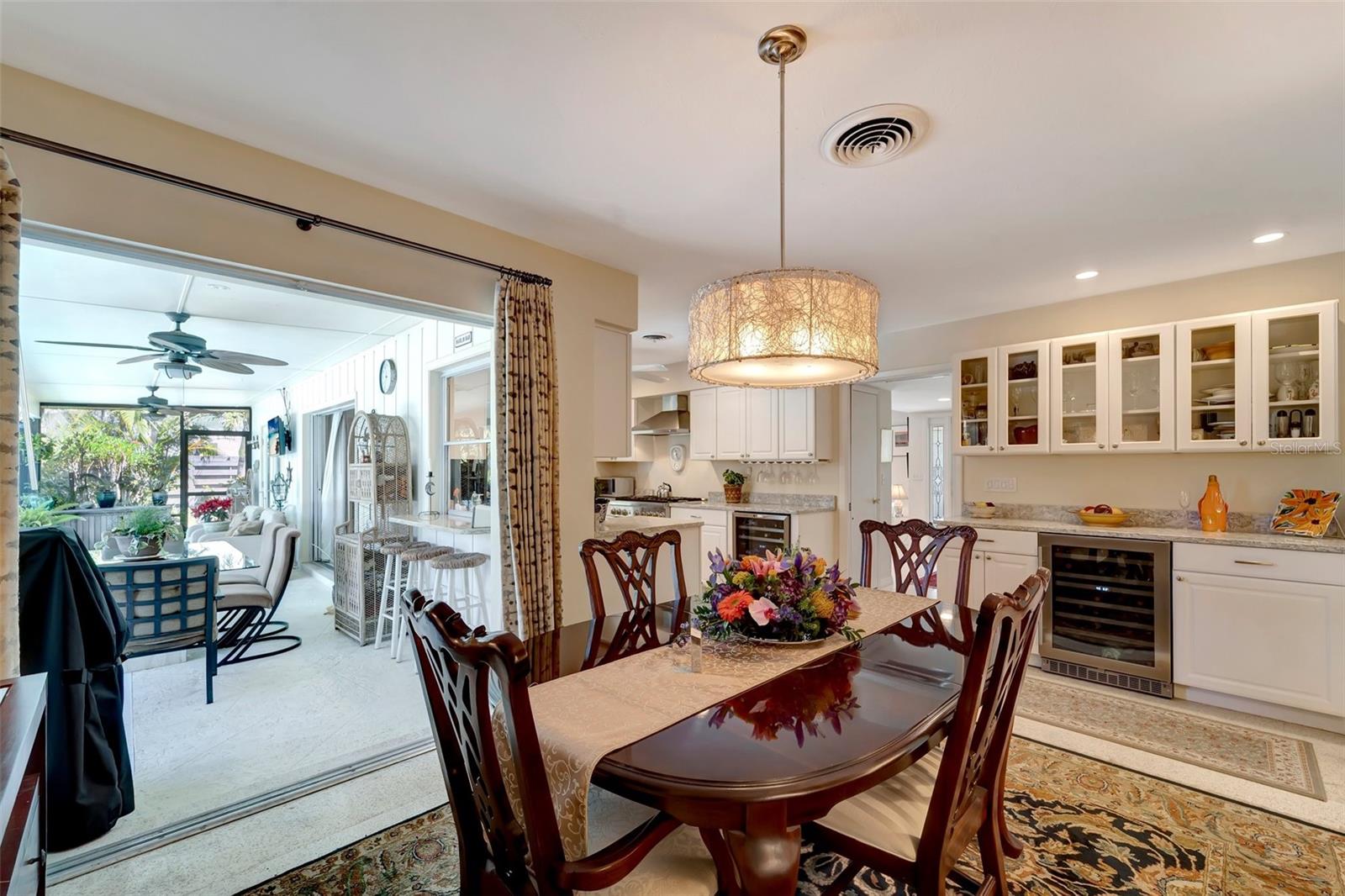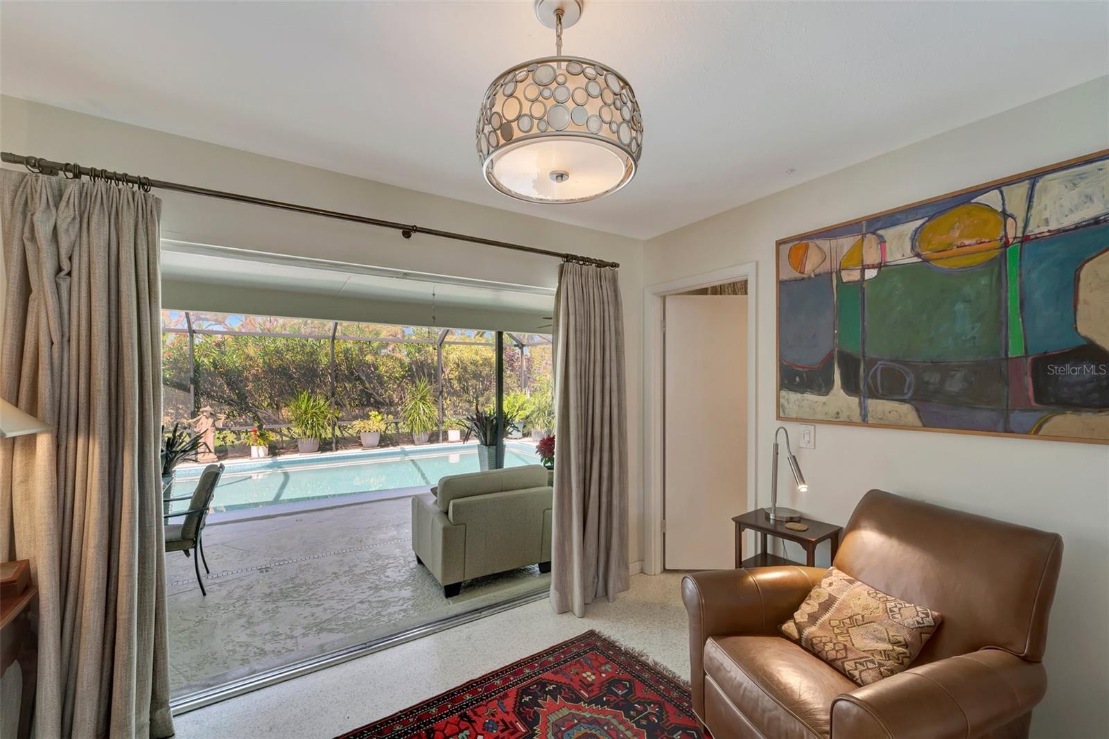 OVER $100,000 PRICE REDUCTION Live on beautiful Venice Island. This Pool Home has a rare 3-Car Garage! This 4-bed, 2-bath home is a blended design of Florida style with lush outdoor paradise. From the moment you arrive, the curb appeal is captivating, featuring meticulously manicured landscaping, a paver driveway, charming louvered window shutters, and elegant lighting. Vibrant plant beds filled with flowers and greenery enhance the garden-like ambiance, inviting you home. When Outdoor space and living is important this home checks all the boxes. Inside, the spacious living room with an arched passageway, plantation shutters, is a sleek mid-century modern feeling, with recessed lighting that highlights the natural brightness of the room. The heart of the home is the renovated kitchen, showcasing white shaker-style cabinets, Cambria quartz countertops, and high-end stainless steel appliances, including a Thermador 6-burner gas stove with range hood, GE refrigerator, dishwasher, & Silhouette dual-temperature wine cooler. Other features such as Shelf Genie shelving in both the cabinets & converted pantry closet make organization effortless. The kitchen flows seamlessly to the dining room, where extra cabinetry, countertop space, and a second wine fridge create the perfect spot for a beverage bar. The home’s desirable split floor plan offers privacy and comfort. The main bedroom is a retreat, featuring hurricane rated French doors that lead directly to the pool The en-suite bathroom has dual sinks, marble countertops, mirrored medicine cabinets, a walk-in shower with a built-in bench. The three additional bedrooms, are bright and airy, with built-in closets and plenty of natural light. One bedroom is currently used as office with sliding glass doors to the Pool. One bedrooms has been professionally fitted for an incredible closet but easily removed if desired. The 2nd bath has marble countertops, a walk-in shower, a linen closet, and serves as the pool bath. There is also an outdoor shower for the pool with both hot and cold settings. You will be drawn outside to the ultimate Florida lifestyle. The expansive pool area is surrounded by tropical landscaping, creating a private oasis for relaxation and entertainment. The pool deck and lanai offer plenty of room for seating, dining and relaxing.. The space includes window pass thru from the kitchen, covered lanai, an outdoor shower, and an updated pool cage. Dense hedges and 20-foot Areca trees provide natural privacy, making this backyard a true retreat. For garden enthusiasts, the backyard is a dream, featuring beautiful plant beds with native flowering plants, grasses, and trees. Discover the hidden sitting areas amongst the foliage for a true tranquil relaxation get away. Additional highlights of this home include a 12x10 Tuff Shed with windows and shelving, a recently added interior bonus room (in addition to the third garage bay), terrazzo flooring throughout, and with these recent updates: a NEW ROOF (Sept. 2024), 2022 HVAC, 2022 Kohler 20 kW generator with a 500-gallon LP tank, a 2021 well and pump, NEW pool pump and filter (2024), and updated PVC plumbing for both water and sewer lines. Located less than 1 mile from Venice Beach and Historic Downtown Venice, this home is in close proximity to shops, restaurants, theaters, parks, golf courses, the Legacy Trail, and more, offering the ideal Florida lifestyle. Don’t miss the opportunity to make this your dream home!