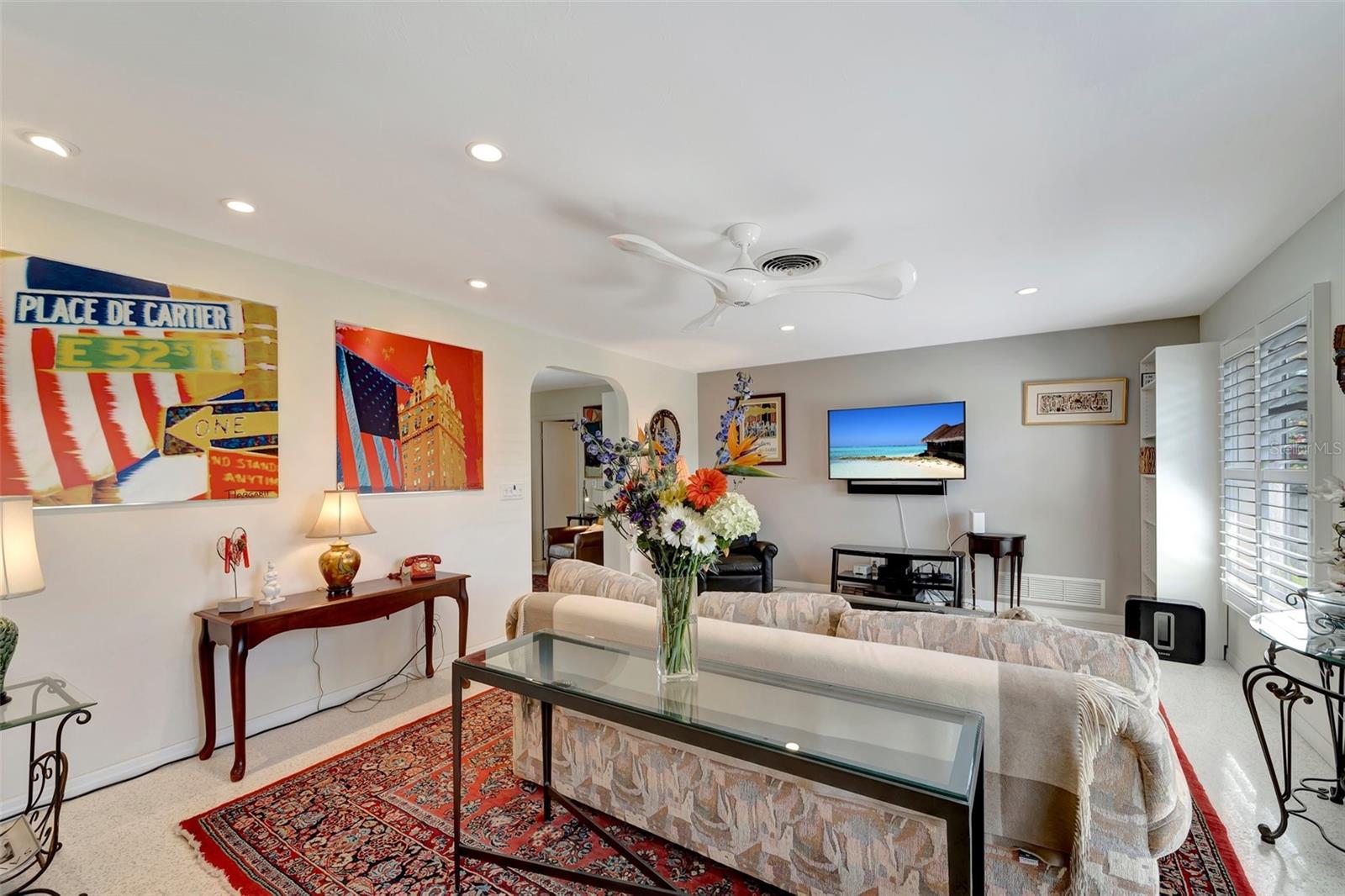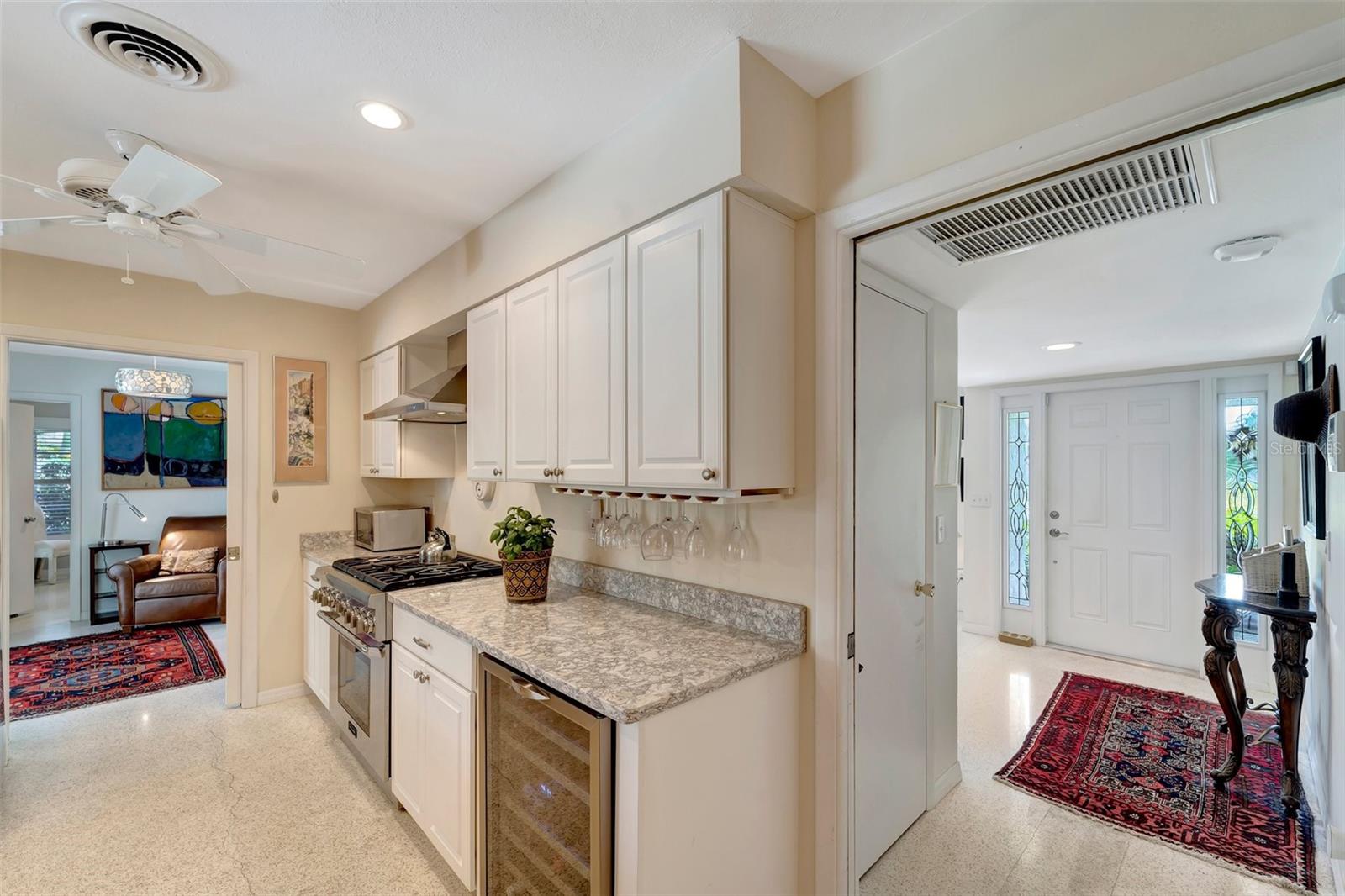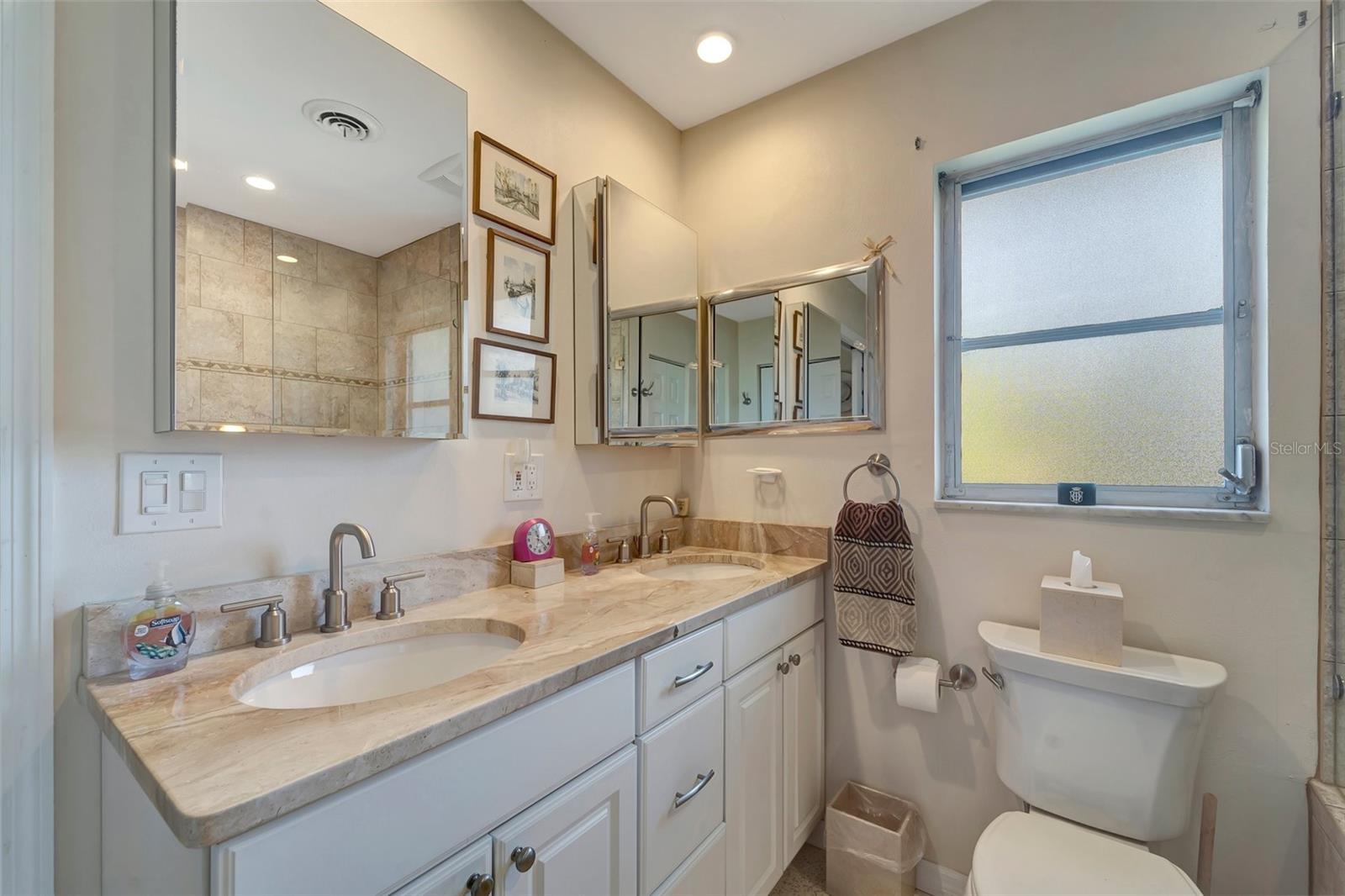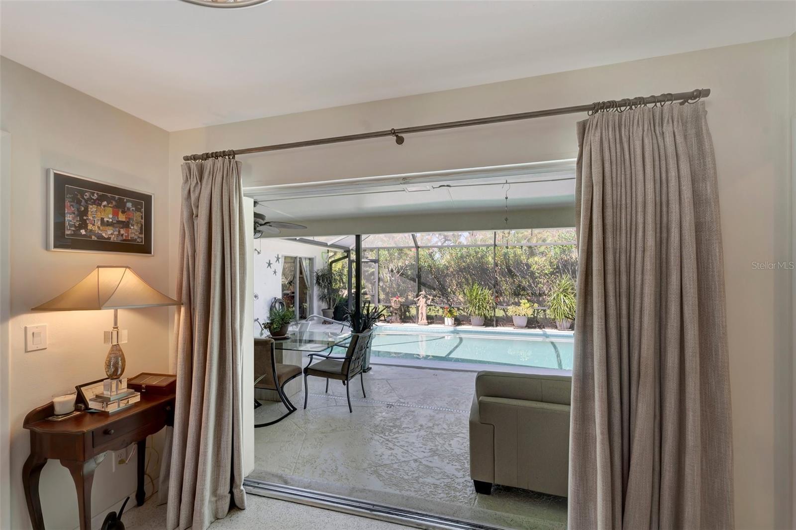OVER $100,000 PRICE REDUCTION Live on beautiful Venice Island. This Pool Home has a rare 3-Car Garage! This 4-bed, 2-bath home is a blended design of Florida style with lush outdoor paradise. From the moment you arrive, the curb appeal is captivating, featuring meticulously manicured landscaping, a paver driveway, charming louvered window shutters, and elegant lighting. Vibrant plant beds filled with flowers and greenery enhance the garden-like ambiance, inviting you home. When Outdoor space and living is important this home checks all the boxes. Inside, the spacious living room with an arched passageway, plantation shutters, is a sleek mid-century modern feeling, with recessed lighting that highlights the natural brightness of the room. The heart of the home is the renovated kitchen, showcasing white shaker-style cabinets, Cambria quartz countertops, and high-end stainless steel appliances, including a Thermador 6-burner gas stove with range hood, GE refrigerator, dishwasher, & Silhouette dual-temperature wine cooler. Other features such as Shelf Genie shelving in both the cabinets & converted pantry closet make organization effortless. The kitchen flows seamlessly to the dining room, where extra cabinetry, countertop space, and a second wine fridge create the perfect spot for a beverage bar. The home’s desirable split floor plan offers privacy and comfort. The main bedroom is a retreat, featuring hurricane rated French doors that lead directly to the pool The en-suite bathroom has dual sinks, marble countertops, mirrored medicine cabinets, a walk-in shower with a built-in bench. The three additional bedrooms, are bright and airy, with built-in closets and plenty of natural light. One bedroom is currently used as office with sliding glass doors to the Pool. One bedrooms has been professionally fitted for an incredible closet but easily removed if desired. The 2nd bath has marble countertops, a walk-in shower, a linen closet, and serves as the pool bath. There is also an outdoor shower for the pool with both hot and cold settings. You will be drawn outside to the ultimate Florida lifestyle. The expansive pool area is surrounded by tropical landscaping, creating a private oasis for relaxation and entertainment. The pool deck and lanai offer plenty of room for seating, dining and relaxing.. The space includes window pass thru from the kitchen, covered lanai, an outdoor shower, and an updated pool cage. Dense hedges and 20-foot Areca trees provide natural privacy, making this backyard a true retreat. For garden enthusiasts, the backyard is a dream, featuring beautiful plant beds with native flowering plants, grasses, and trees. Discover the hidden sitting areas amongst the foliage for a true tranquil relaxation get away. Additional highlights of this home include a 12x10 Tuff Shed with windows and shelving, a recently added interior bonus room (in addition to the third garage bay), terrazzo flooring throughout, and with these recent updates: a NEW ROOF (Sept. 2024), 2022 HVAC, 2022 Kohler 20 kW generator with a 500-gallon LP tank, a 2021 well and pump, NEW pool pump and filter (2024), and updated PVC plumbing for both water and sewer lines. Located less than 1 mile from Venice Beach and Historic Downtown Venice, this home is in close proximity to shops, restaurants, theaters, parks, golf courses, the Legacy Trail, and more, offering the ideal Florida lifestyle. Don’t miss the opportunity to make this your dream home!
