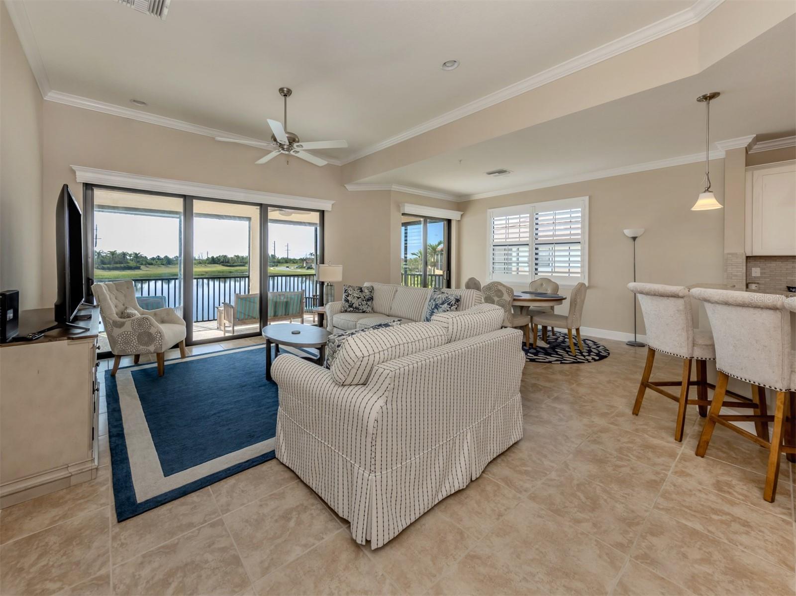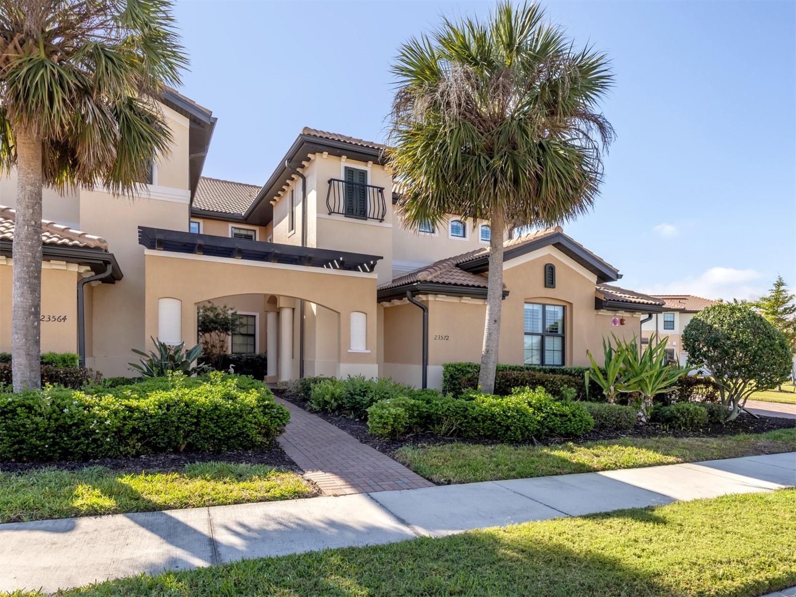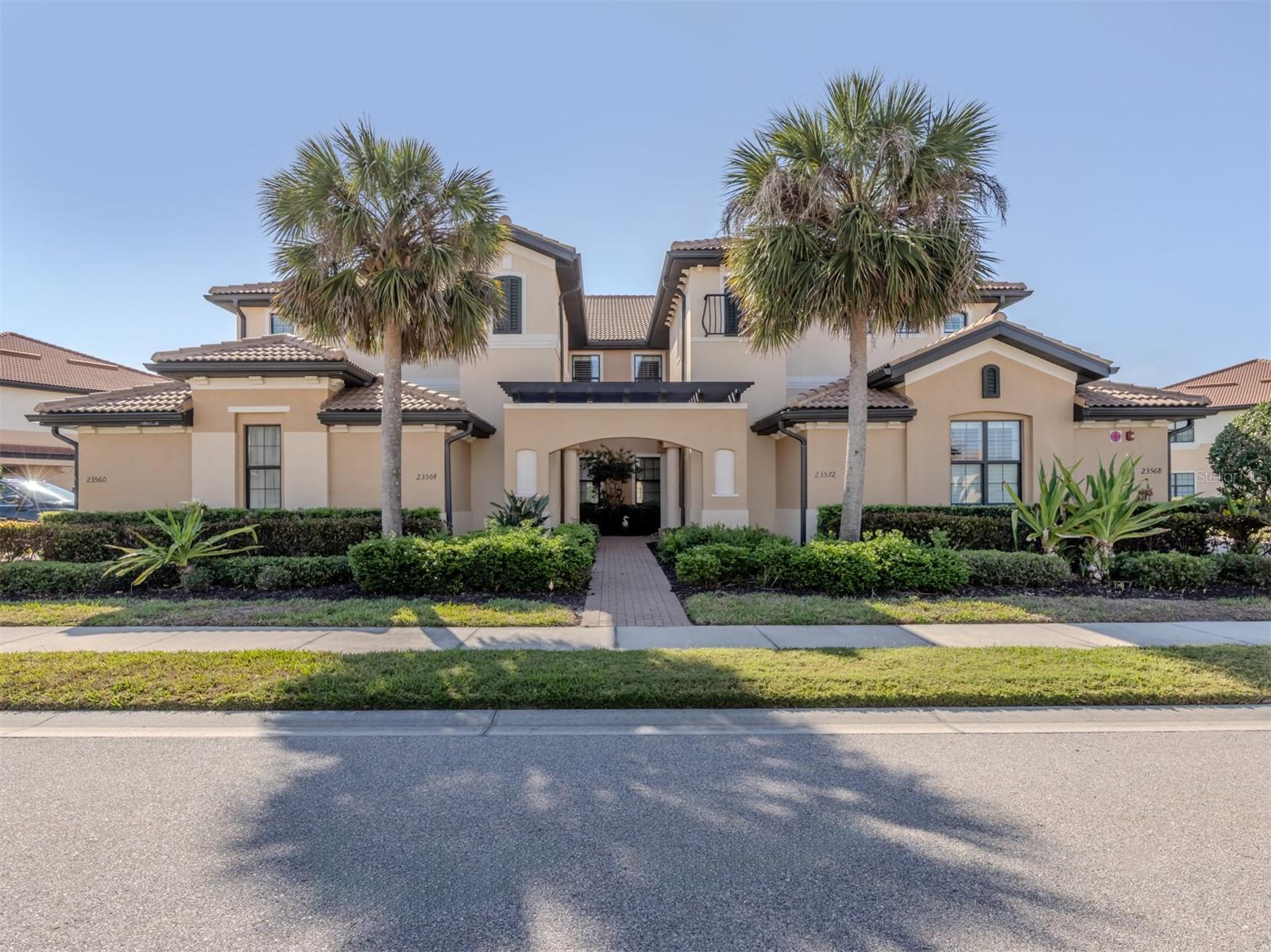 Luxury 2nd floor carriage home located in the highly acclaimed WCI developed community of Sarasota National Golf & Country Club. Rarely does one of these distinctive homes come to the market. Featuring over 2500+ square foot of living space, this home has a wonderful open floorplan that includes 3 Bedrooms plus Den/Flex room, 2 baths, two-car garage, Private Elevator and a large, covered screen lanai overlooking an expansive lake. High volume ceilings with Tray accents, crown molding, beautiful tile & wood flooring, Plantation Shutters and a neutral color palette throughout. A row of sliding glass doors connects the living room to the screened lanai, seamlessly blending indoor and outdoor living while providing gorgeous vistas of the water, SW Florida wildlife and beautiful sun rises. The spacious eat-in kitchen boasts SS appliances, Granite Countertops, Wood Cabinetry, a Large Pantry and a Breakfast bar with seating for 3 (or more). Split bedroom floor plan affords owner and their guest privacy when desired. The spacious Owners Retreat offers a large bedroom and ensuite bath. Bath features dual sinks, granite countertops, walk-in shower, water closet and tons of closet space. The guest bedrooms are generously sized with access to a shared bathroom. The Den / Office (Multi-Functional Flex room) can be used in a variety of ways that suit your needs. A large Laundry room with utility sink and cabinets is centrally located within the home. The Private Elevator is available to take you to and from your attached side-load 2-car garage with ease. Lovingly maintained, this home is move in-ready for the connoisseur of life who is seeking the space of a “single family” home and the ease of maintenance free living. Other notable aspects: Sarasota National is an amenity-rich lifestyle community. It offers an 18-hole golf course (golf membership is included in the home purchase with no upfront initiation fee), golf members clubhouse, Pro Shop, Palm Club with bar and dining facilities, outdoor tiki bar and casual dining, zero-entry heated resort pool, lap pool, spa, coffee café, state-of-the-art fitness center, tennis, bocce and pickleball courts, tot playground, doggie park and a full schedule of year round events to mingle with all your neighbors. Conveniently located within minutes of “all things outdoors” that include: multiple area sandy beaches (including Manasota Beach), fishing, boating, restaurants, shopping, Downtown Wellen Park, Atlanta Braves training facility at CoolToday Park and the ever-popular quaint Island of Venice. Also, just a short drive to I-75 & US 41, Sarasota Memorial Hospital Venice Campus and Houses of Worship. Note: Option to purchase furnishings is available under a separate agreement. Make your appointment to see this “house in the sky” today!