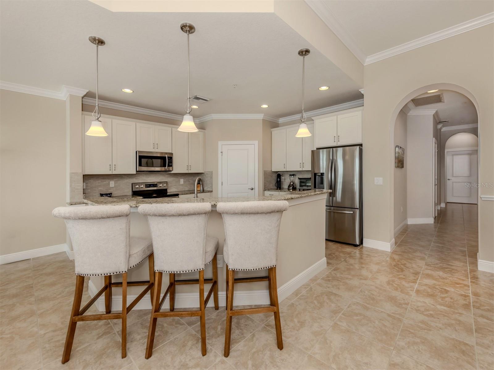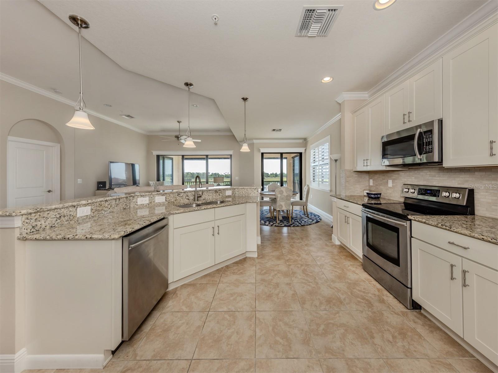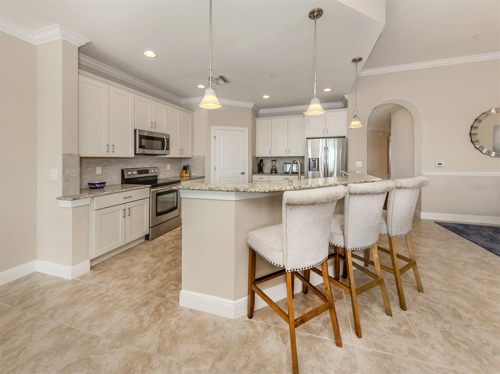 Luxury 2nd floor carriage home located in the highly acclaimed WCI developed community of Sarasota National Golf & Country Club. Rarely does one of these distinctive homes come to the market. Featuring over 2500+ square foot of living space, this home has a wonderful open floorplan that includes 3 Bedrooms plus Den/Flex room, 2 baths, two-car garage, Private Elevator and a large, covered screen lanai overlooking an expansive lake. High volume ceilings with Tray accents, crown molding, beautiful tile & wood flooring, Plantation Shutters and a neutral color palette throughout. A row of sliding glass doors connects the living room to the screened lanai, seamlessly blending indoor and outdoor living while providing gorgeous vistas of the water, SW Florida wildlife and beautiful sun rises. The spacious eat-in kitchen boasts SS appliances, Granite Countertops, Wood Cabinetry, a Large Pantry and a Breakfast bar with seating for 3 (or more). Split bedroom floor plan affords owner and their guest privacy when desired. The spacious Owners Retreat offers a large bedroom and ensuite bath. Bath features dual sinks, granite countertops, walk-in shower, water closet and tons of closet space. The guest bedrooms are generously sized with access to a shared bathroom. The Den / Office (Multi-Functional Flex room) can be used in a variety of ways that suit your needs. A large Laundry room with utility sink and cabinets is centrally located within the home. The Private Elevator is available to take you to and from your attached side-load 2-car garage with ease. Lovingly maintained, this home is move in-ready for the connoisseur of life who is seeking the space of a “single family” home and the ease of maintenance free living. Other notable aspects: Sarasota National is an amenity-rich lifestyle community. It offers an 18-hole golf course (golf membership is included in the home purchase with no upfront initiation fee), golf members clubhouse, Pro Shop, Palm Club with bar and dining facilities, outdoor tiki bar and casual dining, zero-entry heated resort pool, lap pool, spa, coffee café, state-of-the-art fitness center, tennis, bocce and pickleball courts, tot playground, doggie park and a full schedule of year round events to mingle with all your neighbors. Conveniently located within minutes of “all things outdoors” that include: multiple area sandy beaches (including Manasota Beach), fishing, boating, restaurants, shopping, Downtown Wellen Park, Atlanta Braves training facility at CoolToday Park and the ever-popular quaint Island of Venice. Also, just a short drive to I-75 & US 41, Sarasota Memorial Hospital Venice Campus and Houses of Worship. Note: Option to purchase furnishings is available under a separate agreement. Make your appointment to see this “house in the sky” today!