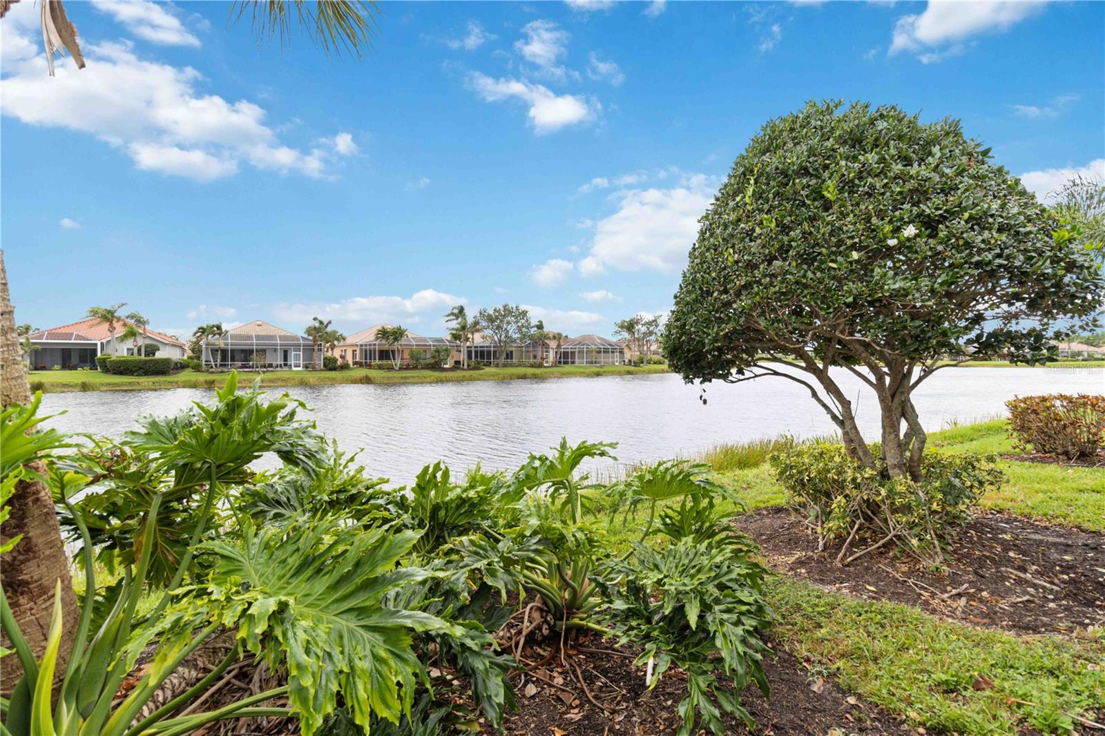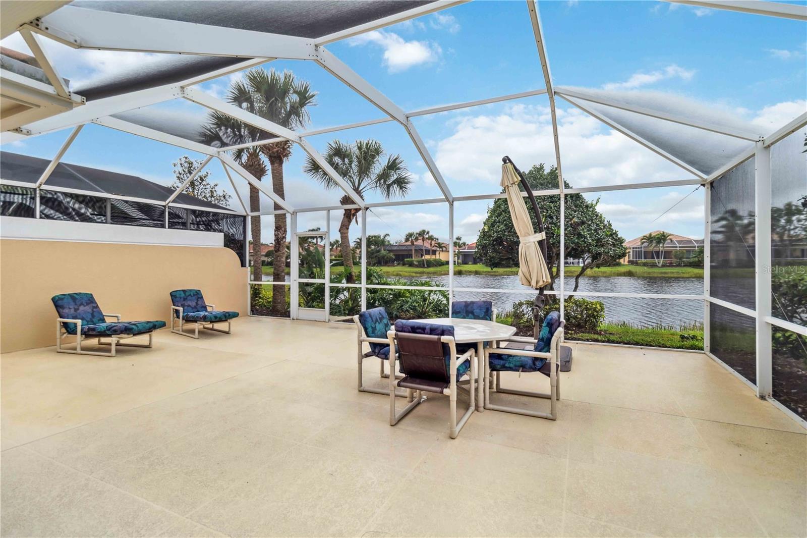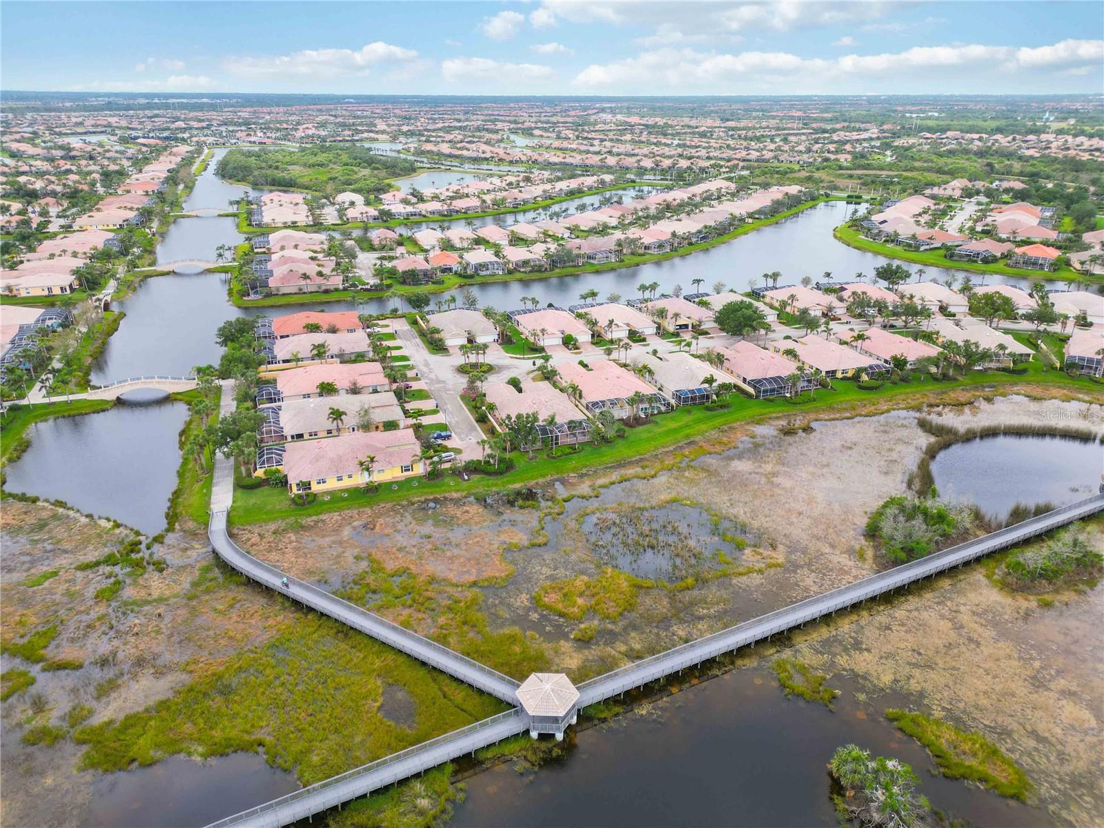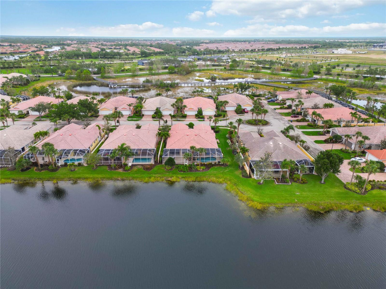 Waterfront in IslandWalk that comes completely TURNKEY, including the golf cart! Located on a quiet cut de sac. The eye catching curb appeal starts with the paver driveway leading to the private side entrance. The HUGE lanai has plenty of room for relaxing, entertaining and possibly adding a pool. This bright and airy villa has an open floor plan.There are two ensuite bedrooms. The primary suite is split from the guest suite for extra privacy. The primary has a gorgeous view of the water, a walk in closet, dual vanities and a walk in shower. The guest bedroom also has a walk in closet and the bathroom has a pocket door that separates the guest entrance from the rest of the home. The fresh, white kitchen has solid surface counters, a breakfast bar and plenty of cabinetry. The separate dining area overlooks the living room and the lanai and has brand new LVP flooring. Large living room w/vaulted ceiling. Main floor laundry has glass block window bringing in natural light, a utility sink, plenty of storage and room for folding. This home boasts a central vacuum system, making cleaning so much easier! Island Walk offers so many amenities for you to enjoy. There are 2 resort centers, including 3 community clubhouses. There are a total of 27 sport courts and 2 resort style pools with separate spas, in addition to a 3 lane lap pool. One of the newest amenities is the expansive community garden! There are 2 fitness studios with state of the art equipment and separate movement studios for group fitness classes. Don’t forget the dog parks and the library! Island Walk has a full time activities director who coordinates a full monthly calendar of events, year round. Enjoy the fire-pit areas, the outdoor pavilion and an event lawn for concerts, etc. The Venetian Style bridges throughout the community, in addition to the picturesque boardwalk, make this a unique and accessible place to call home. In addition to all of these amenities, your HOA fee covers cable, internet and lawn maintenance. Wellen Park is just minutes away. Experience the restaurants, shopping, concerts, events that downtown has to offer. Catch a baseball game at Cool Today Park or just visit their in stadium Tiki Bar. IslandWalk is only about 9 miles away from historic downtown Venice and Venice Beach. Your tropical lifestyle begins here!