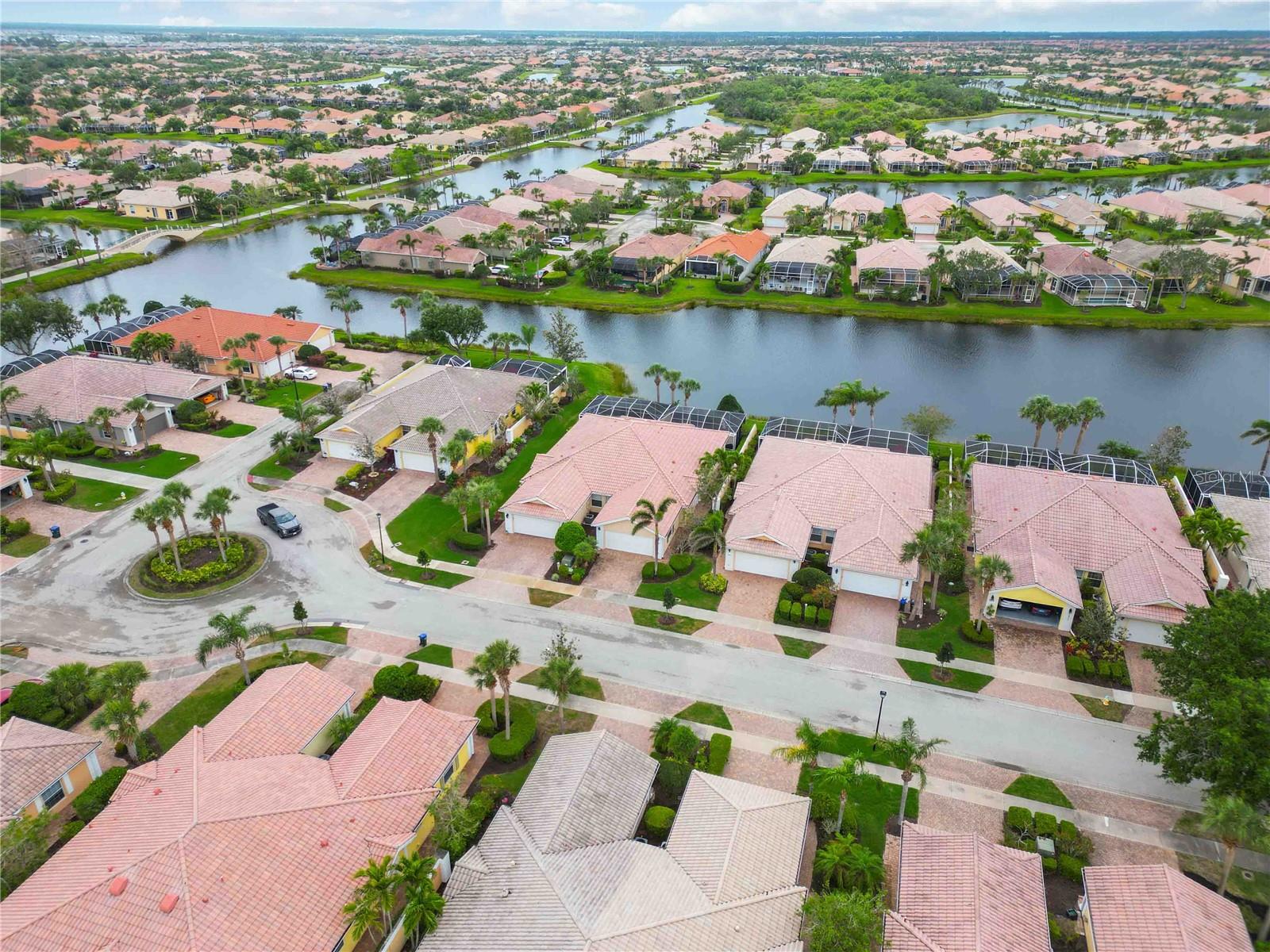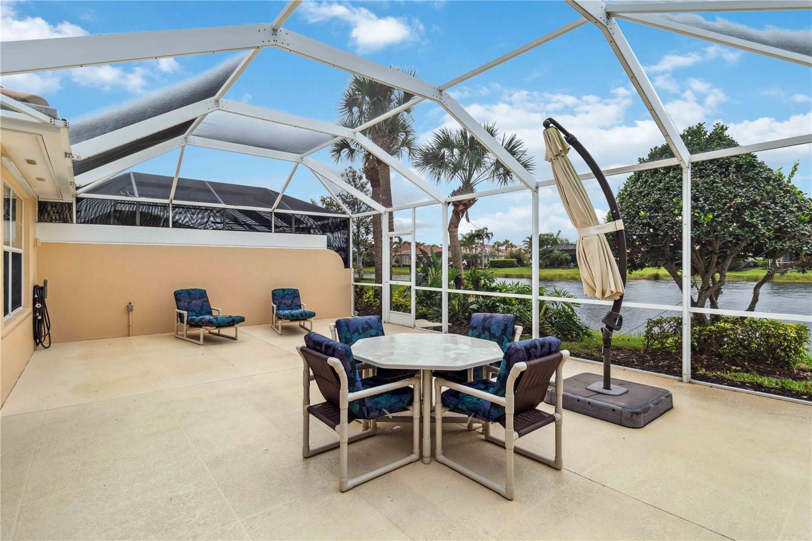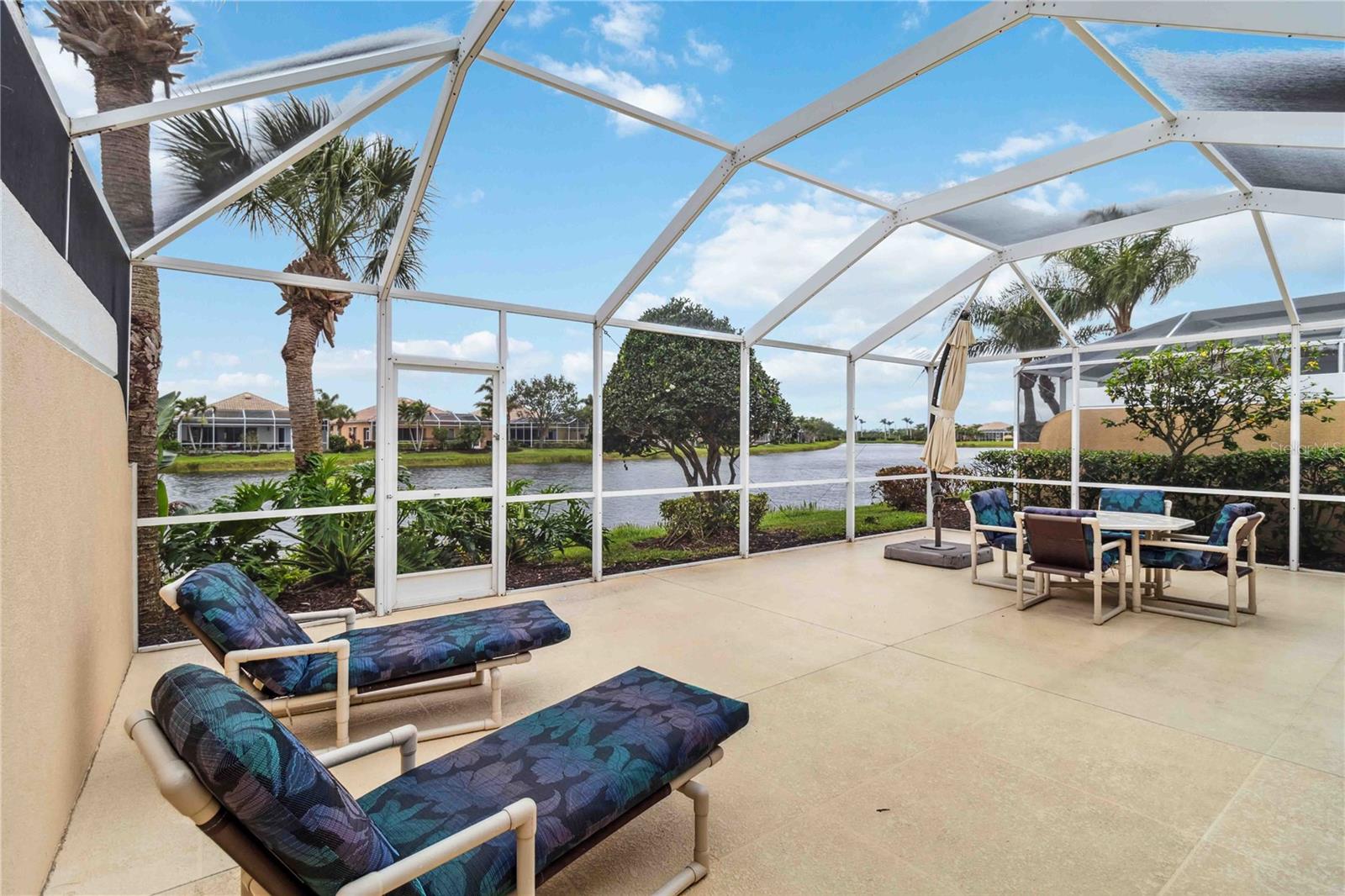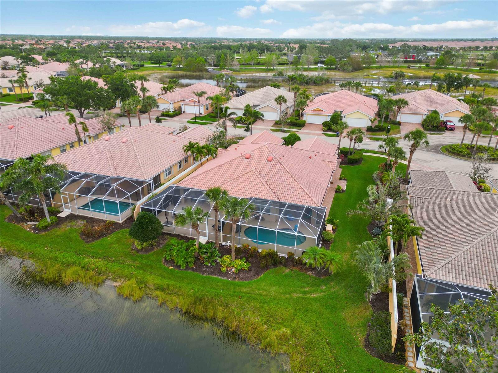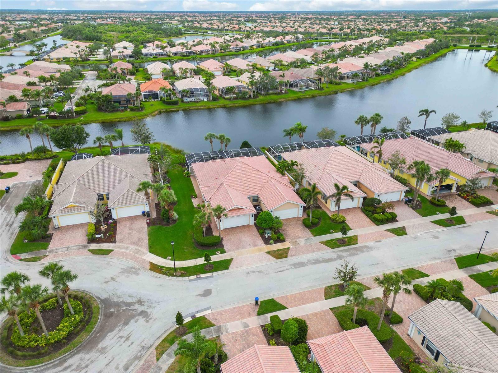 Waterfront in IslandWalk that comes completely TURNKEY, including the golf cart! Located on a quiet cut de sac. The eye catching curb appeal starts with the paver driveway leading to the private side entrance. The HUGE lanai has plenty of room for relaxing, entertaining and possibly adding a pool. This bright and airy villa has an open floor plan.There are two ensuite bedrooms. The primary suite is split from the guest suite for extra privacy. The primary has a gorgeous view of the water, a walk in closet, dual vanities and a walk in shower. The guest bedroom also has a walk in closet and the bathroom has a pocket door that separates the guest entrance from the rest of the home. The fresh, white kitchen has solid surface counters, a breakfast bar and plenty of cabinetry. The separate dining area overlooks the living room and the lanai and has brand new LVP flooring. Large living room w/vaulted ceiling. Main floor laundry has glass block window bringing in natural light, a utility sink, plenty of storage and room for folding. This home boasts a central vacuum system, making cleaning so much easier! Island Walk offers so many amenities for you to enjoy. There are 2 resort centers, including 3 community clubhouses. There are a total of 27 sport courts and 2 resort style pools with separate spas, in addition to a 3 lane lap pool. One of the newest amenities is the expansive community garden! There are 2 fitness studios with state of the art equipment and separate movement studios for group fitness classes. Don’t forget the dog parks and the library! Island Walk has a full time activities director who coordinates a full monthly calendar of events, year round. Enjoy the fire-pit areas, the outdoor pavilion and an event lawn for concerts, etc. The Venetian Style bridges throughout the community, in addition to the picturesque boardwalk, make this a unique and accessible place to call home. In addition to all of these amenities, your HOA fee covers cable, internet and lawn maintenance. Wellen Park is just minutes away. Experience the restaurants, shopping, concerts, events that downtown has to offer. Catch a baseball game at Cool Today Park or just visit their in stadium Tiki Bar. IslandWalk is only about 9 miles away from historic downtown Venice and Venice Beach. Your tropical lifestyle begins here!