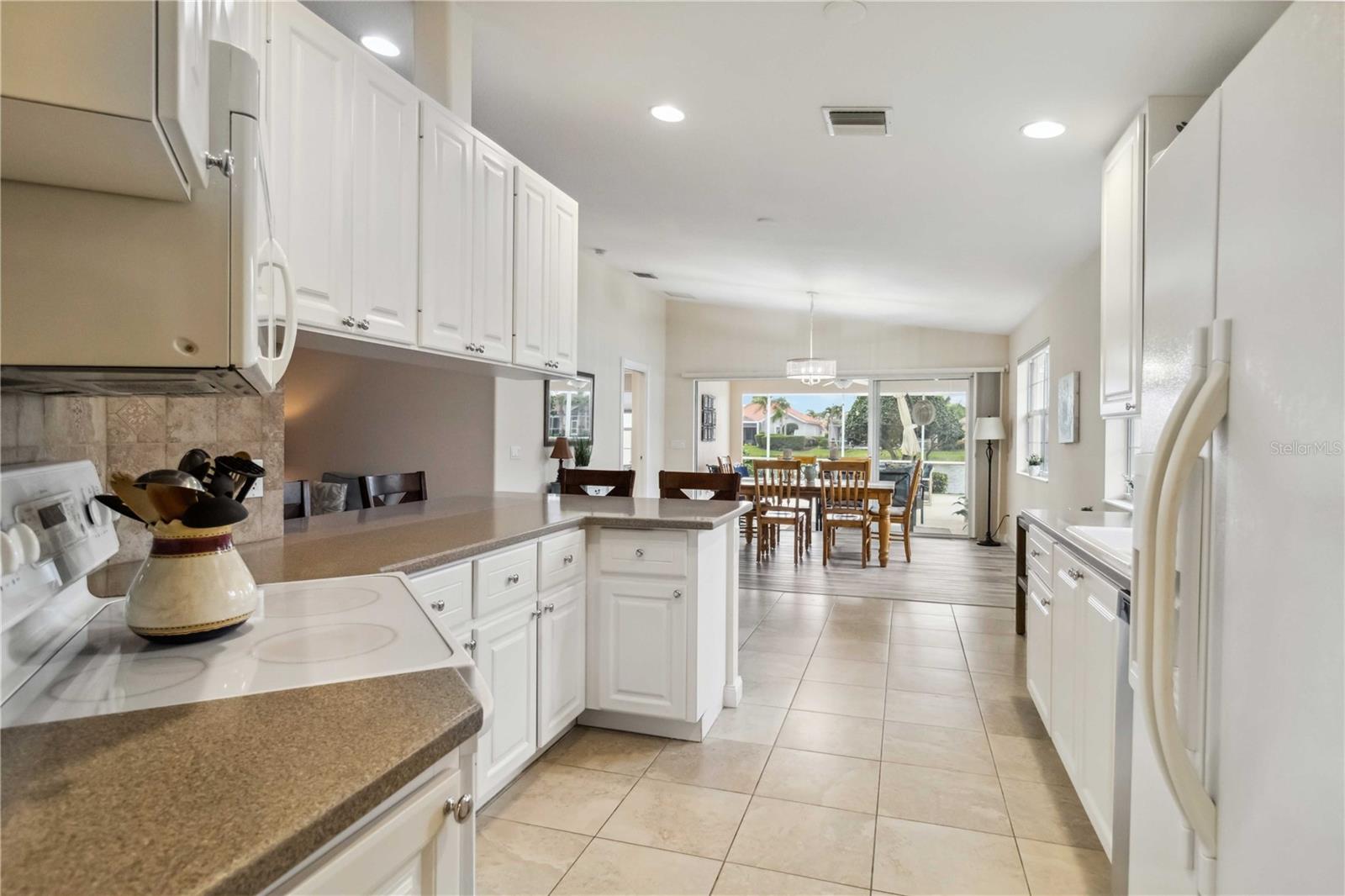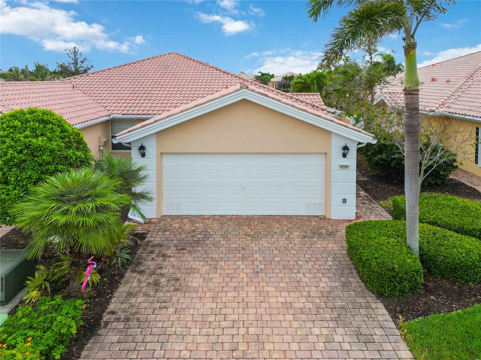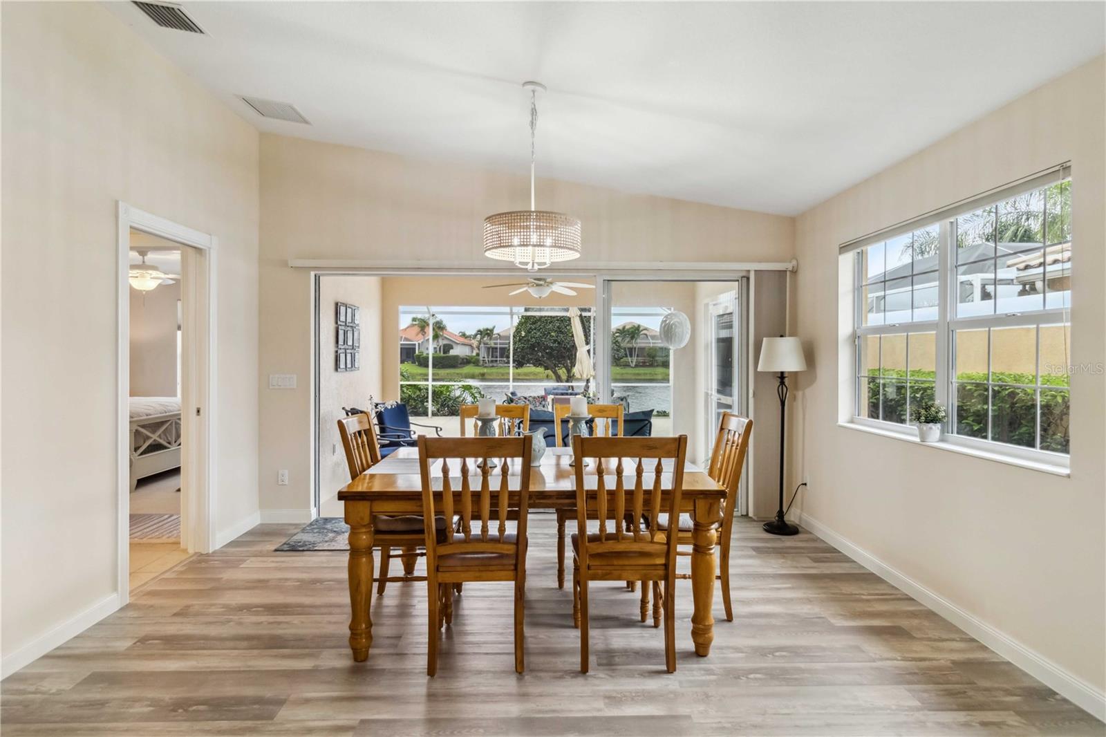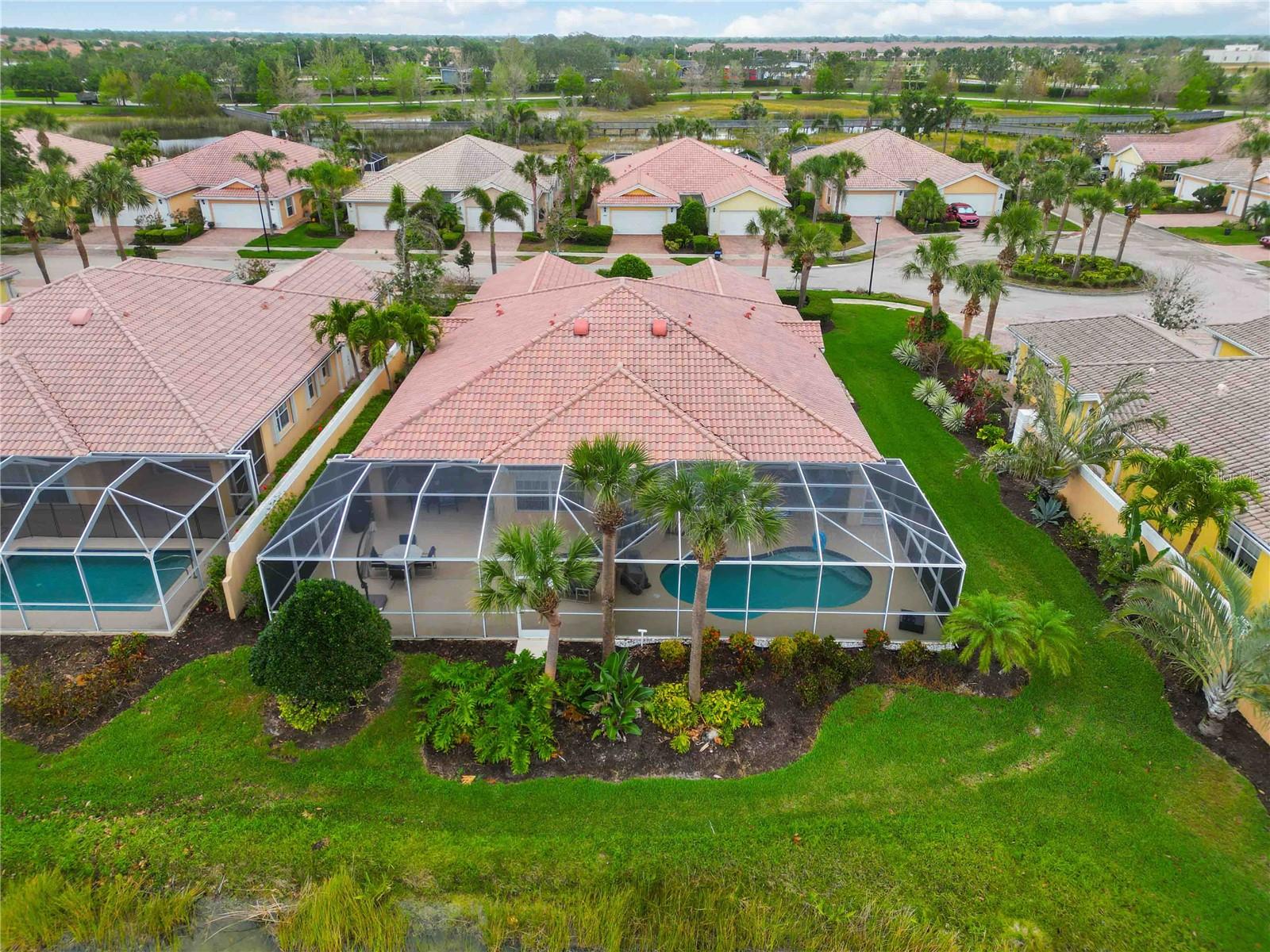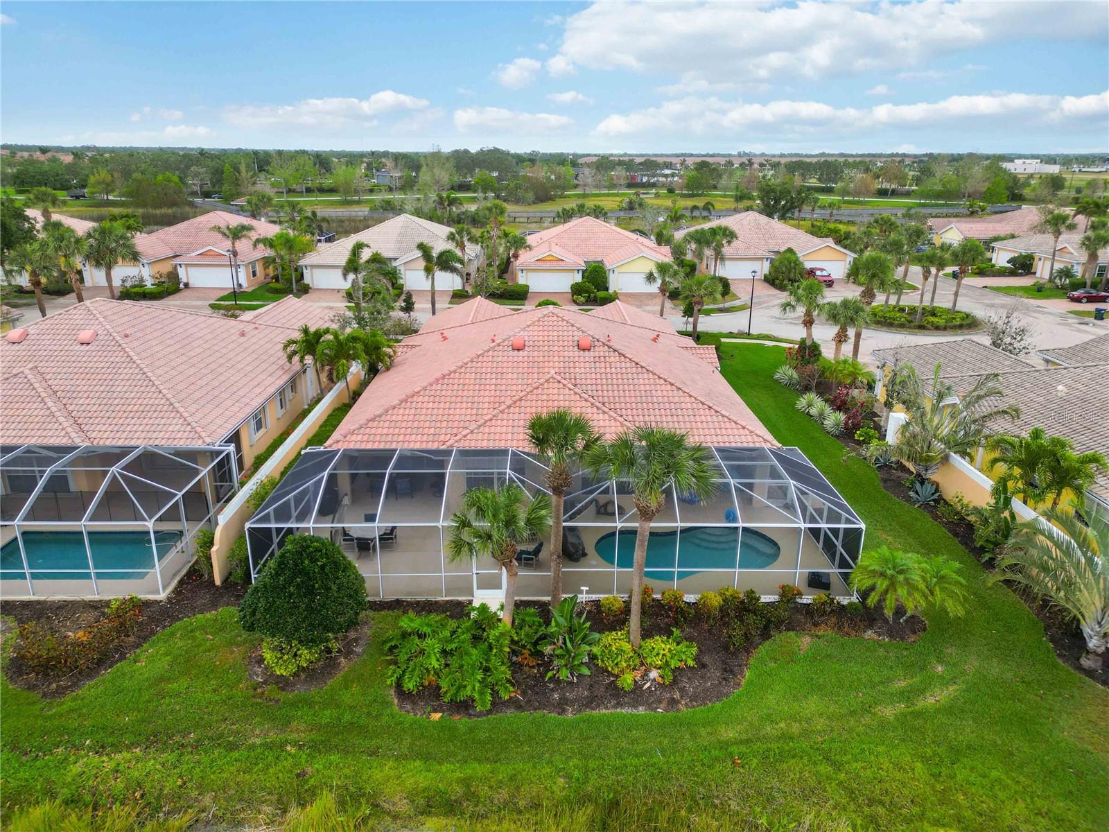 Waterfront in IslandWalk that comes completely TURNKEY, including the golf cart! Located on a quiet cut de sac. The eye catching curb appeal starts with the paver driveway leading to the private side entrance. The HUGE lanai has plenty of room for relaxing, entertaining and possibly adding a pool. This bright and airy villa has an open floor plan.There are two ensuite bedrooms. The primary suite is split from the guest suite for extra privacy. The primary has a gorgeous view of the water, a walk in closet, dual vanities and a walk in shower. The guest bedroom also has a walk in closet and the bathroom has a pocket door that separates the guest entrance from the rest of the home. The fresh, white kitchen has solid surface counters, a breakfast bar and plenty of cabinetry. The separate dining area overlooks the living room and the lanai and has brand new LVP flooring. Large living room w/vaulted ceiling. Main floor laundry has glass block window bringing in natural light, a utility sink, plenty of storage and room for folding. This home boasts a central vacuum system, making cleaning so much easier! Island Walk offers so many amenities for you to enjoy. There are 2 resort centers, including 3 community clubhouses. There are a total of 27 sport courts and 2 resort style pools with separate spas, in addition to a 3 lane lap pool. One of the newest amenities is the expansive community garden! There are 2 fitness studios with state of the art equipment and separate movement studios for group fitness classes. Don’t forget the dog parks and the library! Island Walk has a full time activities director who coordinates a full monthly calendar of events, year round. Enjoy the fire-pit areas, the outdoor pavilion and an event lawn for concerts, etc. The Venetian Style bridges throughout the community, in addition to the picturesque boardwalk, make this a unique and accessible place to call home. In addition to all of these amenities, your HOA fee covers cable, internet and lawn maintenance. Wellen Park is just minutes away. Experience the restaurants, shopping, concerts, events that downtown has to offer. Catch a baseball game at Cool Today Park or just visit their in stadium Tiki Bar. IslandWalk is only about 9 miles away from historic downtown Venice and Venice Beach. Your tropical lifestyle begins here!