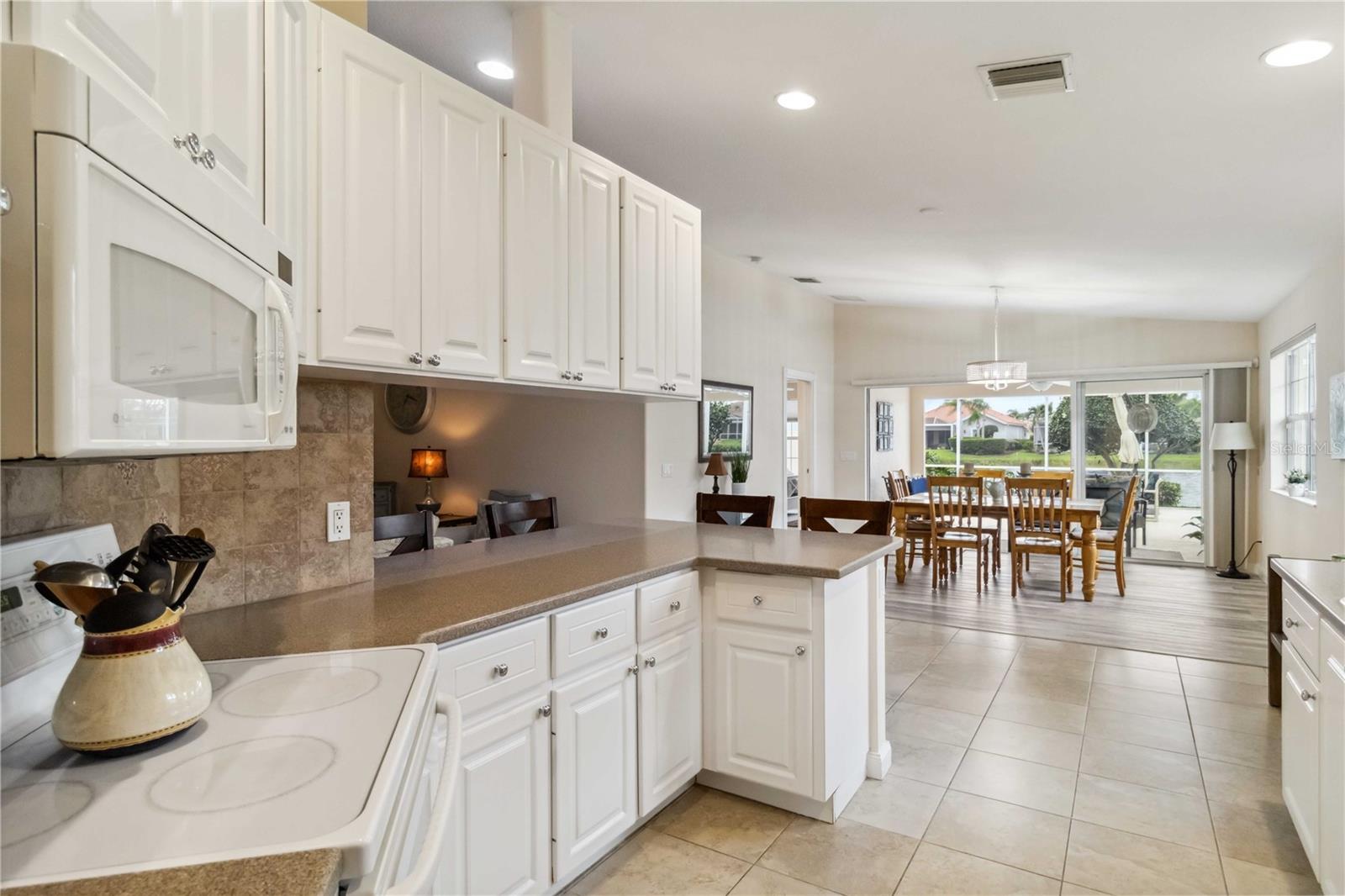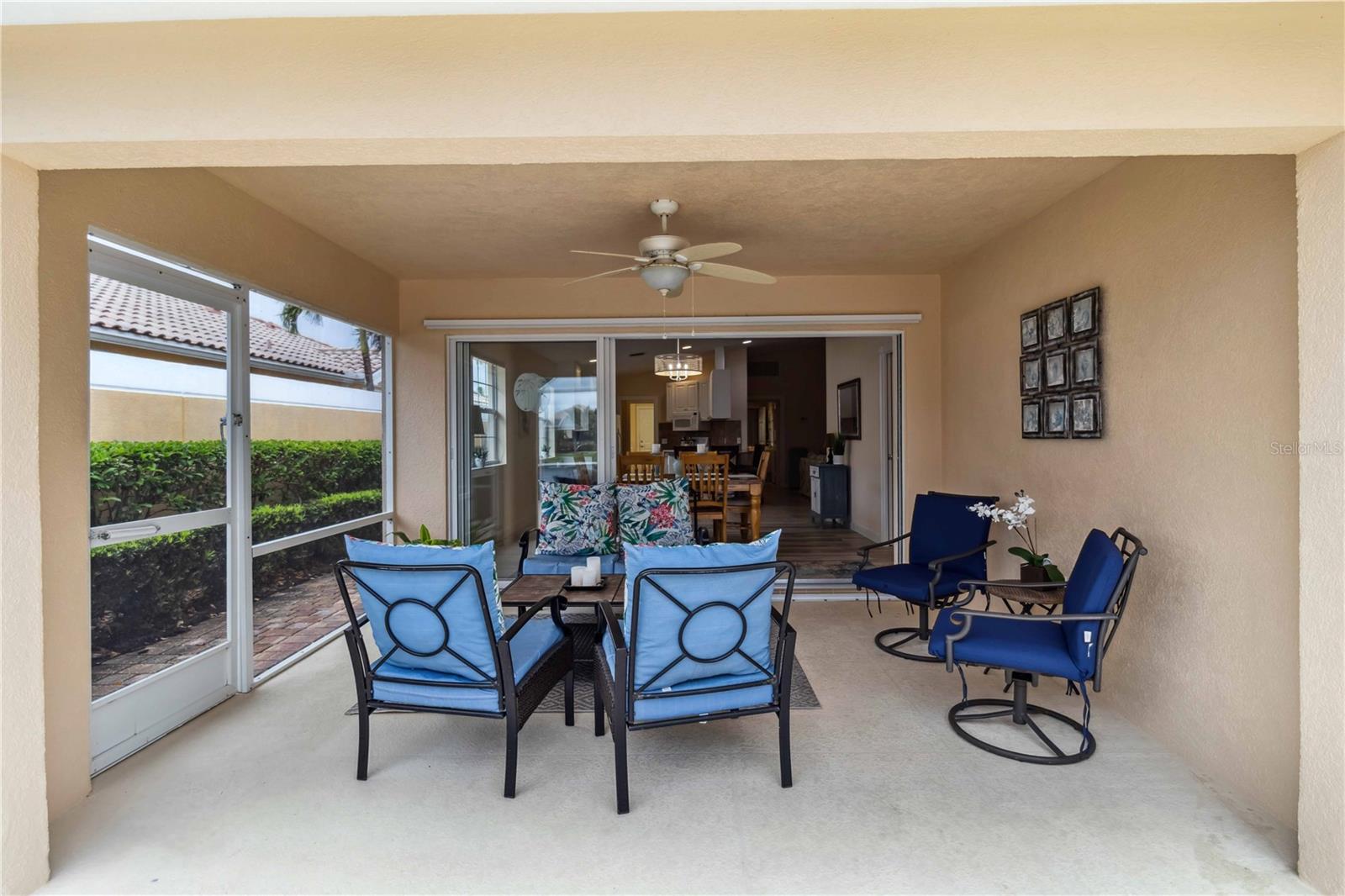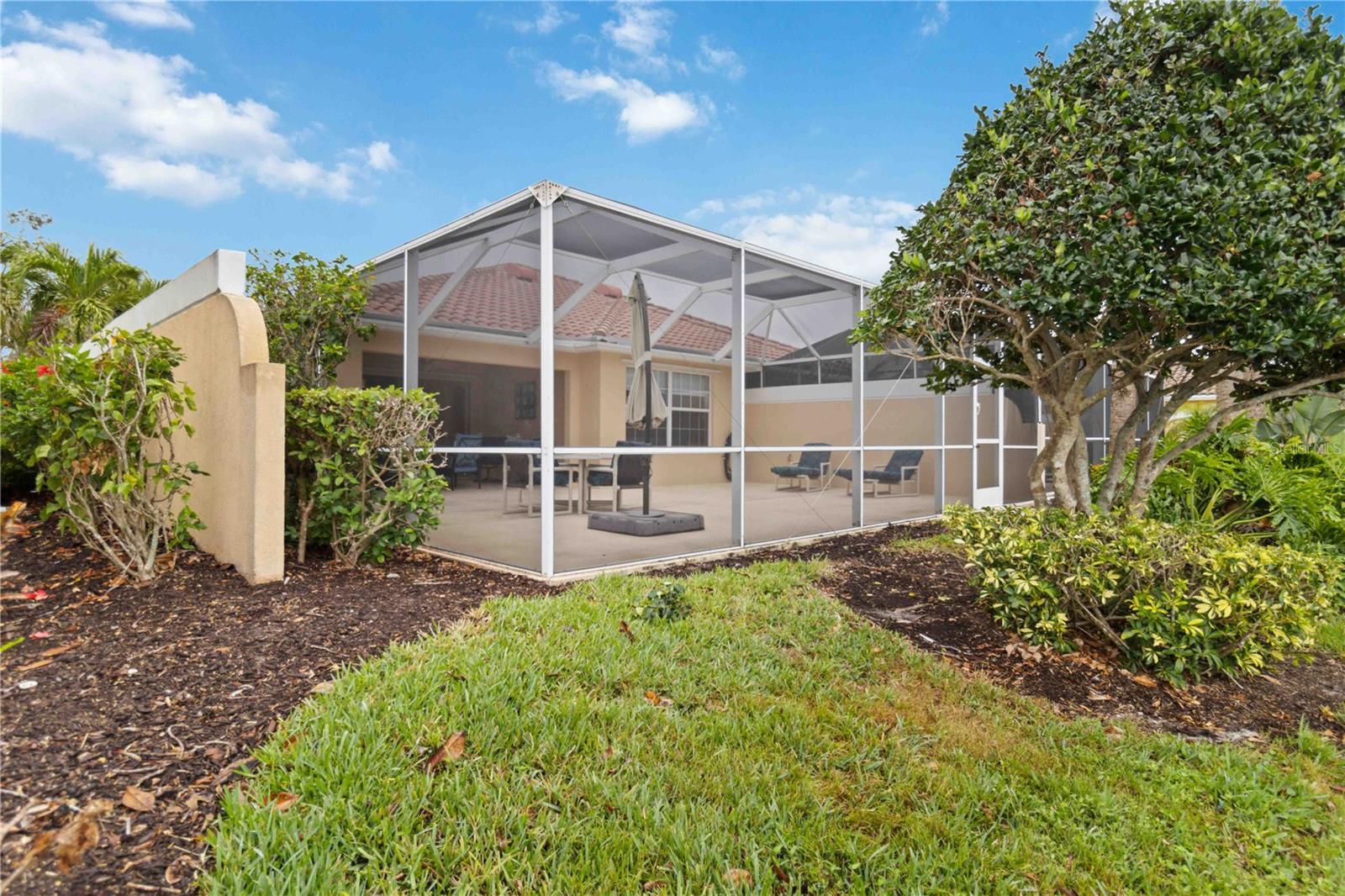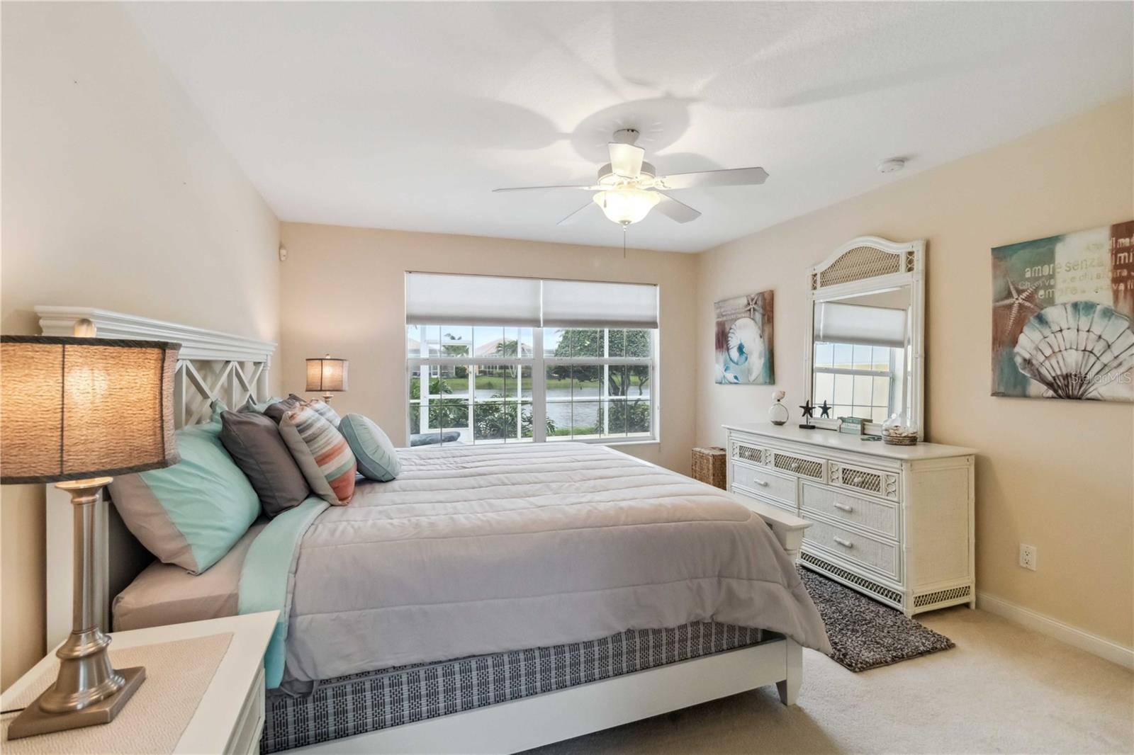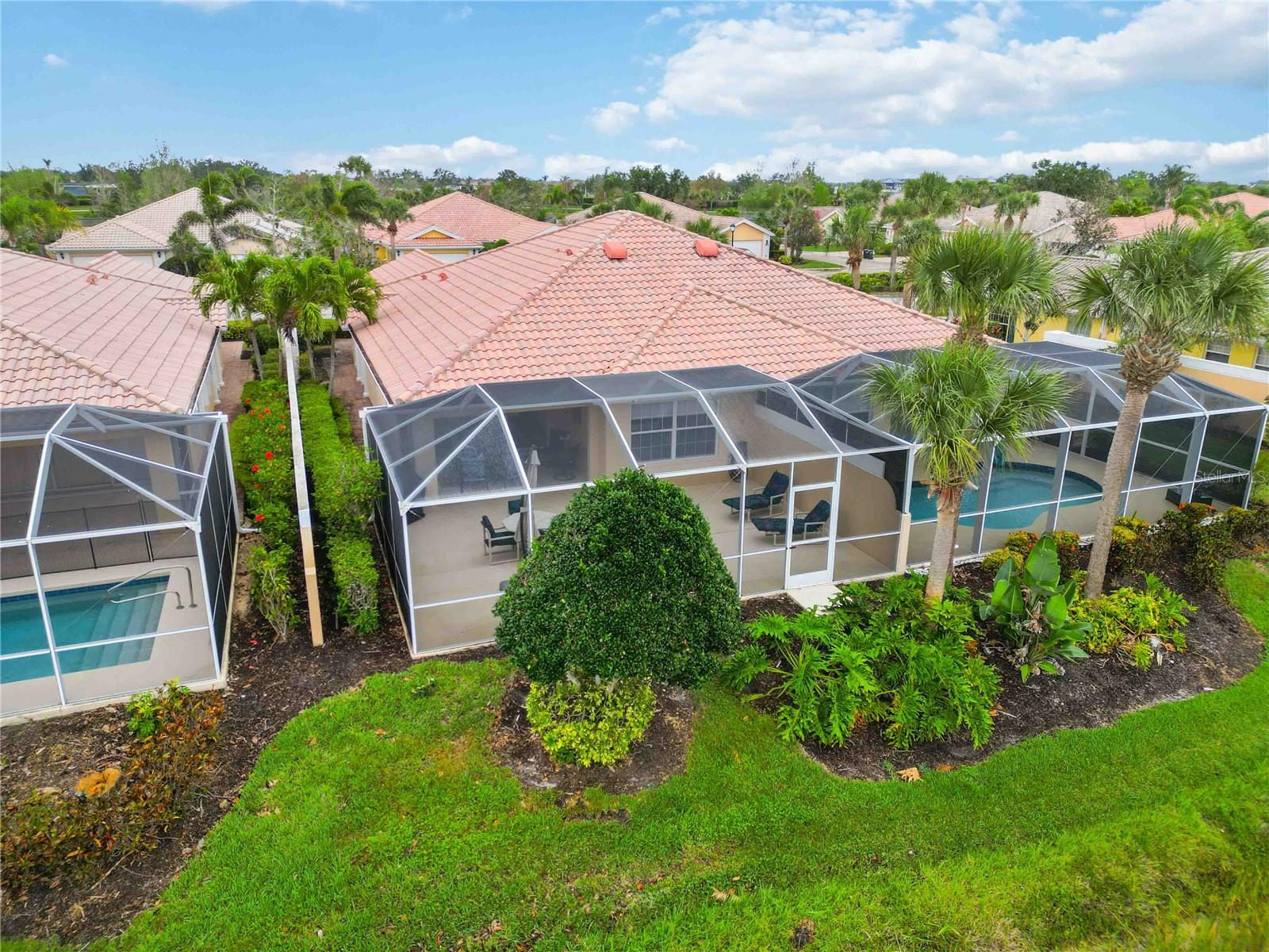 Waterfront in IslandWalk that comes completely TURNKEY, including the golf cart! Located on a quiet cut de sac. The eye catching curb appeal starts with the paver driveway leading to the private side entrance. The HUGE lanai has plenty of room for relaxing, entertaining and possibly adding a pool. This bright and airy villa has an open floor plan.There are two ensuite bedrooms. The primary suite is split from the guest suite for extra privacy. The primary has a gorgeous view of the water, a walk in closet, dual vanities and a walk in shower. The guest bedroom also has a walk in closet and the bathroom has a pocket door that separates the guest entrance from the rest of the home. The fresh, white kitchen has solid surface counters, a breakfast bar and plenty of cabinetry. The separate dining area overlooks the living room and the lanai and has brand new LVP flooring. Large living room w/vaulted ceiling. Main floor laundry has glass block window bringing in natural light, a utility sink, plenty of storage and room for folding. This home boasts a central vacuum system, making cleaning so much easier! Island Walk offers so many amenities for you to enjoy. There are 2 resort centers, including 3 community clubhouses. There are a total of 27 sport courts and 2 resort style pools with separate spas, in addition to a 3 lane lap pool. One of the newest amenities is the expansive community garden! There are 2 fitness studios with state of the art equipment and separate movement studios for group fitness classes. Don’t forget the dog parks and the library! Island Walk has a full time activities director who coordinates a full monthly calendar of events, year round. Enjoy the fire-pit areas, the outdoor pavilion and an event lawn for concerts, etc. The Venetian Style bridges throughout the community, in addition to the picturesque boardwalk, make this a unique and accessible place to call home. In addition to all of these amenities, your HOA fee covers cable, internet and lawn maintenance. Wellen Park is just minutes away. Experience the restaurants, shopping, concerts, events that downtown has to offer. Catch a baseball game at Cool Today Park or just visit their in stadium Tiki Bar. IslandWalk is only about 9 miles away from historic downtown Venice and Venice Beach. Your tropical lifestyle begins here!