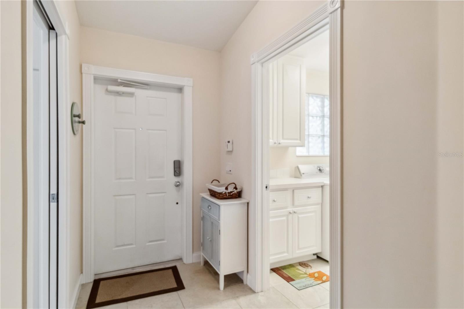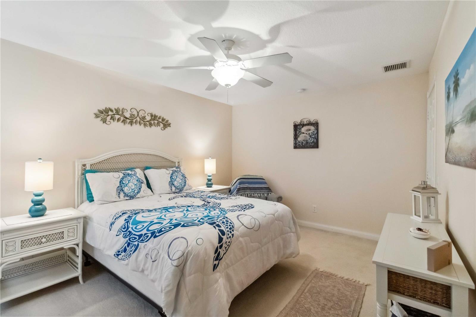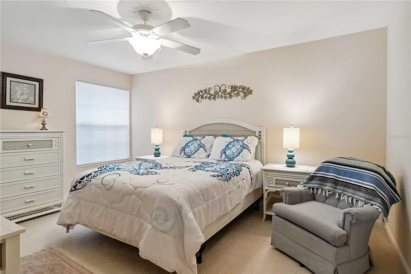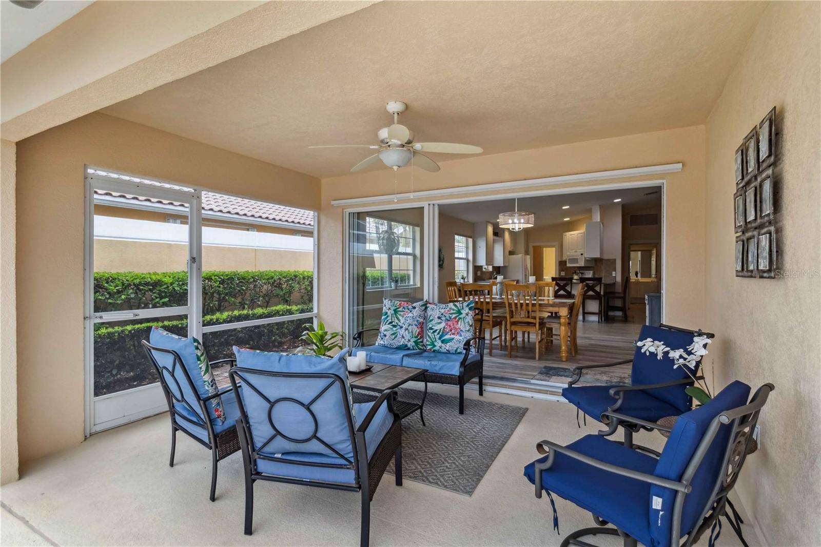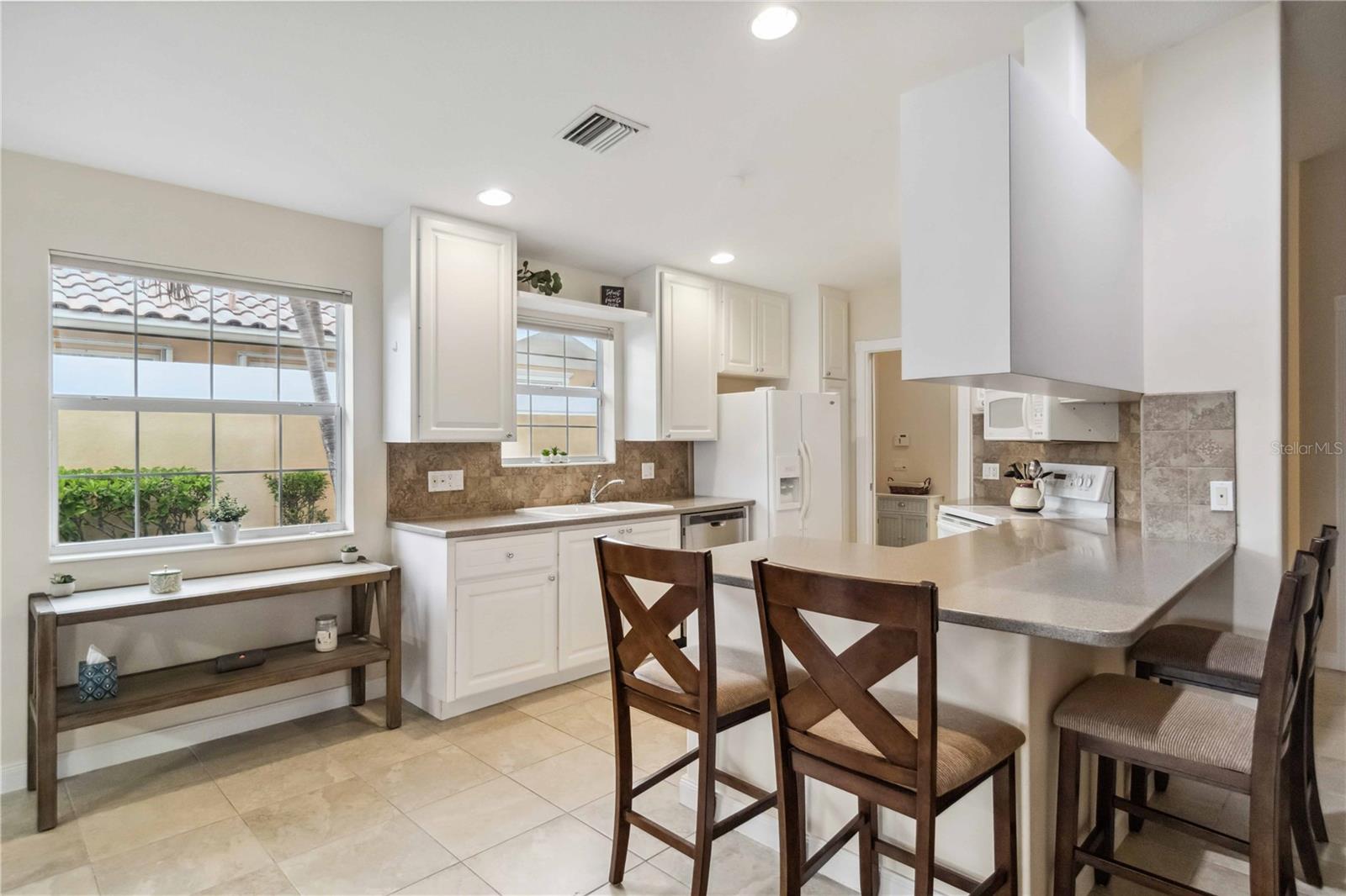 Waterfront in IslandWalk that comes completely TURNKEY, including the golf cart! Located on a quiet cut de sac. The eye catching curb appeal starts with the paver driveway leading to the private side entrance. The HUGE lanai has plenty of room for relaxing, entertaining and possibly adding a pool. This bright and airy villa has an open floor plan.There are two ensuite bedrooms. The primary suite is split from the guest suite for extra privacy. The primary has a gorgeous view of the water, a walk in closet, dual vanities and a walk in shower. The guest bedroom also has a walk in closet and the bathroom has a pocket door that separates the guest entrance from the rest of the home. The fresh, white kitchen has solid surface counters, a breakfast bar and plenty of cabinetry. The separate dining area overlooks the living room and the lanai and has brand new LVP flooring. Large living room w/vaulted ceiling. Main floor laundry has glass block window bringing in natural light, a utility sink, plenty of storage and room for folding. This home boasts a central vacuum system, making cleaning so much easier! Island Walk offers so many amenities for you to enjoy. There are 2 resort centers, including 3 community clubhouses. There are a total of 27 sport courts and 2 resort style pools with separate spas, in addition to a 3 lane lap pool. One of the newest amenities is the expansive community garden! There are 2 fitness studios with state of the art equipment and separate movement studios for group fitness classes. Don’t forget the dog parks and the library! Island Walk has a full time activities director who coordinates a full monthly calendar of events, year round. Enjoy the fire-pit areas, the outdoor pavilion and an event lawn for concerts, etc. The Venetian Style bridges throughout the community, in addition to the picturesque boardwalk, make this a unique and accessible place to call home. In addition to all of these amenities, your HOA fee covers cable, internet and lawn maintenance. Wellen Park is just minutes away. Experience the restaurants, shopping, concerts, events that downtown has to offer. Catch a baseball game at Cool Today Park or just visit their in stadium Tiki Bar. IslandWalk is only about 9 miles away from historic downtown Venice and Venice Beach. Your tropical lifestyle begins here!