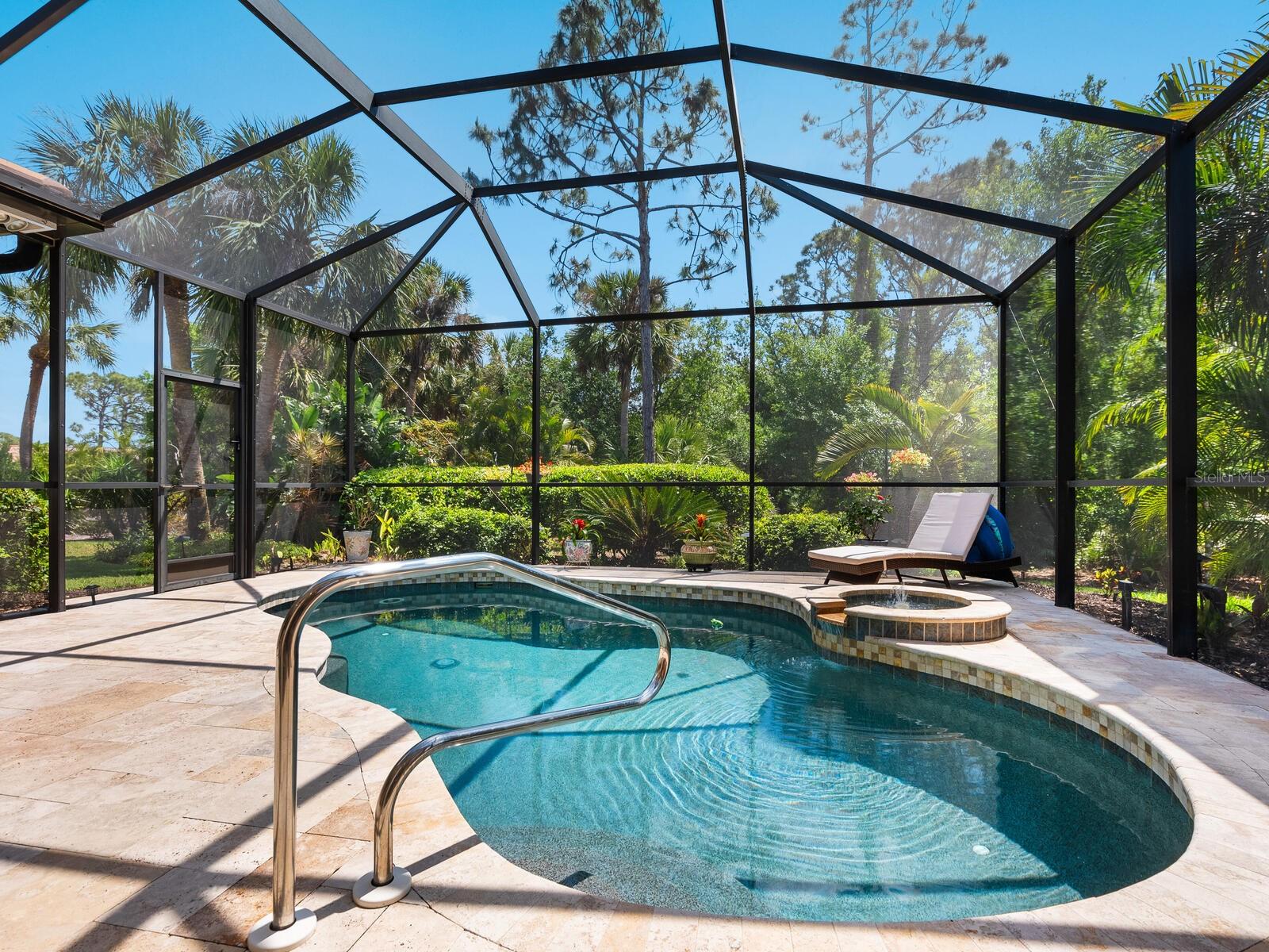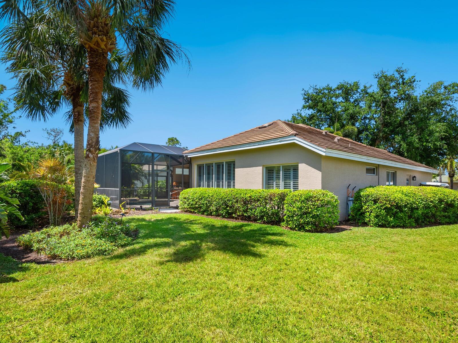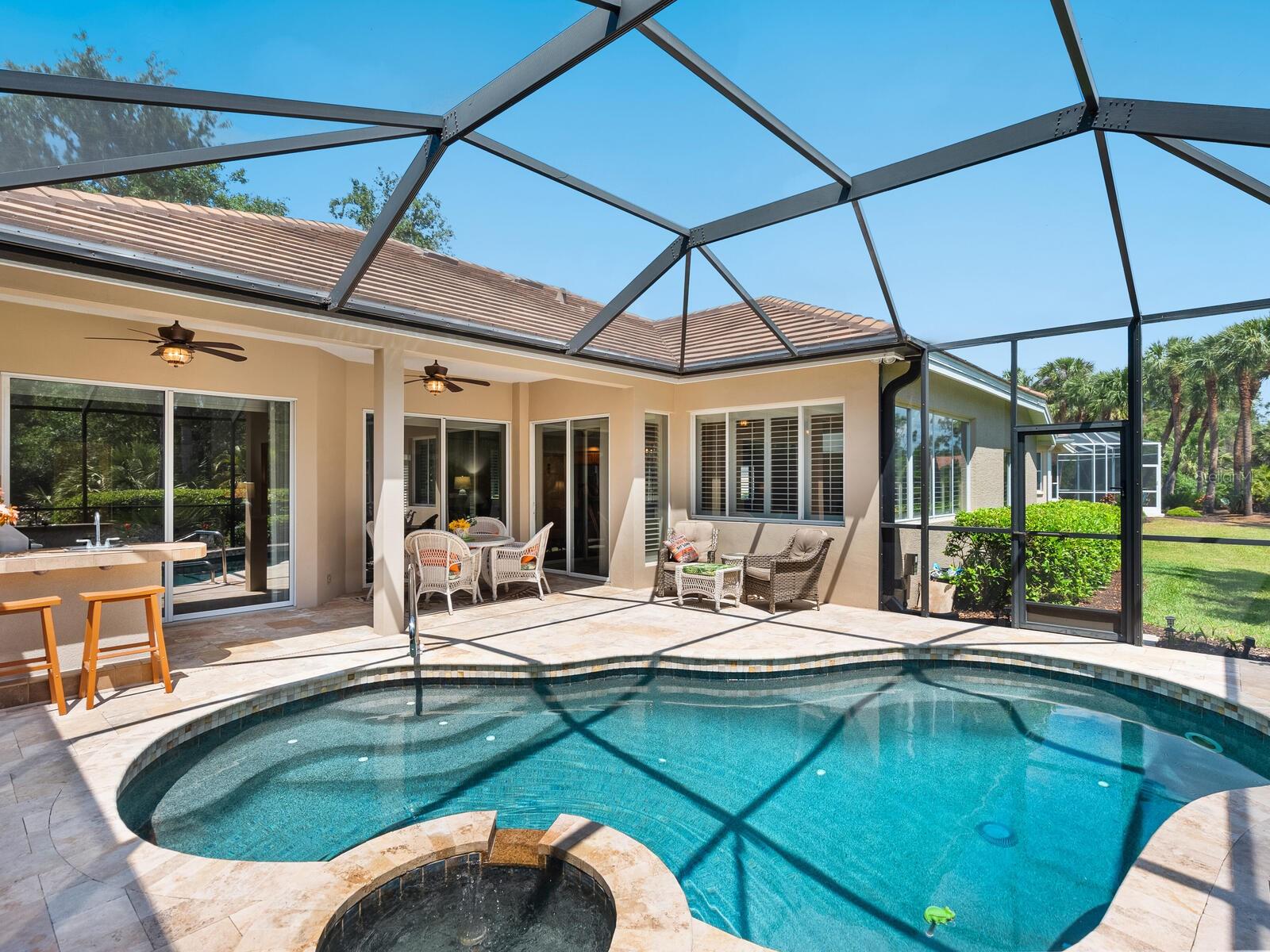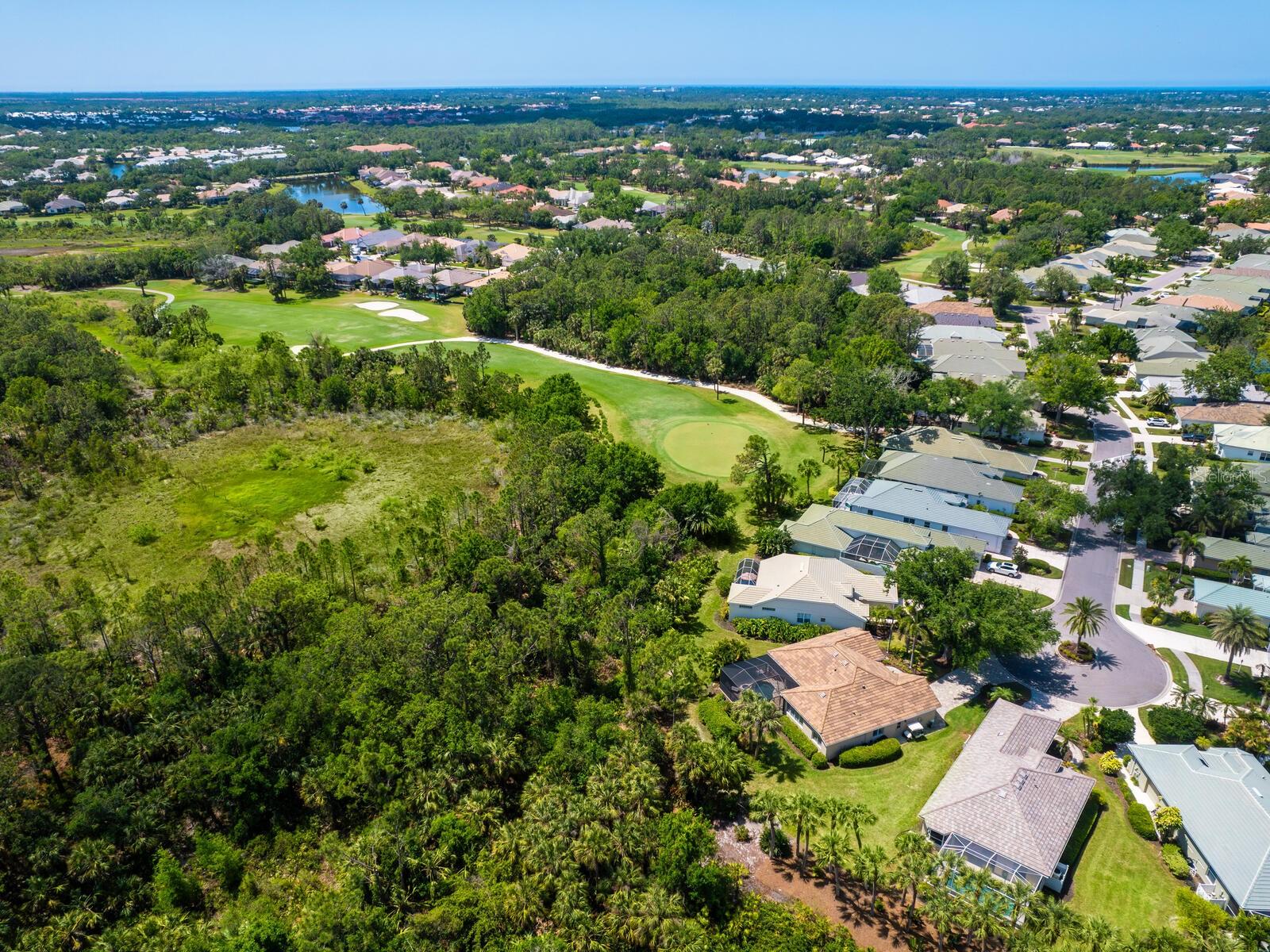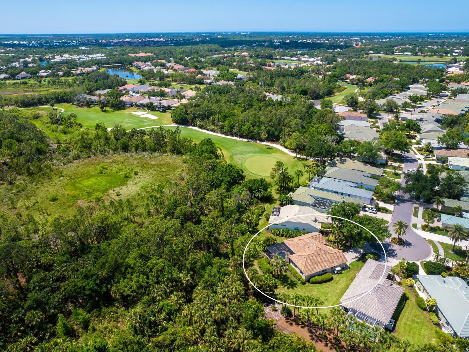What a Sensational Pool area!! The large deck area with upscale travertine features a backdrop of gorgeous, mature trees providing privacy and beauty. A summer kitchen with bar, grill, sink, and refrigerator make alfresco dining a delight every day of the year. The generous sized pool offers a custom-in-floor cleaning system for easy maintenance. This 3 bedroom + den home is like new! Plus…it had a new roof in 2020! The spacious primary suite, with sliding glass doors, opens to the luxurious lanai and private back yard. The updated ensuite bath is stunning and features a generous walk-in shower. The kitchen has quality appliances, including an induction range and sleek microwave, with the island providing a workspace and a sit-down bar. The clean, well-organized garage has exceptional storage and work area. This home is positioned on a cul-de-sac, assuring privacy and quiet. The paver driveway and entry walk add warmth and a statement of quality as you approach this lovely home. Of special note is the wide, 114 feet rear lot dimension, creating a private, sweeping view of nature. The neighborhood provides yard maintenance and has a community pool and spa. In the gated Venice Golf and Country Club you are minutes from historic downtown Venice, beaches, I- 75, Wellen Park, dining, and shopping. The Club is private and member owned and offers a myriad of social, athletic, learning, and dining events. It has proudly earned an A+ financial rating. The clubhouse was renovated and expanded, and the wellness center is state-of-the-art. Membership is required. Please see attachments for details.
