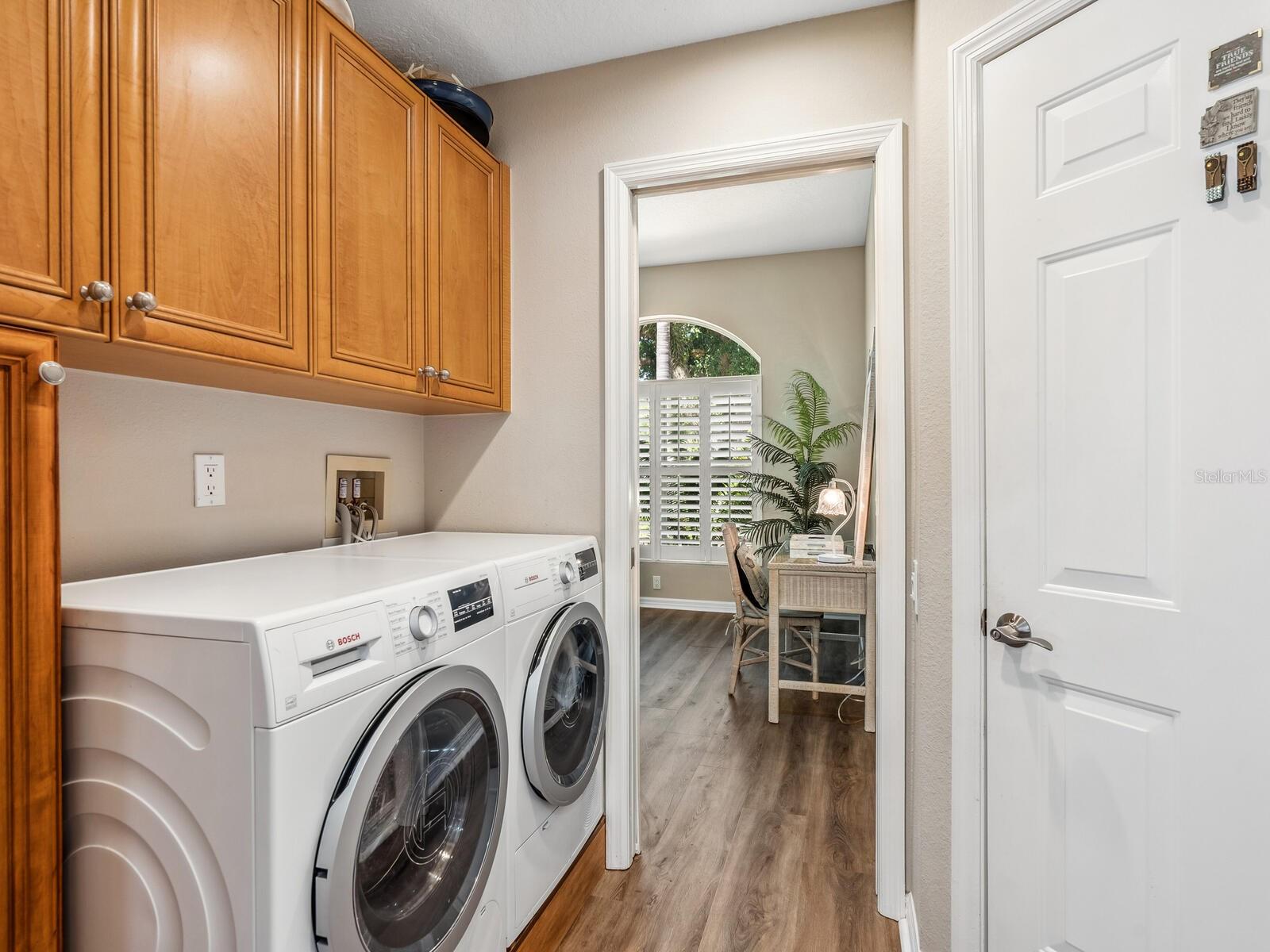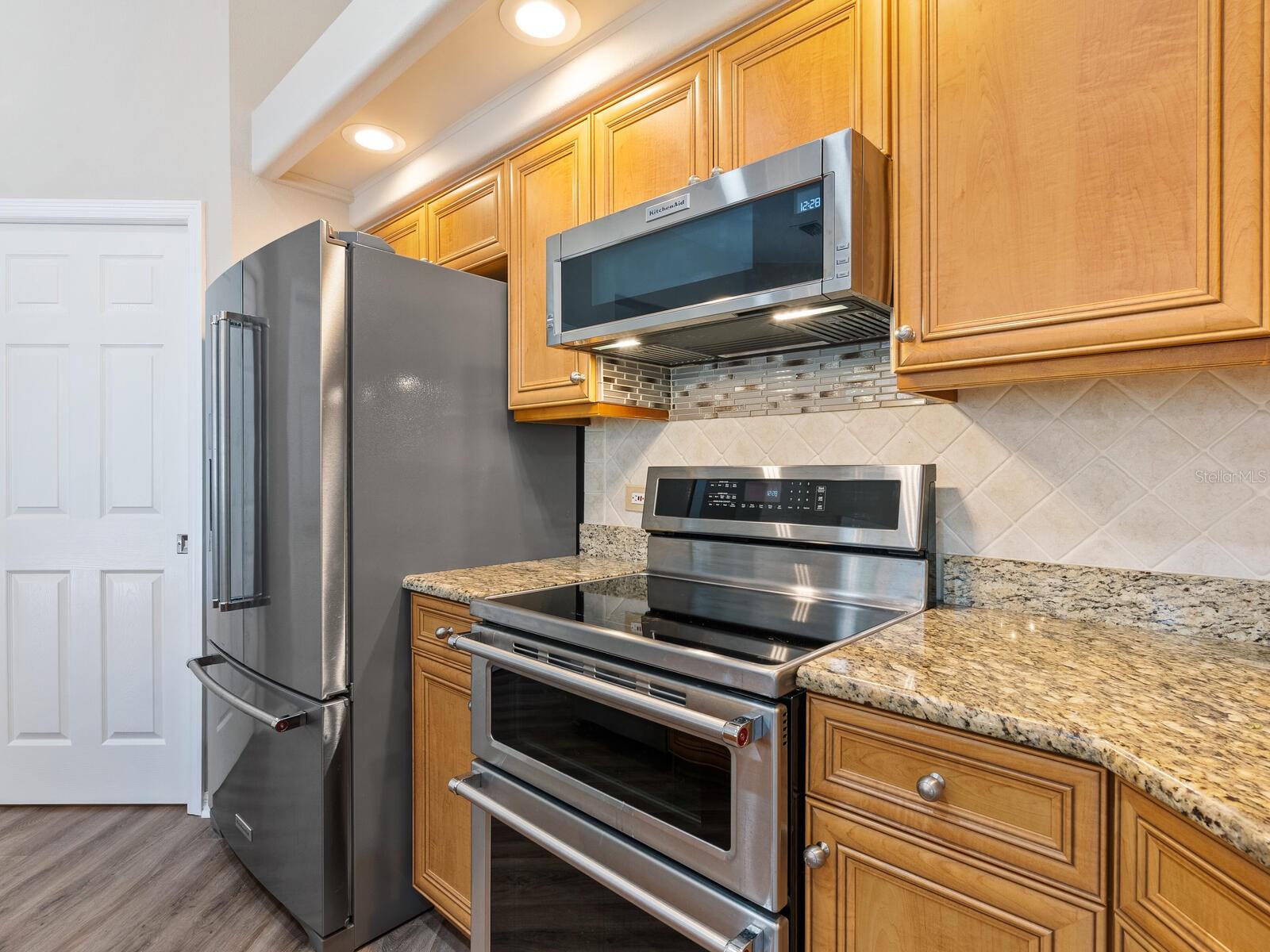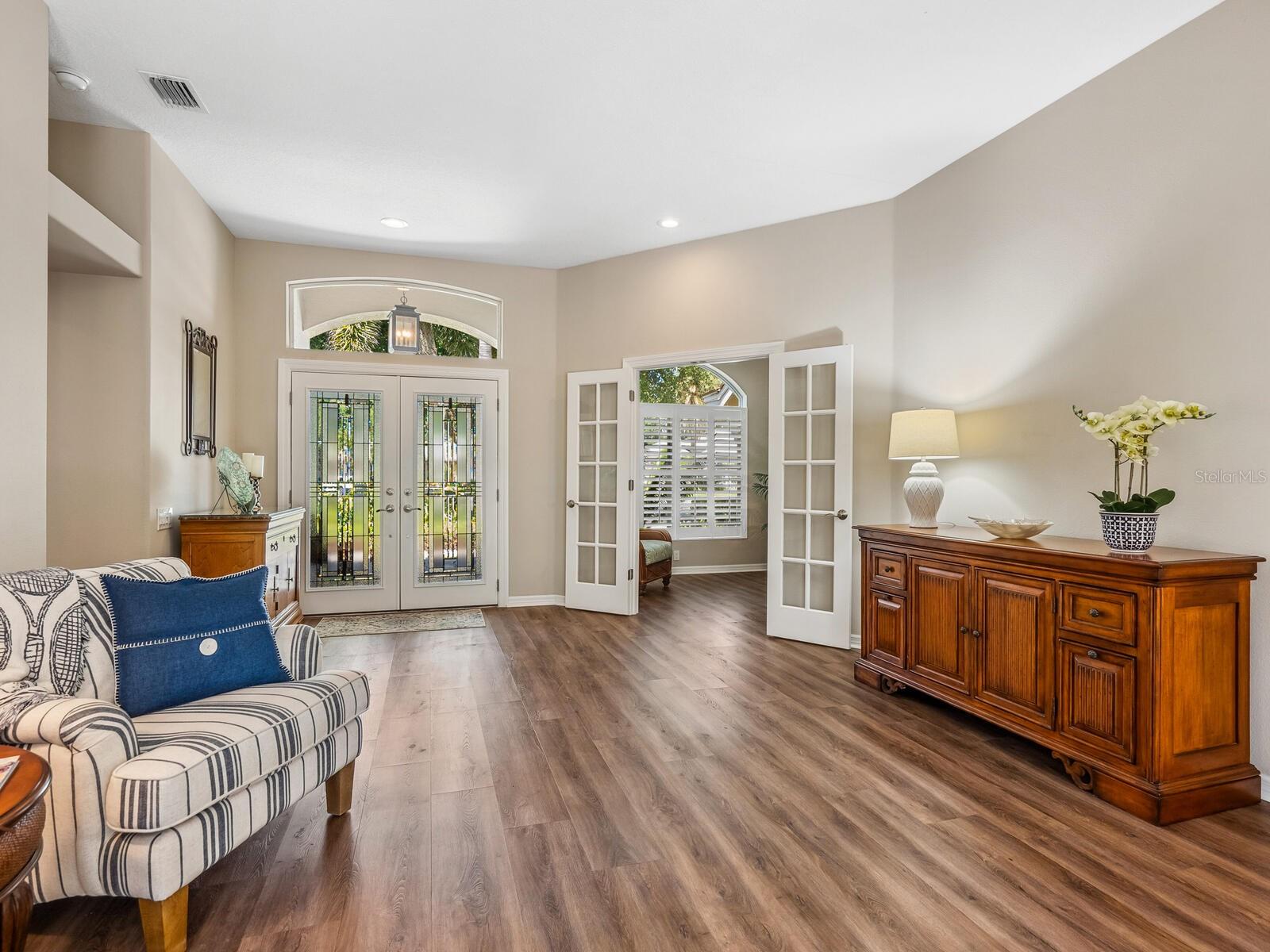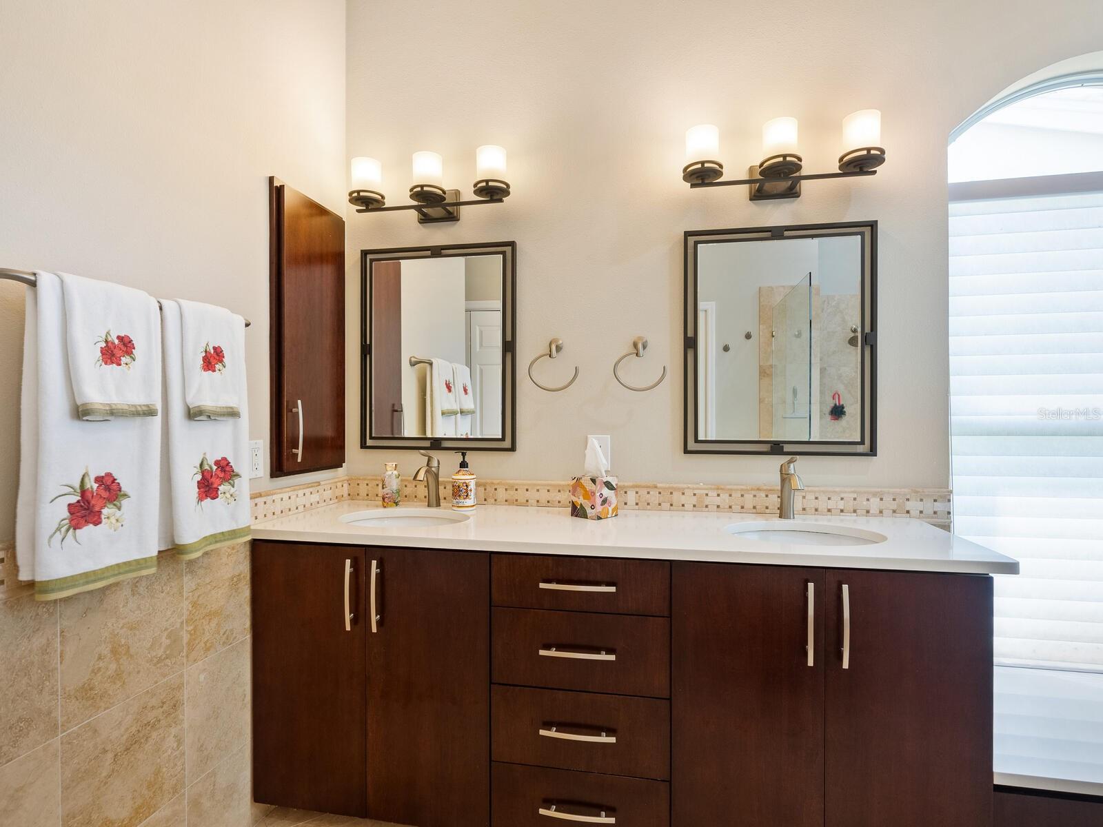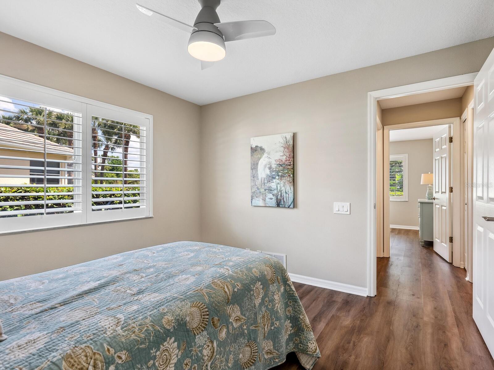 What a Sensational Pool area!! The large deck area with upscale travertine features a backdrop of gorgeous, mature trees providing privacy and beauty. A summer kitchen with bar, grill, sink, and refrigerator make alfresco dining a delight every day of the year. The generous sized pool offers a custom-in-floor cleaning system for easy maintenance. This 3 bedroom + den home is like new! Plus…it had a new roof in 2020! The spacious primary suite, with sliding glass doors, opens to the luxurious lanai and private back yard. The updated ensuite bath is stunning and features a generous walk-in shower. The kitchen has quality appliances, including an induction range and sleek microwave, with the island providing a workspace and a sit-down bar. The clean, well-organized garage has exceptional storage and work area. This home is positioned on a cul-de-sac, assuring privacy and quiet. The paver driveway and entry walk add warmth and a statement of quality as you approach this lovely home. Of special note is the wide, 114 feet rear lot dimension, creating a private, sweeping view of nature. The neighborhood provides yard maintenance and has a community pool and spa. In the gated Venice Golf and Country Club you are minutes from historic downtown Venice, beaches, I- 75, Wellen Park, dining, and shopping. The Club is private and member owned and offers a myriad of social, athletic, learning, and dining events. It has proudly earned an A+ financial rating. The clubhouse was renovated and expanded, and the wellness center is state-of-the-art. Membership is required. Please see attachments for details.