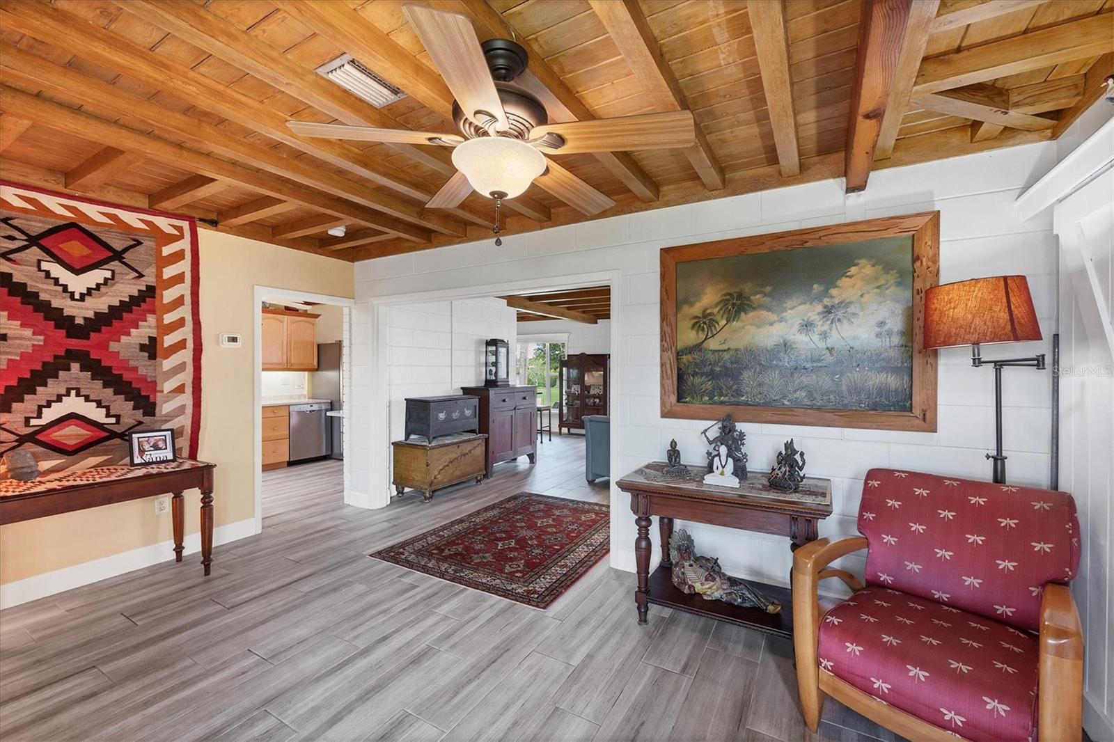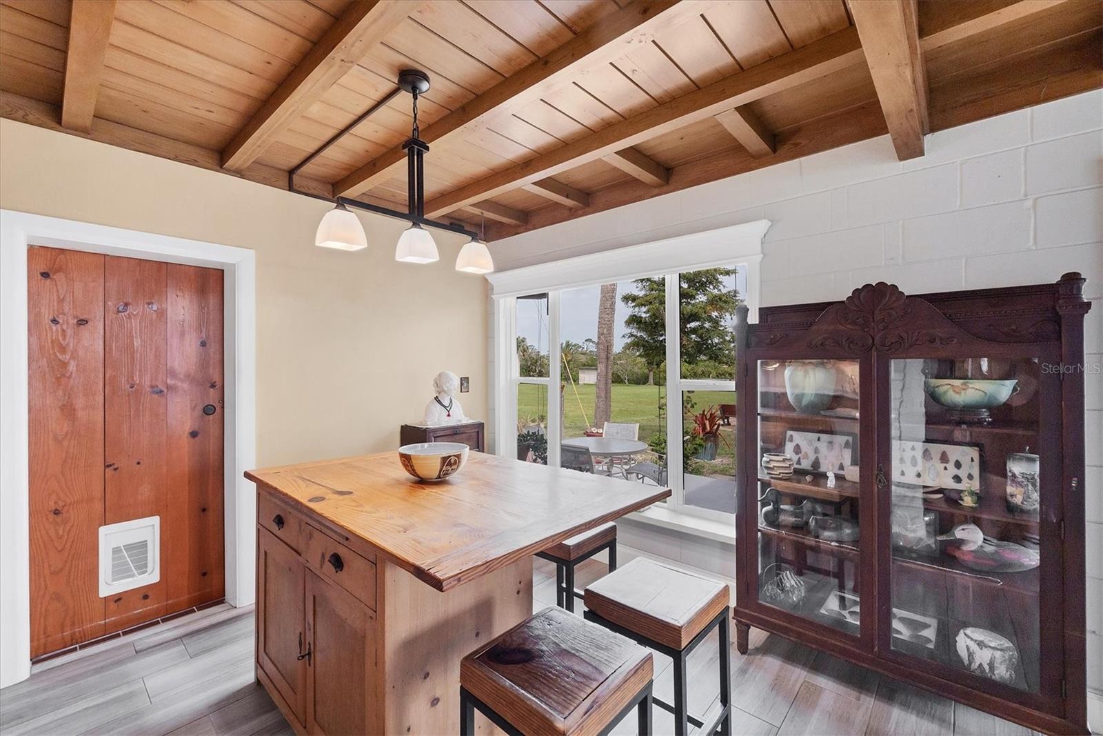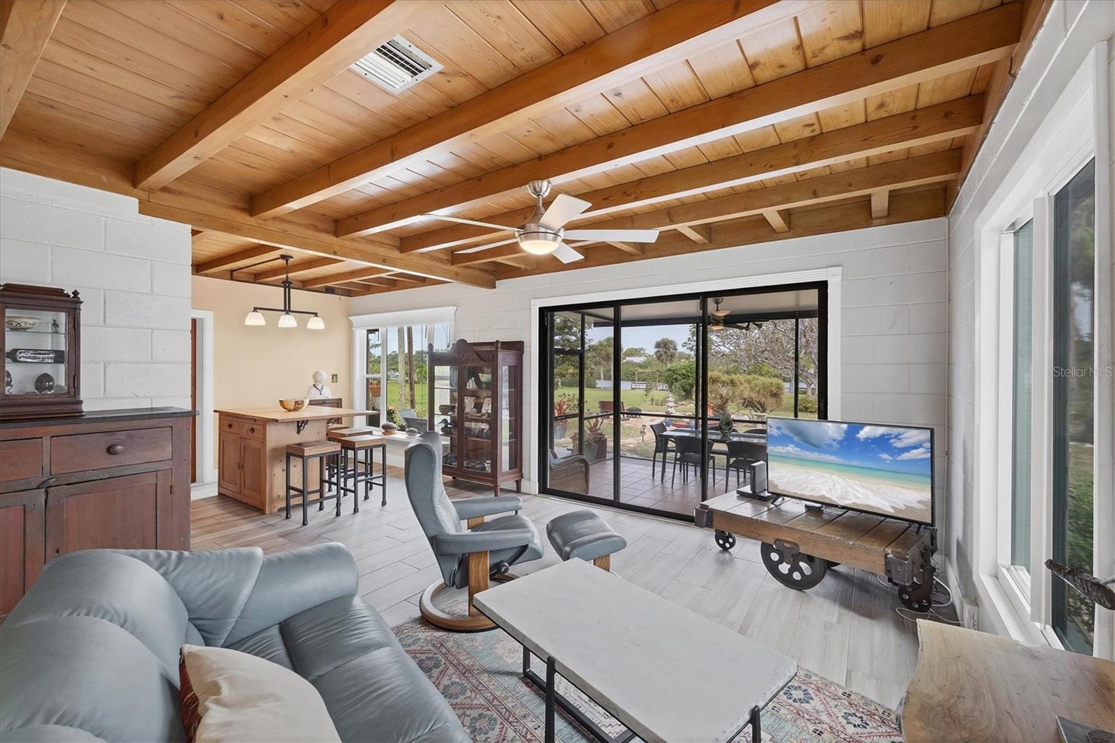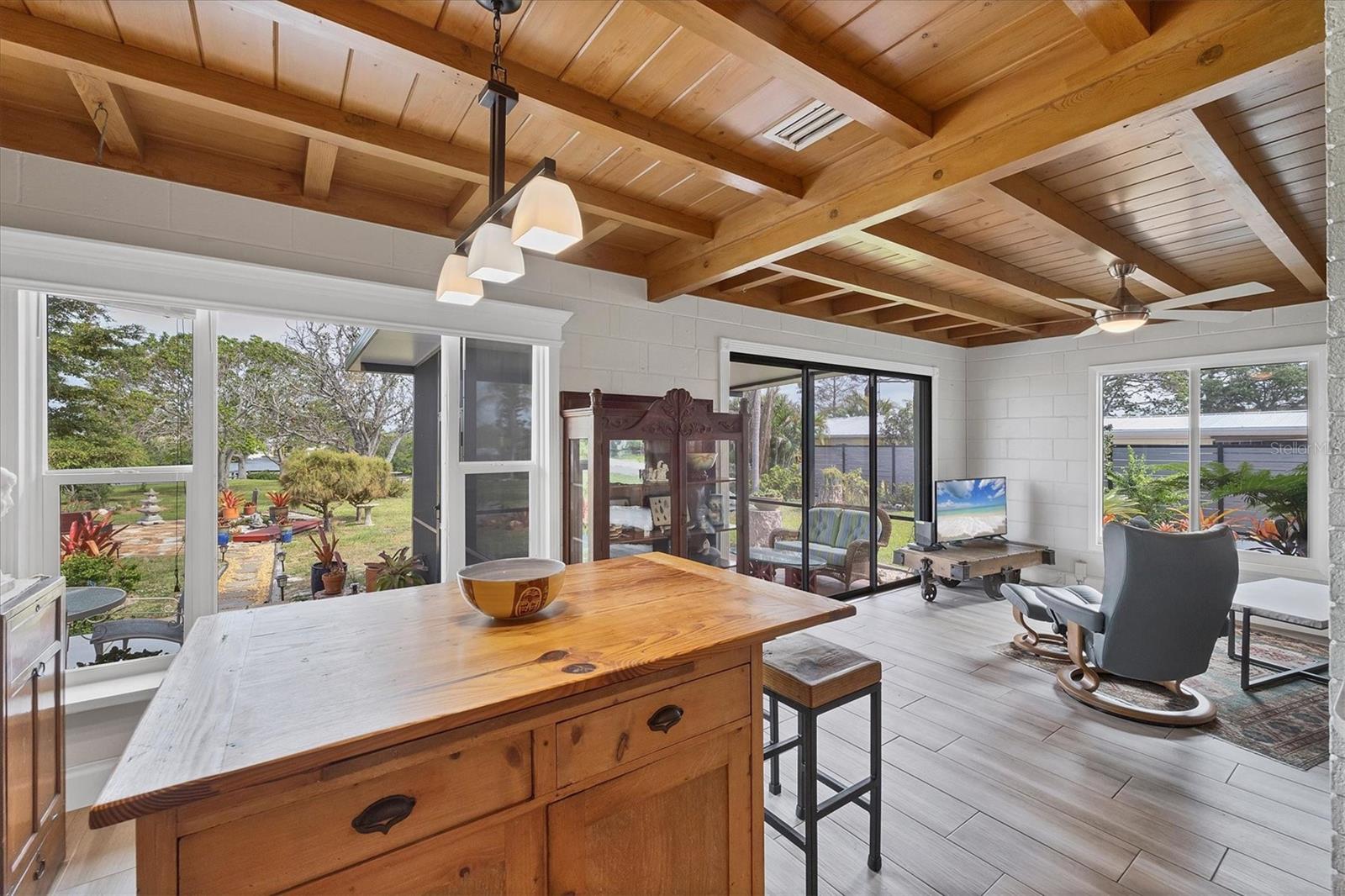 You've got a peaceful easy living, right here off a beautiful fresh natural creek! A unique opportunity to taste the old Florda lifestyle in this vintage 1952 built home on a large half-acre parcel. Kayak right off your back yard onto Alligator Creek and travel among mangroves straight to the Intracoastal -- and no bridges! Then travel down to Lemon Bay or up to Venice or out to the Gulf for added adventures! From your dock, you can catch snook or redfish for dinner, and maybe even tarpon for fun! Or take in some quiet moments in your special outdoor spaces, and appreciate the oasis of fragrant flowers, tropical plants & trees and its wildlife. In 2016, the home had a large owner's suite added to it's original footprint, adding more living space, but still keeping much of its old-world charm and character. Of special note are the beautiful and rich wood beam ceilings. At the same time, the owners also added high impact windows, and updated the kitchen and baths with cambria quartz countertops. Notable improvements include: New HVAC (2025), Roof (2022), Hot Water Heater (2021), and Septic cleaned and checked (2024). The kitchen appliances have 5-yr warranties: Microwave (2024), Refrigerator (2022), Dishwasher (2022), Range (2021). Water filtering system is Water Pro (2017) The room off of the kitchen is presently used as an office/sitting room, but with its large walk-in closet can be used as a 3rd bedroom. It has its own stand-alone Honeywell AC unit (2022), with special heat & light blocking curtains, and an outdoor light-filtering roller shade. There is also a 2nd electrical panel in the 3rd bedroom closet for possible generator use. The bright airy guest bath has a skylight and ceiling fan, with a combination tub/shower. The extra-large driveway can easily accommodate your boat or RV, and additional vehicles. In addition, there is lots of storage for your outdoor items: In the large storage space in the carport for parking your bicycles and maintenace items; in the shed by the creek; and in the smaller room (with AC!) off the back patio. Also at the back patio is an outdoor sink - a plus++ for the gardening enthusiast! For those times when you prefer to get out for a little hustle and bustle, this waterfront home is close to Historic Downtown Venice for fabulous dining, shopping and entertaining experiences - but still maintaining that small town feeling! So make sure you add this home on the top of your Tour of Homes list ... It's one you don't want to miss!