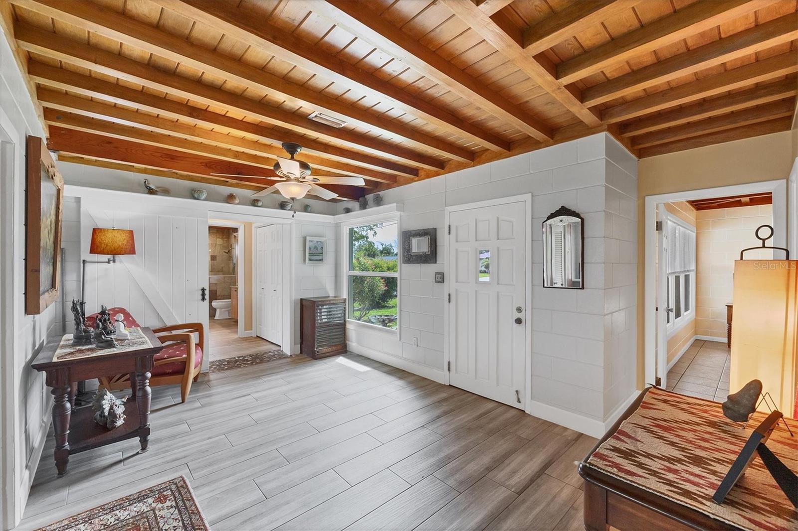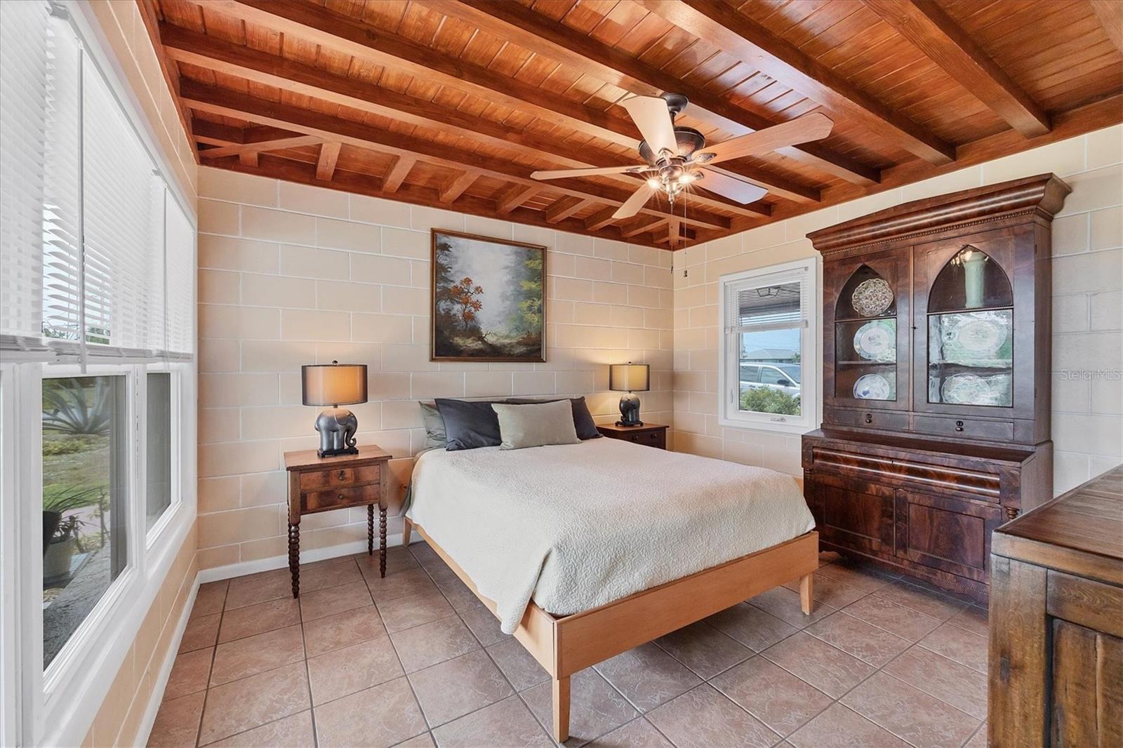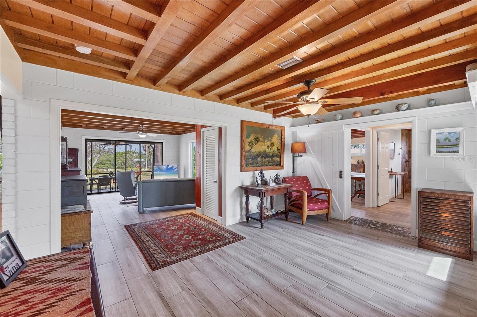 You've got a peaceful easy living, right here off a beautiful fresh natural creek! A unique opportunity to taste the old Florda lifestyle in this vintage 1952 built home on a large half-acre parcel. Kayak right off your back yard onto Alligator Creek and travel among mangroves straight to the Intracoastal -- and no bridges! Then travel down to Lemon Bay or up to Venice or out to the Gulf for added adventures! From your dock, you can catch snook or redfish for dinner, and maybe even tarpon for fun! Or take in some quiet moments in your special outdoor spaces, and appreciate the oasis of fragrant flowers, tropical plants & trees and its wildlife. In 2016, the home had a large owner's suite added to it's original footprint, adding more living space, but still keeping much of its old-world charm and character. Of special note are the beautiful and rich wood beam ceilings. At the same time, the owners also added high impact windows, and updated the kitchen and baths with cambria quartz countertops. Notable improvements include: New HVAC (2025), Roof (2022), Hot Water Heater (2021), and Septic cleaned and checked (2024). The kitchen appliances have 5-yr warranties: Microwave (2024), Refrigerator (2022), Dishwasher (2022), Range (2021). Water filtering system is Water Pro (2017) The room off of the kitchen is presently used as an office/sitting room, but with its large walk-in closet can be used as a 3rd bedroom. It has its own stand-alone Honeywell AC unit (2022), with special heat & light blocking curtains, and an outdoor light-filtering roller shade. There is also a 2nd electrical panel in the 3rd bedroom closet for possible generator use. The bright airy guest bath has a skylight and ceiling fan, with a combination tub/shower. The extra-large driveway can easily accommodate your boat or RV, and additional vehicles. In addition, there is lots of storage for your outdoor items: In the large storage space in the carport for parking your bicycles and maintenace items; in the shed by the creek; and in the smaller room (with AC!) off the back patio. Also at the back patio is an outdoor sink - a plus++ for the gardening enthusiast! For those times when you prefer to get out for a little hustle and bustle, this waterfront home is close to Historic Downtown Venice for fabulous dining, shopping and entertaining experiences - but still maintaining that small town feeling! So make sure you add this home on the top of your Tour of Homes list ... It's one you don't want to miss!
