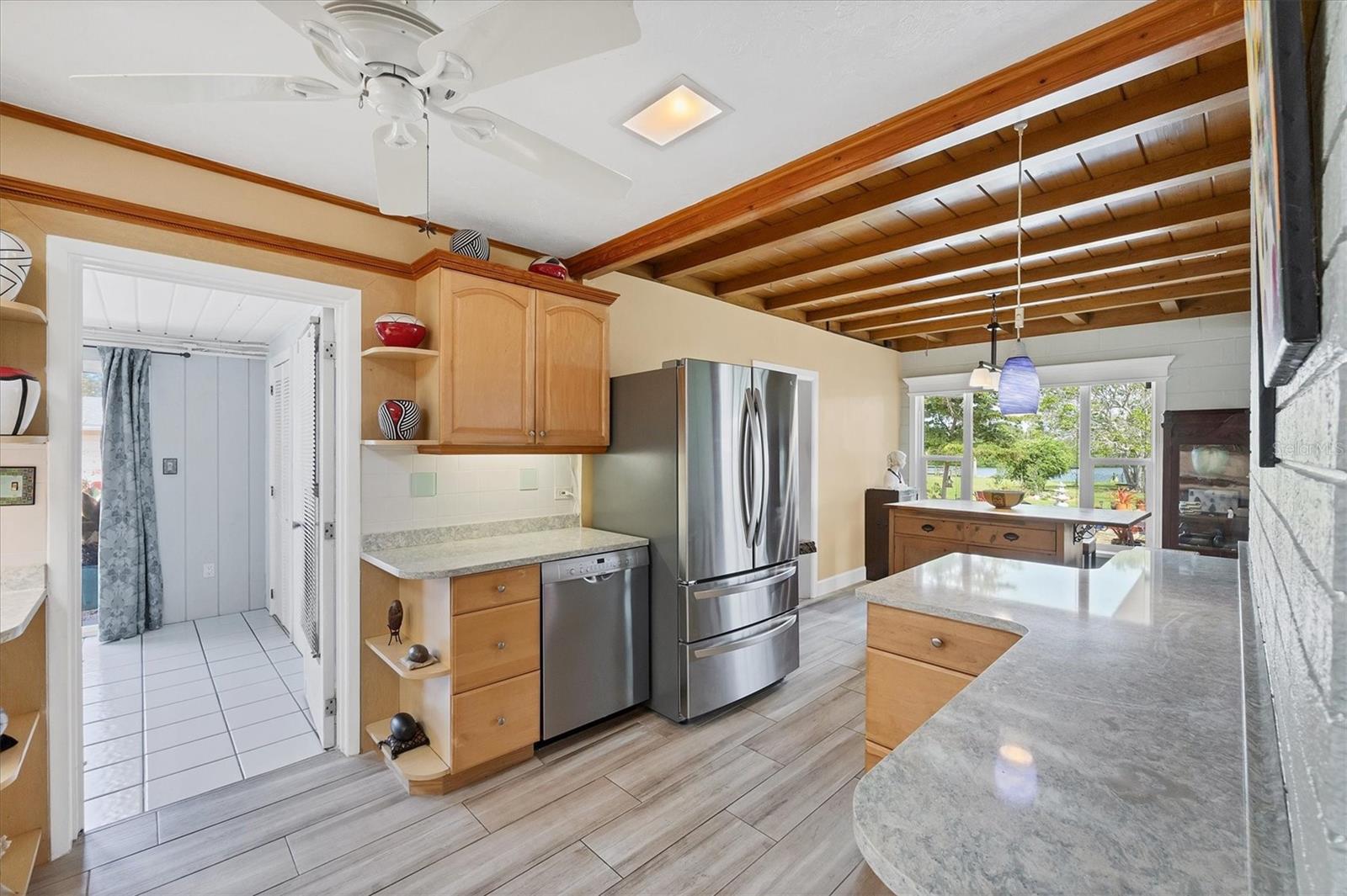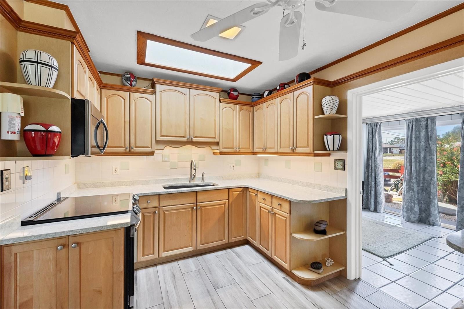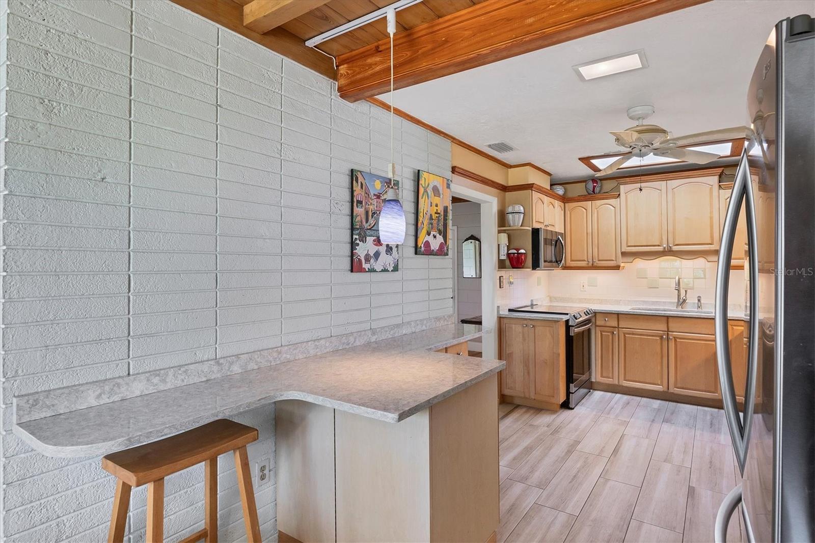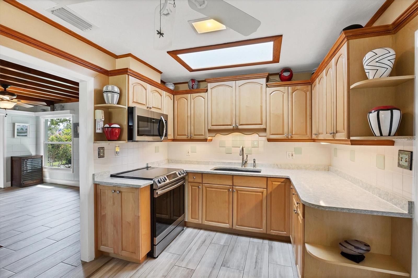 You've got a peaceful easy living, right here off a beautiful fresh natural creek! A unique opportunity to taste the old Florda lifestyle in this vintage 1952 built home on a large half-acre parcel. Kayak right off your back yard onto Alligator Creek and travel among mangroves straight to the Intracoastal -- and no bridges! Then travel down to Lemon Bay or up to Venice or out to the Gulf for added adventures! From your dock, you can catch snook or redfish for dinner, and maybe even tarpon for fun! Or take in some quiet moments in your special outdoor spaces, and appreciate the oasis of fragrant flowers, tropical plants & trees and its wildlife. In 2016, the home had a large owner's suite added to it's original footprint, adding more living space, but still keeping much of its old-world charm and character. Of special note are the beautiful and rich wood beam ceilings. At the same time, the owners also added high impact windows, and updated the kitchen and baths with cambria quartz countertops. Notable improvements include: New HVAC (2025), Roof (2022), Hot Water Heater (2021), and Septic cleaned and checked (2024). The kitchen appliances have 5-yr warranties: Microwave (2024), Refrigerator (2022), Dishwasher (2022), Range (2021). Water filtering system is Water Pro (2017) The room off of the kitchen is presently used as an office/sitting room, but with its large walk-in closet can be used as a 3rd bedroom. It has its own stand-alone Honeywell AC unit (2022), with special heat & light blocking curtains, and an outdoor light-filtering roller shade. There is also a 2nd electrical panel in the 3rd bedroom closet for possible generator use. The bright airy guest bath has a skylight and ceiling fan, with a combination tub/shower. The extra-large driveway can easily accommodate your boat or RV, and additional vehicles. In addition, there is lots of storage for your outdoor items: In the large storage space in the carport for parking your bicycles and maintenace items; in the shed by the creek; and in the smaller room (with AC!) off the back patio. Also at the back patio is an outdoor sink - a plus++ for the gardening enthusiast! For those times when you prefer to get out for a little hustle and bustle, this waterfront home is close to Historic Downtown Venice for fabulous dining, shopping and entertaining experiences - but still maintaining that small town feeling! So make sure you add this home on the top of your Tour of Homes list ... It's one you don't want to miss!