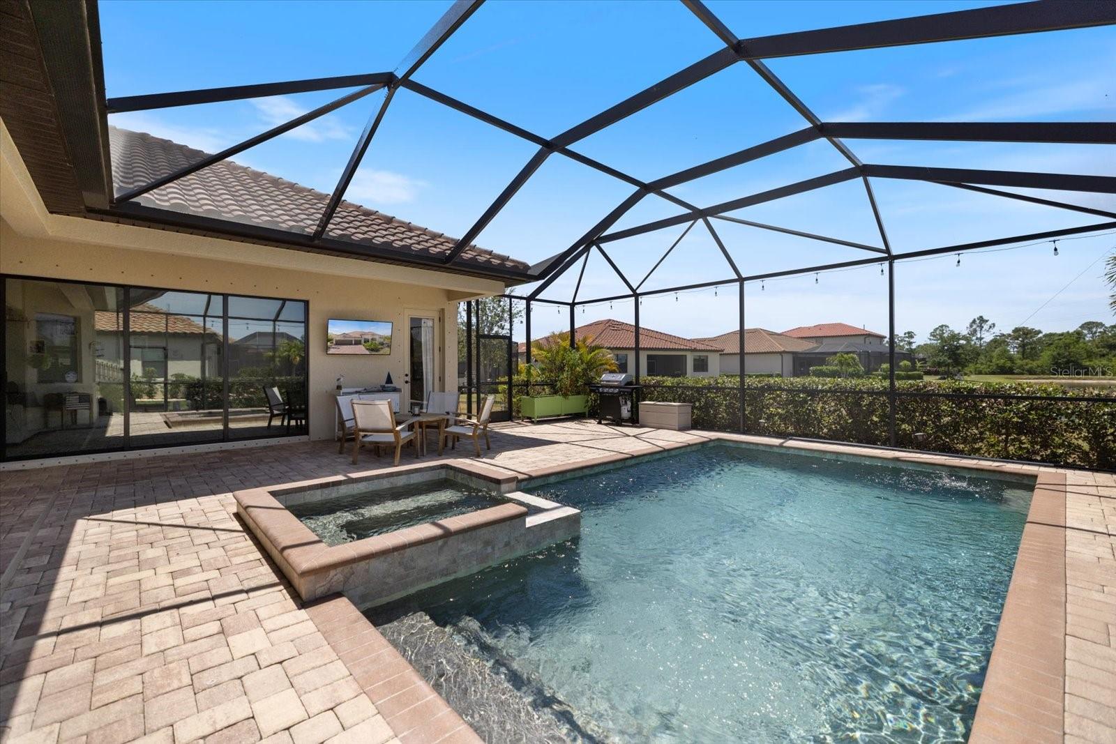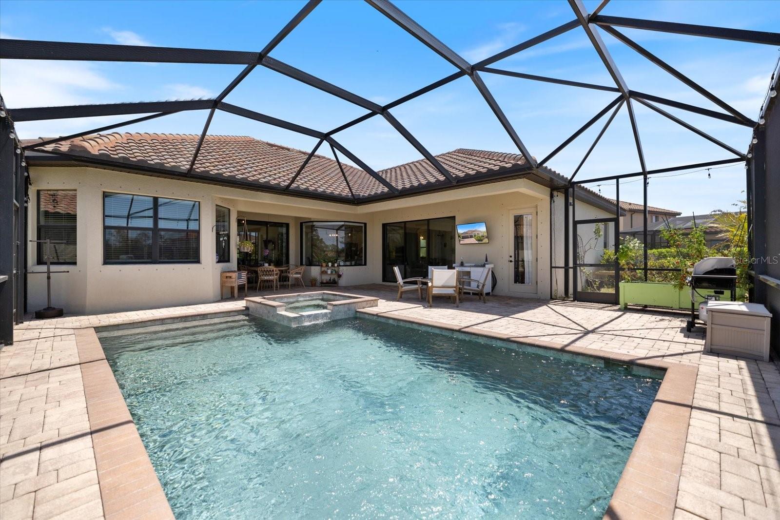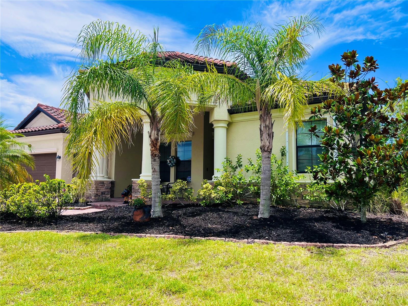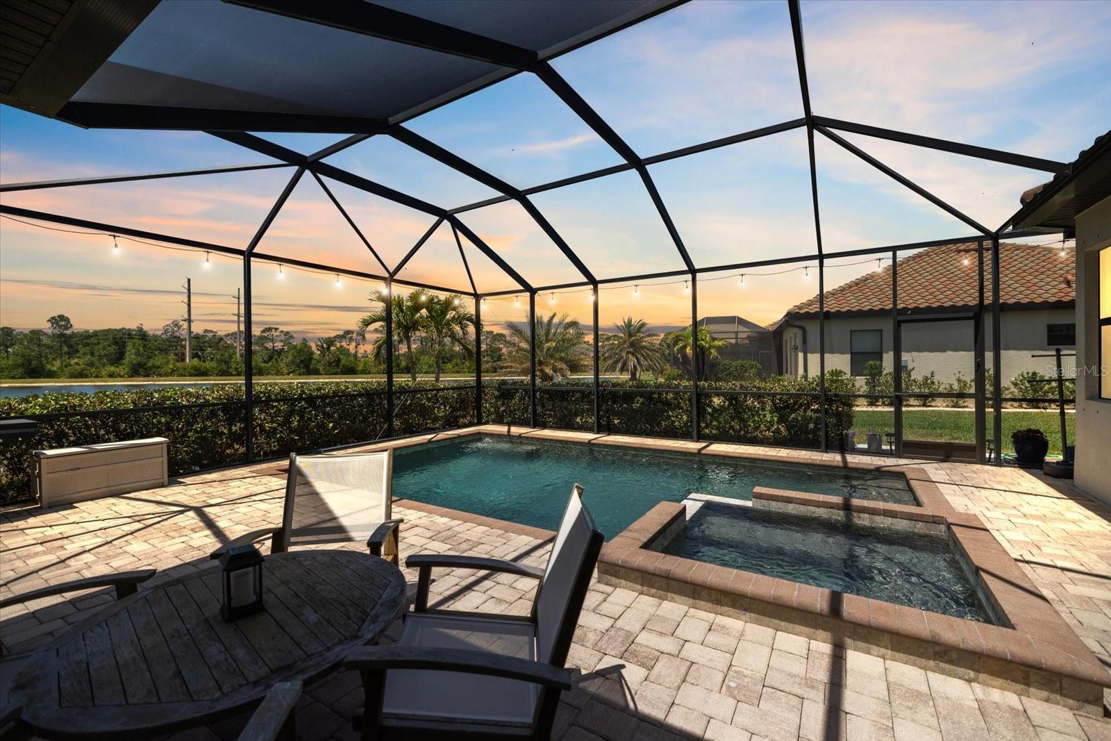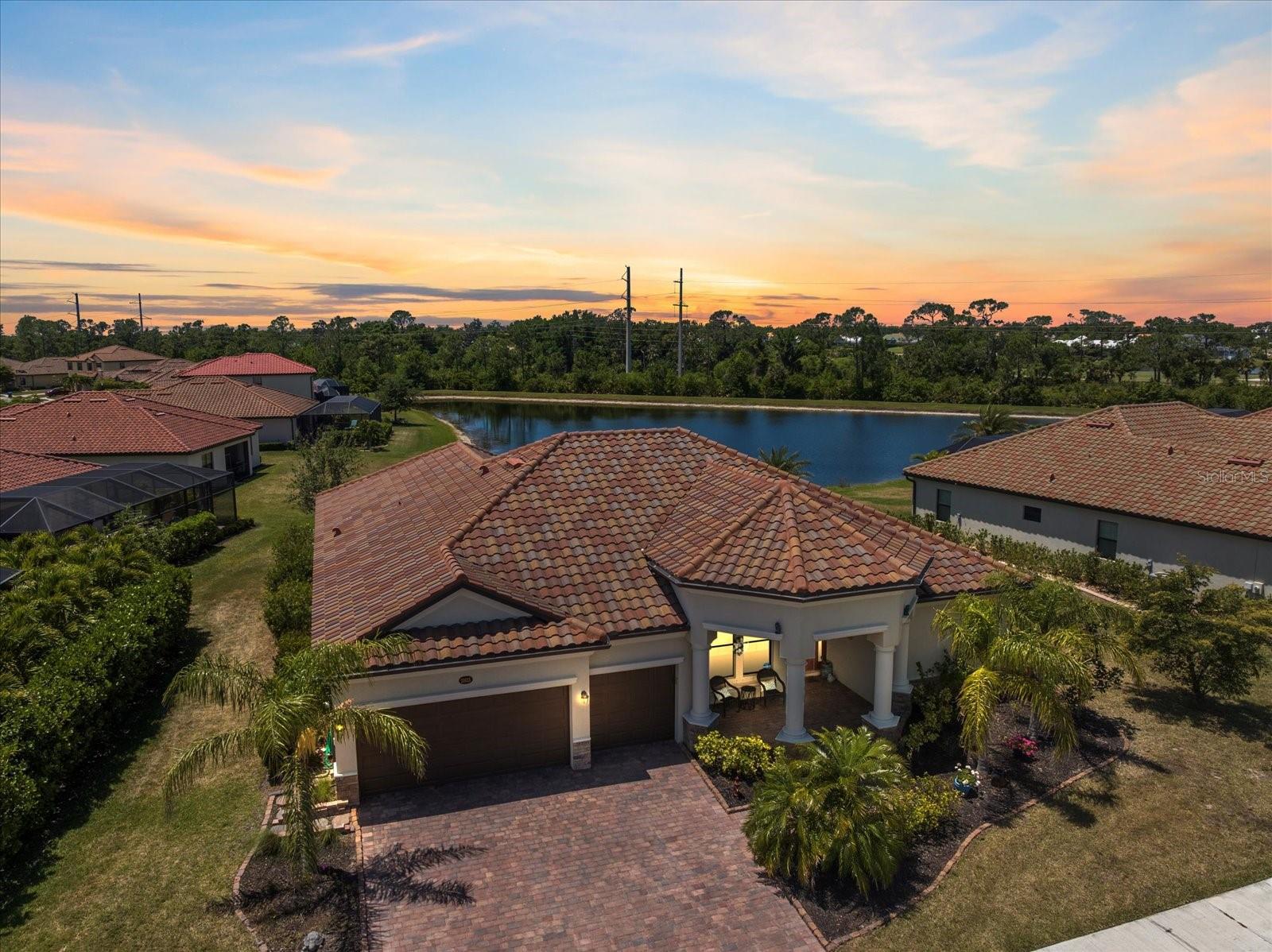 1-YEAR HOME WARRANTY INCLUDED for the New Buyer! Welcome to your dream home in the highly sought-after GOLF CART FRIENDLY community of Wellen Park! This beautifully upgraded 4-bedroom, 3-bathroom estate home with a 3-CAR GARAGE sits on an oversized lot and offers breathtaking sunset views over the water from your private outdoor oasis. From the moment you enter, you’ll be impressed by the high ceilings, extended-height doorways, custom crown molding, and elegant finishes throughout this fully tiled home. The open-concept layout is ideal for both everyday living and entertaining, with a spacious great room and a chef’s kitchen featuring granite countertops, tile backsplash, stainless steel appliances, large pantry, and abundant tall white cabinetry. With UNDER LIGHTING. Enjoy meals or morning coffee in the breakfast nook with aquarium glass windows, offering the best views in the house. The living room features tray ceilings and full wall sliders that seamlessly open to a truly expansive screened lanai with paver decking, panoramic lake views, and 1,000 sq ft of additional outdoor living space. Relax in the custom pool and spa, perfectly positioned to take in unforgettable Florida sunsets. Retreat to the luxurious primary suite complete with a bay window overlooking the lake, private lanai access, walk-in closet, and spa-style bath featuring double vanities, a soaking tub, and a separate walk-in shower. A formal dining room provides space for hosting special gatherings, and the split floor plan offers three additional generously sized bedrooms—one ideally located for guests or a potential in-law suite with its own full bath that doubles as a pool bath. Additional highlights include an oversized 3-car garage (620 sq ft) with overhead storage, HURRICANE PROTECTION for all windows and sliders, X Flood Zone – no flood insurance required, UV light added to HVAC system for improved air quality and lush, mature landscaping for enhanced privacy. The monthly HOA fee includes cable, internet, lawn, and full access to resort-style amenities: guard-gated entrance, community clubhouse, resort-style pool, fitness center, sauna, hot tub, tennis, pickleball, basketball, playground, and year-round events like ladies nights and happy hours. All of this is located just minutes from gulf beaches, top-rated schools, shopping, dining, CoolToday Park (Atlanta Braves spring training), and the vibrant Downtown Wellen Park—where you can take your golf cart to enjoy live music, yoga, farmers markets, dining, and more. Don’t wait to start living your Florida dream—schedule your private showing today!