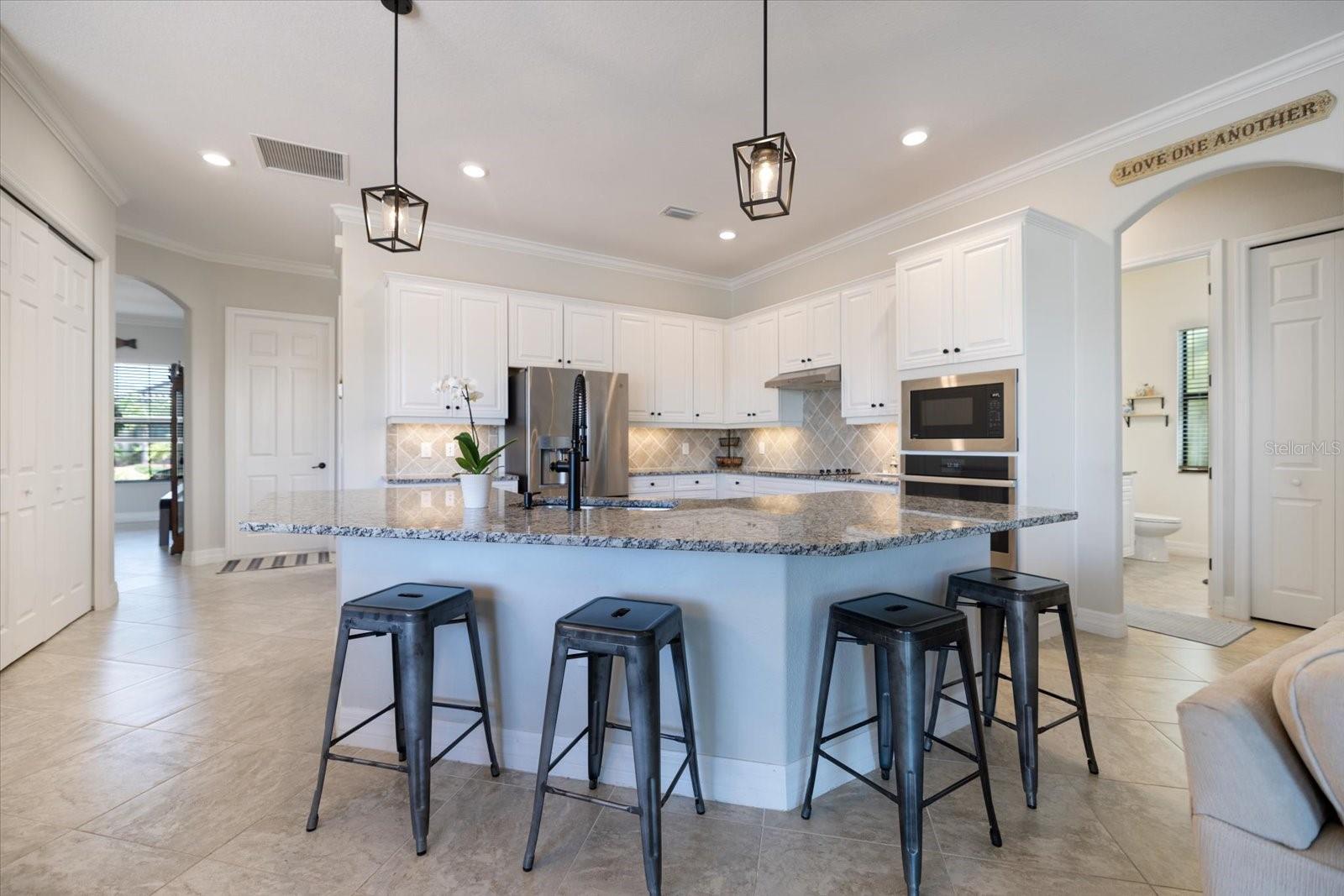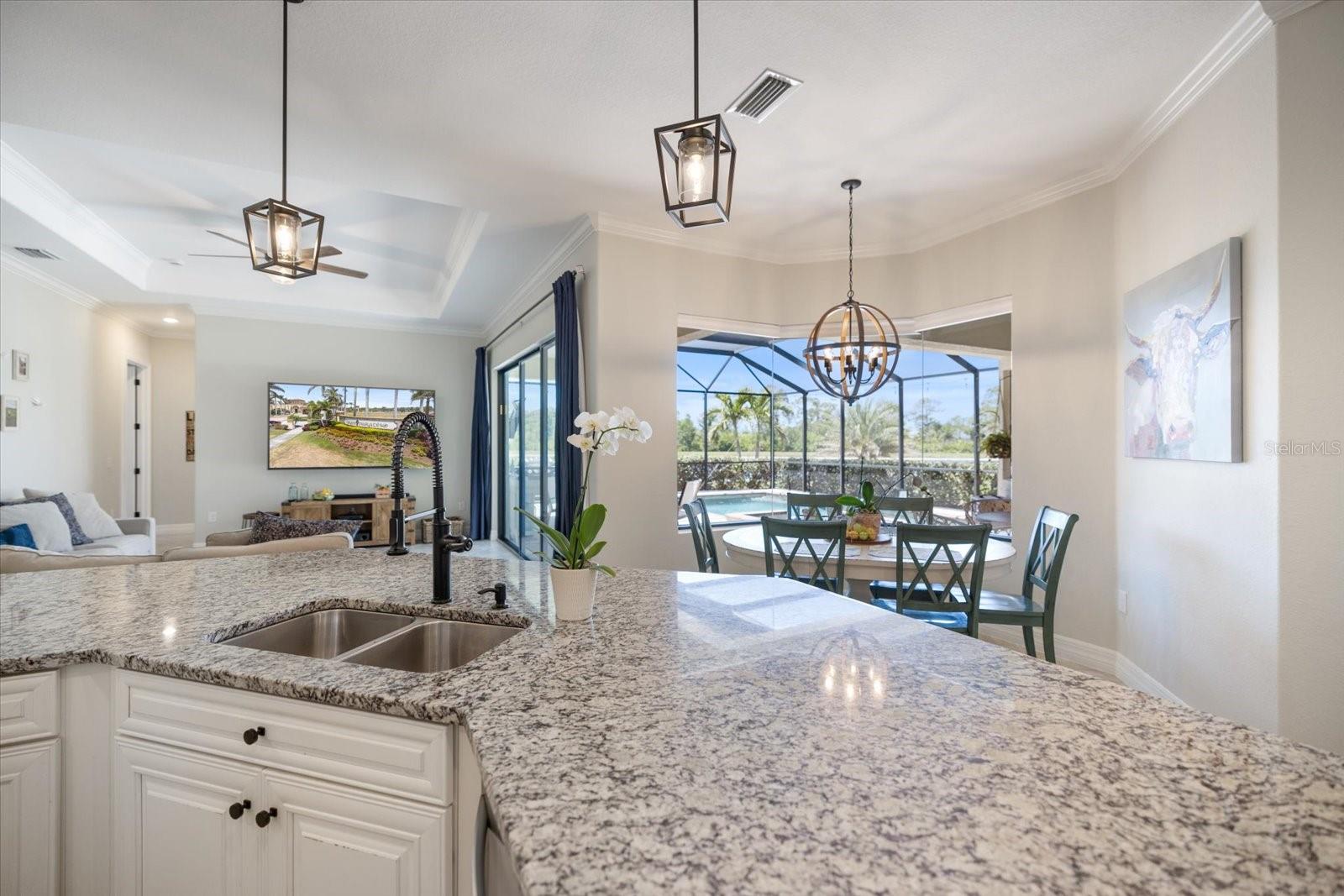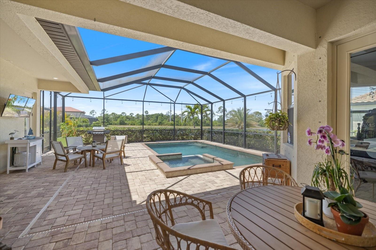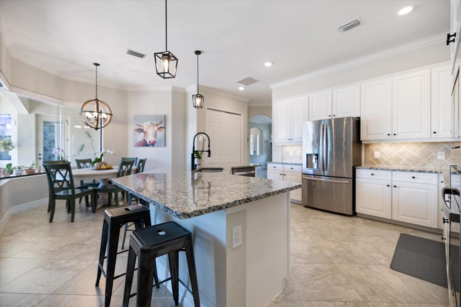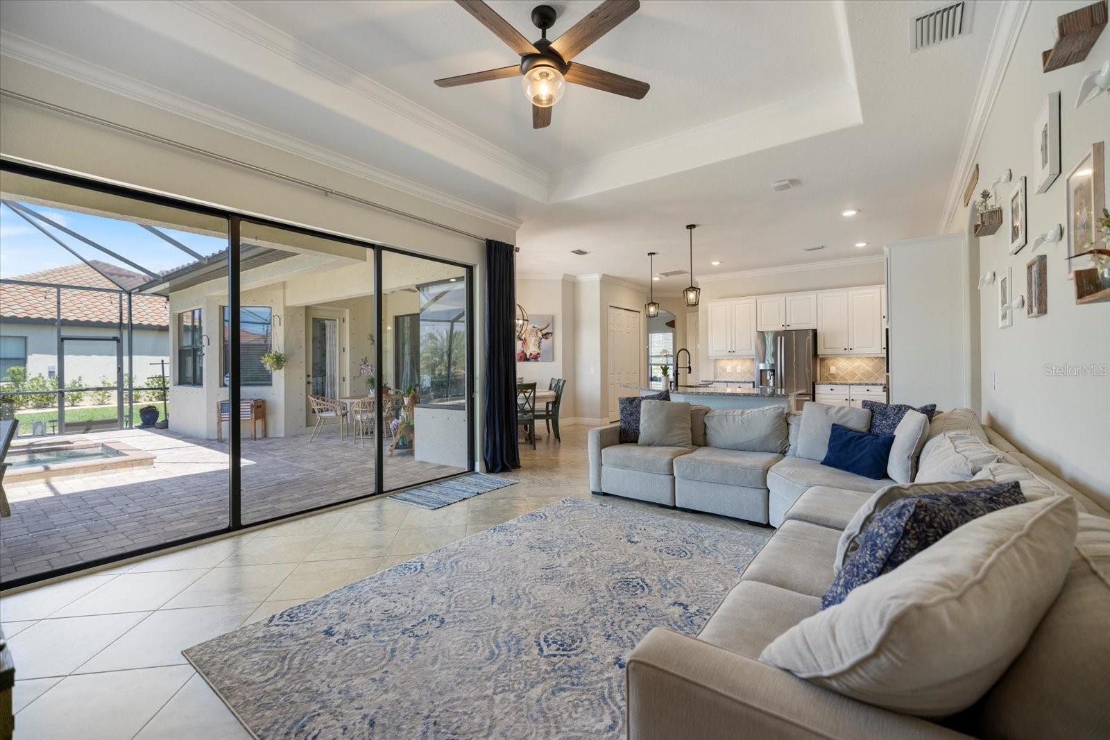 1-YEAR HOME WARRANTY INCLUDED for the New Buyer! Welcome to your dream home in the highly sought-after GOLF CART FRIENDLY community of Wellen Park! This beautifully upgraded 4-bedroom, 3-bathroom estate home with a 3-CAR GARAGE sits on an oversized lot and offers breathtaking sunset views over the water from your private outdoor oasis. From the moment you enter, you’ll be impressed by the high ceilings, extended-height doorways, custom crown molding, and elegant finishes throughout this fully tiled home. The open-concept layout is ideal for both everyday living and entertaining, with a spacious great room and a chef’s kitchen featuring granite countertops, tile backsplash, stainless steel appliances, large pantry, and abundant tall white cabinetry. With UNDER LIGHTING. Enjoy meals or morning coffee in the breakfast nook with aquarium glass windows, offering the best views in the house. The living room features tray ceilings and full wall sliders that seamlessly open to a truly expansive screened lanai with paver decking, panoramic lake views, and 1,000 sq ft of additional outdoor living space. Relax in the custom pool and spa, perfectly positioned to take in unforgettable Florida sunsets. Retreat to the luxurious primary suite complete with a bay window overlooking the lake, private lanai access, walk-in closet, and spa-style bath featuring double vanities, a soaking tub, and a separate walk-in shower. A formal dining room provides space for hosting special gatherings, and the split floor plan offers three additional generously sized bedrooms—one ideally located for guests or a potential in-law suite with its own full bath that doubles as a pool bath. Additional highlights include an oversized 3-car garage (620 sq ft) with overhead storage, HURRICANE PROTECTION for all windows and sliders, X Flood Zone – no flood insurance required, UV light added to HVAC system for improved air quality and lush, mature landscaping for enhanced privacy. The monthly HOA fee includes cable, internet, lawn, and full access to resort-style amenities: guard-gated entrance, community clubhouse, resort-style pool, fitness center, sauna, hot tub, tennis, pickleball, basketball, playground, and year-round events like ladies nights and happy hours. All of this is located just minutes from gulf beaches, top-rated schools, shopping, dining, CoolToday Park (Atlanta Braves spring training), and the vibrant Downtown Wellen Park—where you can take your golf cart to enjoy live music, yoga, farmers markets, dining, and more. Don’t wait to start living your Florida dream—schedule your private showing today!