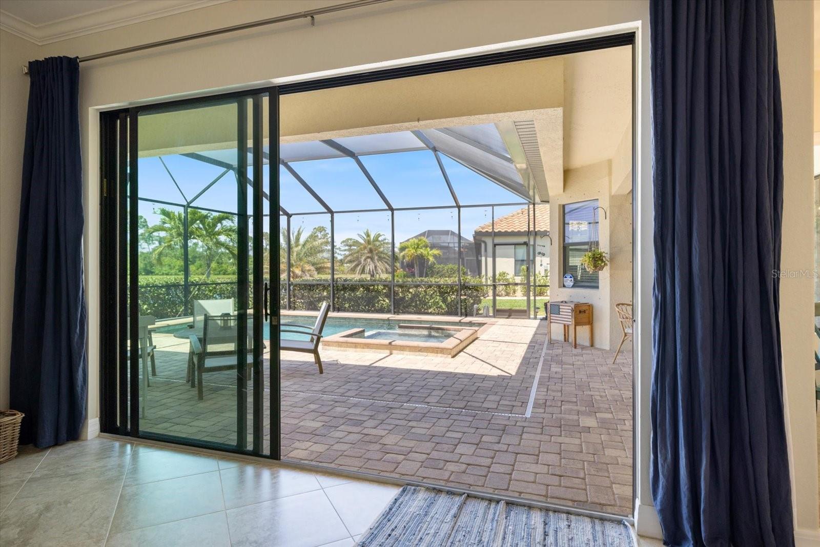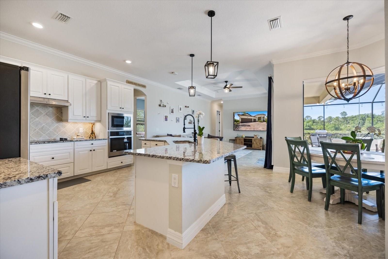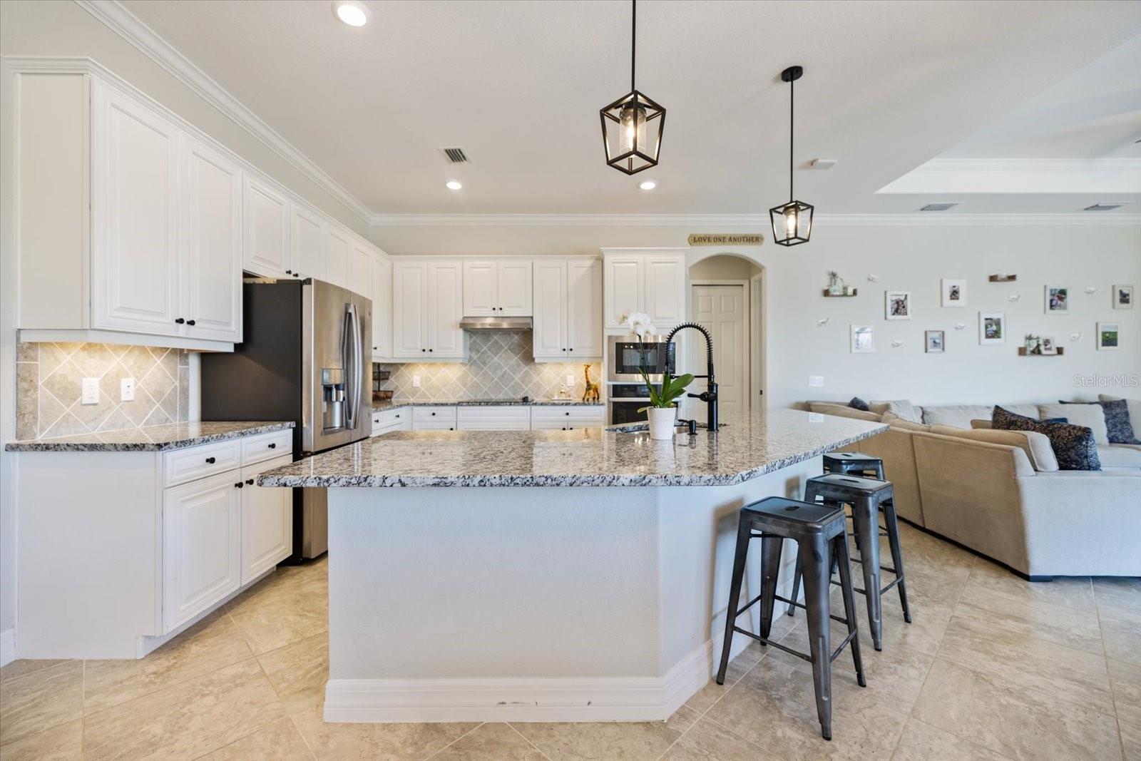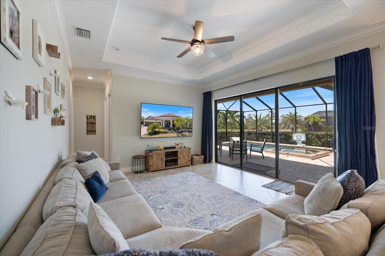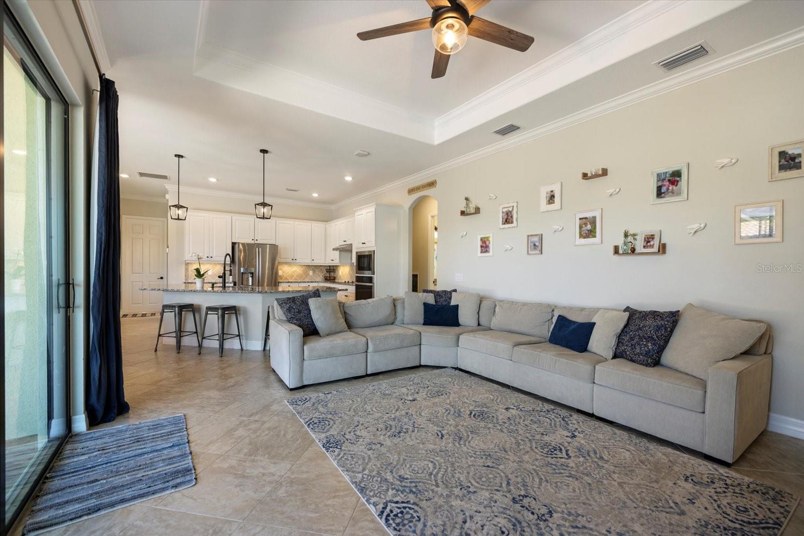 1-YEAR HOME WARRANTY INCLUDED for the New Buyer! Welcome to your dream home in the highly sought-after GOLF CART FRIENDLY community of Wellen Park! This beautifully upgraded 4-bedroom, 3-bathroom estate home with a 3-CAR GARAGE sits on an oversized lot and offers breathtaking sunset views over the water from your private outdoor oasis. From the moment you enter, you’ll be impressed by the high ceilings, extended-height doorways, custom crown molding, and elegant finishes throughout this fully tiled home. The open-concept layout is ideal for both everyday living and entertaining, with a spacious great room and a chef’s kitchen featuring granite countertops, tile backsplash, stainless steel appliances, large pantry, and abundant tall white cabinetry. With UNDER LIGHTING. Enjoy meals or morning coffee in the breakfast nook with aquarium glass windows, offering the best views in the house. The living room features tray ceilings and full wall sliders that seamlessly open to a truly expansive screened lanai with paver decking, panoramic lake views, and 1,000 sq ft of additional outdoor living space. Relax in the custom pool and spa, perfectly positioned to take in unforgettable Florida sunsets. Retreat to the luxurious primary suite complete with a bay window overlooking the lake, private lanai access, walk-in closet, and spa-style bath featuring double vanities, a soaking tub, and a separate walk-in shower. A formal dining room provides space for hosting special gatherings, and the split floor plan offers three additional generously sized bedrooms—one ideally located for guests or a potential in-law suite with its own full bath that doubles as a pool bath. Additional highlights include an oversized 3-car garage (620 sq ft) with overhead storage, HURRICANE PROTECTION for all windows and sliders, X Flood Zone – no flood insurance required, UV light added to HVAC system for improved air quality and lush, mature landscaping for enhanced privacy. The monthly HOA fee includes cable, internet, lawn, and full access to resort-style amenities: guard-gated entrance, community clubhouse, resort-style pool, fitness center, sauna, hot tub, tennis, pickleball, basketball, playground, and year-round events like ladies nights and happy hours. All of this is located just minutes from gulf beaches, top-rated schools, shopping, dining, CoolToday Park (Atlanta Braves spring training), and the vibrant Downtown Wellen Park—where you can take your golf cart to enjoy live music, yoga, farmers markets, dining, and more. Don’t wait to start living your Florida dream—schedule your private showing today!
