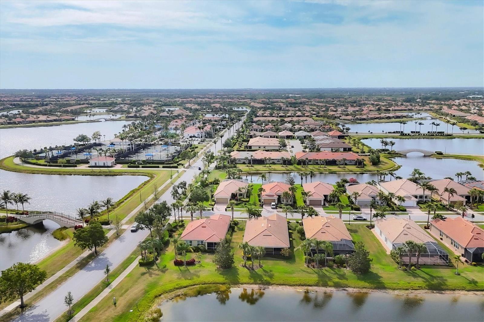 Rarely available Rainer model home in Islandwalk at the West Villages, just steps away from the incredible Community Amenities Center! Welcome to this beautifully appointed 3-bedroom, 2-bath home with office/den and 2-car garage, located in the highly sought-after Islandwalk, a vibrant resort-style community known for its exceptional amenities and prime location! Situated on a premium lakefront lot, this spacious home offers a thoughtfully designed split floor plan, with an open, airy layout, ideal for entertaining and everyday living. The heart of the home is the stunning kitchen, featuring an oversized 15 ft island with granite countertops, abundant custom cabinetry, stainless steel appliances, built in cooktop, wall oven, large walk-in pantry, and elegant finishes. The kitchen seamlessly opens to the living and dining areas, all with gorgeous views of the screened lanai and sparkling lake beyond. The owner’s suite is a private retreat with tray ceilings, oversized windows offering tranquil water views, and two large walk-in closets. The en-suite bath includes double vanities, linen closet, and an oversized glass enclosed Roman shower for a spa-like experience. Two generously sized guest bedrooms are tucked away in their own wing, sharing a well-appointed bathroom, offreing comfort and privacy for family or guests. Additionally there is a versatile den/office with glass French doors and engineered hardwood flooring, perfect for working from home or relaxing with a good book. This home also features a spacious laundry room with built-in cabinetry for extra storage, a folding station, and laundry sink. Additional upgrades throughout include crown molding, plantation shutters, ceramic tile and hardwood throughout, a screened front porch, bay windows, mature landscaping, accordion hurricane shutters for peace of mind, and an oversized screened lanai with peaceful lake views, ideal for enjoying the Florida outdoor lifestyle! Islandwalk is an active and social community boasting two clubhouses, an event center, two resort-style pools, a lap pool, Har Tru tennis courts, eight Pickleball courts, fitness center, a basketball court, playground, dog park, walking and biking trails, and a community garden, all within a few steps from your front door! With two full time activity directors and endless clubs and events, there’s something for everyone! Enjoy golf cart access to the Marketplace with shops, restaurants, Publix, and more. Also just minutes from the Atlanta Braves Spring Training stadium, beaches, the historic Venice Island, downtown Wellen Park, and an easy drive to Sarasota, I-75, St. Armand’s Circle, Siesta Key Beach, and the Sarasota Airport. Don’t miss your chance to own this rare Rainer model in one of the most desirable neighborhoods in Southwest Florida!