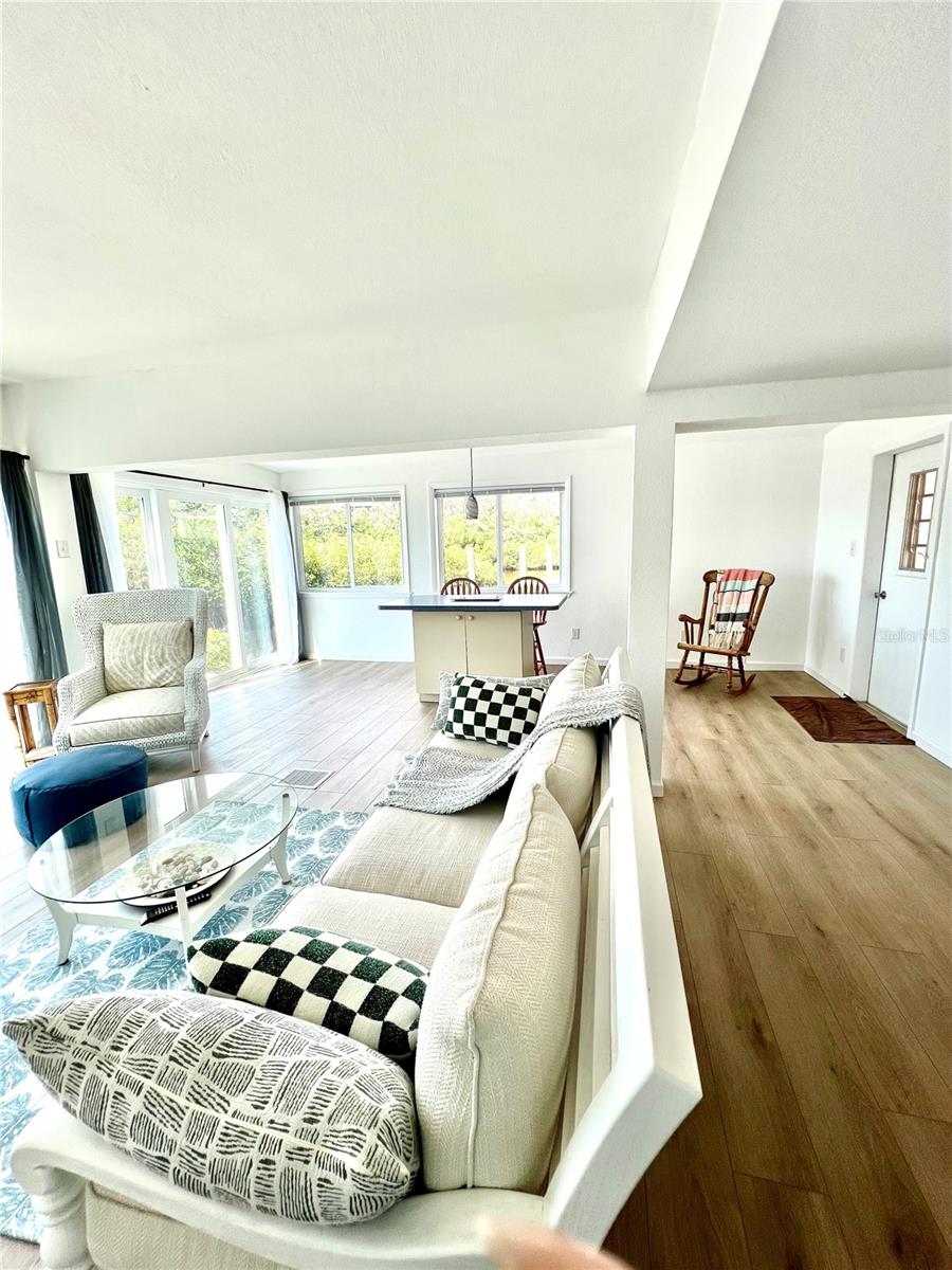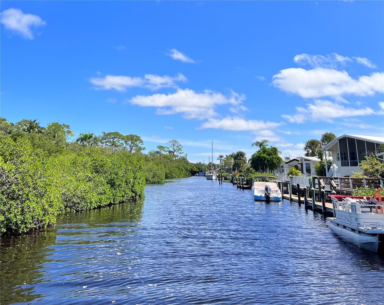 Fresh Paint! WATERFRONT IN NORTH VENICE UNDER $300,000! Bring your boat, no bridges to the Gulf. Your Very Own Private Boat Dock!! Community Boat ramp, boat dry storage, boat slips. This lovely bay front sunset cottage has stellar canal and bay views as you walk thru the door. Over 700 sf of open concept living. Living room, kitchen, dining area, new membrane roof, with new impact resistant sliders that offer an expansive canal, mangroves, bay views. Primary bedroom 11X18, built in dresser and three closets and with updated overhead fan light fixture. Butcher block counters in kitchen with newer farm sink. Bathroom has butcher block counters with a walk in shower. Fresh Paint, New Luxury Vinyl Planking, in sand tones. Now ready for your final decorating touches to make it yours. Turn Key, just bring your boat and suitcase! Highly desirable Harbor Lights Cooperative 55+ RESORT LIVING! And no lot rent, resident owned, property taxes, monthly maintenance $250. Fish off your own dock! Must own 2 years before renting. Dock can be rented out. Walk to restaurants, shopping and doctors close by. Tennis, pickle ball, shuffle board, geo thermal pool, clubhouse and walk or bike the Legacy Trail and so much more. Harbor Lights is a 16 acre peninsula surrounded by Roberts Bay and the Intracoastal. Two car inline driveway parking with a storage shed. Seller says sell! No interior flood damage. HVAC serviced and new water heater 9/2025.