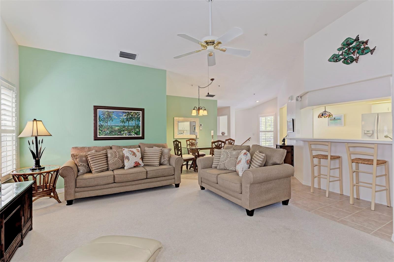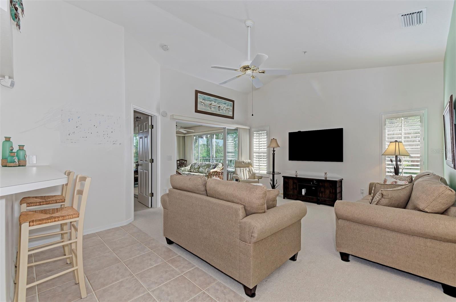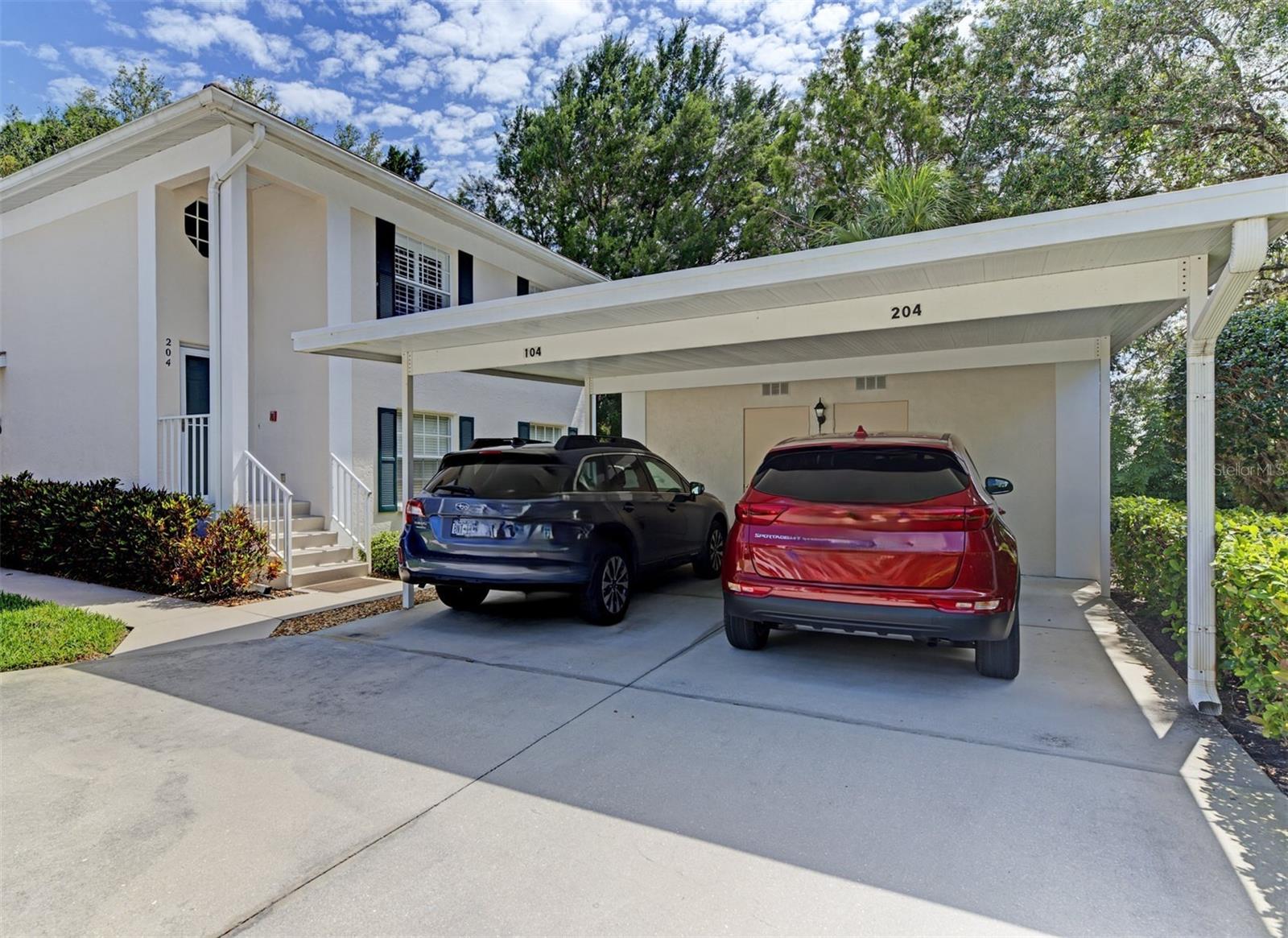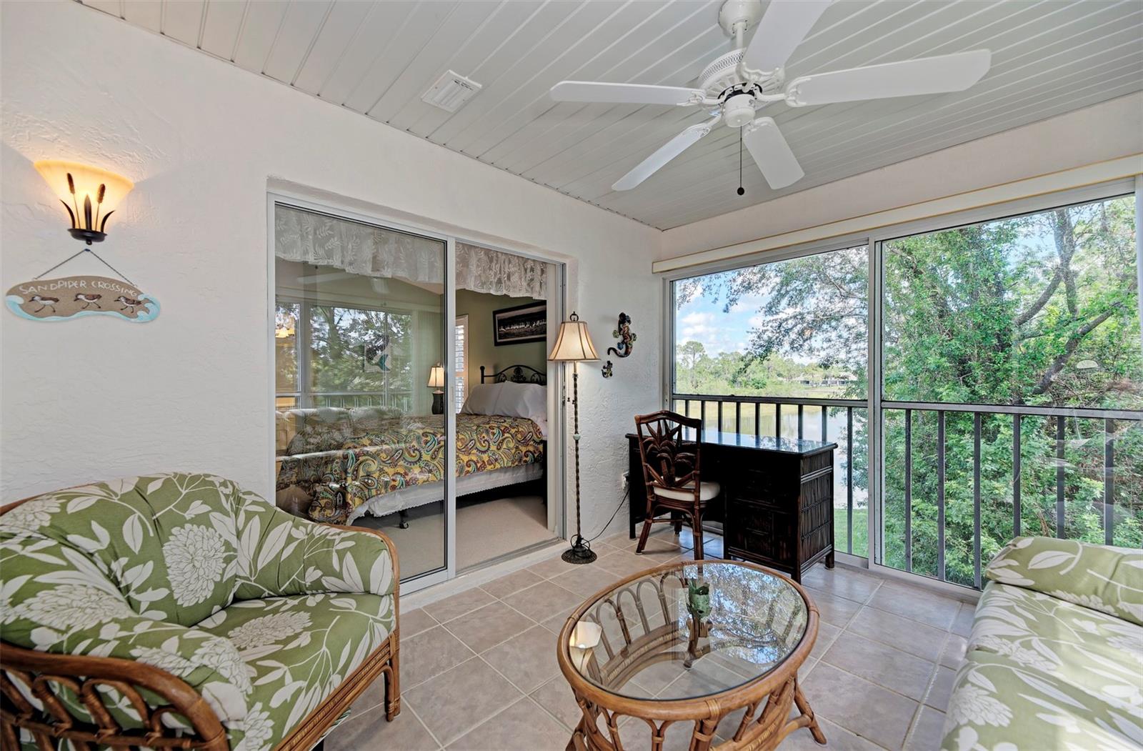 Welcome to The Gardens 1 of St. Andrews Park at The Plantation, Building 2, Unit 204. This second floor end unit has a water & nature view (imagine a tree house) & interior that is welcoming, comfortable, efficient, clean, & ready to be lived in once again. It is turnkey furnished (less some personal exclusions) & ready for a new occupant. Let's begin with comfort. The owner's bedroom is spacious with a walk-in closet, cozy carpeting under foot, & ensuite bathroom. The bathroom has a double-sink vanity & easy step-in shower. A sliding door accesses the adjoining Florida room that begs for end-of-day relaxation, or a late evening night cap. The Florida room also adjoins the living room for extended living space. The living room is in the center of the unit & adjoins a dining area and is open to the kitchen. The fully-applianced kitchen is efficient for preparing small snacks to large meals, with a pantry closet for food and prep materials. The eating area is not confined to one space. The kitchen has a dinette area, a breakfast/lunch/snack/wine/hang-out bar, & a separate dining area, nice for entertaining or use as you choose! Maybe you'd like a space for games or that don't-touch-the-puzzle pieces table! At the front of the unit, two lovely guest bedrooms & shared full bath welcome tired family & guests. There is a laundry room with full washer & dryer at the end of this hall. Plantation shutters adorn the windows & ceiling fans in every room keep air circulating for individual comfort. Cozy carpeting is where it makes sense, & ceramic tile where it makes sense. The carport is just outside the front entry & a storage unit for beach or other paraphernalia. Just a quick stroll will take you to the community pool. Close & convenient for a refreshing quick dip or sunbathing. Enjoy that stroll or bike ride on winding, quiet streets with mature trees & enjoy the feel of a Southern-style community. For several years, the seller had seasonal tenants, some of who returned several times. This unit is a nice investment opportunity seasonal or long term. Whether you are considering a maintenance-free condo home, part-time residence, or investment opportunity, this unit is ready for you. But wait! There's more! The Plantation is home to the esteemed Plantation Golf & Country Club (a separate entity) where various memberships are available to anyone in The Plantation community. Two 18-hole golf courses, fitness, tennis & more are available to members. For more information & membership fees, please visit tpgcc.org. The Gardens 1 of St. Andrews Park at The Plantation is located between I75 and 41/Tamiami Trail. The location offers easy access to historic downtown Venice, beaches, shopping, restaurants, health facilities, sports & points north & south. Just right. Unit 204 is once again ready for the rituals of life - the smell of morning coffee, preparing & sharing meals, relaxing space, conversation, laughter & joy. A special place to call home.