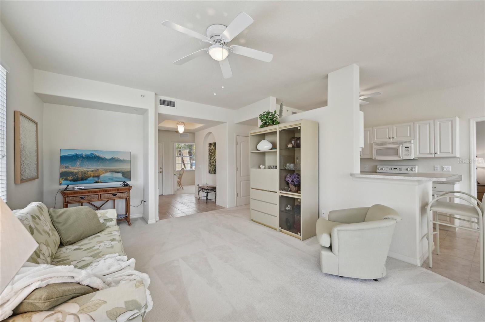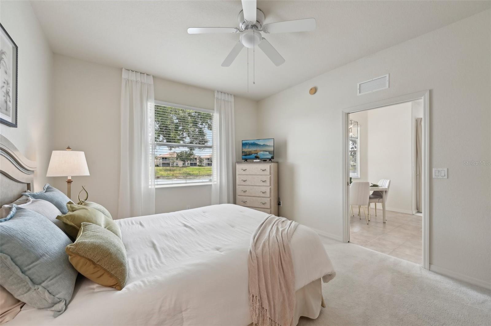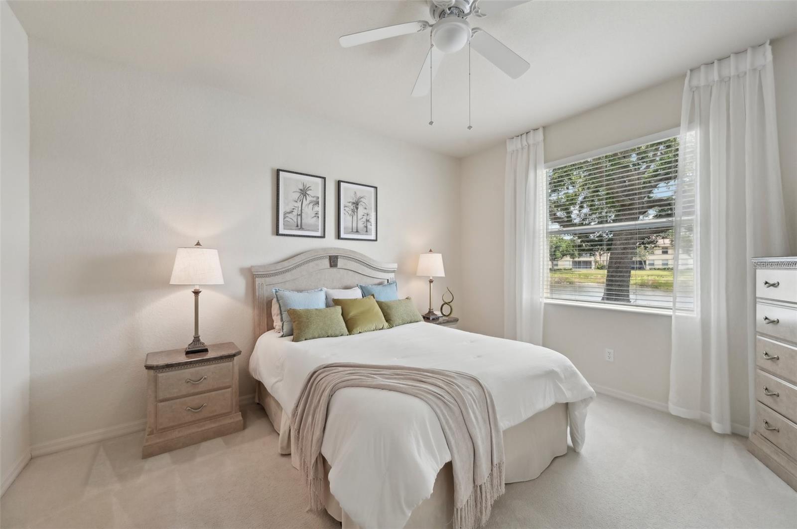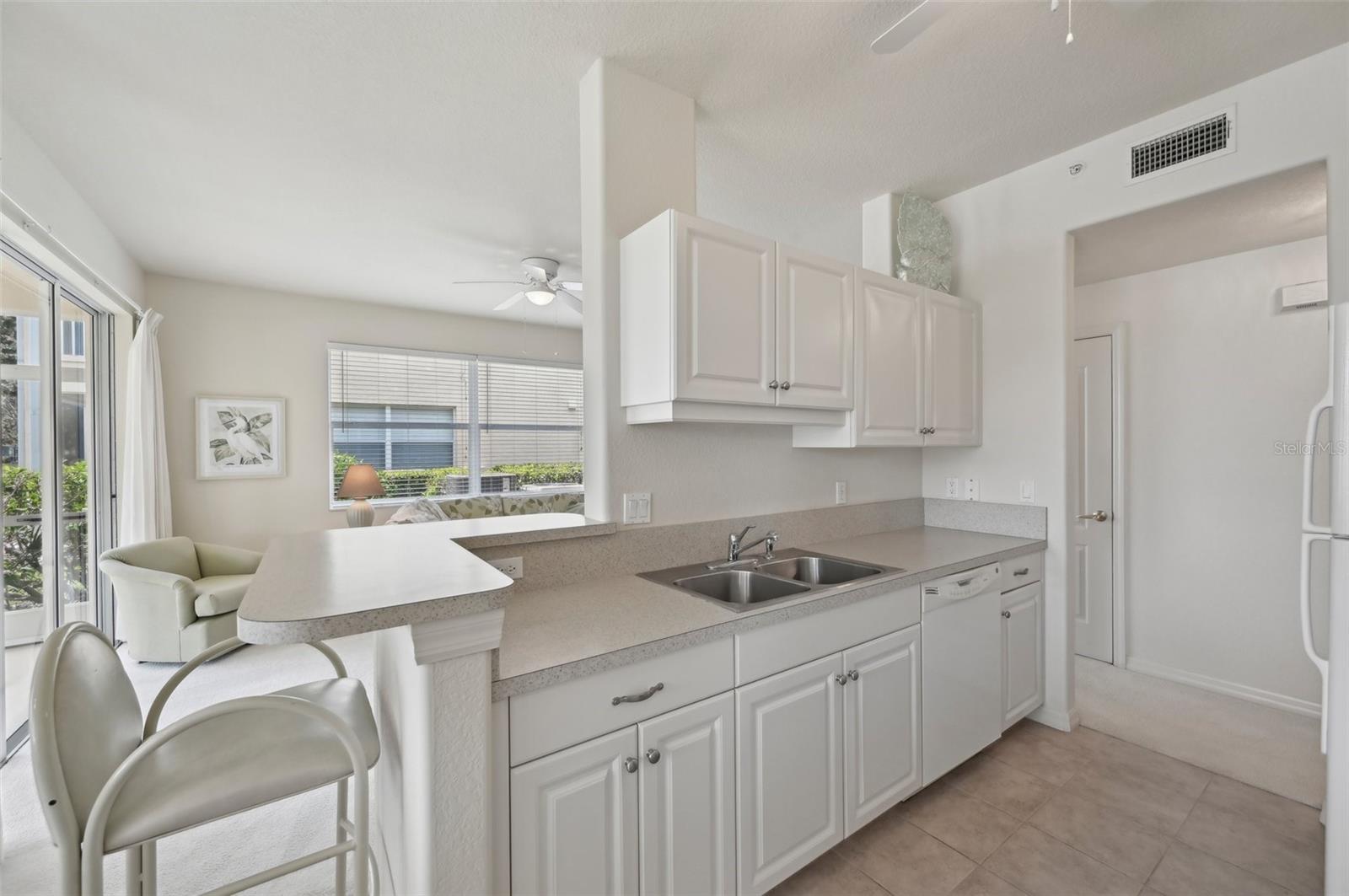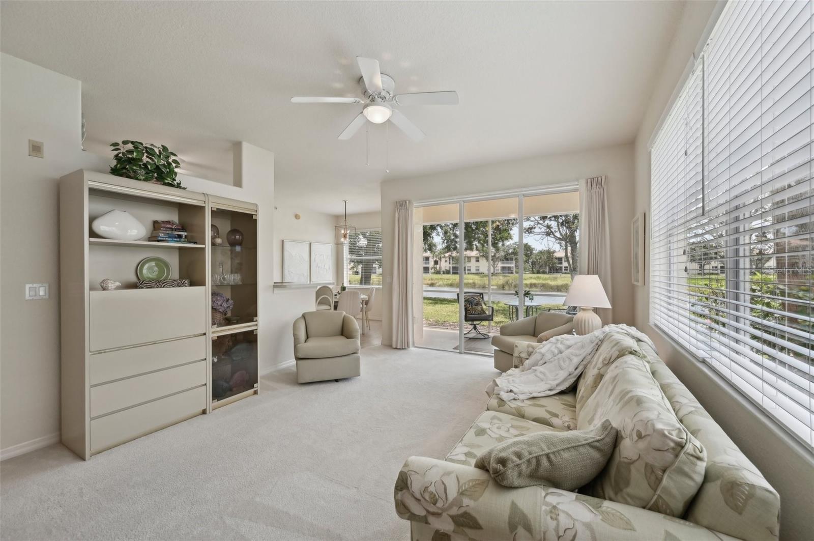 Welcome to this beautifully maintained, bright, and spacious first-floor unit condo in the highly sought-after Casa Di Amici neighborhood within the gated Venetia community. This 3-bedroom, 2-bathroom features high ceilings and an open-concept living area that flows effortlessly onto a screened lanai with a spectacular southern water view—ideal for birdwatching and enjoying local wildlife. The thoughtfully designed layout includes a primary suite with a private ensuite bathroom, while the two secondary bedrooms share a full bath. Offered fully furnished, this condo has been tastefully updated with a new garbage disposal, newer A/C and hot water heater, new exterior door handles and locks, new window screens, new garage door opener, garage LED lighting, updated shower cartridges in both bathrooms, and a stylish new kitchen chandelier, all complemented by tasteful décor throughout. Enjoy the convenience of a one-car garage and a gated path with easy access to nearby stores, restaurants, and Wal-Mart. Just seven minutes from Manasota Beach and ten minutes from Venice Island, this home is ideally situated near multiple beaches, the Legacy Trail, and the charming shops and dining of historic downtown Venice. As part of the Venetia community, which spans over 300 acres, residents enjoy resort-style amenities including a modern fitness center, tennis courts, and beautifully landscaped walking and biking paths. This unit also provides access to two distinct pool areas: a large community pool perfect for socializing and recreation, and a more exclusive cabana pool area for a quieter, more private experience. Also, the main pool near the clubhouse is a gorgeous resort pool in a beautiful setting! Whether you're seeking an active lifestyle or a tranquil retreat, Casa Di Amici has something for everyone.