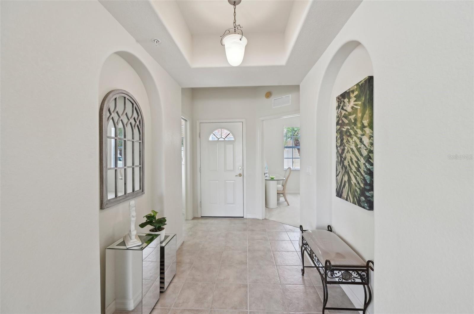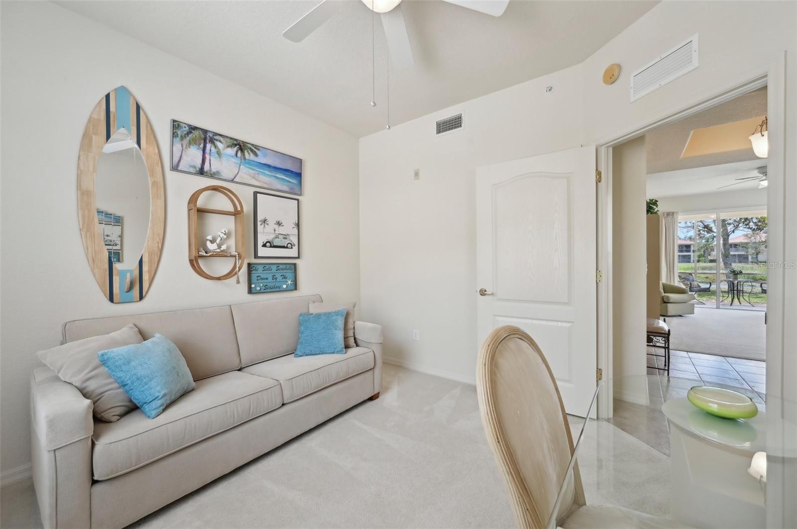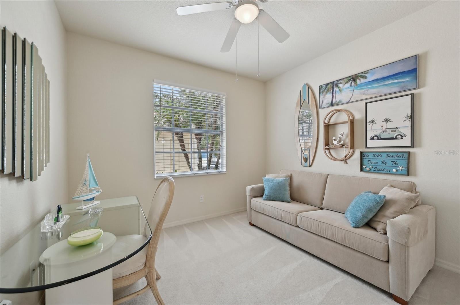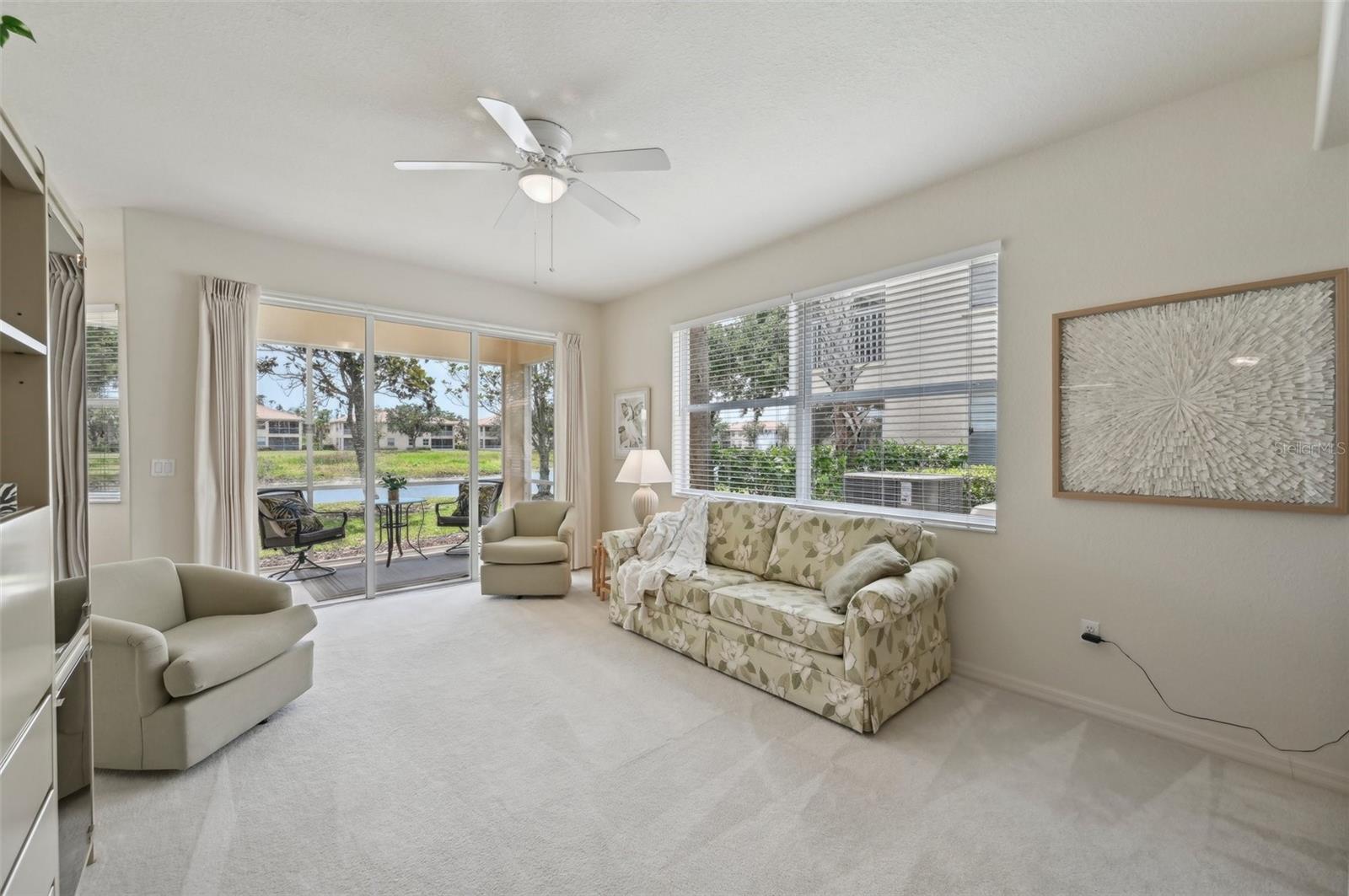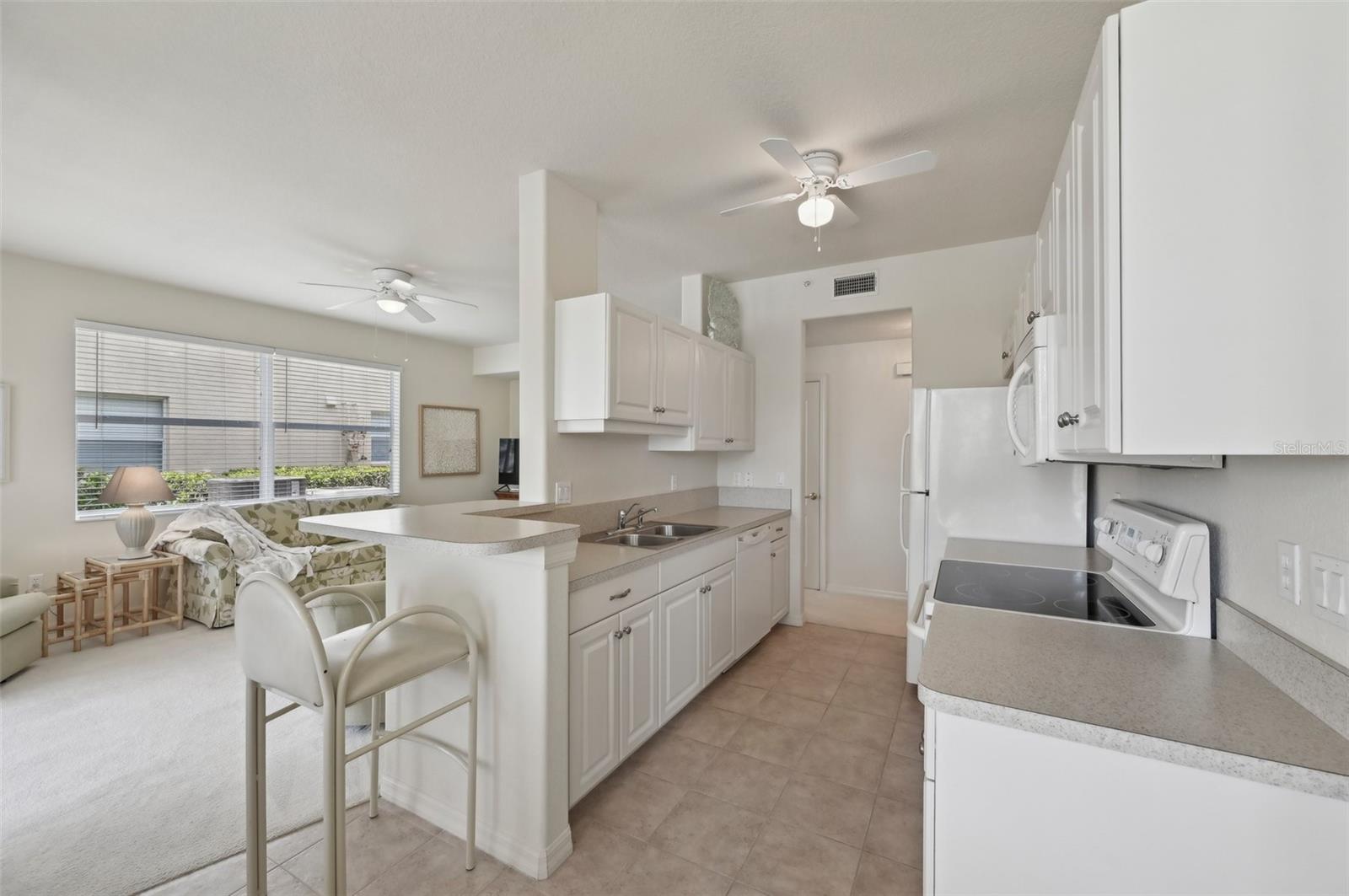Welcome to this beautifully maintained, bright, and spacious first-floor unit condo in the highly sought-after Casa Di Amici neighborhood within the gated Venetia community. This 3-bedroom, 2-bathroom features high ceilings and an open-concept living area that flows effortlessly onto a screened lanai with a spectacular southern water view—ideal for birdwatching and enjoying local wildlife. The thoughtfully designed layout includes a primary suite with a private ensuite bathroom, while the two secondary bedrooms share a full bath. Offered fully furnished, this condo has been tastefully updated with a new garbage disposal, newer A/C and hot water heater, new exterior door handles and locks, new window screens, new garage door opener, garage LED lighting, updated shower cartridges in both bathrooms, and a stylish new kitchen chandelier, all complemented by tasteful décor throughout. Enjoy the convenience of a one-car garage and a gated path with easy access to nearby stores, restaurants, and Wal-Mart. Just seven minutes from Manasota Beach and ten minutes from Venice Island, this home is ideally situated near multiple beaches, the Legacy Trail, and the charming shops and dining of historic downtown Venice. As part of the Venetia community, which spans over 300 acres, residents enjoy resort-style amenities including a modern fitness center, tennis courts, and beautifully landscaped walking and biking paths. This unit also provides access to two distinct pool areas: a large community pool perfect for socializing and recreation, and a more exclusive cabana pool area for a quieter, more private experience. Also, the main pool near the clubhouse is a gorgeous resort pool in a beautiful setting! Whether you're seeking an active lifestyle or a tranquil retreat, Casa Di Amici has something for everyone.