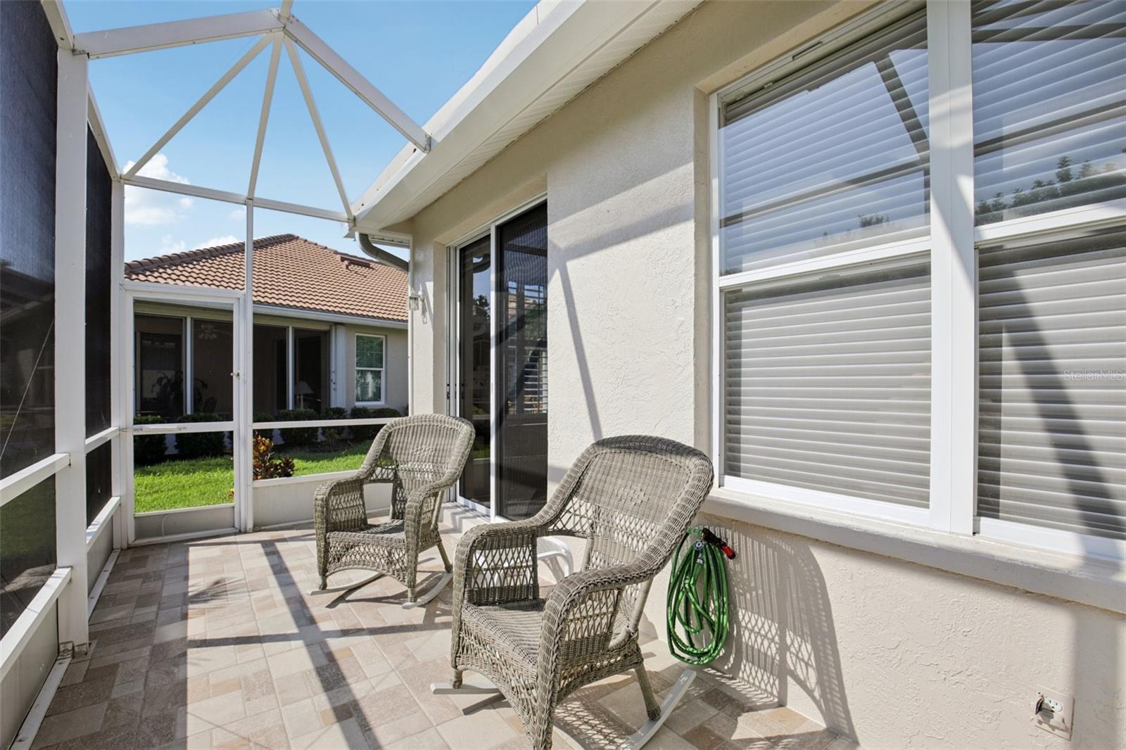 Meticulously maintained and move-in ready, this bright and sunny Birdie-model end villa has large south-facing windows overlooking the lush Florida landscaping and private preserve. Offering a desirable split bedroom layout, this 2-bedroom, 2-bathroom plus den/flex space villa has a large open-plan great room with hardwood floors, casual breakfast dining, screened sunroom and extended private patio - perfect for relaxing and entertaining. Located within a vibrant, 24/7 guard-gated community, residents enjoy access to 27-holes of championship golf consistently ranked the best in Venice since 2002. For the non-golfer, an impressive list of amenities includes a heated junior Olympic pool, tennis and pickleball courts, a clubhouse with restaurant, bar & grille, and a full social calendar with something for everyone—including a women’s association offering 45+ interest groups and activities. Pelican Pointe is a lively, welcoming community surrounded by natural lakes, wetlands, and abundant birdlife. Just minutes from quaint downtown Venice Island, pristine Gulf beaches, performing arts and cultural attractions, the Legacy Trail, top-rated medical facilities, and major airports. Recent upgrades include: new tile roof (2023), new water heater (2022), A/C (2019), stainless steel appliances, and fresh exterior and interior paint. The low HOA fee covers membership to the social club, cable, internet, lawn and landscape care, exterior home maintenance (roof, paint), pest control, and more—offering true peace of mind and lock-and-leave convenience. Golf course membership is non-mandatory. Don't miss this exceptional opportunity to live the Florida lifestyle at its finest!