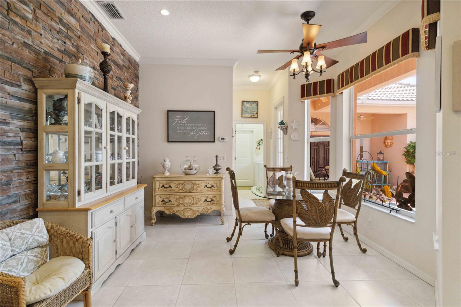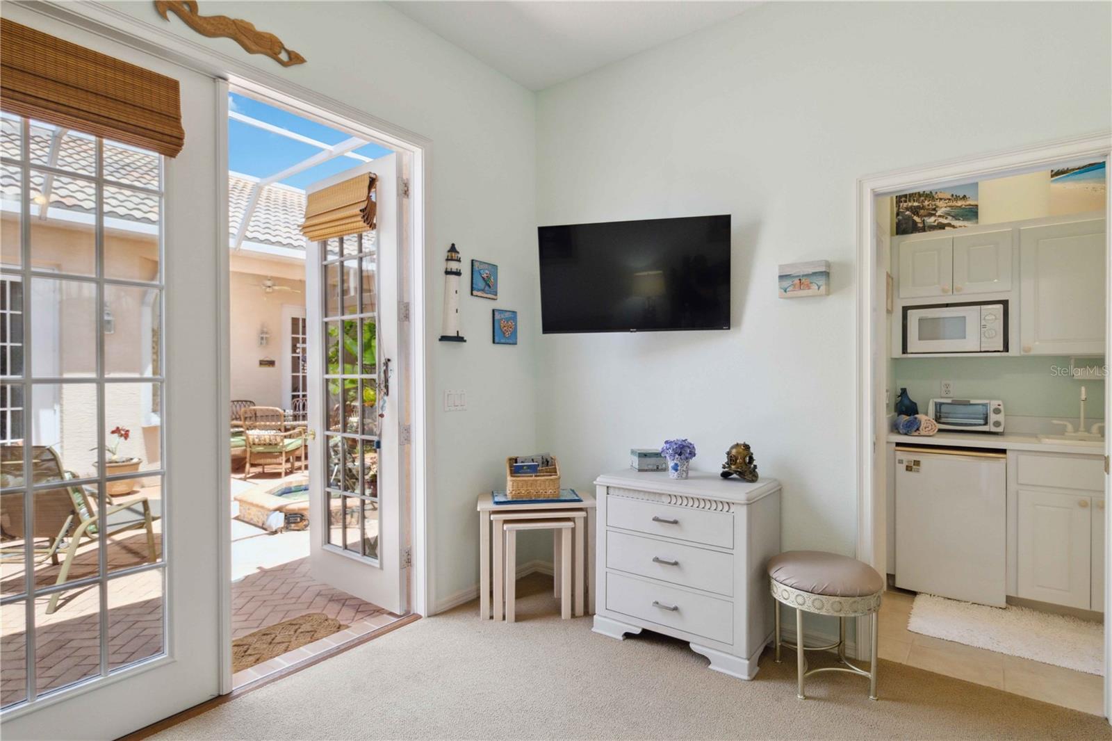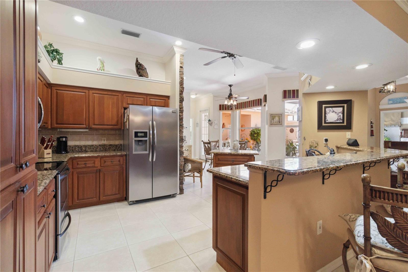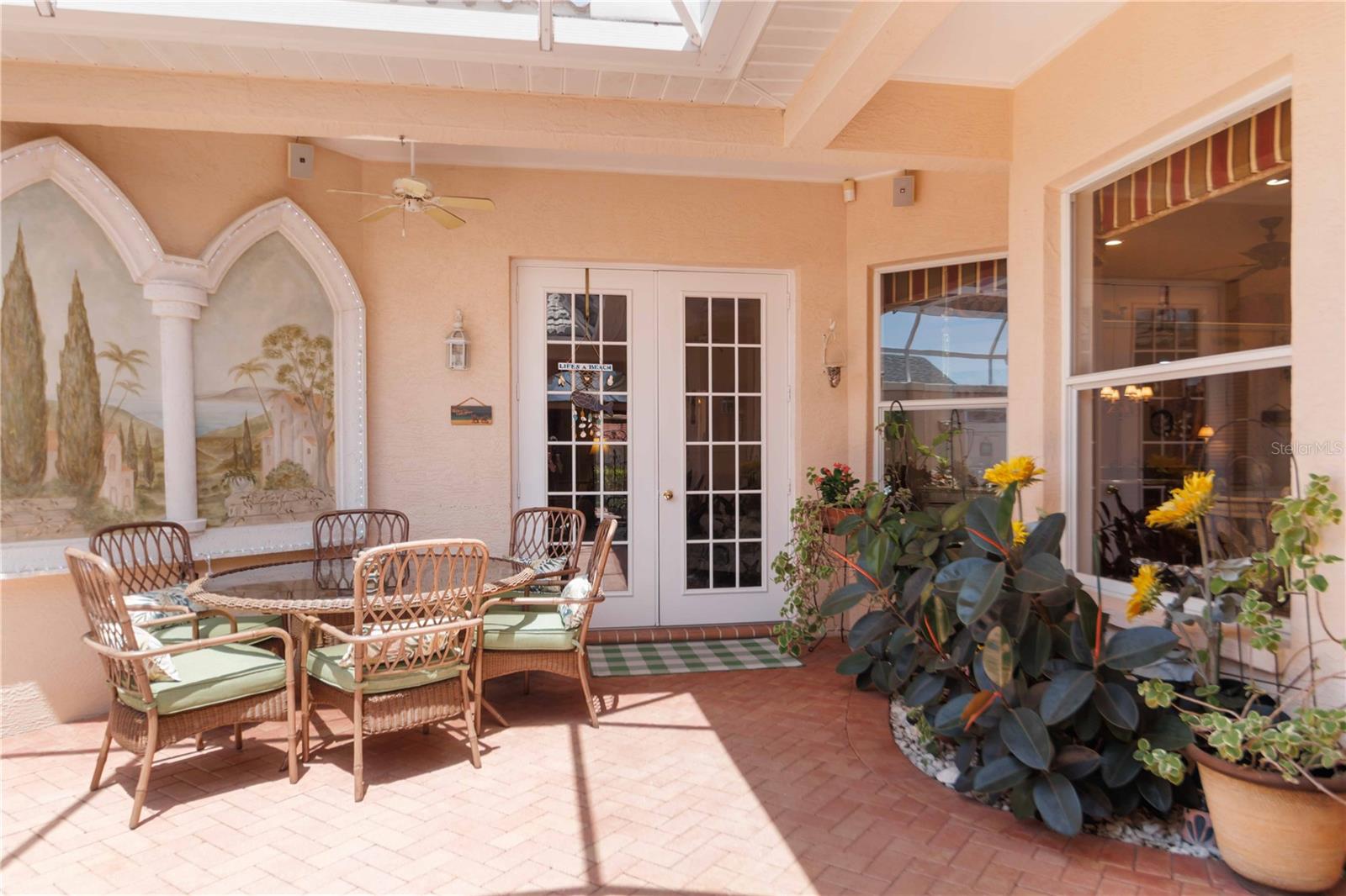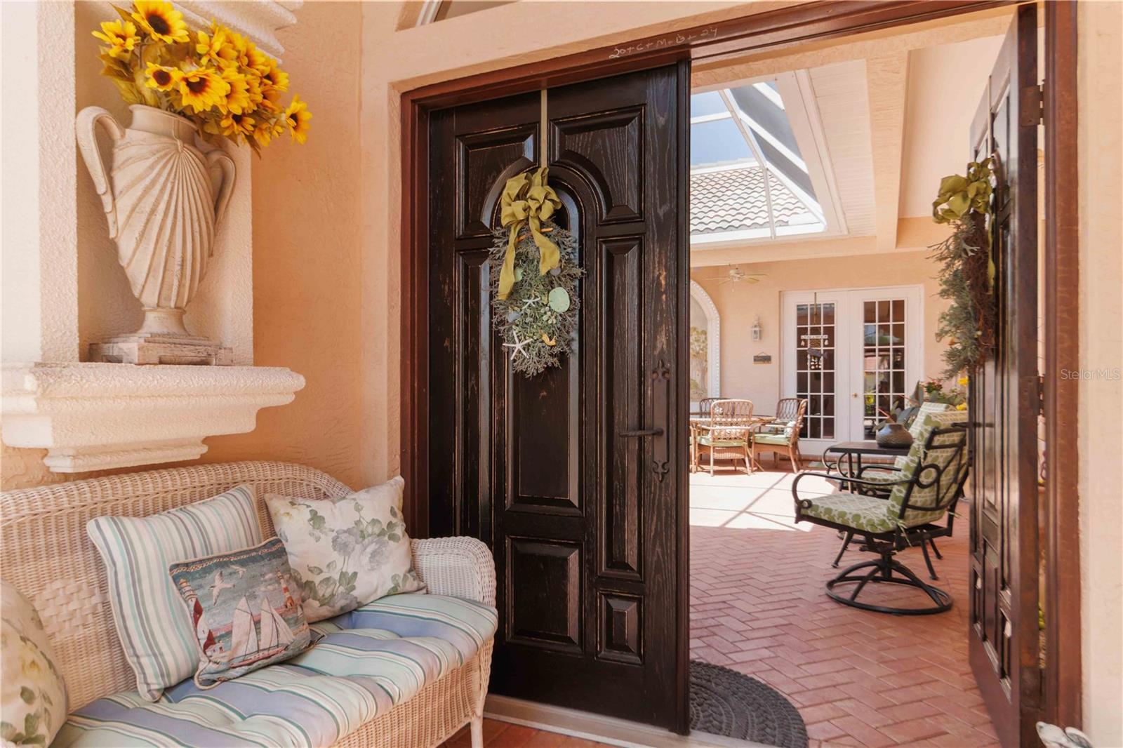 LOCATION! 3.8 miles to Manasota Key Beach! AND NEW ROOF 2024! TURNKEY HOME WITH GUEST SUITE WITH KITCHENETTE!– FULLY FURNISHED & Move-In Ready! And you will not believe what's included! Located in the quiet and desirable community of JACARANDA Heights, this beautifully maintained home comes FULLY FURNISHED! and includes EVERYTHING you need—just bring your suitcase! Enjoy peace and privacy on a corner lot in a cul-de-sac, just minutes from historic downtown VENICE and MANASOTA KEY BEACHES. Step through elegant cherry wood DOUBLE DOORS into a private, SCREENED COURTYARD featuring a THREE-TIER FOUNTAIN, brick pavers, and a TUSCAN-style mural—perfect for relaxing or outdoor dining. Inside, you'll find high-end finishes throughout, including CROWN MOLDING, engineered HARDWOOD floors, cherry wood cabinets, and GRANITE countertops. The kitchen offers stainless steel appliances, a breakfast bar, and a spacious dining area. The large primary suite includes a walk-in closet, French doors to the courtyard, and a private bathroom with double sinks and a walk-in shower. A SEPARATE GUEST HOUSE offers its own entrance, kitchenette, and full bathroom—great for guests, in-laws, or a home office. Additional features: ALL Kitchen matching Frigidaire Gallery appliances included, Washer & Dryer, Hurricane shutters, Fenced backyard with side patio, LOW HOA, NO CDD fees FULLY furnished – TURNKEY sale! This rare opportunity won’t last long—homes in Jacaranda Heights rarely hit the market! BRING ALL OFFERS!
