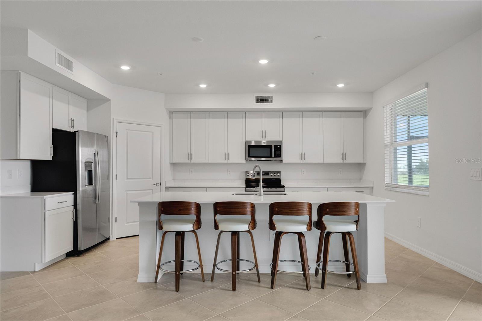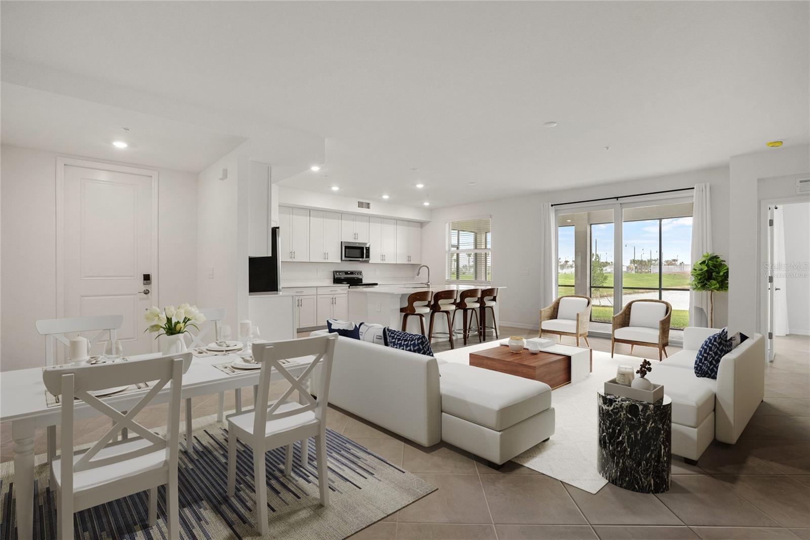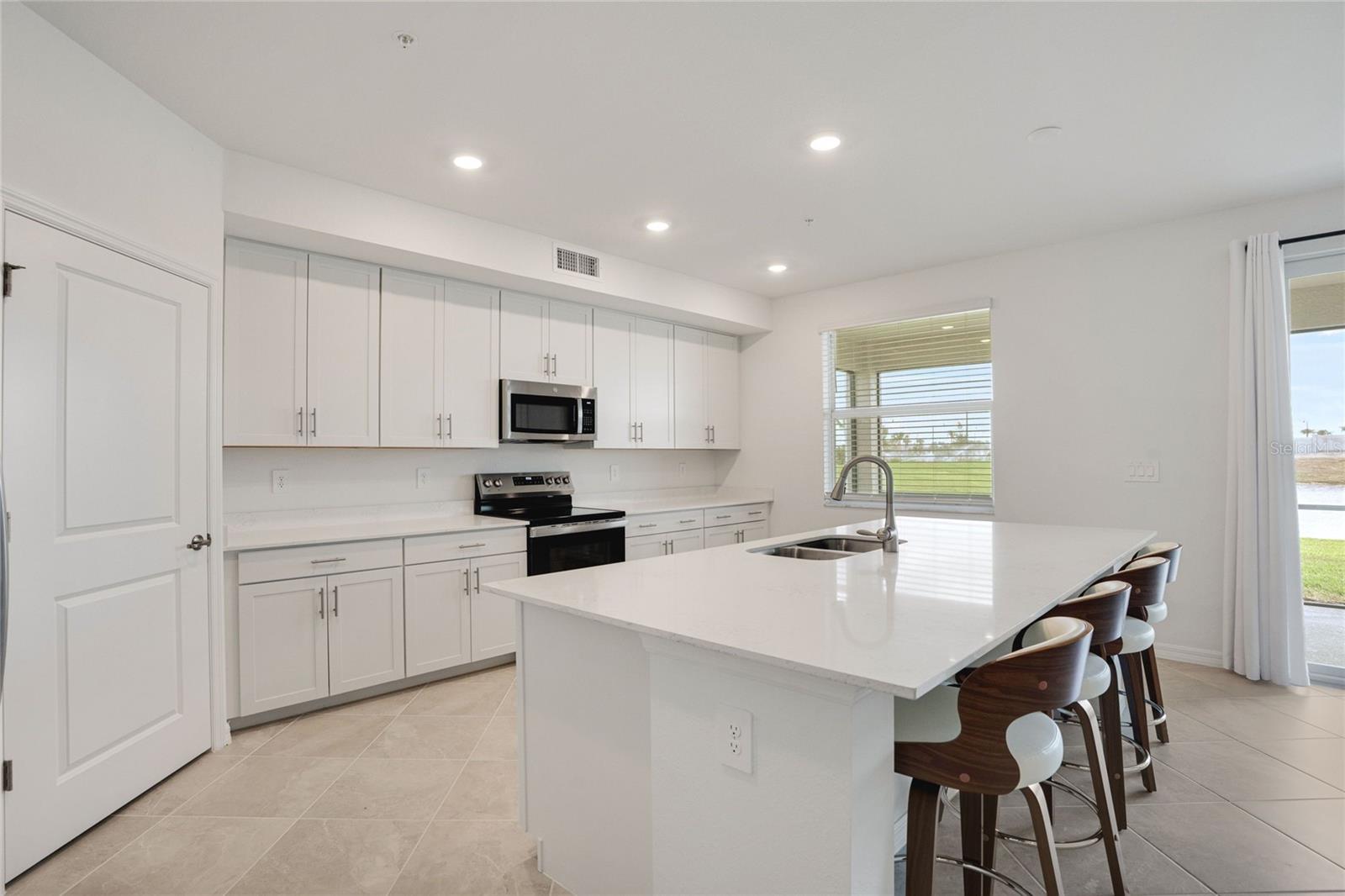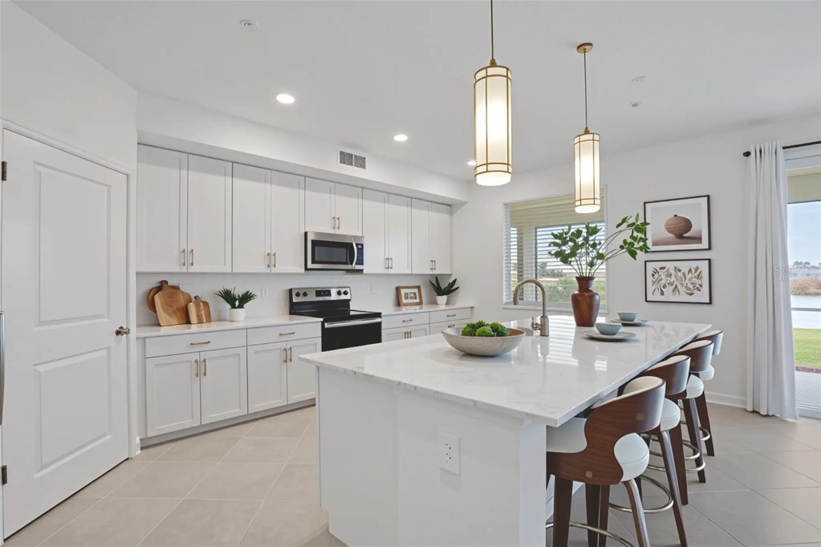 One or more photo(s) has been virtually staged. MOVE-IN-READY Lakefront Coach Home with bundled GOLF MEMBERSHIP in Wellen Park Golf and Country Club! Compare to pricing on current pre-sale homes and save $$$. Forget the months-long construction delays and BYPASS the $3,000 builder fee! This stunning home is completed and situated on a coveted LAKEFRONT end-of-the-street location. This impressive 3 bedroom, 2 bathroom, 1741 square foot, first-floor residence is well designed for modern living and has a large screened lanai with serene views. The open concept great room features a gorgeous kitchen with island plus spacious living and dining areas with upgraded tile flooring throughout. Beautiful quartz countertops grace all cabinetry and the spacious owner's suite feels spa-like with it's designer fixtures and large tiled shower. Two additional bedrooms provide flexible space for an office and guests with a large hall bathroom nearby. Important practical attributes like hurricane impact windows, smart home features, energy efficient new appliances and eco-friendly landscaping are present and add to the maintenance-free experience. Your neighborhood golf course is a Gordon Lewis 18-hole championship course with a new clubhouse to be completed in 2026. Enjoy food and cocktails at the tiki bar or relax in your cabana at the first class resort-style pool. Other amenities include a premier fitness center, various sports courts, biking and walking trails and a wellness center with yoga room and full-service spa for massages, etc. HOA fees include bulk cable and internet, water, sewer, trash collection, exterior building maintenance and insurance, landscaping maintenance and reserves. Downtown Wellen has a community focus with multiple shops and boutiques, live music almost daily, numerous dining options, a lakefront trail, kayaking, family events and other outdoor recreation options. Several area beaches, parks, historic downtown Venice and I-75 are just a short drive away. Don't miss the opportunity to make this impressive coach home yours and join the exceptional community of Wellen Park Golf and Country Club. Schedule a private showing today!