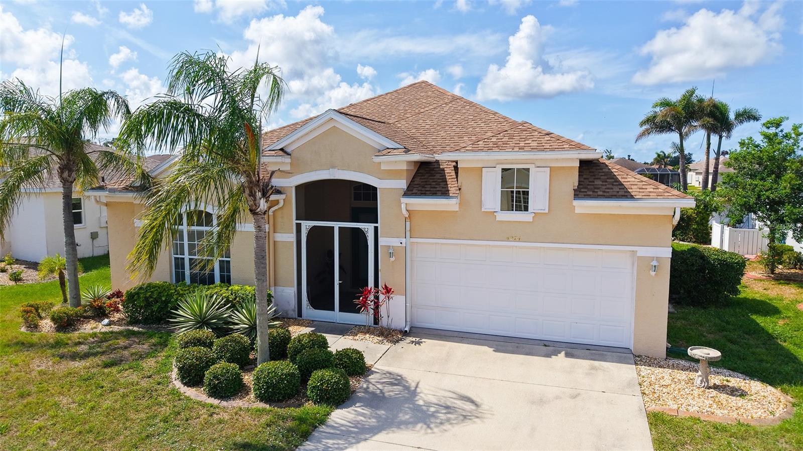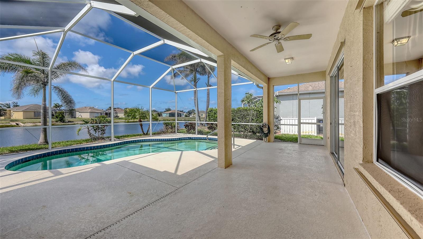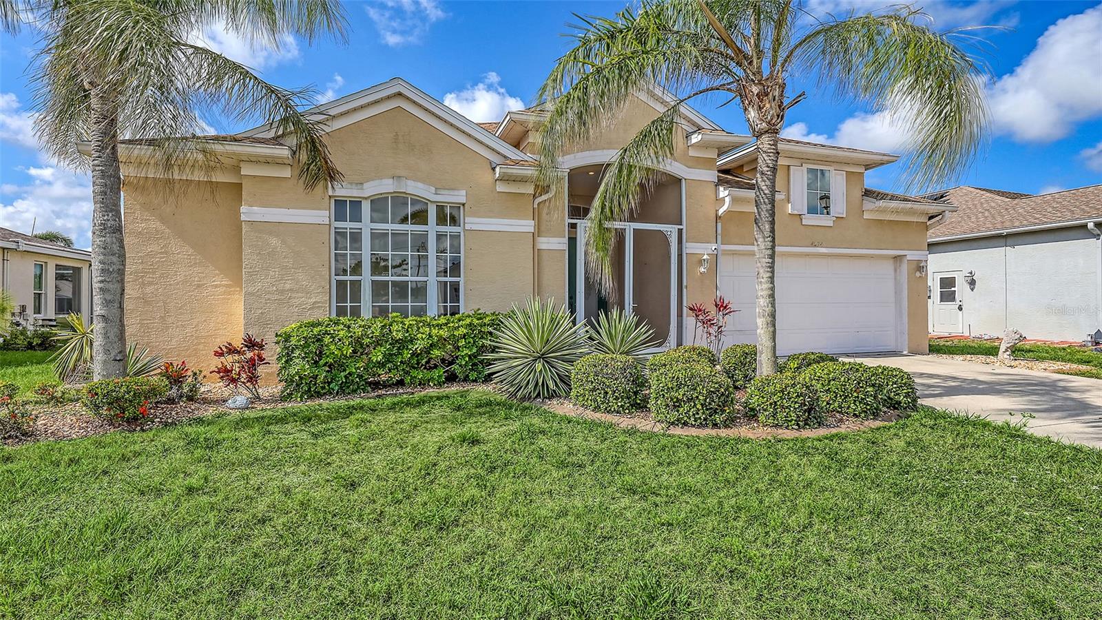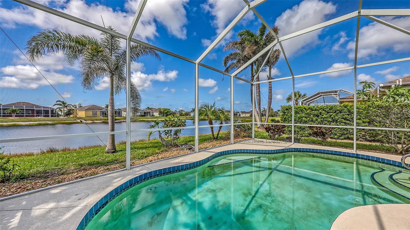 Welcome to your own private oasis in the heart of Venice, FL! This 3 bedroom, 2 bath pool home is located on a serene pond in the highly sought-after Woodmere Lakes community. As you enter the home, you are greeted by an open and spacious floor plan with high ceilings and plenty of natural light. The living room features beautiful views of the pool and pond while the dining room has ample room for all of your dinner parties. The eat in kitchen is a chef's dream with granite countertops, stainless steel appliances, and breakfast bar with an adjacent family room, perfect for entertaining. A separate den with access to the bathroom is the perfect work from home office or could be converted to an additional 4th bedroom. The primary bedroom is a true retreat with a generous walk-in closet and en-suite bathroom complete with dual sinks, a soaking tub, and a separate shower. The split plan features two additional bedrooms which are perfect for guests. The spacious 2 car garage has additional alcove storage and the adjacent interior laundry room has a soaking tub and shelving to help keep things organized. Step outside to your own private paradise! The screened-in lanai (fully replaced in 2024) is the perfect spot to relax and enjoy the peaceful pond views. Take a dip in the sparkling pool or soak up the sun on the spacious deck. Additional features include a newer roof (2019) HVAC + ductwork (2022) as well as re-piping and storm shutters for peace of mind. Woodmere Lakes is and well-maintained community with low HOA fees. Conveniently located near shopping, dining, and just a short drive to the beautiful beaches of Venice. Don't miss your opportunity to own this slice of paradise! Schedule your showing today