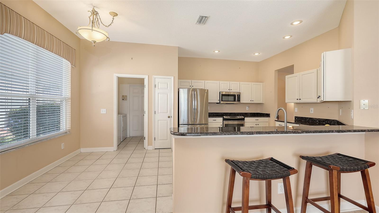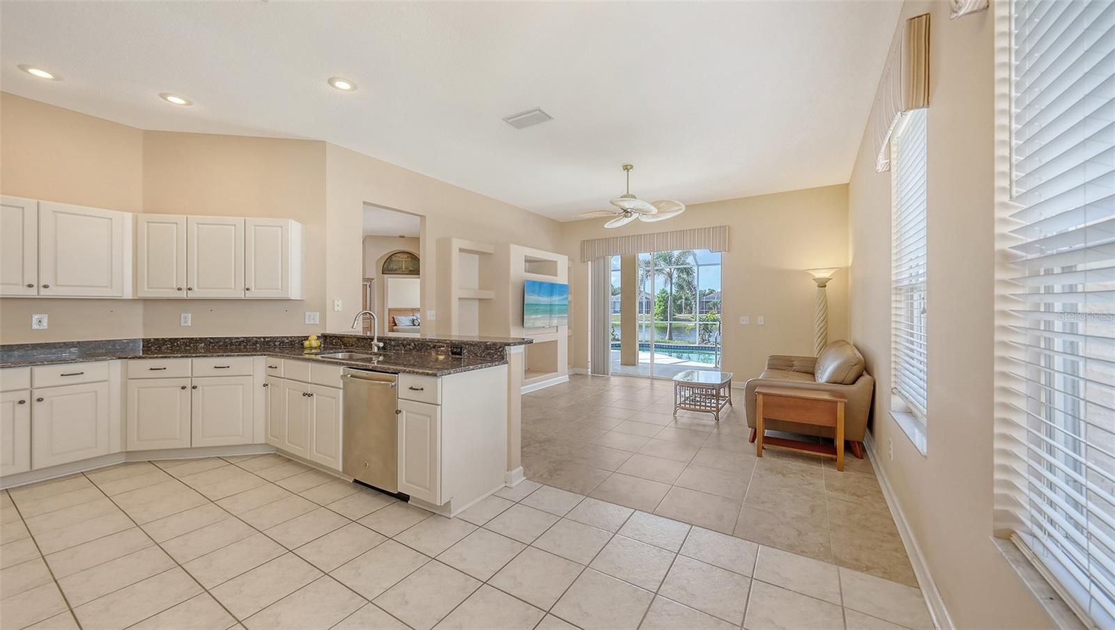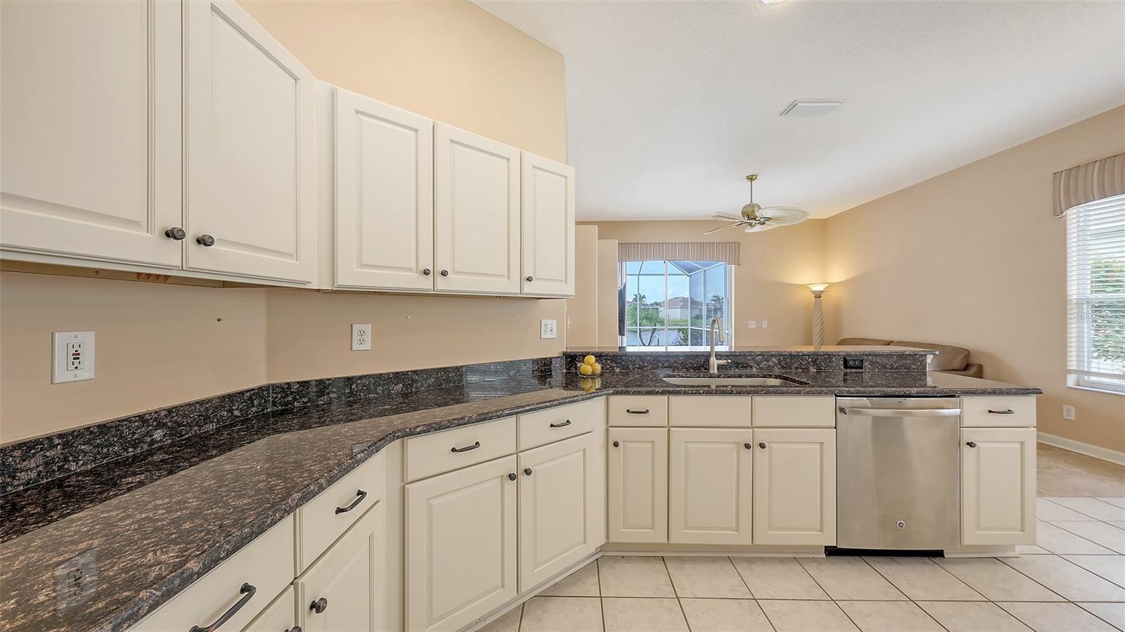Welcome to your own private oasis in the heart of Venice, FL! This 3 bedroom, 2 bath pool home is located on a serene pond in the highly sought-after Woodmere Lakes community. As you enter the home, you are greeted by an open and spacious floor plan with high ceilings and plenty of natural light. The living room features beautiful views of the pool and pond while the dining room has ample room for all of your dinner parties. The eat in kitchen is a chef's dream with granite countertops, stainless steel appliances, and breakfast bar with an adjacent family room, perfect for entertaining. A separate den with access to the bathroom is the perfect work from home office or could be converted to an additional 4th bedroom. The primary bedroom is a true retreat with a generous walk-in closet and en-suite bathroom complete with dual sinks, a soaking tub, and a separate shower. The split plan features two additional bedrooms which are perfect for guests. The spacious 2 car garage has additional alcove storage and the adjacent interior laundry room has a soaking tub and shelving to help keep things organized. Step outside to your own private paradise! The screened-in lanai (fully replaced in 2024) is the perfect spot to relax and enjoy the peaceful pond views. Take a dip in the sparkling pool or soak up the sun on the spacious deck. Additional features include a newer roof (2019) HVAC + ductwork (2022) as well as re-piping and storm shutters for peace of mind. Woodmere Lakes is and well-maintained community with low HOA fees. Conveniently located near shopping, dining, and just a short drive to the beautiful beaches of Venice. Don't miss your opportunity to own this slice of paradise! Schedule your showing today