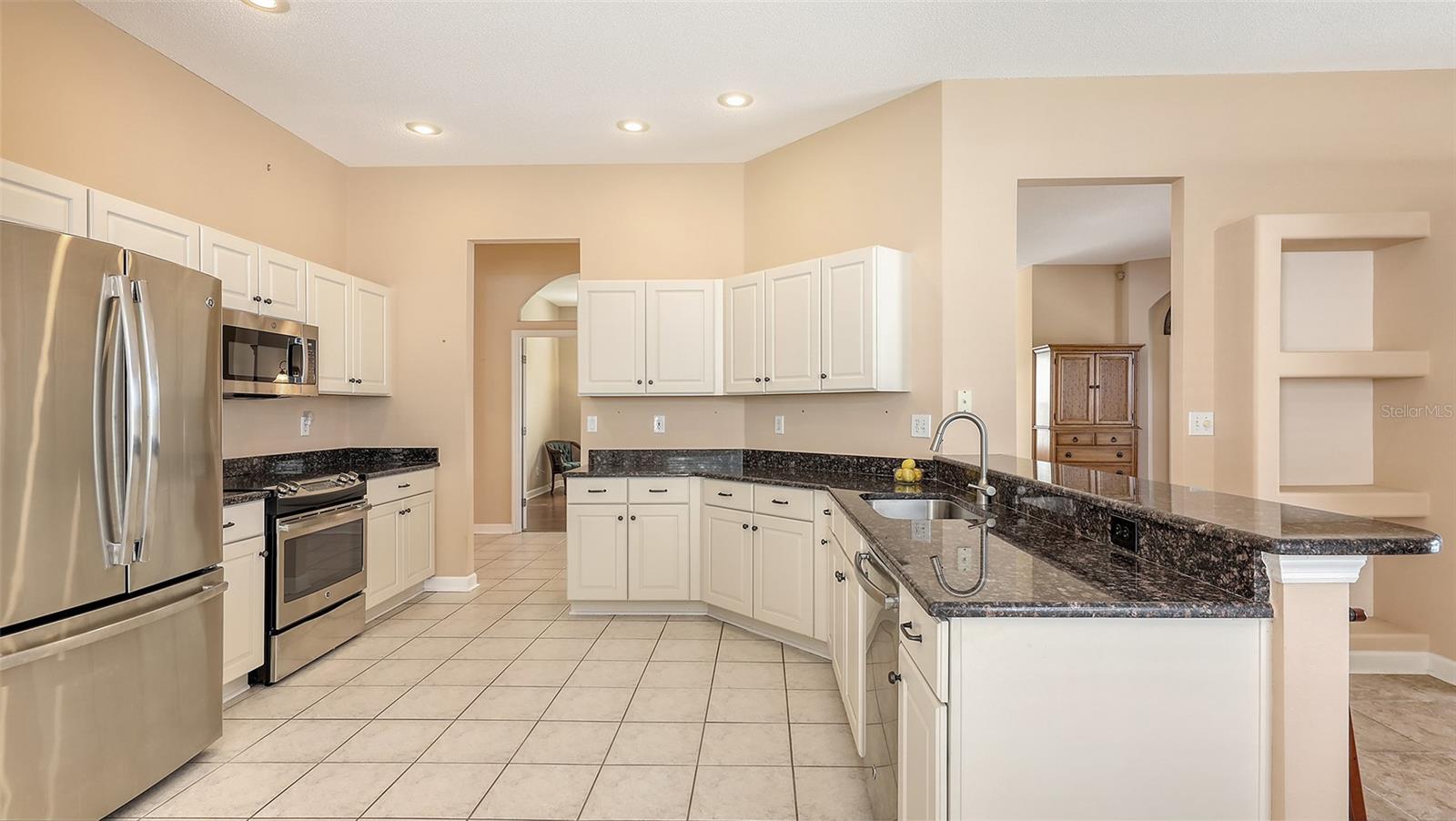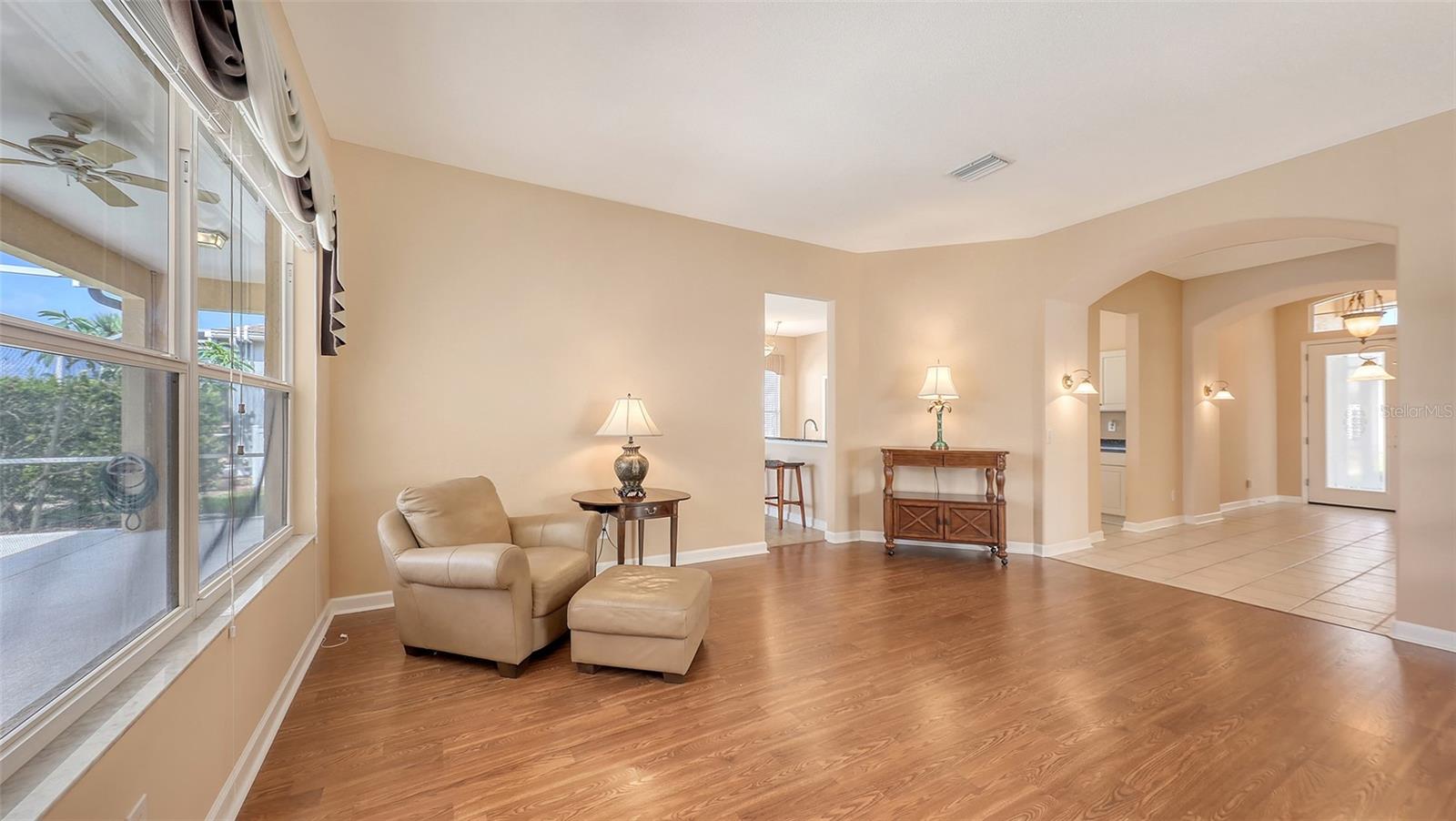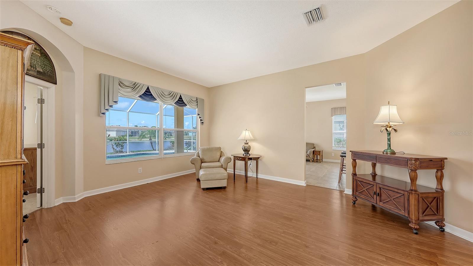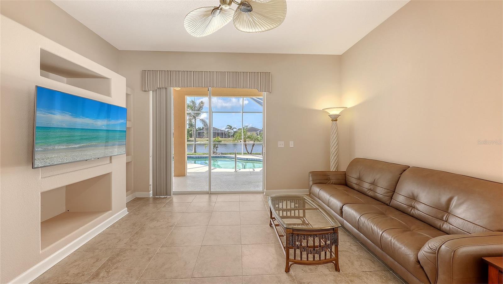 Welcome to your own private oasis in the heart of Venice, FL! This 3 bedroom, 2 bath pool home is located on a serene pond in the highly sought-after Woodmere Lakes community. As you enter the home, you are greeted by an open and spacious floor plan with high ceilings and plenty of natural light. The living room features beautiful views of the pool and pond while the dining room has ample room for all of your dinner parties. The eat in kitchen is a chef's dream with granite countertops, stainless steel appliances, and breakfast bar with an adjacent family room, perfect for entertaining. A separate den with access to the bathroom is the perfect work from home office or could be converted to an additional 4th bedroom. The primary bedroom is a true retreat with a generous walk-in closet and en-suite bathroom complete with dual sinks, a soaking tub, and a separate shower. The split plan features two additional bedrooms which are perfect for guests. The spacious 2 car garage has additional alcove storage and the adjacent interior laundry room has a soaking tub and shelving to help keep things organized. Step outside to your own private paradise! The screened-in lanai (fully replaced in 2024) is the perfect spot to relax and enjoy the peaceful pond views. Take a dip in the sparkling pool or soak up the sun on the spacious deck. Additional features include a newer roof (2019) HVAC + ductwork (2022) as well as re-piping and storm shutters for peace of mind. Woodmere Lakes is and well-maintained community with low HOA fees. Conveniently located near shopping, dining, and just a short drive to the beautiful beaches of Venice. Don't miss your opportunity to own this slice of paradise! Schedule your showing today