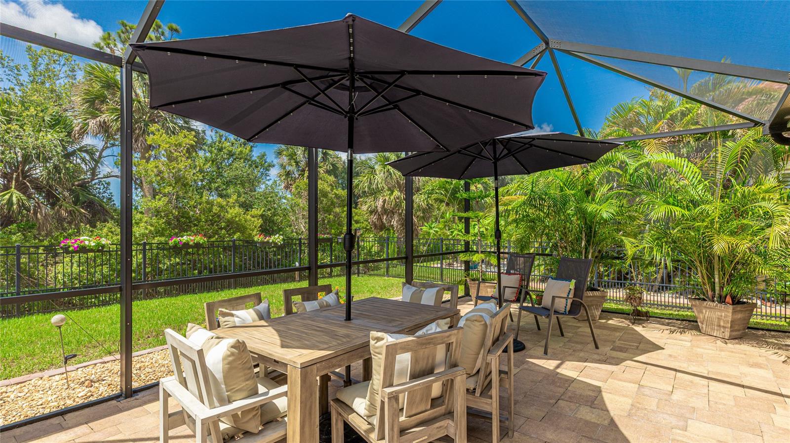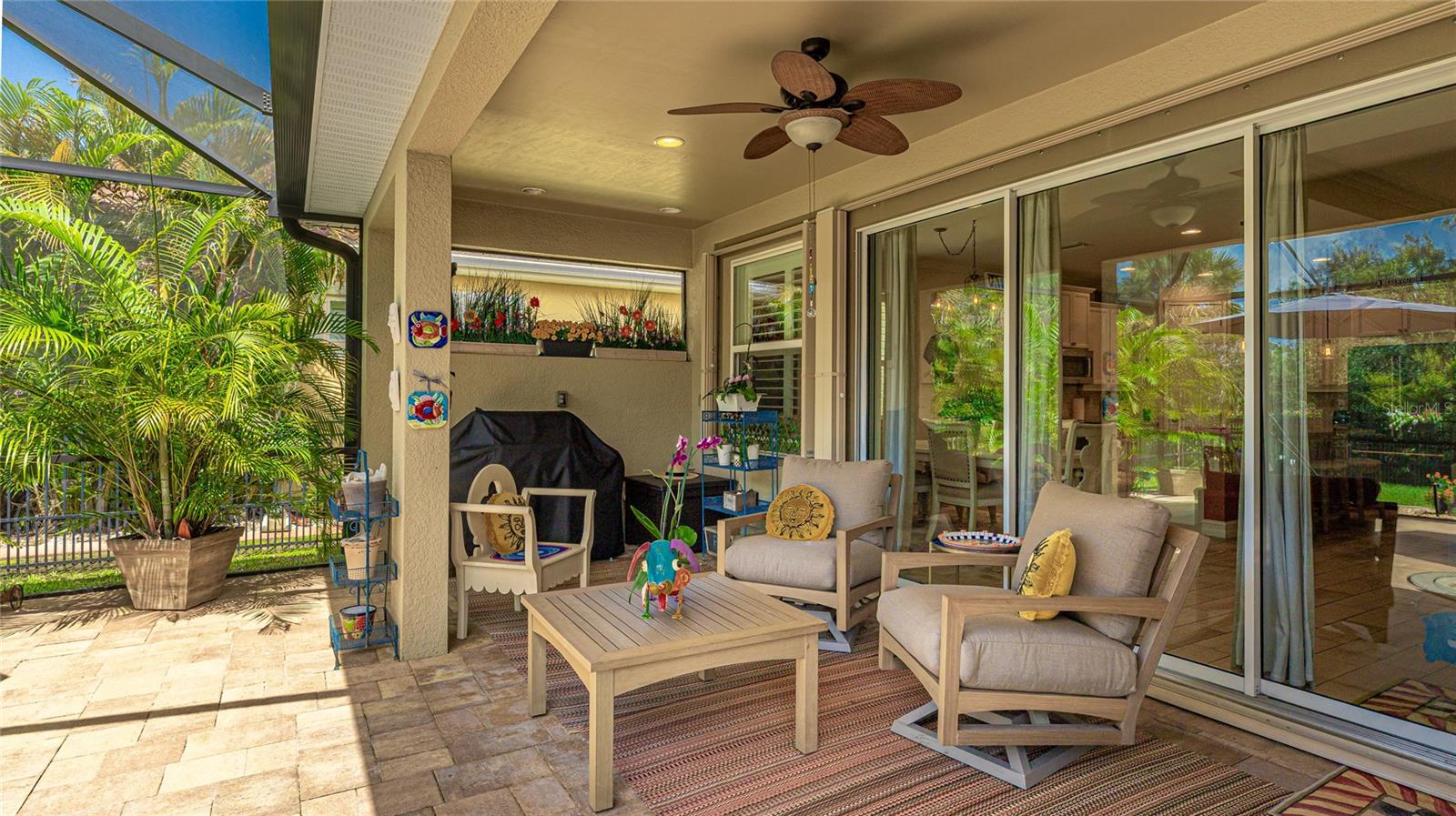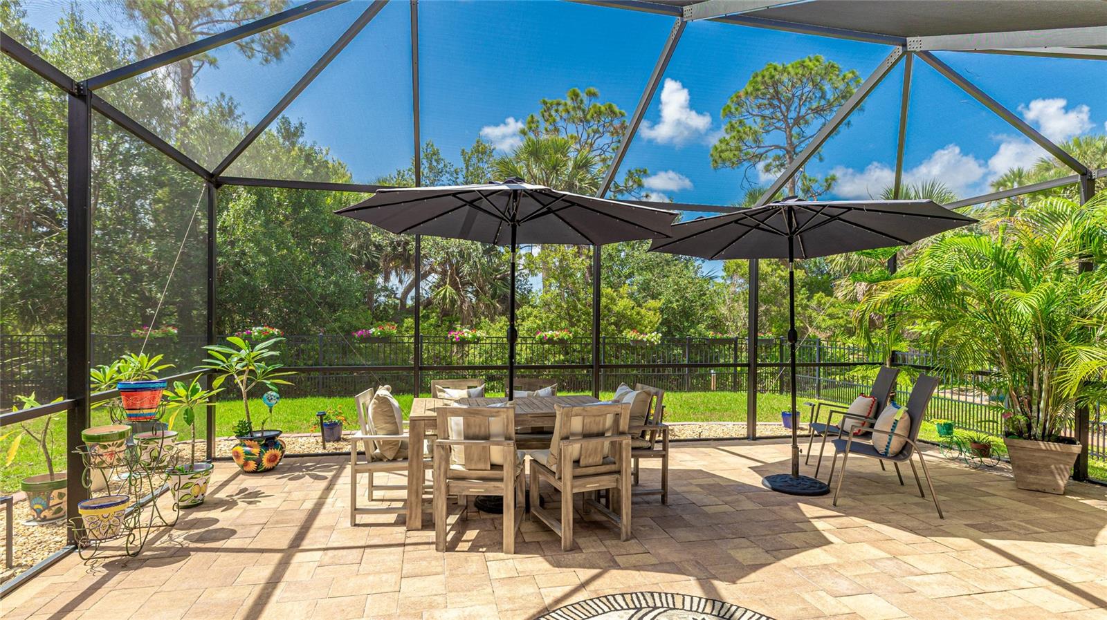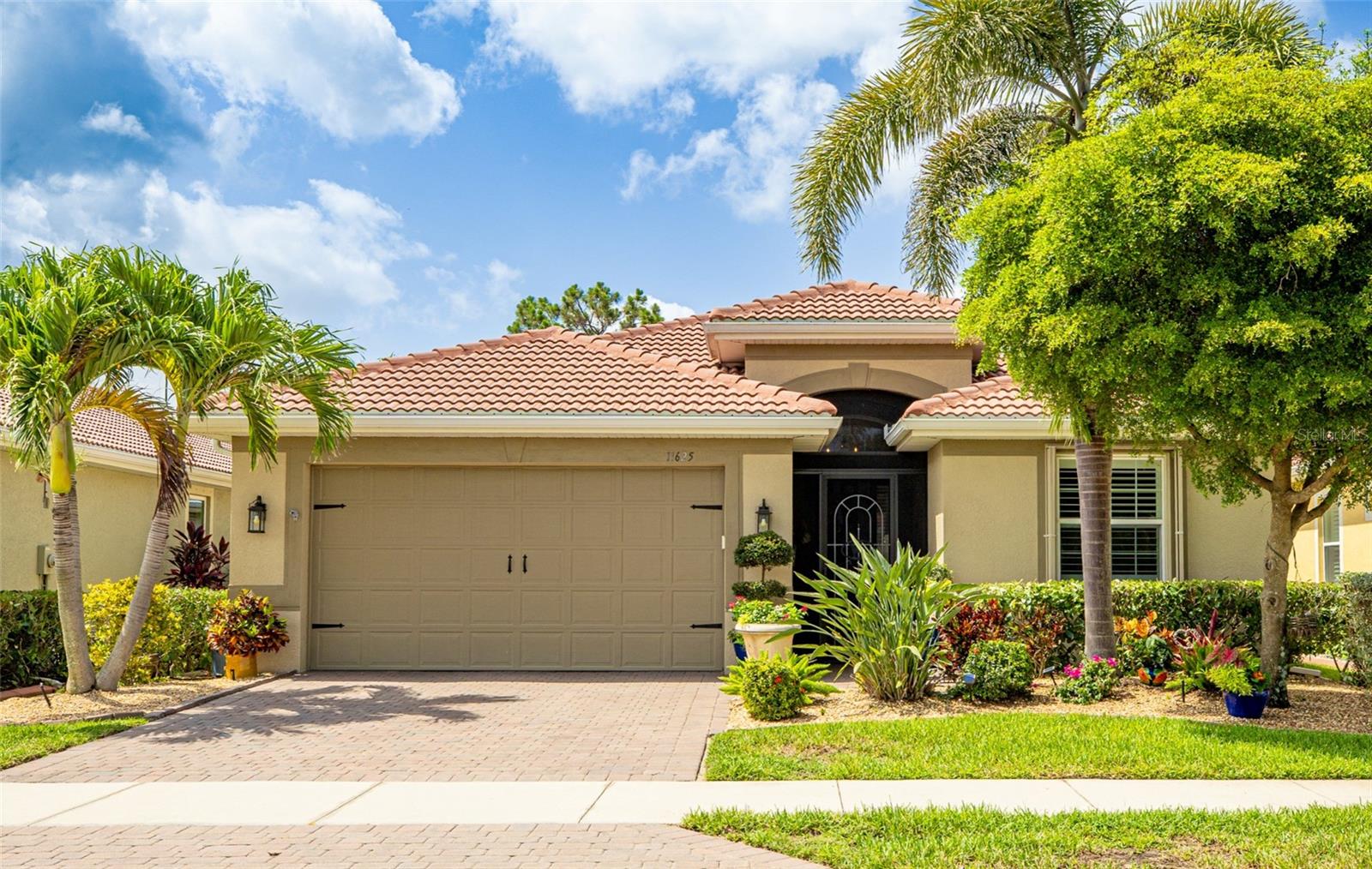 Welcome to 11625 Parrotfish Street. This stunning home has a private preserve view, extended paver patio with expansive cage, fenced in yard surrounded by lush landscaping and has abundant privacy. This home has three-bedrooms, two-bathrooms plus a Den and shows like a model. This original homeowner spared no expense with upgrades such as a Brand New A/C, upgraded appliances such as a New GE Cafe Refrigerator (2025) GE Cafe Induction Range (2019), Newer Bosch Dishwasher, Bosch Microwave, Whole House Rain Gutters, Plantation Shutters, Ceiling Fans, Water Softener and Whole House Filtration System and Hurricane Accordion Shutters on windows and sliders. Several Builder upgrades were selected during the new construction process such as 8 Foot Doors throughout the homes, Central Vacuum, Tray Ceilings, Crown Molding, extra Recessed Lighting and a screened in front porch. When you enter this home you notice the high Tray Ceilings and added architecture features, beautiful plank tile floors throughout the hallway, kitchen and main living areas. Just off the foyer, is a private set back hallway leading to a spacious Den with French doors and a large window that brings in extra natural light. This room is ideal for working from home, an additional place to gather to watch TV and relax or an extra space for overnight visitors. This homes features a desired split bedroom layout that has two guest bedrooms in front of the home to provide maximum privacy, sharing a stylishly appointed bathroom with a walk in shower with upgraded glass doors. In the chef’s kitchen, enjoy a generous one-level island, a spacious pantry, and an open-concept design flowing seamlessly into the great room and dining area, ideal for entertaining. A stunning wall of sliders leads to your outdoor sanctuary with oversized lanai, upgraded pavers, expansive cage and is plumbed for your Outdoor Kitchen. The generous primary suite is a retreat providing views of the yard and preserve. Enjoy a luxurious en-suite bath with a garden soaking tub, dual sinks, a generous shower and a private water closet. Residents of Caribbean Village enjoy a maintenance-free and gated community with two entrances, NO CDD fee, LOW HOA fee and located in an X Flood zone. Enjoy the community's beautiful heated pool, fitness center, meeting room, bocce ball courts, and miles of walking trails that border gorgeous lakes. Mowing of the front and back of the home, irrigation by re-claimed water, mulching around home, pruning of all bushes/palm trees of the home and the community grounds and pool club maintenance are all included in your monthly affordable HOA fees. Located just off River Road and Venice Avenue, Caribbean Village offers proximity to Downtown Wellen Park, Downtown Venice and Gulf Coast Beaches, abundant shopping and good proximity to I-75. Make this home and community your own and start to enjoy this lifestyle!