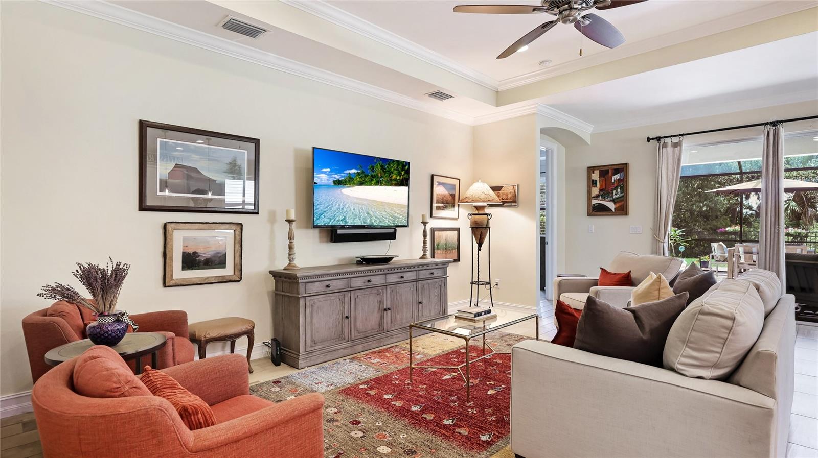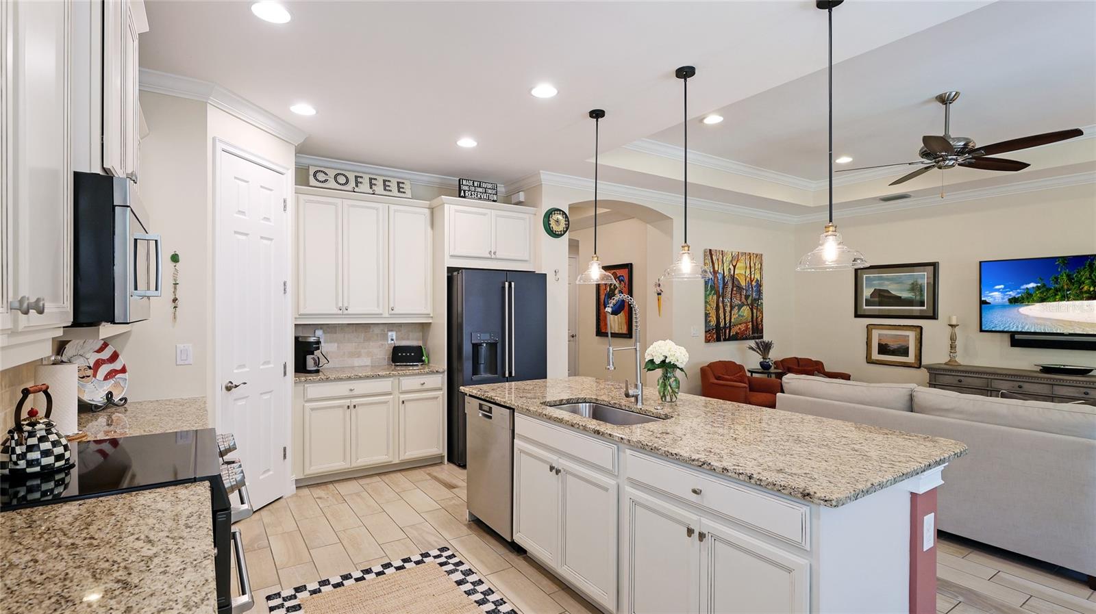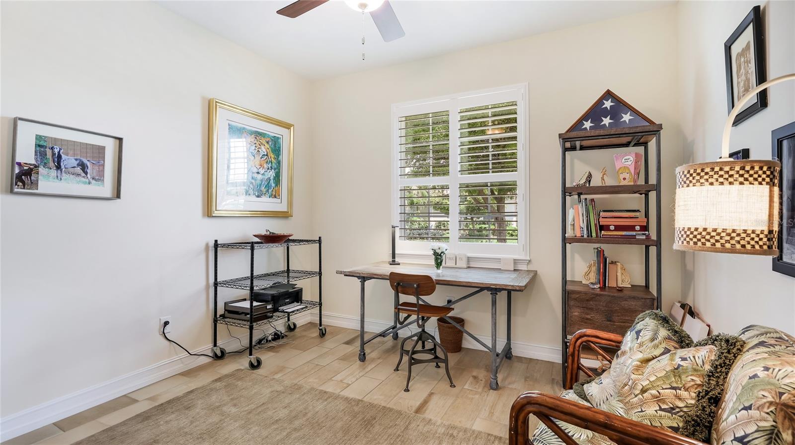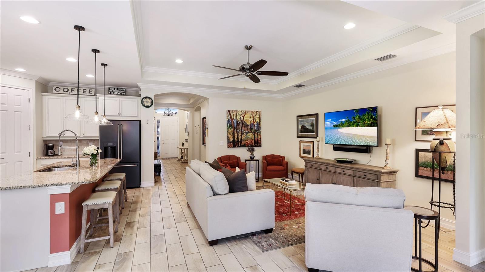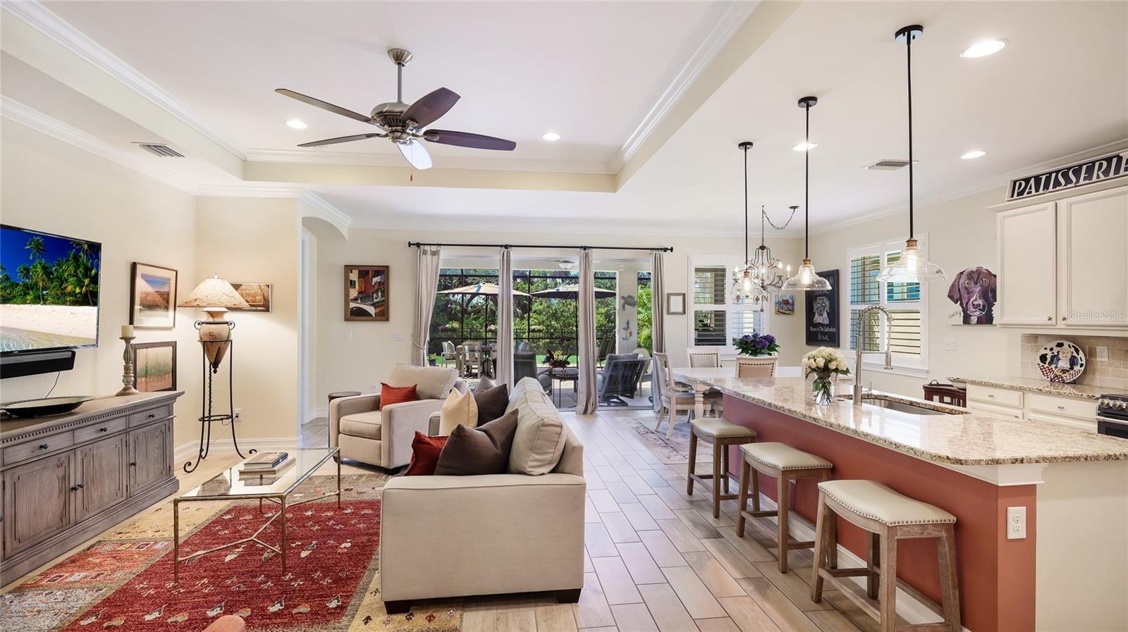 Welcome to 11625 Parrotfish Street. This stunning home has a private preserve view, extended paver patio with expansive cage, fenced in yard surrounded by lush landscaping and has abundant privacy. This home has three-bedrooms, two-bathrooms plus a Den and shows like a model. This original homeowner spared no expense with upgrades such as a Brand New A/C, upgraded appliances such as a New GE Cafe Refrigerator (2025) GE Cafe Induction Range (2019), Newer Bosch Dishwasher, Bosch Microwave, Whole House Rain Gutters, Plantation Shutters, Ceiling Fans, Water Softener and Whole House Filtration System and Hurricane Accordion Shutters on windows and sliders. Several Builder upgrades were selected during the new construction process such as 8 Foot Doors throughout the homes, Central Vacuum, Tray Ceilings, Crown Molding, extra Recessed Lighting and a screened in front porch. When you enter this home you notice the high Tray Ceilings and added architecture features, beautiful plank tile floors throughout the hallway, kitchen and main living areas. Just off the foyer, is a private set back hallway leading to a spacious Den with French doors and a large window that brings in extra natural light. This room is ideal for working from home, an additional place to gather to watch TV and relax or an extra space for overnight visitors. This homes features a desired split bedroom layout that has two guest bedrooms in front of the home to provide maximum privacy, sharing a stylishly appointed bathroom with a walk in shower with upgraded glass doors. In the chef’s kitchen, enjoy a generous one-level island, a spacious pantry, and an open-concept design flowing seamlessly into the great room and dining area, ideal for entertaining. A stunning wall of sliders leads to your outdoor sanctuary with oversized lanai, upgraded pavers, expansive cage and is plumbed for your Outdoor Kitchen. The generous primary suite is a retreat providing views of the yard and preserve. Enjoy a luxurious en-suite bath with a garden soaking tub, dual sinks, a generous shower and a private water closet. Residents of Caribbean Village enjoy a maintenance-free and gated community with two entrances, NO CDD fee, LOW HOA fee and located in an X Flood zone. Enjoy the community's beautiful heated pool, fitness center, meeting room, bocce ball courts, and miles of walking trails that border gorgeous lakes. Mowing of the front and back of the home, irrigation by re-claimed water, mulching around home, pruning of all bushes/palm trees of the home and the community grounds and pool club maintenance are all included in your monthly affordable HOA fees. Located just off River Road and Venice Avenue, Caribbean Village offers proximity to Downtown Wellen Park, Downtown Venice and Gulf Coast Beaches, abundant shopping and good proximity to I-75. Make this home and community your own and start to enjoy this lifestyle!