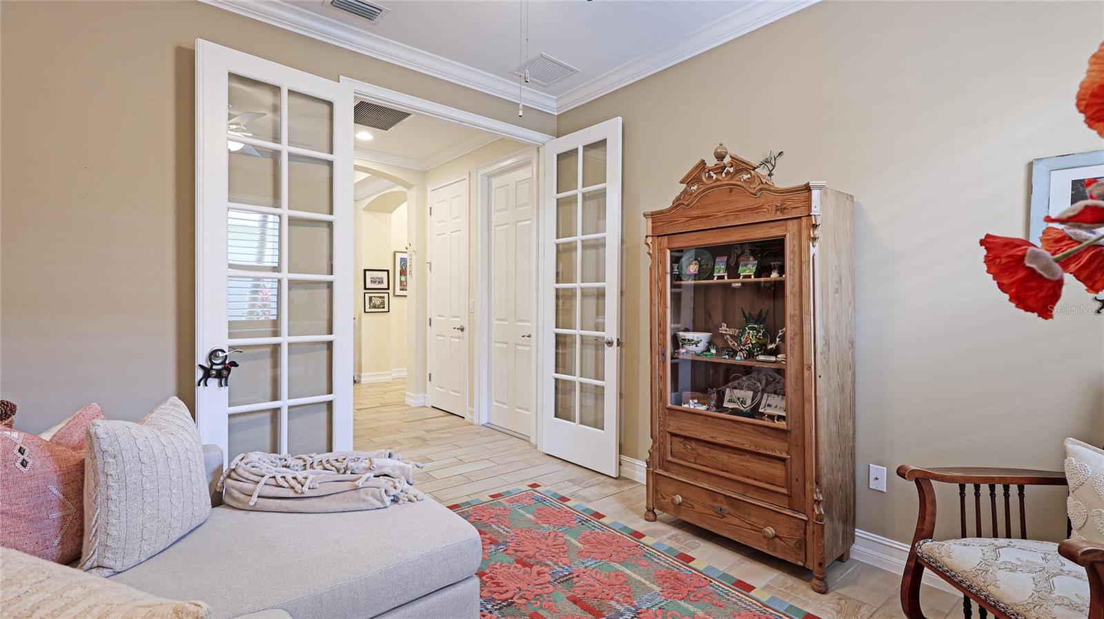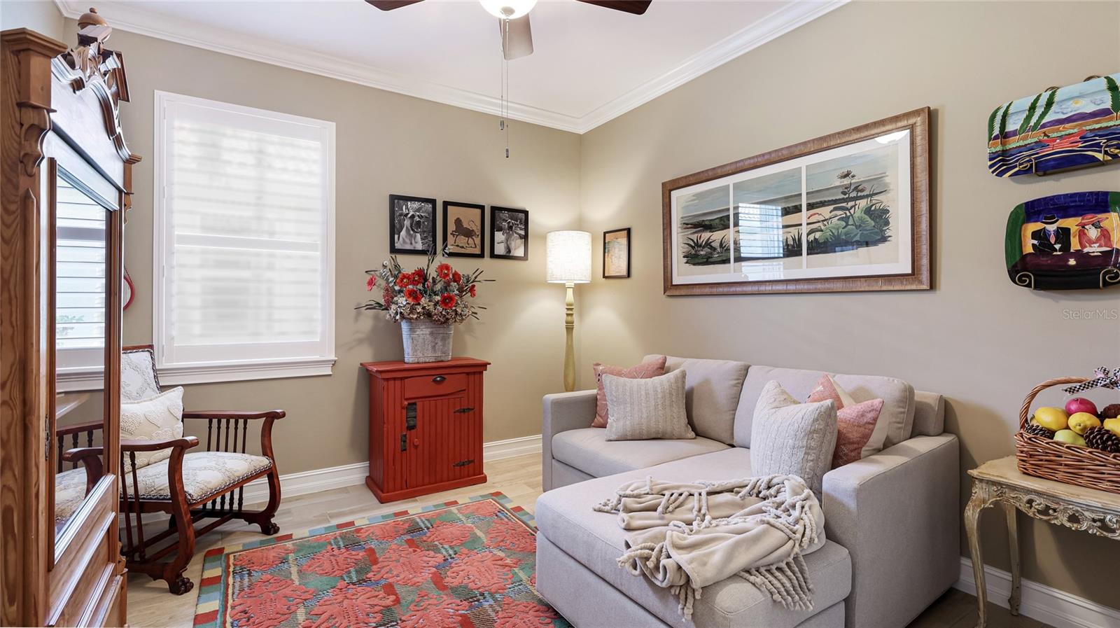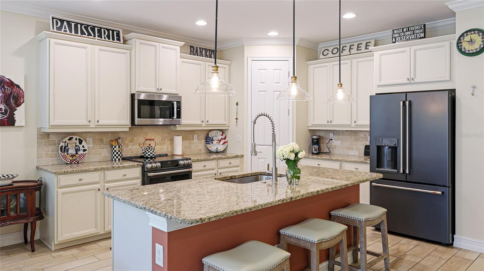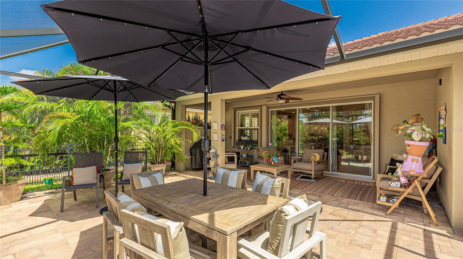Welcome to 11625 Parrotfish Street. This stunning home has a private preserve view, extended paver patio with expansive cage, fenced in yard surrounded by lush landscaping and has abundant privacy. This home has three-bedrooms, two-bathrooms plus a Den and shows like a model. This original homeowner spared no expense with upgrades such as a Brand New A/C, upgraded appliances such as a New GE Cafe Refrigerator (2025) GE Cafe Induction Range (2019), Newer Bosch Dishwasher, Bosch Microwave, Whole House Rain Gutters, Plantation Shutters, Ceiling Fans, Water Softener and Whole House Filtration System and Hurricane Accordion Shutters on windows and sliders. Several Builder upgrades were selected during the new construction process such as 8 Foot Doors throughout the homes, Central Vacuum, Tray Ceilings, Crown Molding, extra Recessed Lighting and a screened in front porch. When you enter this home you notice the high Tray Ceilings and added architecture features, beautiful plank tile floors throughout the hallway, kitchen and main living areas. Just off the foyer, is a private set back hallway leading to a spacious Den with French doors and a large window that brings in extra natural light. This room is ideal for working from home, an additional place to gather to watch TV and relax or an extra space for overnight visitors. This homes features a desired split bedroom layout that has two guest bedrooms in front of the home to provide maximum privacy, sharing a stylishly appointed bathroom with a walk in shower with upgraded glass doors. In the chef’s kitchen, enjoy a generous one-level island, a spacious pantry, and an open-concept design flowing seamlessly into the great room and dining area, ideal for entertaining. A stunning wall of sliders leads to your outdoor sanctuary with oversized lanai, upgraded pavers, expansive cage and is plumbed for your Outdoor Kitchen. The generous primary suite is a retreat providing views of the yard and preserve. Enjoy a luxurious en-suite bath with a garden soaking tub, dual sinks, a generous shower and a private water closet. Residents of Caribbean Village enjoy a maintenance-free and gated community with two entrances, NO CDD fee, LOW HOA fee and located in an X Flood zone. Enjoy the community's beautiful heated pool, fitness center, meeting room, bocce ball courts, and miles of walking trails that border gorgeous lakes. Mowing of the front and back of the home, irrigation by re-claimed water, mulching around home, pruning of all bushes/palm trees of the home and the community grounds and pool club maintenance are all included in your monthly affordable HOA fees. Located just off River Road and Venice Avenue, Caribbean Village offers proximity to Downtown Wellen Park, Downtown Venice and Gulf Coast Beaches, abundant shopping and good proximity to I-75. Make this home and community your own and start to enjoy this lifestyle!