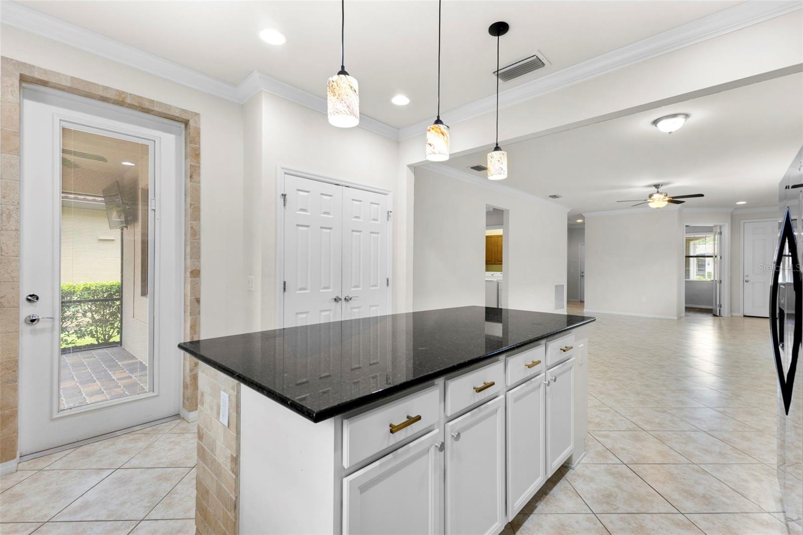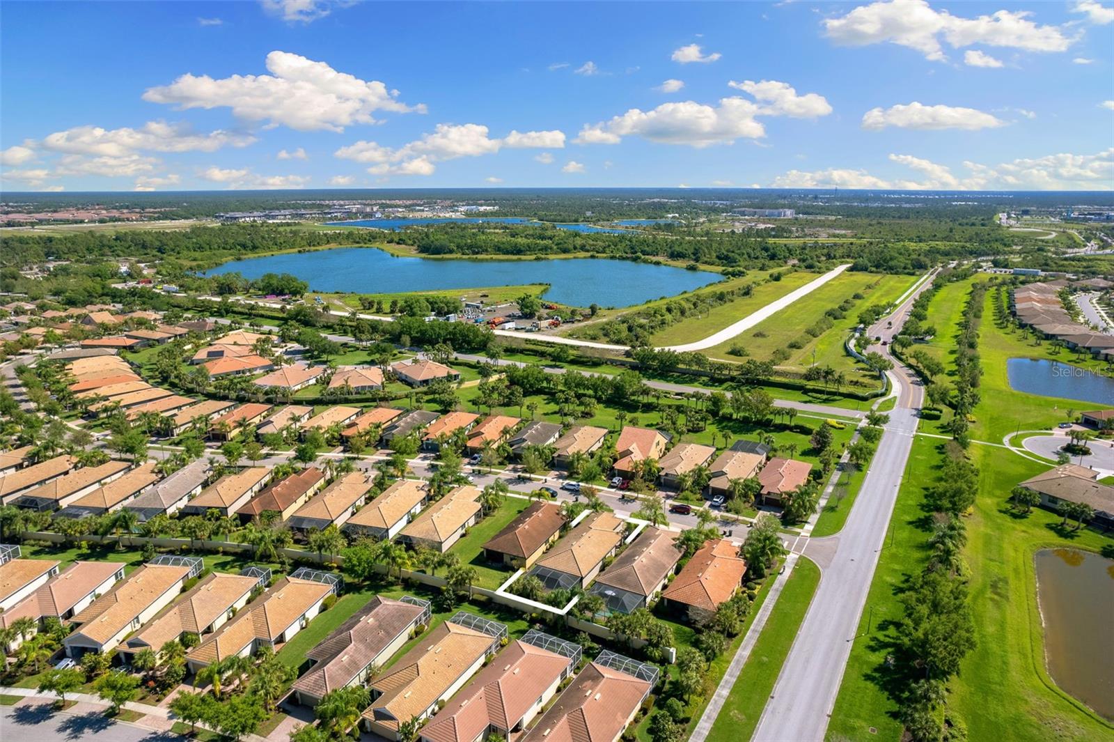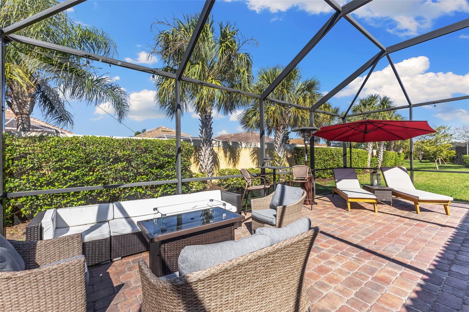 SELLER TO PAY HOA FEES THROUGH THE END OF 2025! NEW FLOORING JUST INSTALLED IN BEDROOMS AND DEN! Imagine coming home to this stunning single family home in popular IslandWalk! This 2 bedroom, with an enclosed den, 2 bathroom, and oversized 2 car garage home has a huge lanai which is a private oasis! Larger than your neighbors lanai It is covered, screened, and has an 18 foot power sunsetter awning, making your backyard perfect for enjoying the Florida Lifestyle! This lovely home has an oversized, welcoming front porch, and screened door entry! The kitchen has recently been updated making it light and bright. The gourmet kitchen features granite counters, a lovely backsplash, and a HUGE Island with lots of storage! This home has an EXTENDED 4 foot GARAGE providing all the extra storage you will need! The attic in garage has pull down stairs for easy access. The layout is open concept offering a large living room and dining room. The den features French doors and is large enough to use as an additional guest room or office if you prefer! The large Primary bath includes dual sinks, and a walk in shower that has recently been updated with beautiful tile! The closet is a dream come true! The owner just recently added custom built in shelving with plenty of room for all of your shoes and accessories!! IslandWalk is one of Wellen Parks most active and social communities with full time activity directors, events, clubs and activities, two community clubhouses, an event center, two resort style pools, a separate lap pool, Pickle Ball Court, Tennis, a dog park, bocce ball, Playground, Basketball Court, a Community Garden and more!! The entire community is surrounded by, walking and biking trails, lovely bridges and ponds! Islandwalk is maintenance free so leave your mowers behind! So much to do in Wellen Park and the surrounding areas!
