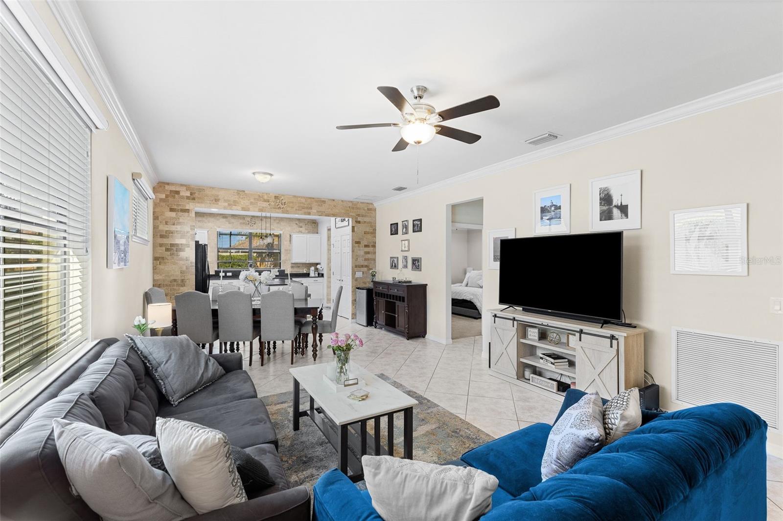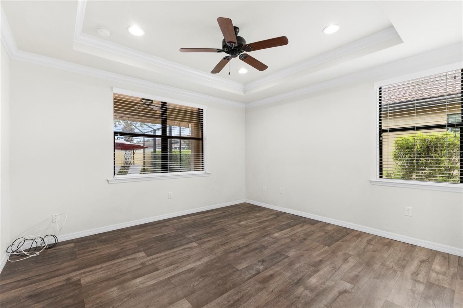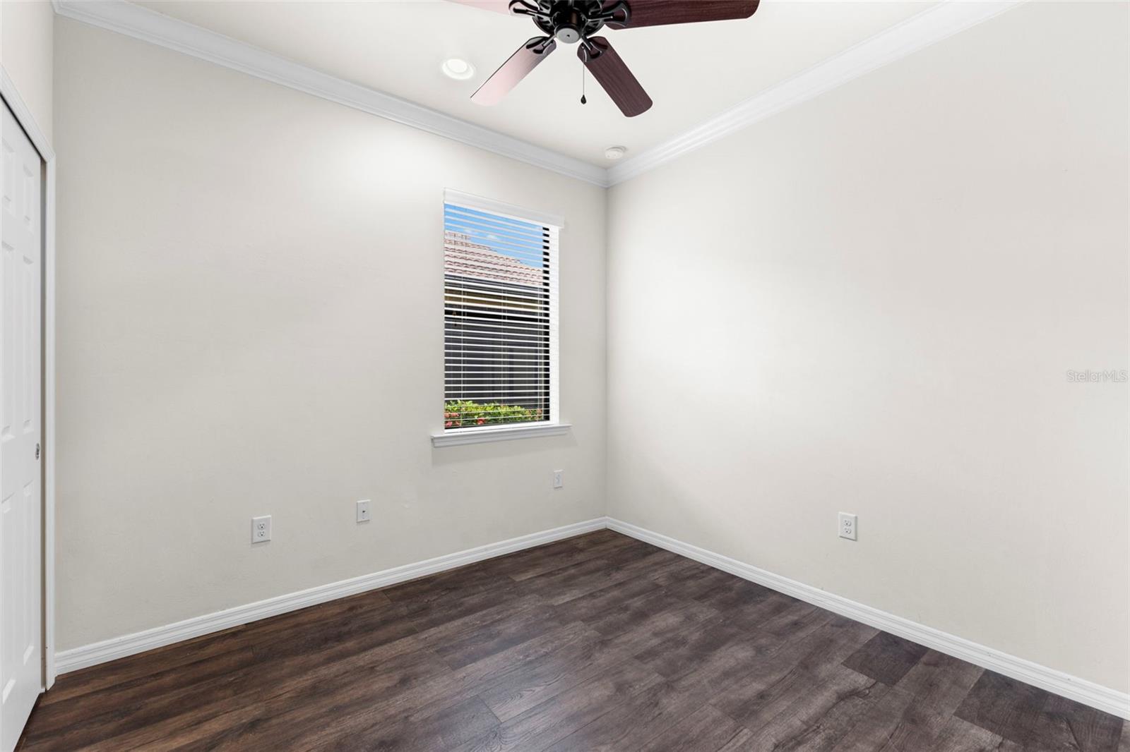 SELLER TO PAY HOA FEES THROUGH THE END OF 2025! NEW FLOORING JUST INSTALLED IN BEDROOMS AND DEN! Imagine coming home to this stunning single family home in popular IslandWalk! This 2 bedroom, with an enclosed den, 2 bathroom, and oversized 2 car garage home has a huge lanai which is a private oasis! Larger than your neighbors lanai It is covered, screened, and has an 18 foot power sunsetter awning, making your backyard perfect for enjoying the Florida Lifestyle! This lovely home has an oversized, welcoming front porch, and screened door entry! The kitchen has recently been updated making it light and bright. The gourmet kitchen features granite counters, a lovely backsplash, and a HUGE Island with lots of storage! This home has an EXTENDED 4 foot GARAGE providing all the extra storage you will need! The attic in garage has pull down stairs for easy access. The layout is open concept offering a large living room and dining room. The den features French doors and is large enough to use as an additional guest room or office if you prefer! The large Primary bath includes dual sinks, and a walk in shower that has recently been updated with beautiful tile! The closet is a dream come true! The owner just recently added custom built in shelving with plenty of room for all of your shoes and accessories!! IslandWalk is one of Wellen Parks most active and social communities with full time activity directors, events, clubs and activities, two community clubhouses, an event center, two resort style pools, a separate lap pool, Pickle Ball Court, Tennis, a dog park, bocce ball, Playground, Basketball Court, a Community Garden and more!! The entire community is surrounded by, walking and biking trails, lovely bridges and ponds! Islandwalk is maintenance free so leave your mowers behind! So much to do in Wellen Park and the surrounding areas!