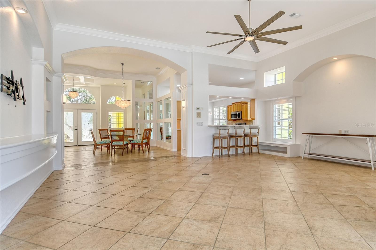 This beautiful MAINTENANCE FREE pool home sits right on the 2nd hole of the Plantation Golf & CC Bobcat course and has been lovingly cared for and recently refreshed throughout. Live close to Wellen Park but WITHOUT A CDD FEE! FRESH PAINT, NEW PLANTATION SHUTTERS, UPDATED LIGHTING, and brand-new LANDSCAPING (2024) give it a clean, modern feel from the start. The fully REDONE POOL AREA (2024) is a true highlight—featuring sparkling glass tile, a relaxing spa and fountain, newer pool pump, and reconditioned heater. Whether you're lounging in the in-pool bar seats, cooking in the outdoor kitchen, or catching the game under the retractable awning, this space was made for enjoying the Florida lifestyle. Inside, the open living and dining areas offer great natural light and GOLF COURSE VIEWS. The spacious primary suite has direct pool access and a large ensuite with jetted tub, walk-in shower, double sinks, and a big walk-in closet. All bedrooms feature new (2025) antimicrobial carpet. The third bedroom offers flexibility for an office or guest room. The kitchen is bright and functional with a wine rack, under-cabinet lighting, reverse osmosis system, and a built-in banquette with storage. You'll also love the versatile extra space that works great as a butler’s pantry, mudroom, or home office. The two-car garage offers plenty of storage, plus attic access. ***An ELECTRIC HURRICANE SCREEN offers peace of mind and doubles as a sunshade for added comfort.*** This home was treasured by its previous owners, and it shows. Come see for yourself why life at The Plantation is so special—friendly neighbors, great amenities, and a place you’ll be proud to call home.