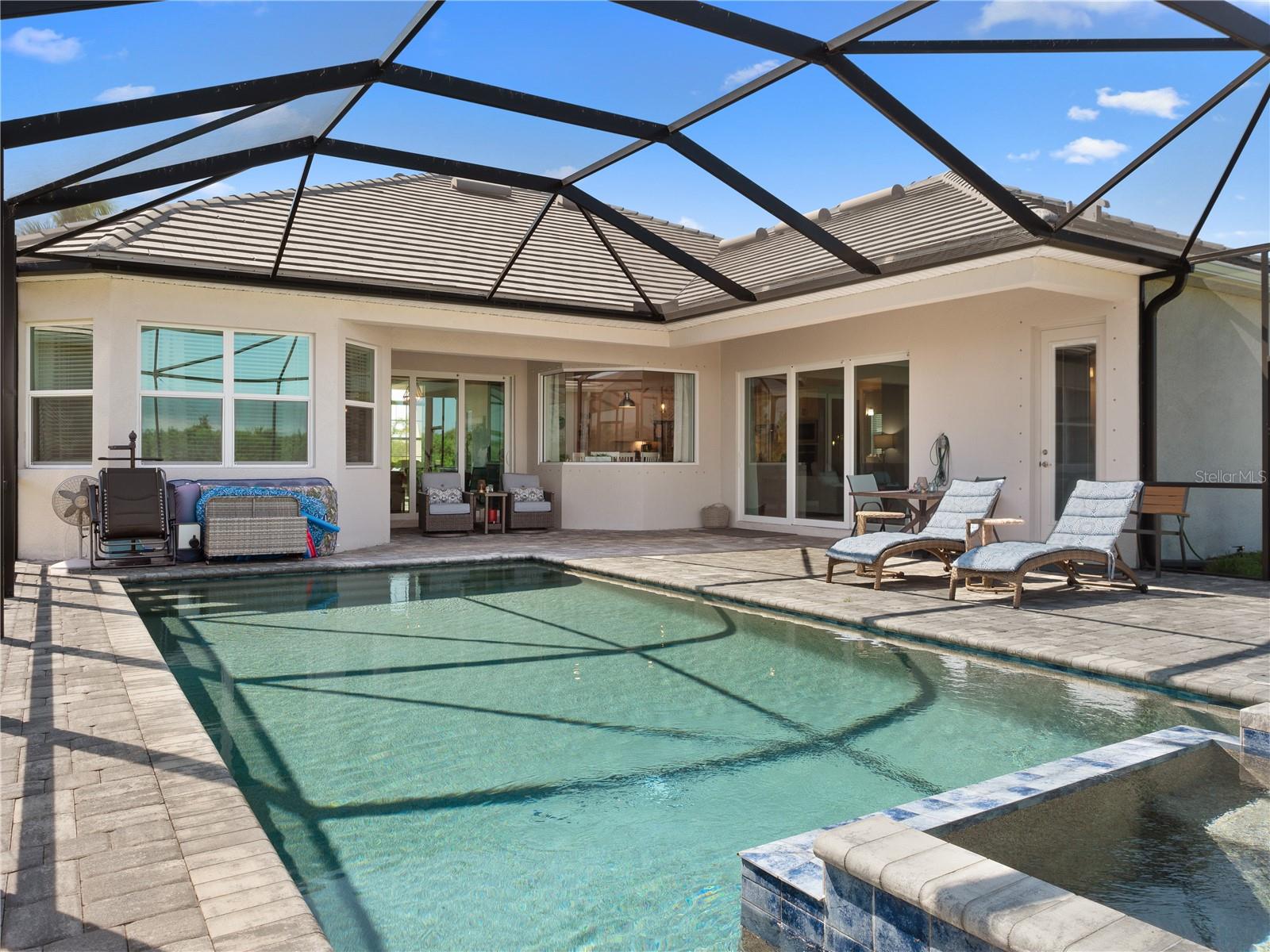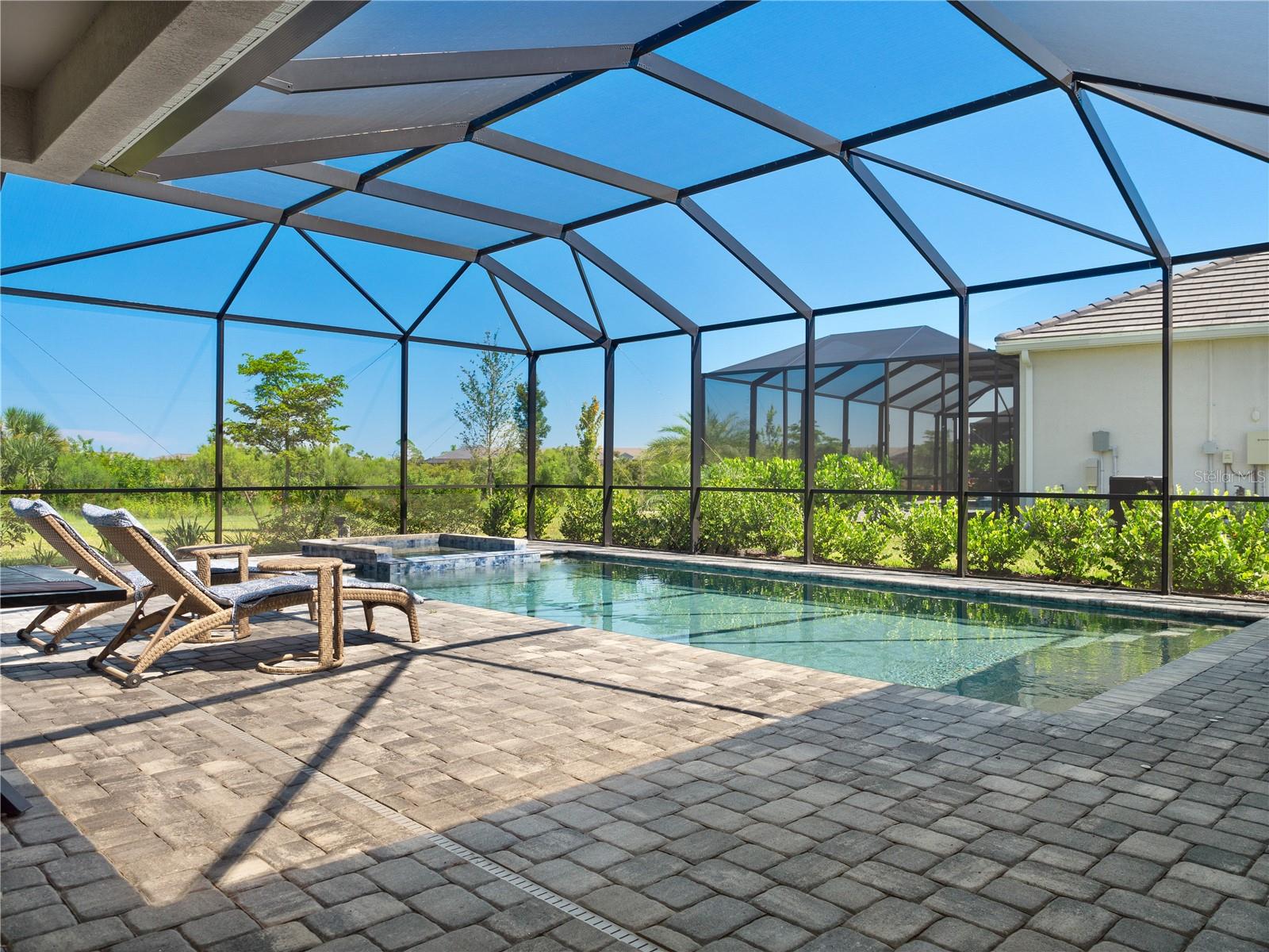 Welcome to your dream home in one of Southwest Florida’s most sought-after destinations! All Lennar new construction homes with golf memberships are gone but this home is golf deeded! Enjoy your golf membership which is attached and transferred with the property deed—a rare and valuable feature in this community. Located in WELLEN PARK GOLF AND COUNTY CLUB community with it's exclusive 18-hole, guard-gated golf course - this stunning residence offers resort-style living at its finest. With 4 bedrooms, 3 full bathrooms, and over 2,500 square feet of elegant living space, this home showcases both luxury and functionality. Hurricane impact glass windows, sliders, and doors for added peace of mind. The interior is professionally painted throughout, with custom lighting and dimmer switches installed, creating a warm and inviting ambiance throughout the home. The gourmet kitchen is a chef’s dream with quartz countertops, stainless steel appliances, a custom backsplash, ample cabinetry, and a large center island perfect for prepping, serving, or gathering with guests. The owner's suite offers a peaceful retreat with an en-suite bath and ample closet space, enhanced by additional shelving for optimal organization. This home also includes professionally hung TV mounts and custom drapery rods, sealed pavers on both the driveway and lanai, and gutters installed on the sides and back of the home. The versatile den can easily function as a home office, guest room, or additional bedroom. Step outside to your private screened-in pool and deck—ideal for relaxing, entertaining, or soaking up the Florida sunshine. The three-car garage provides even more value with upper storage shelving and additional shelving for optimized space. A pre-purchase inspection and 1-year inspection are available, and the home is currently covered by a First American Home Warranty for added buyer confidence. This community offers an exceptional lifestyle with a clubhouse, onsite restaurant and tiki bar, fitness pavilion, resort-style pool, and full-service day spa. Residents enjoy pickleball, tennis, bocce ball, a yoga lawn, a dog park, and so much more. You're also just minutes away from Downtown Wellen Park, CoolToday Park (home of the Atlanta Braves spring training), historic downtown Venice, and top-rated Gulf Coast beaches. Don’t miss your chance to own a slice of paradise in Wellen Park. Schedule your private tour today to learn more and take advantage of this rare opportunity.