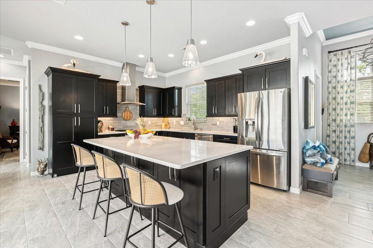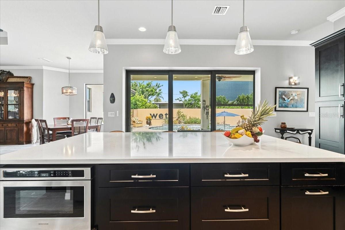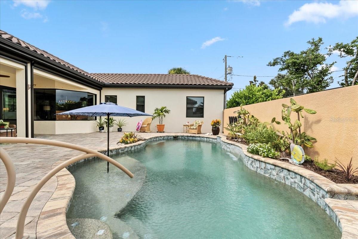 Custom-Built Island Home – Florida Living at Its Finest! Built in 2019 to current codes, this beautifully designed island residence is ideally located between the Gulf of Mexico and the Intracoastal Waterway, just minutes from beaches, boating, dining, and entertainment. NO flood insurance required and LOW homeowners insurance. The open-concept floor plan features 10’ tray ceilings, crown molding, and porcelain tile throughout. The gourmet kitchen boasts solid wood cabinetry with pull-out shelving, soft-close features and under-cabinet lighting. A spacious quartz island has seating for four, a microwave drawer, and additional storage. Pocketing sliders connect the living space to a large lanai with motorized retractable screens and a heated saltwater pool, perfect for indoor/outdoor living. The main home offers two split bedrooms, each with an ensuite bath and solid-core doors for privacy. The primary suite features dual walk-in closets. A dedicated office includes built-in file cabinets and a quartz work surface. The self-contained casita offers a third bedroom with full bath, walk-in shower, Large closet, and pool access—ideal for guests or extended family. Additional highlights include: • Three-zone HVAC • Whole-house surge protection • Ceiling fans throughout, including the lanai • Heated 10,000-gallon saltwater pool with sun shelf, umbrella port, and child-safety alarm • Hurricane-rated windows, blown-in attic insulation, and barrel tile roof • Oversized 2-car garage with utility sink • Laundry room with cabinets, quartz countertop, and sink • Existing Irrigation well Walk or bike to multiple beaches with free parking, or enjoy nearby restaurants, golf, shopping, and entertainment. This is your chance to own a move-in ready, meticulously maintained island home in paradise!