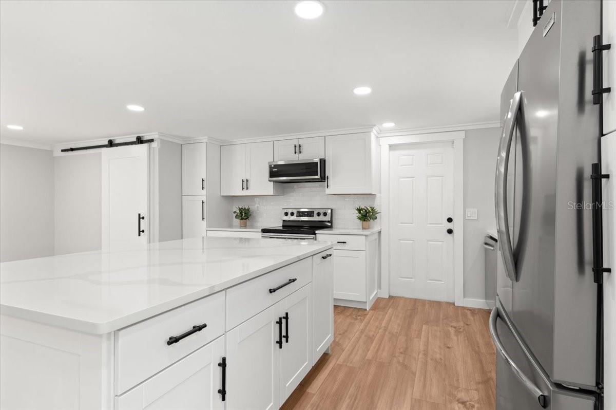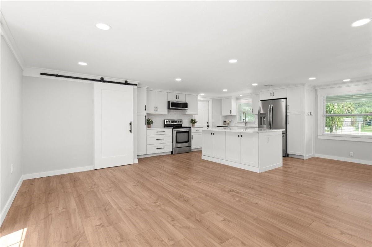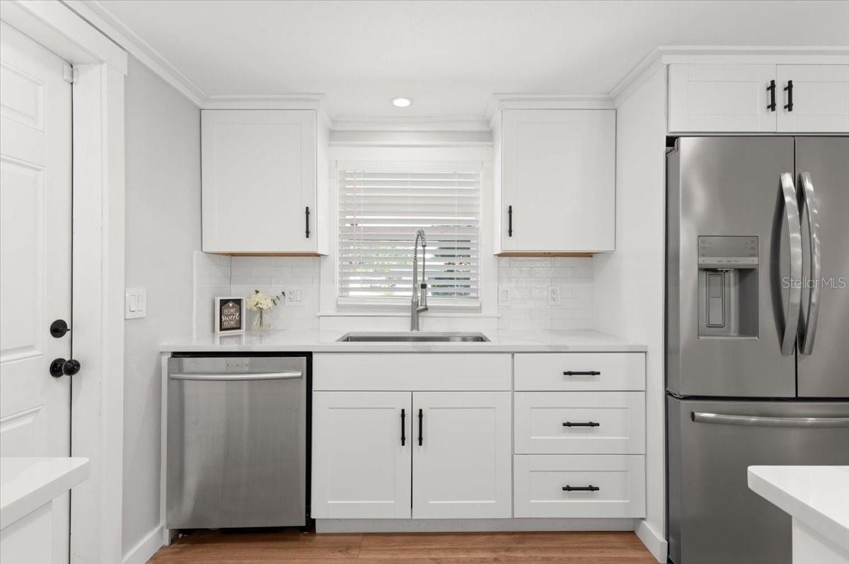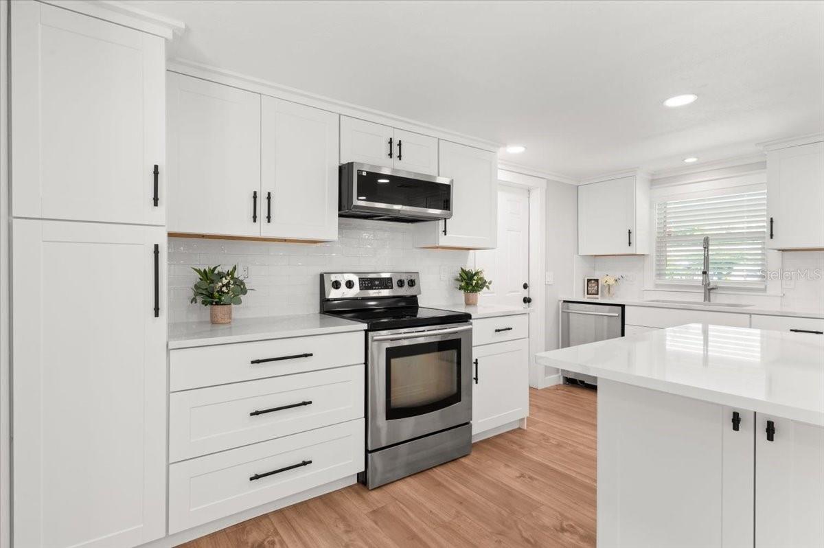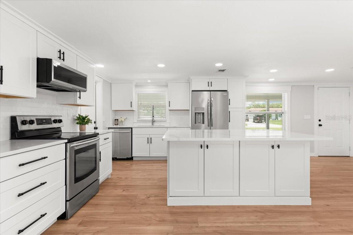 NEW PRICE ~ NEW ROOF ~ listed UNDER appraised value ~ Step into this beautifully renovated 2-bedroom, 2-bathroom home offering 1,144 sqft of thoughtfully designed living space. As you step inside, you're welcomed by a bright and airy open-concept layout featuring brand-new laminate flooring, crisp fresh paint, and updated trim that adds a clean, modern touch throughout the home. The kitchen has been completely transformed with sleek stainless-steel appliances, stunning quartz countertops, and a spacious island that seamlessly connects to the living area. Designed for both functionality and style, the island offers ample storage and seating—ideal for hosting guests or enjoying casual family gatherings. The master bedroom features a spacious closet with custom built-ins for optimal organization, while the versatile second bedroom offers the ideal space for little ones, overnight guests, or a comfortable home office. Both bathrooms have been tastefully renovated with stylish, modern finishes, and the home also includes a generously sized laundry room for added convenience and functionality. This home also includes hurricane impact windows for peace of mind and energy efficiency. Venice East is a prime location just minutes from Venice’s best—enjoy easy access to top-rated restaurants, beautiful beaches, and all the vibrant coastal charm the area has to offer. Whether you're a first-time buyer, downsizing, or looking for a turnkey investment, this property checks all the boxes.