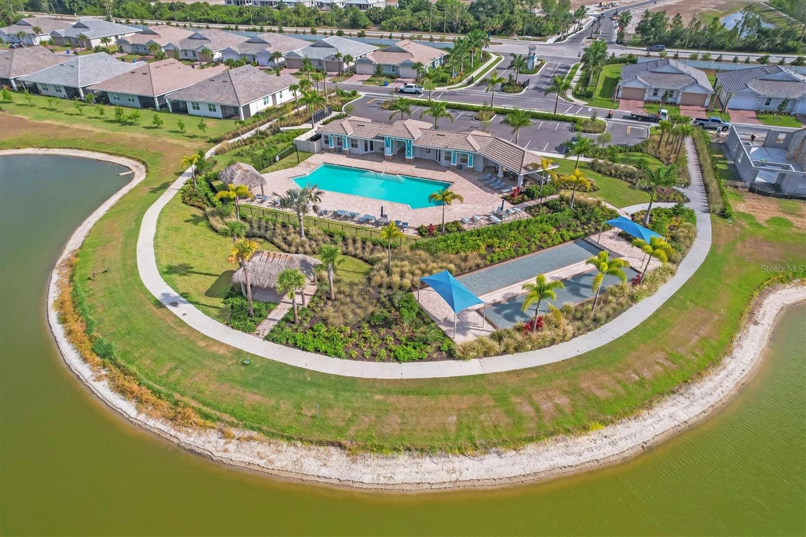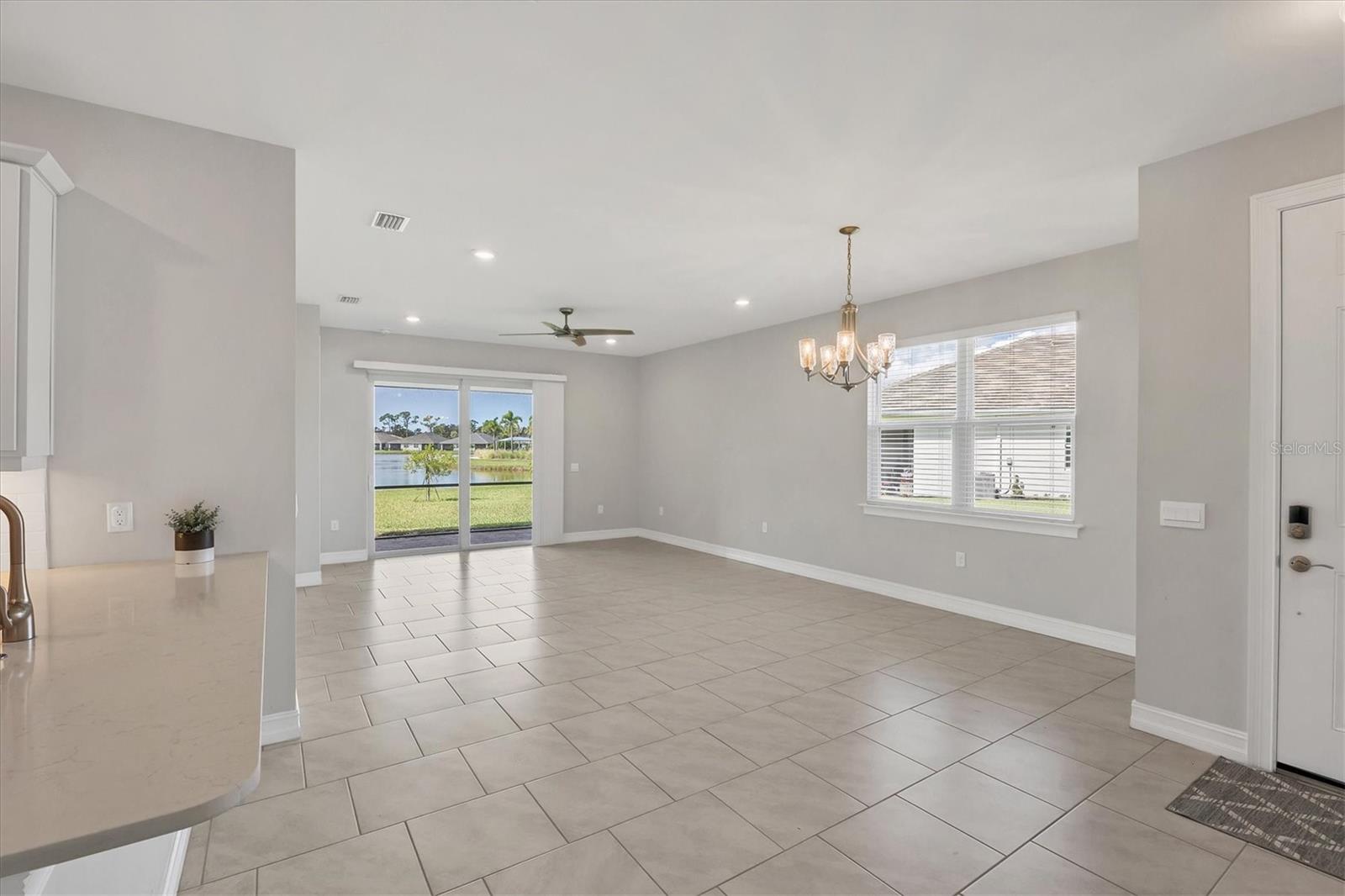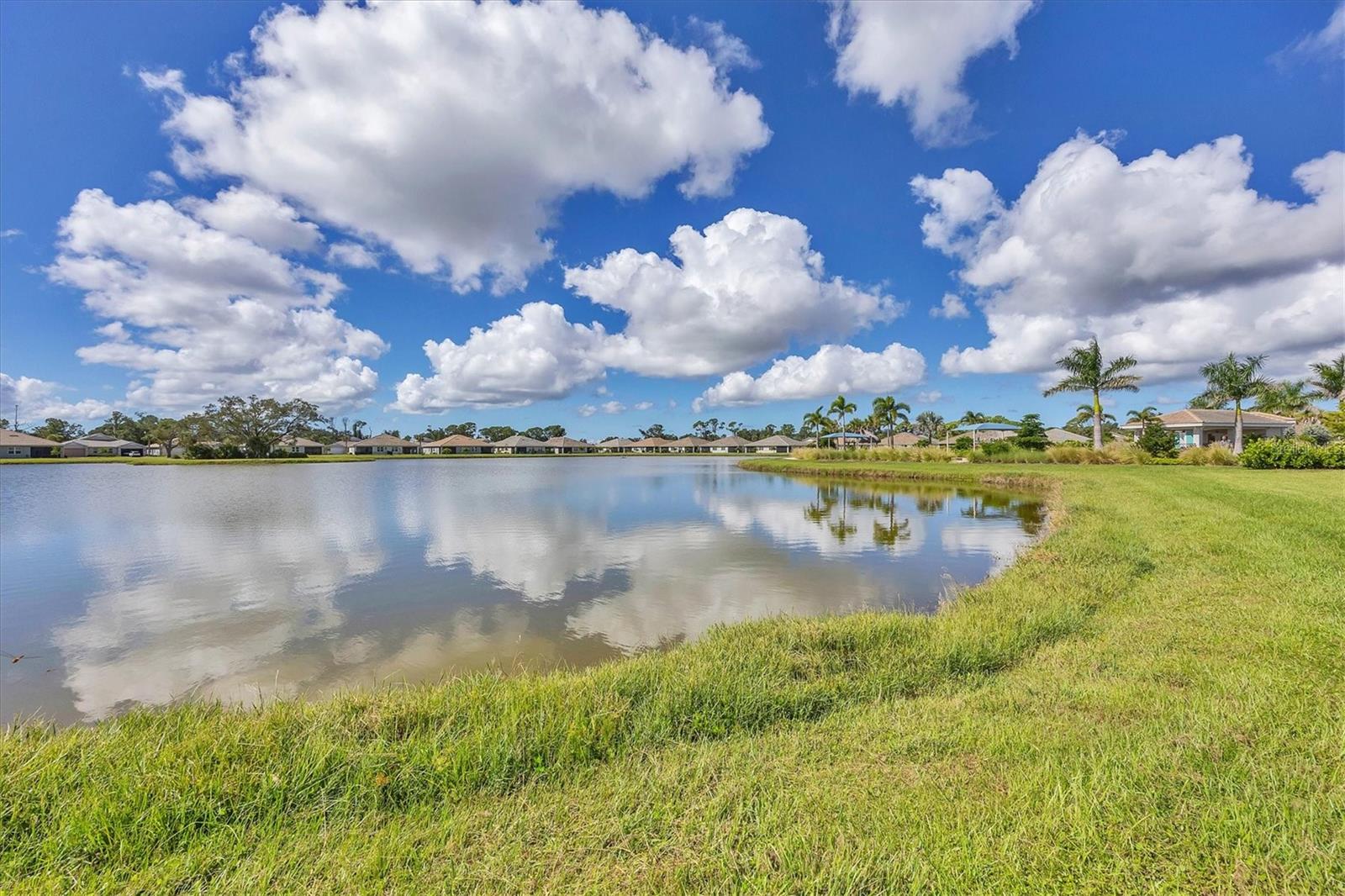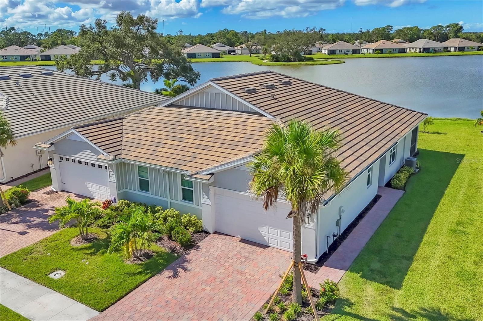 Beautiful villa with relaxing broad views of water and green space. Newly built on a premium lot in 2022 and features 2 BR, plus a den, 2 full baths, 2 car garage, and 1,500 square feet of living space. The home has an open floor plan enhanced with 9 foot ceilings and 8 foot doors. Adding to your comfort are split bedrooms and a large den/office/library that can easily become a 3rd bedroom. There is carpet in both bedrooms, and easily cared for tile in the remainder of the home. The clubhouse, community mailbox, and pool are a very short walking distance away. There are sidewalks and walking trails for outdoor exercise, and a fitness area in the clubhouse. The Palencia location is convenient to historic downtown Venice, Publix shopping centers in 2 directions, and the new Sarasota Memorial Hospital is less than 10 minutes away. The Gulf beaches and the Gulf waterfront dog park are a short drive away. There are more beaches and interesting waterfront locations in nearby Nokomis and Englewood. The hotspots in and around Sarasota are easily accessible via I-75 or Tamiami Trail. There are several golf courses within a 10 minute drive and over 40 courses within 30 minutes. Come and see all that the Gulf Coast has to offer for your heart, for your family, and for your best lifestyle.